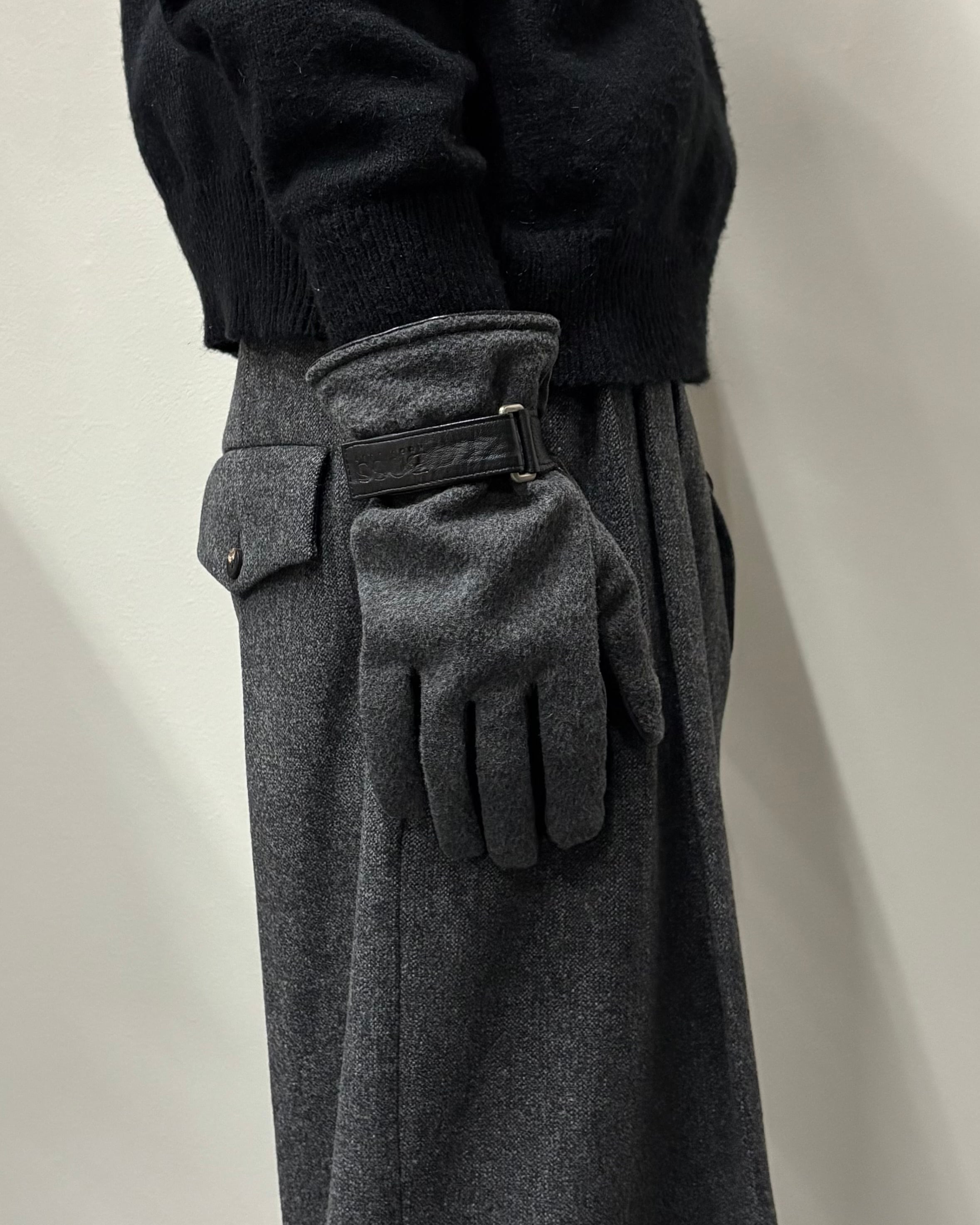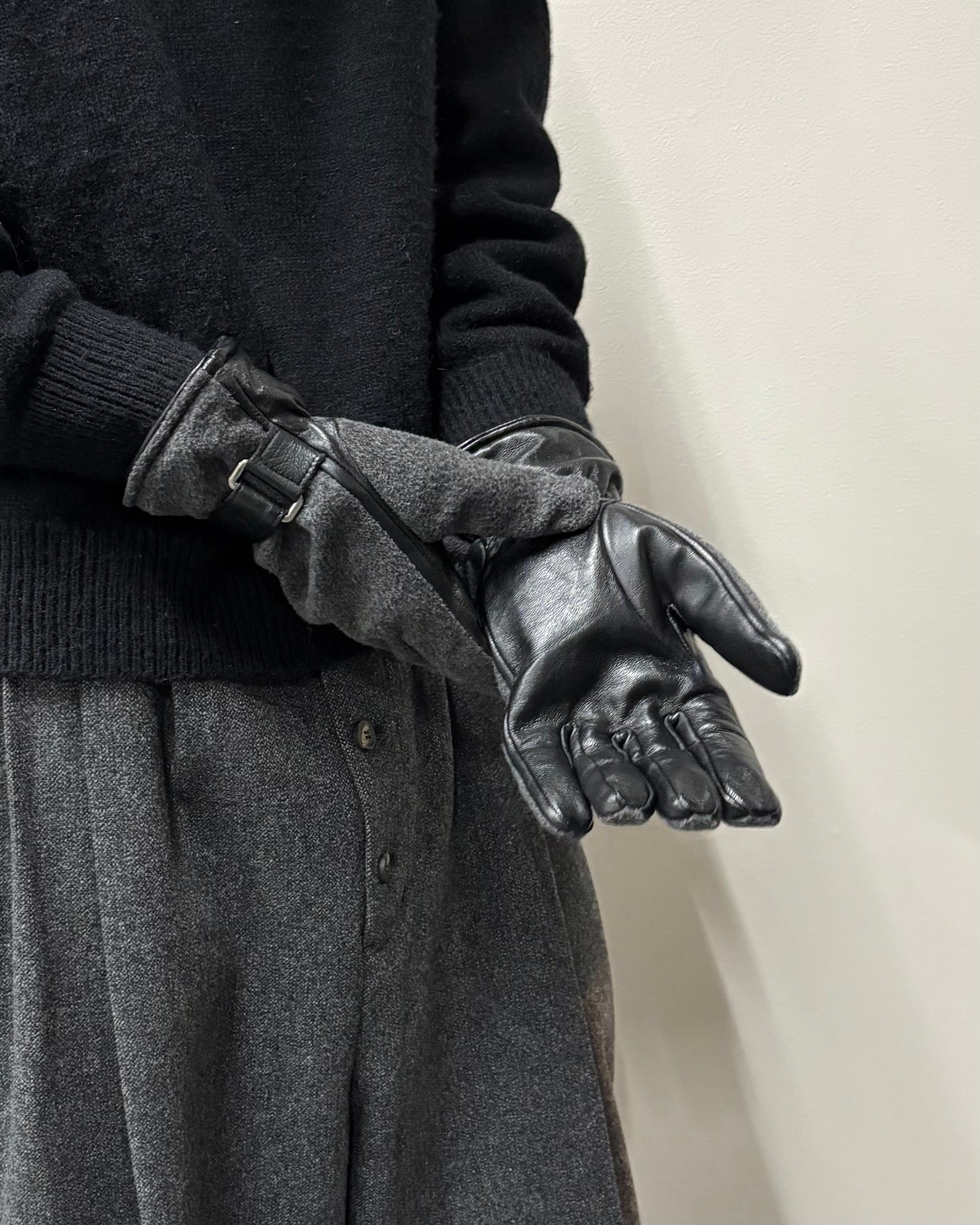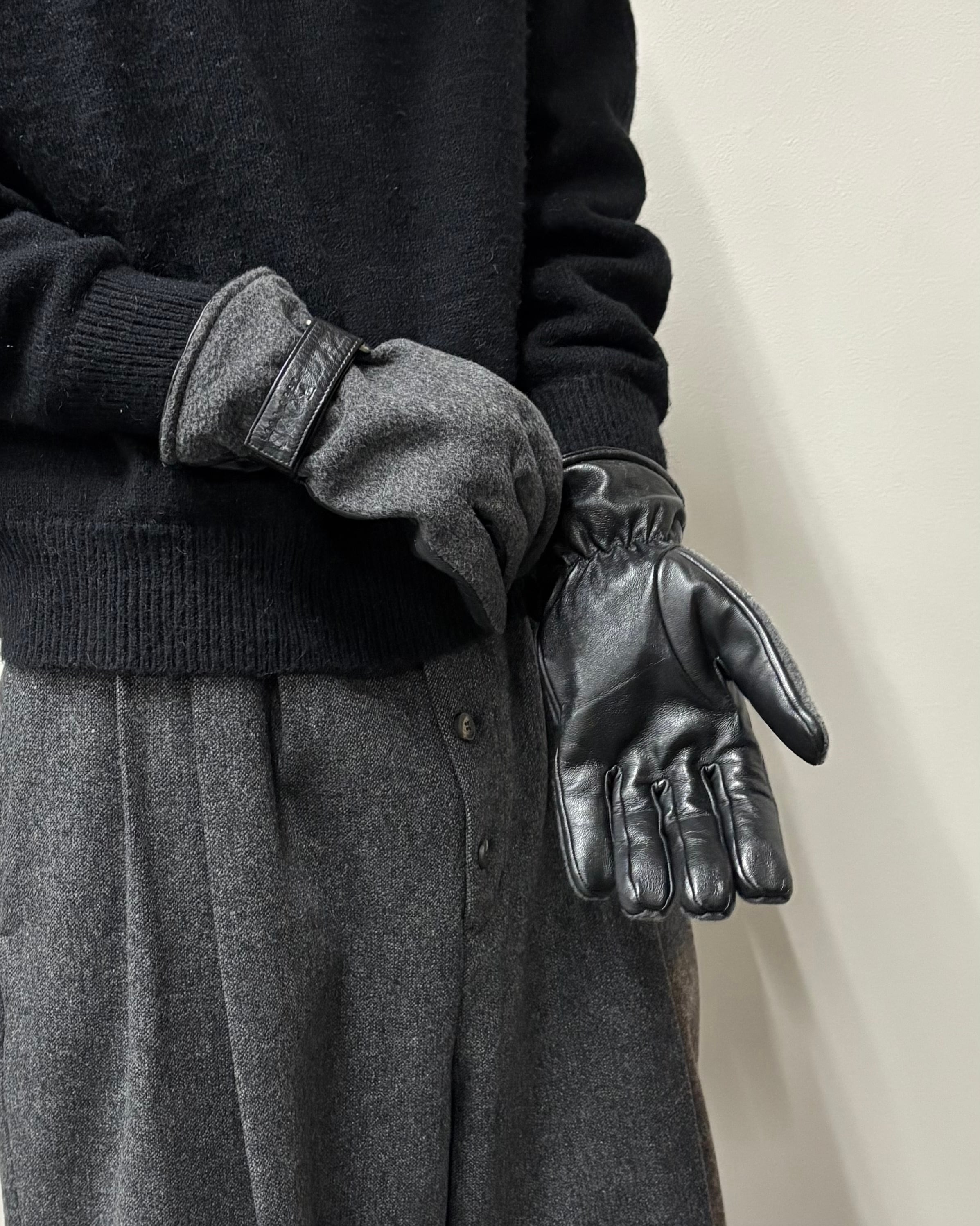 手の甲には上質なウール素材、手のひら側には柔らかくしなやかなレザーを使用し、実用性と上品さを兼ね備えたアイテム。