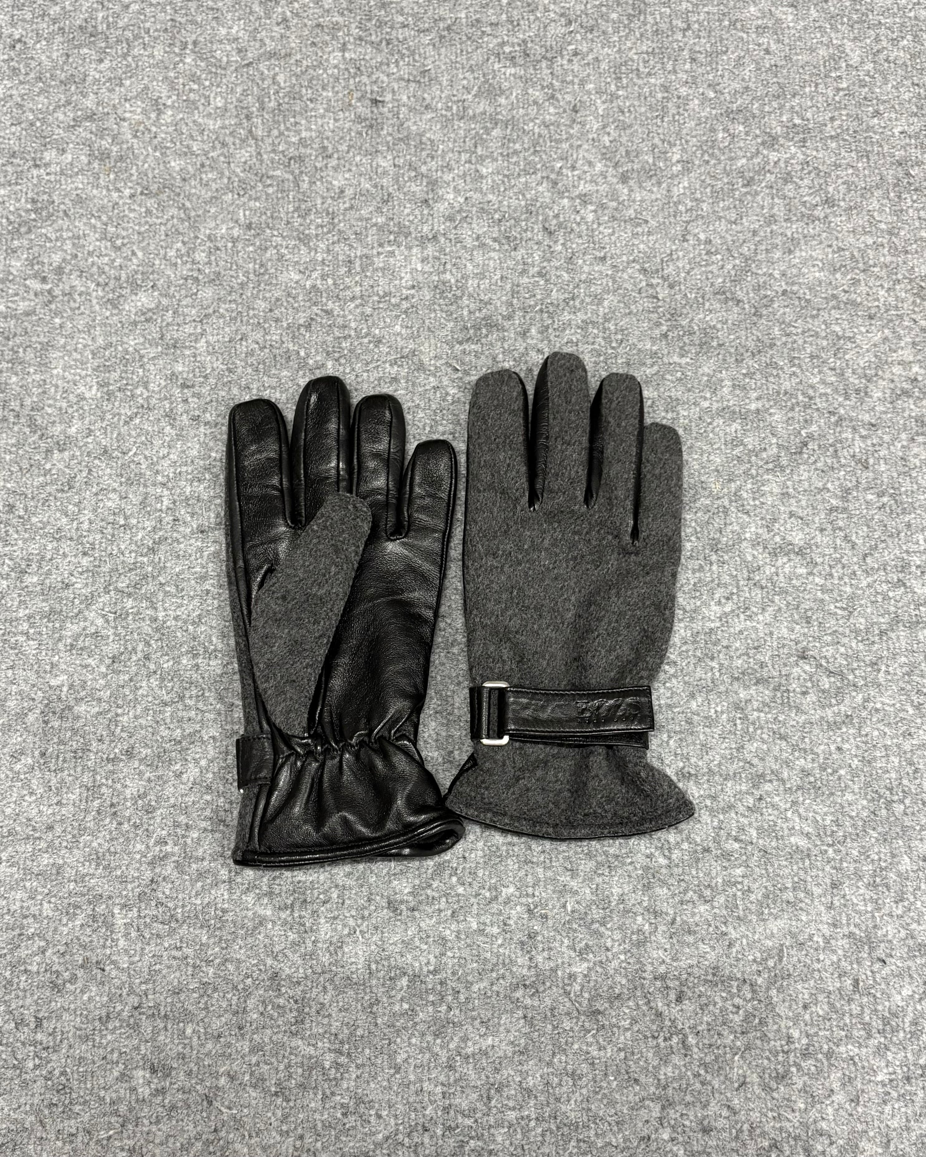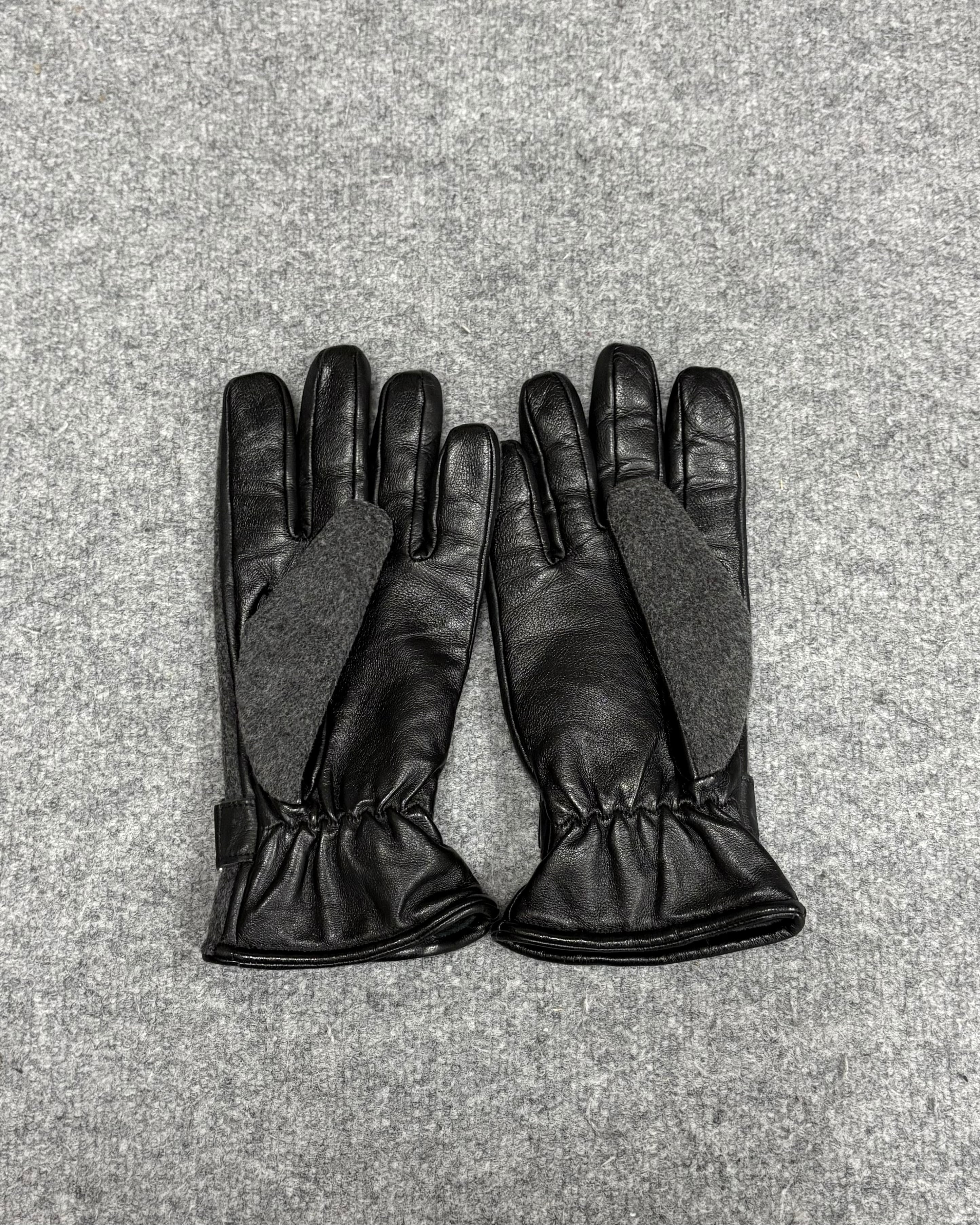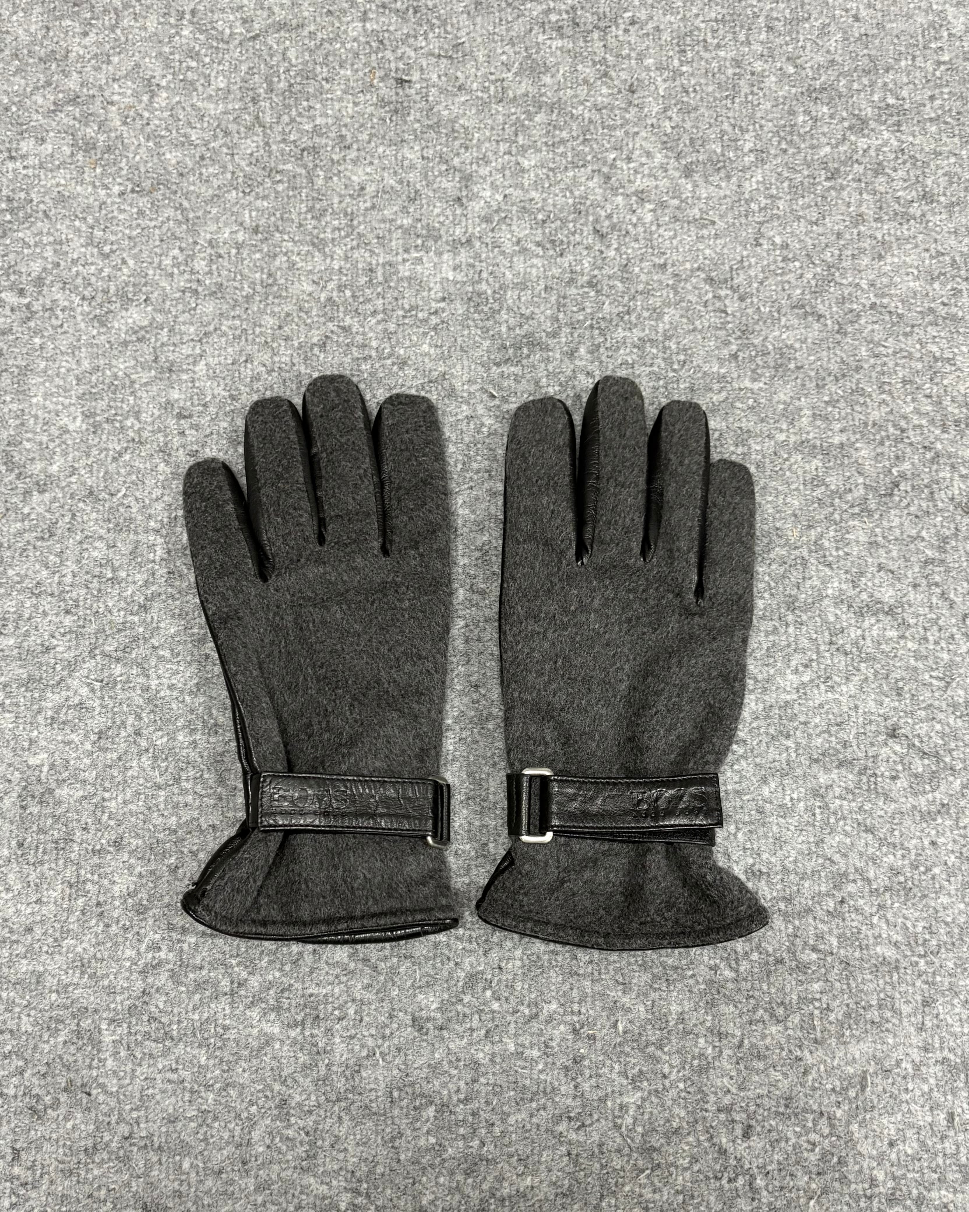HUGO BOSSらしい洗練されたデザインのウールとレザー切り替えのグローブ