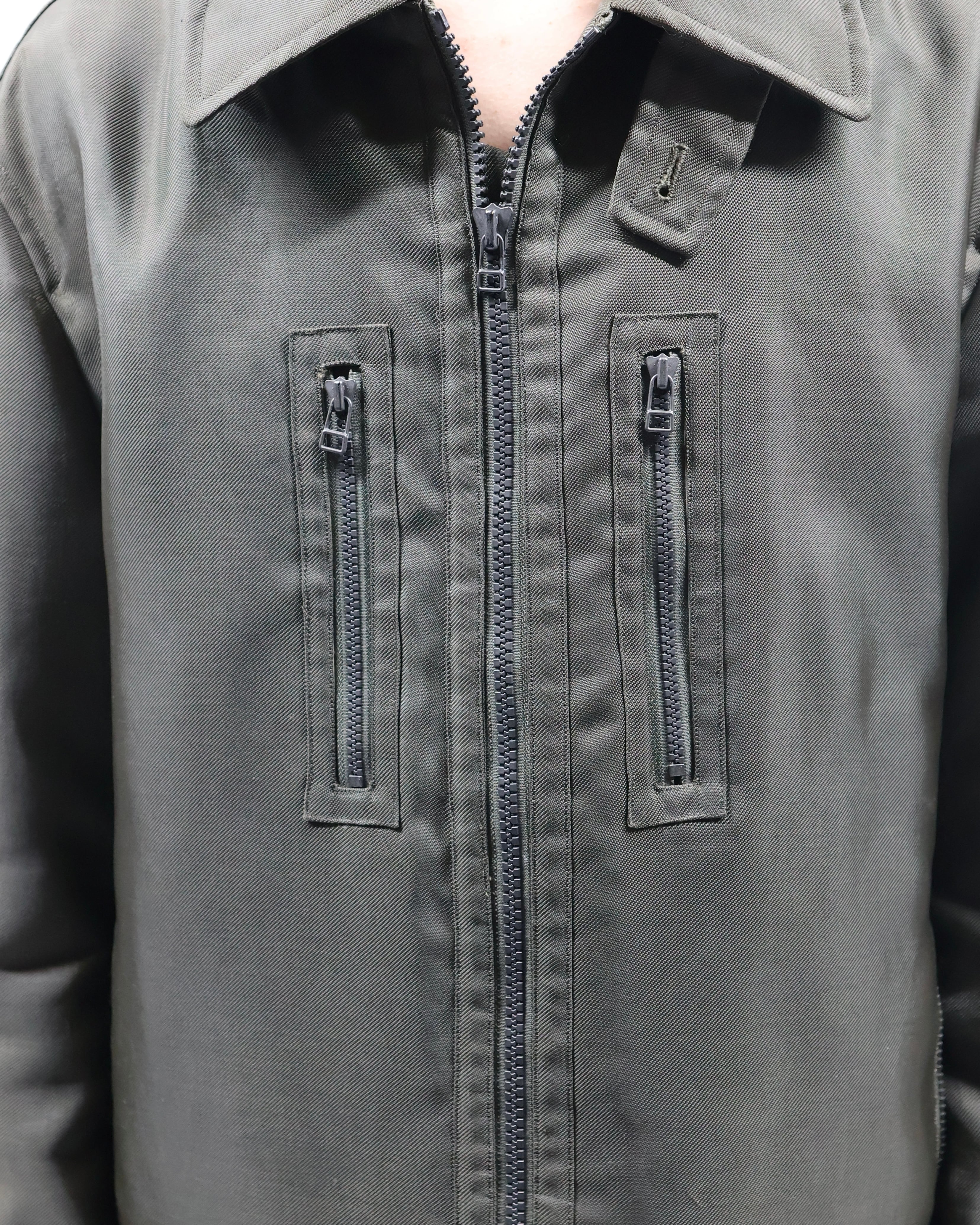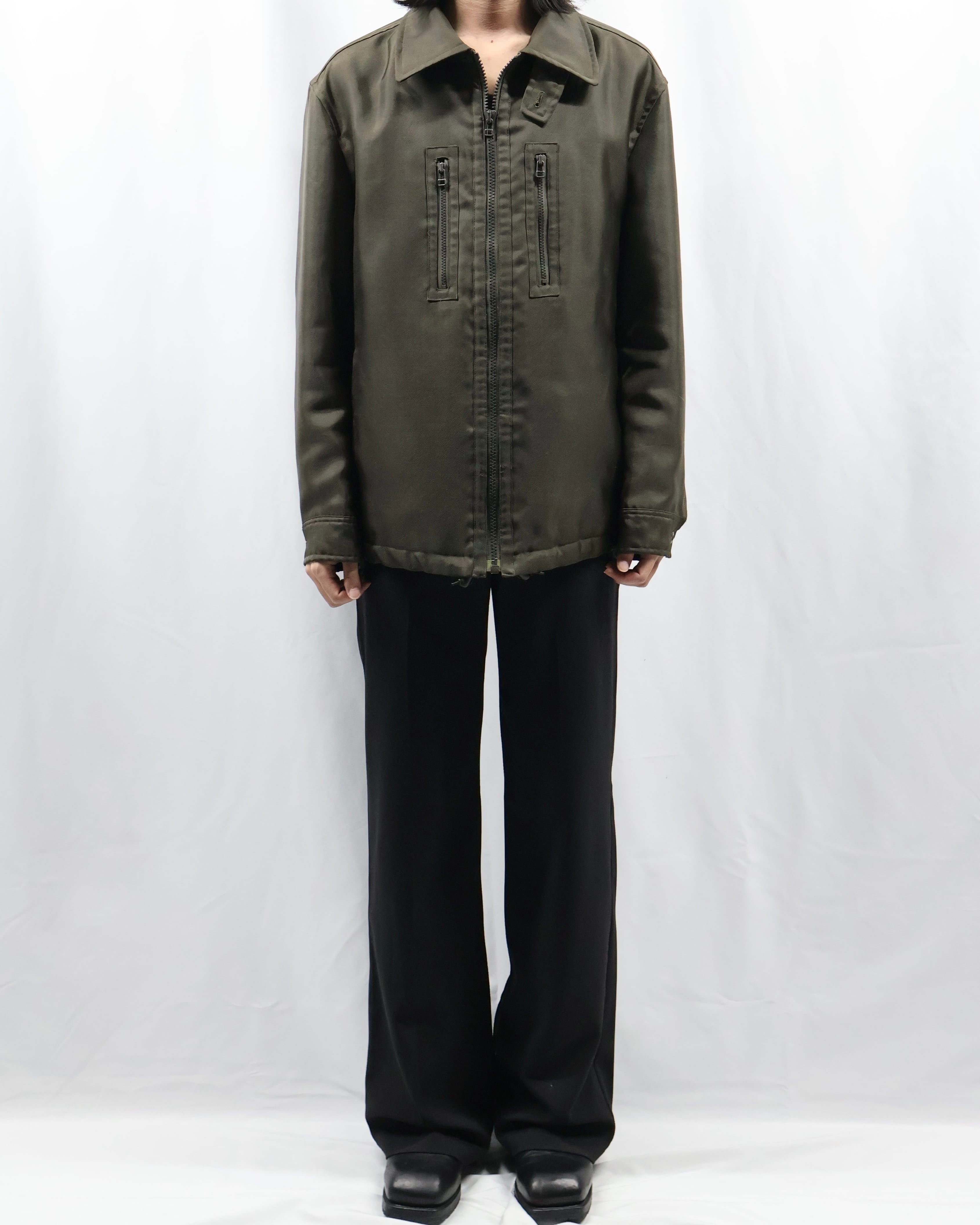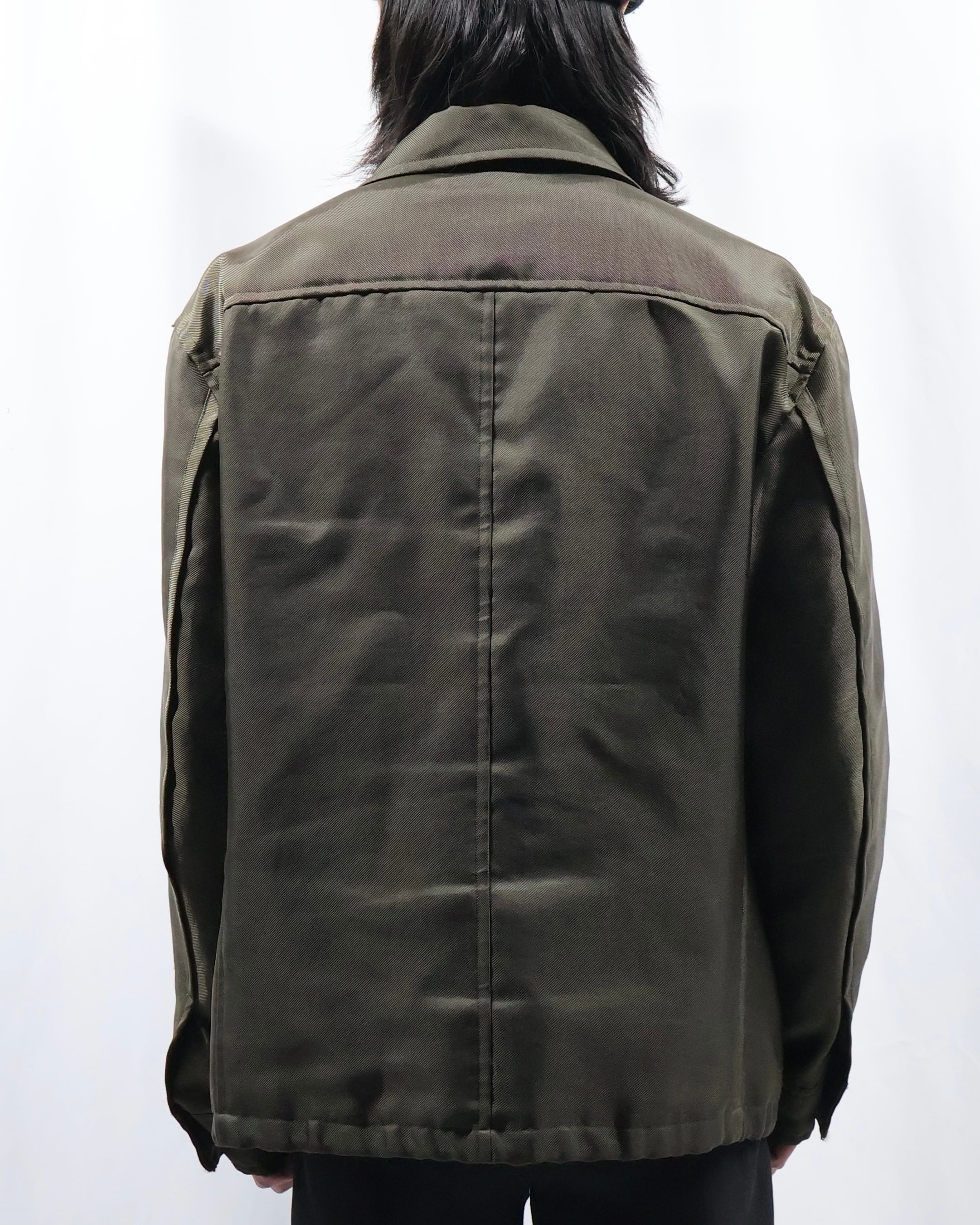 化繊で生み出す光沢感が、ワークな色味ながらも独特な雰囲気を演出してくれる一枚。サイズ感も良く、インナーで遊んでも良し、一枚でライトアウターとしてざっくり羽織ってもオシャレです。ドローコードもありシルエットの変化も楽しんでいただけます。