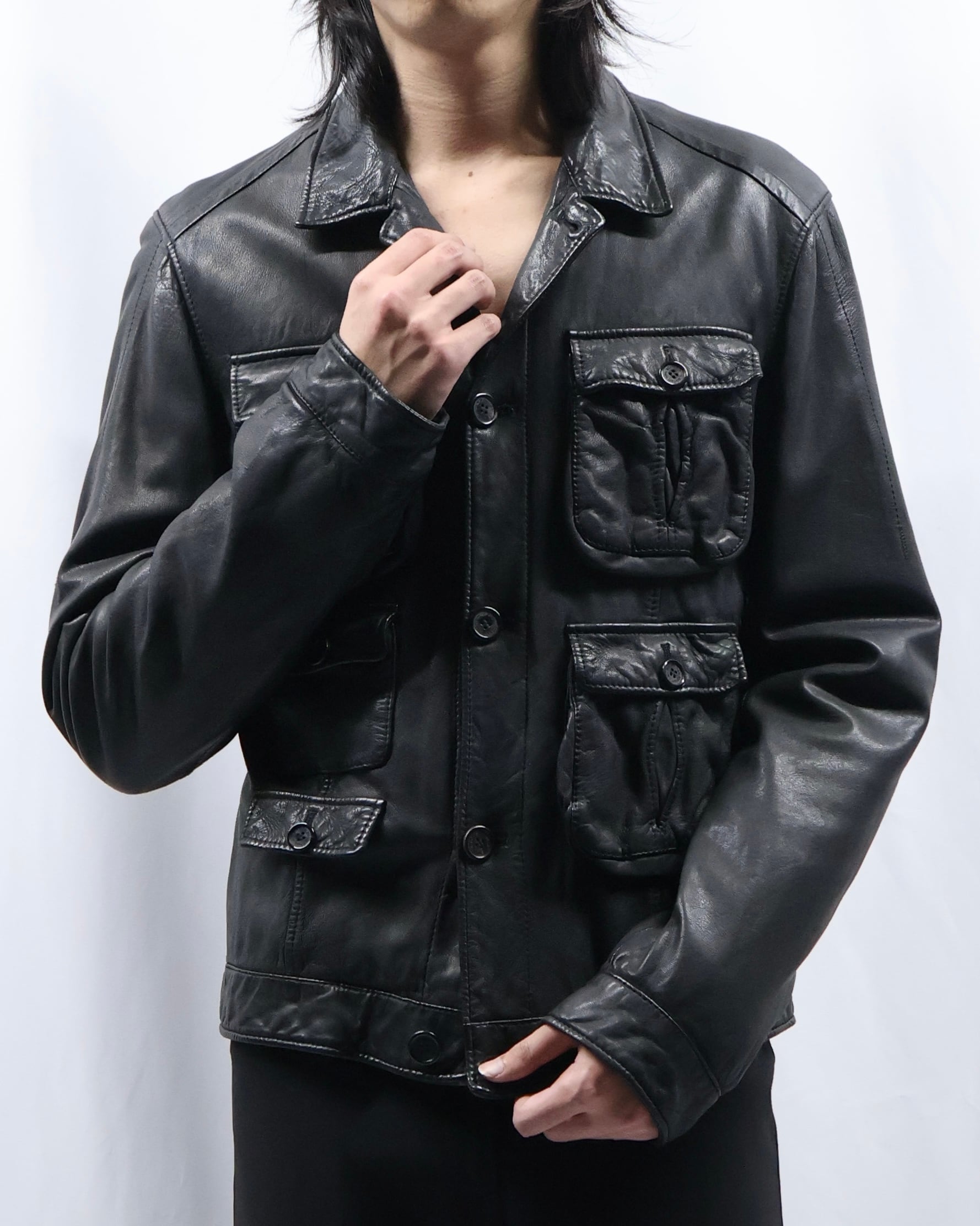 【NEIL BARRETT】Multi-pocket leather jacket