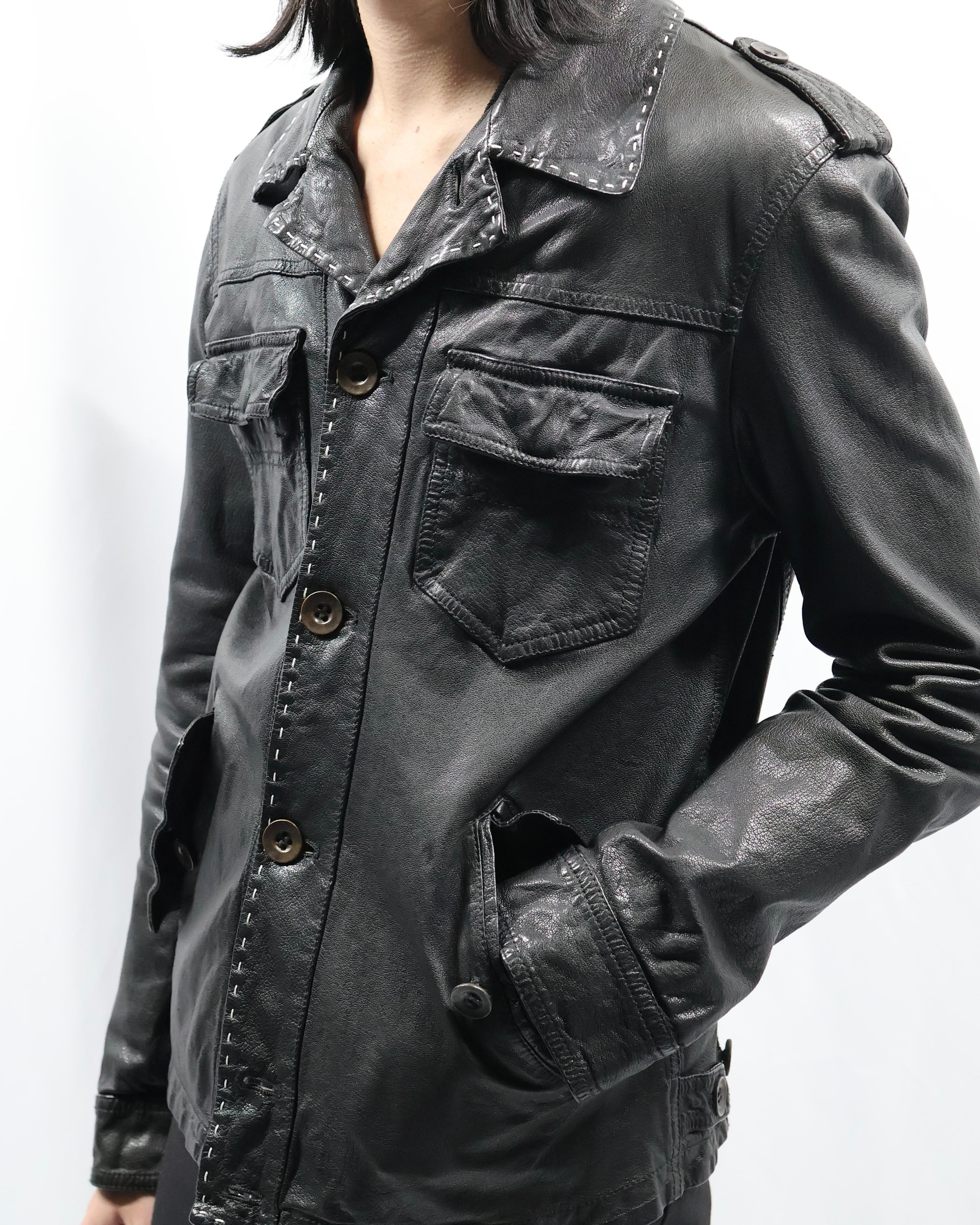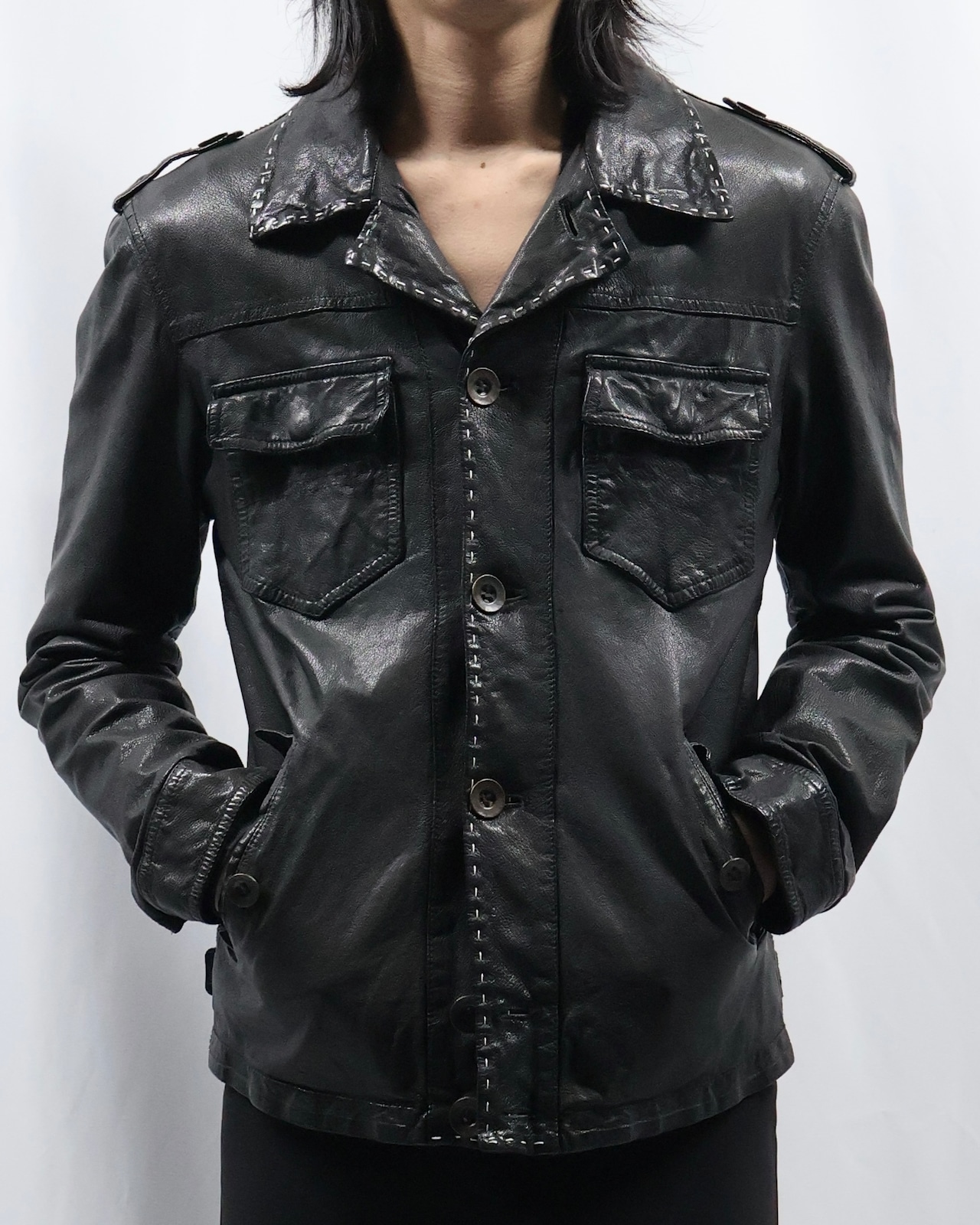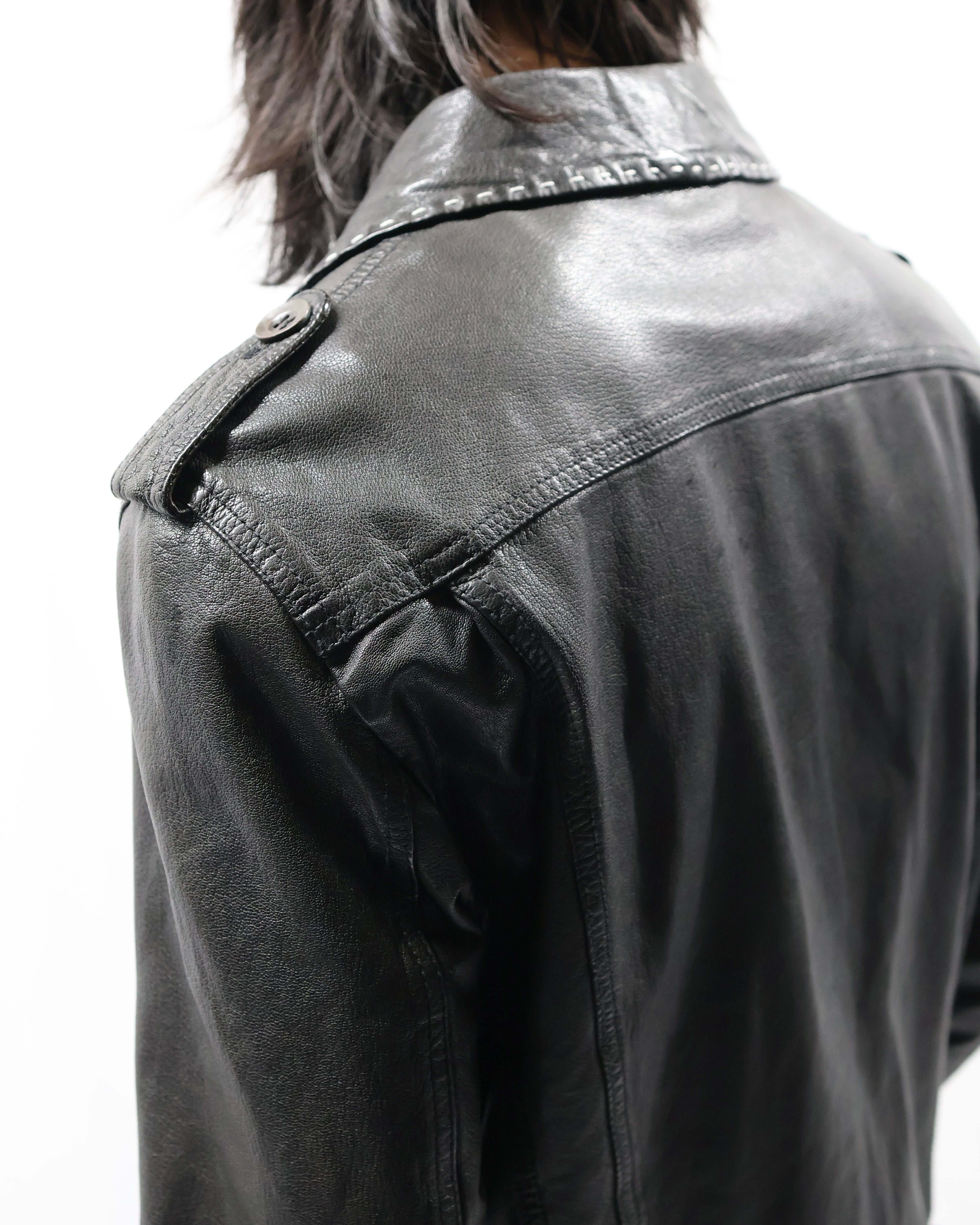 形や質感はしっかりとしたレザージャケットながらも、ステッチがいい抜け感を演出しており、仕立てのいいレザージャケットとしてはもちろん、エッジの効いたファッションにも持ってこいです。