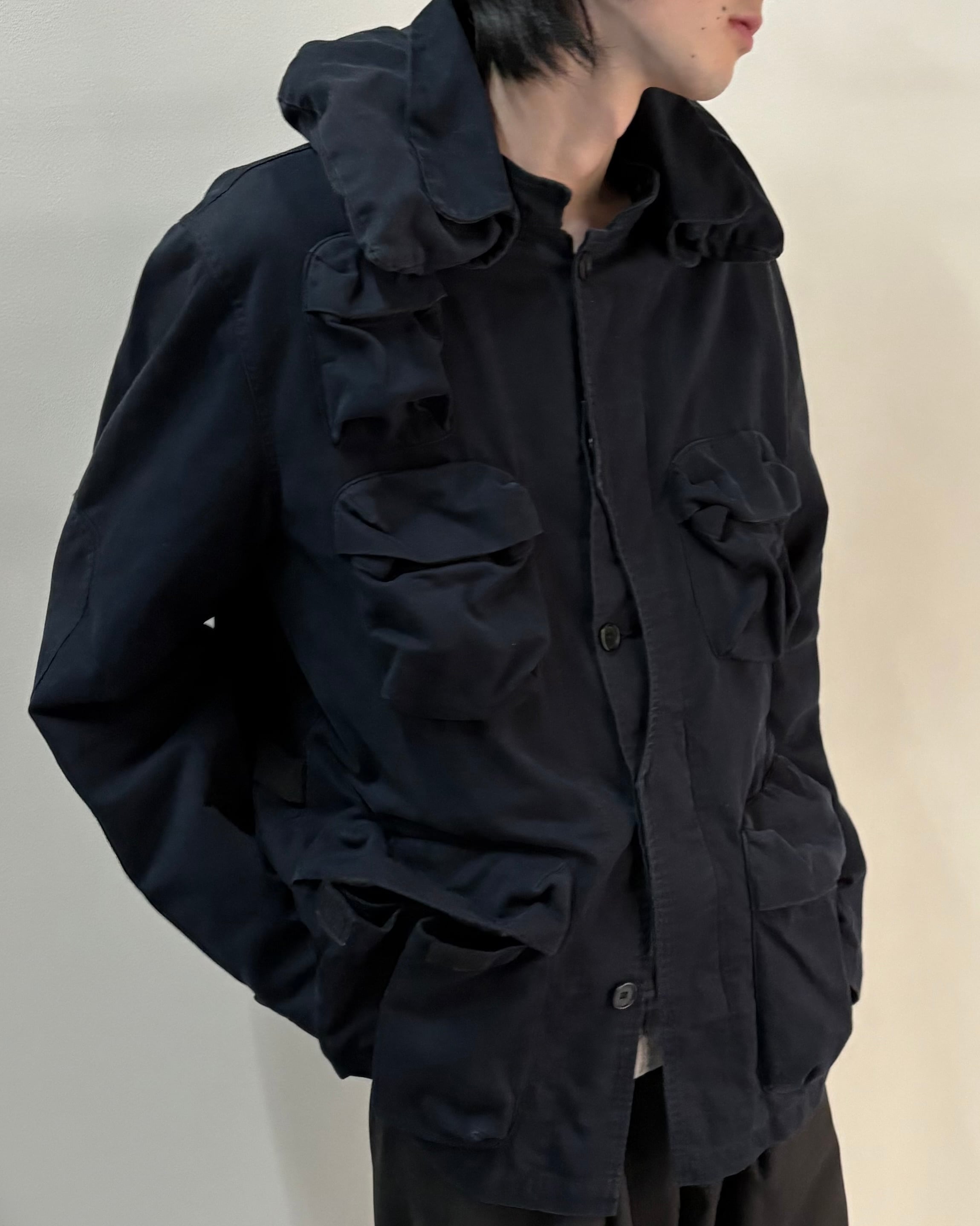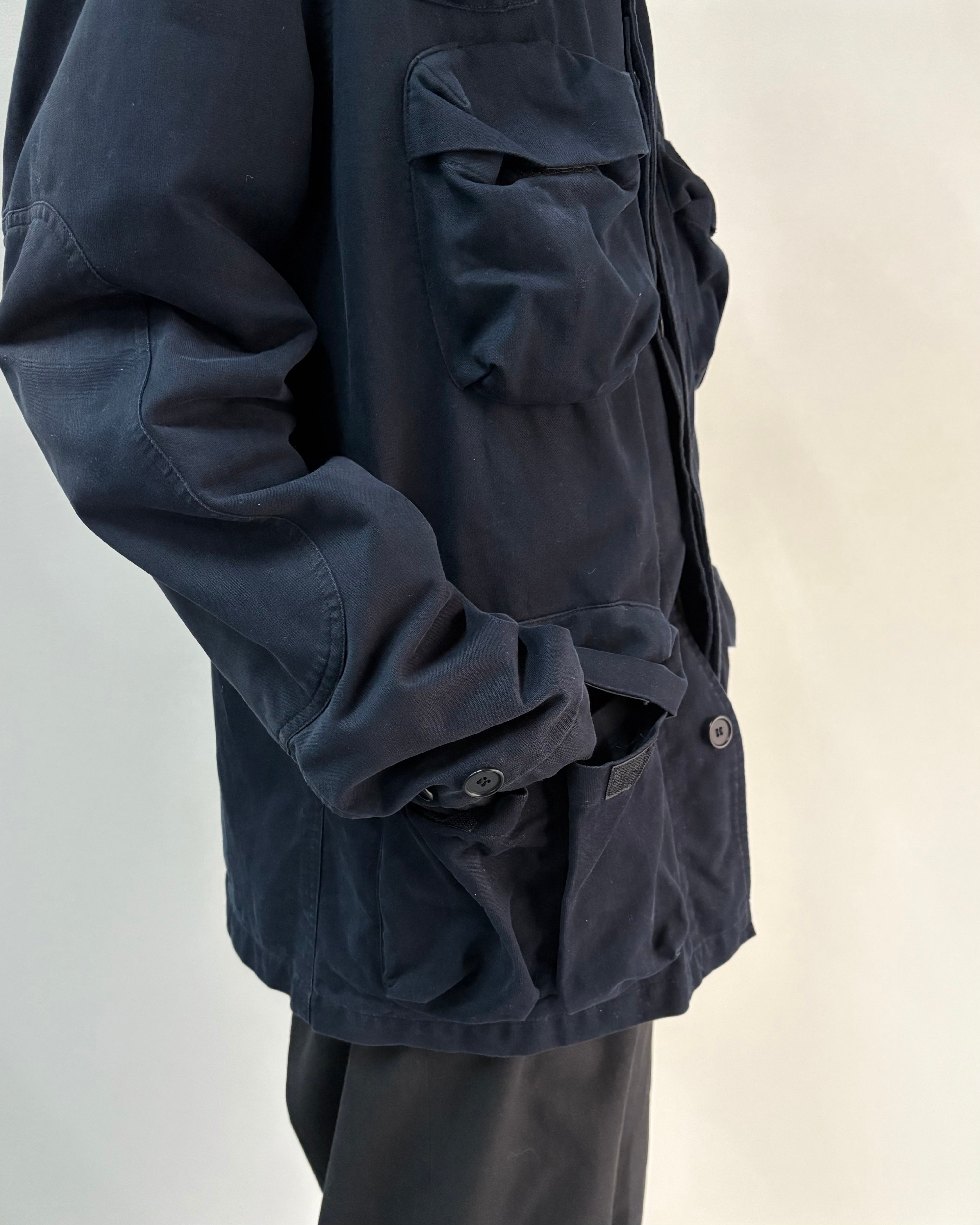 90s〜00sのHELMUT LANGのミリタリー×ミニマリズムを象徴する一着。デザイン性がありながらもインナーを選ばず、シャツやニット、テック寄りのアイテムとも好相性。