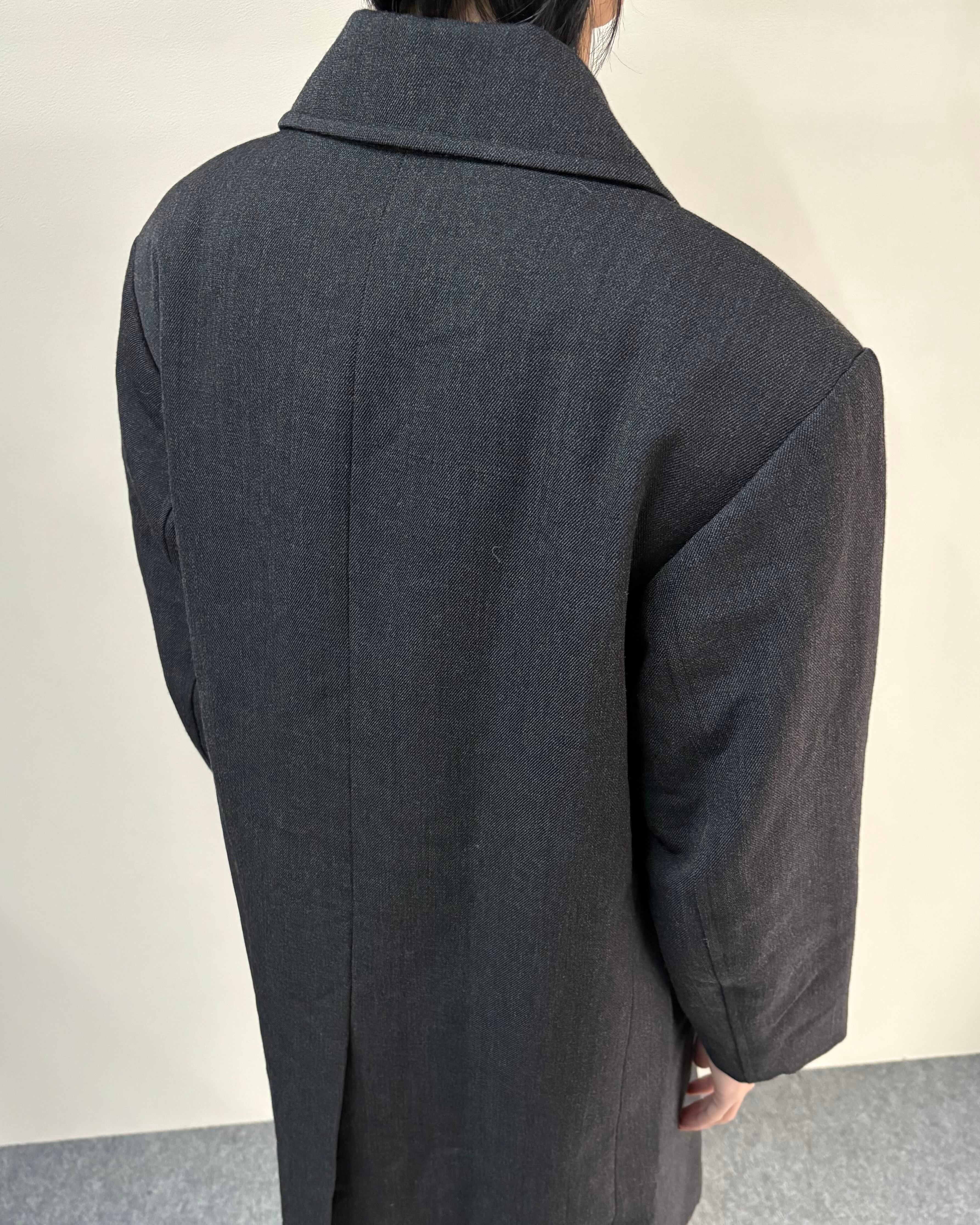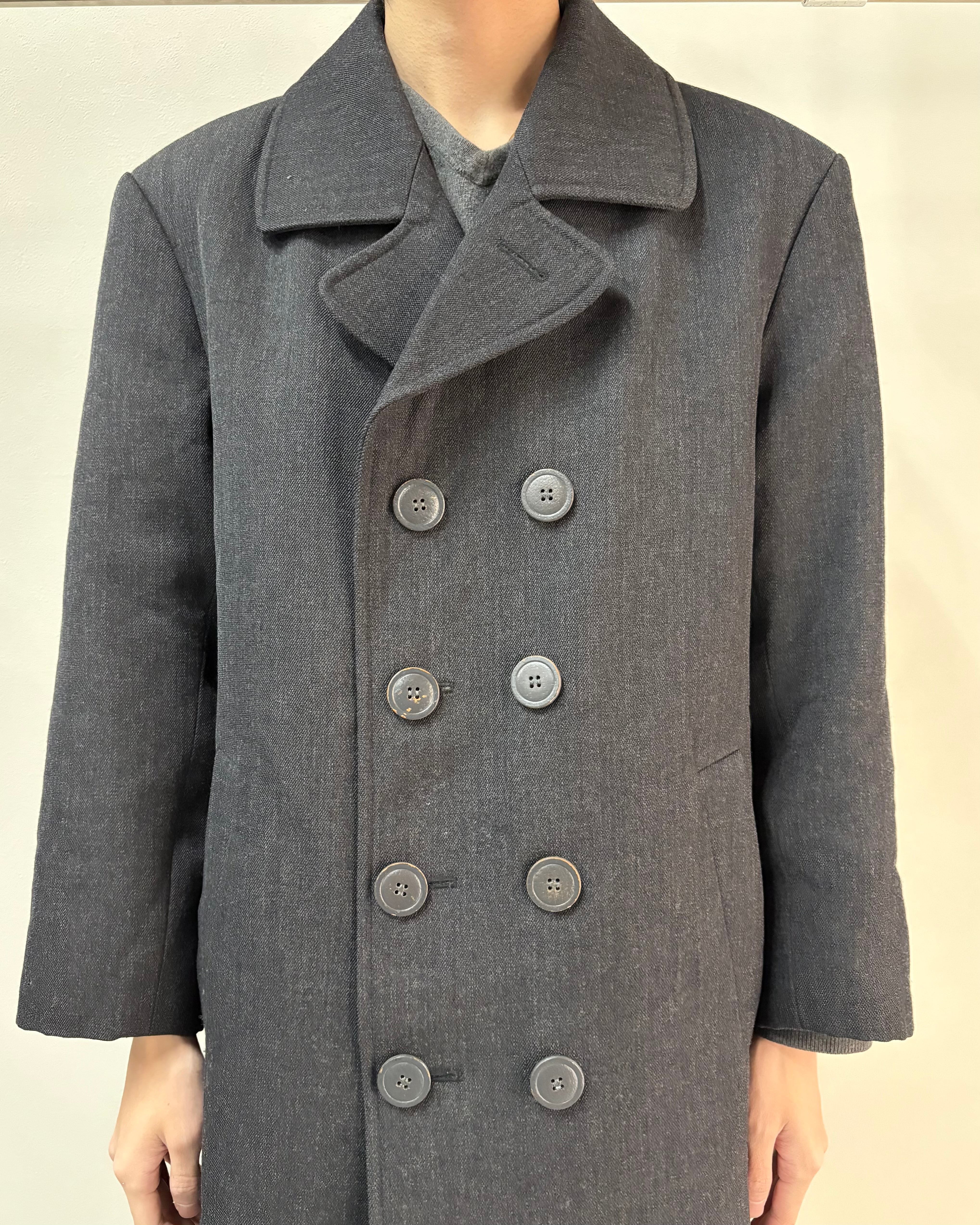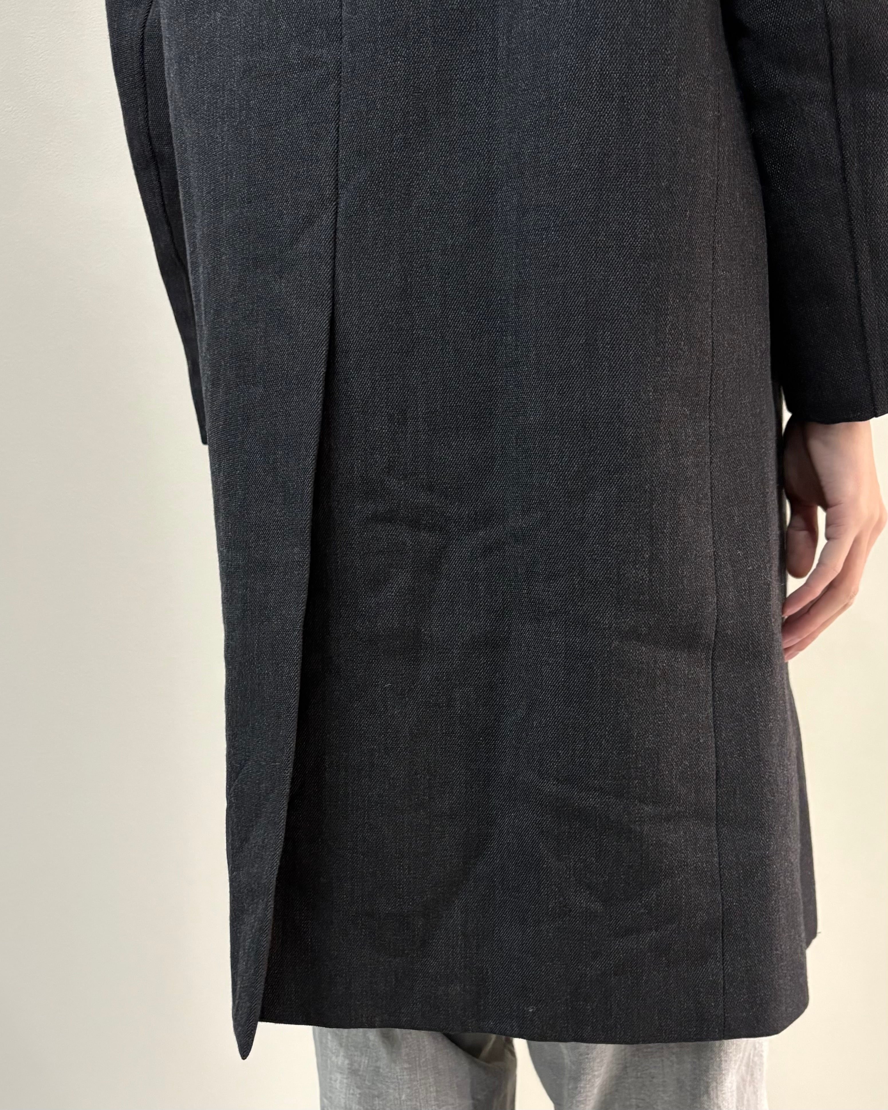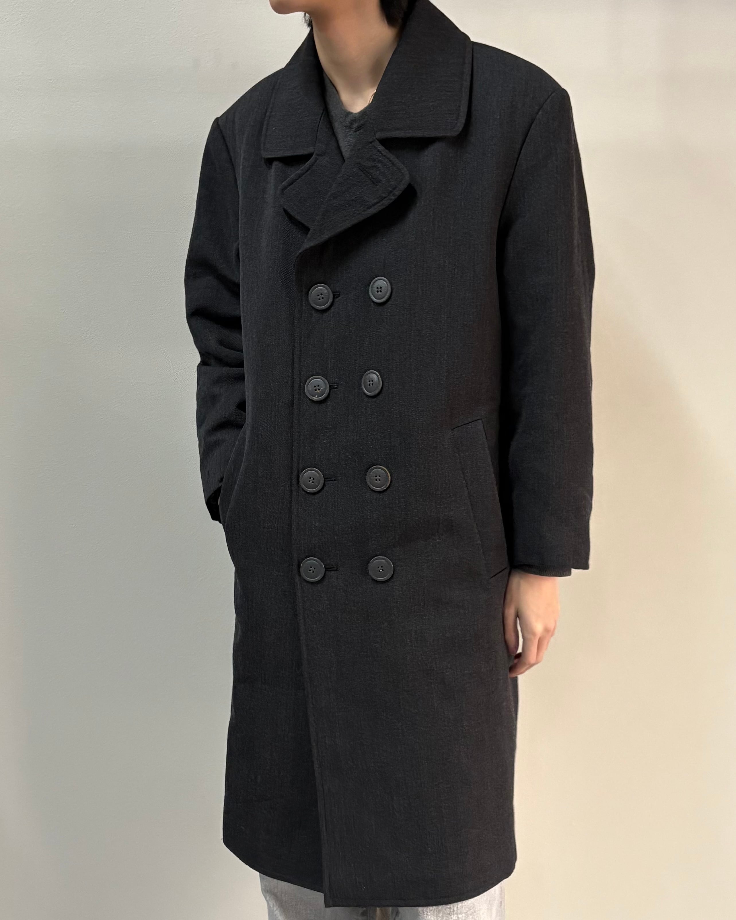 ドリスらしい端正なテーラリングが際立つダブルブレストウールコート