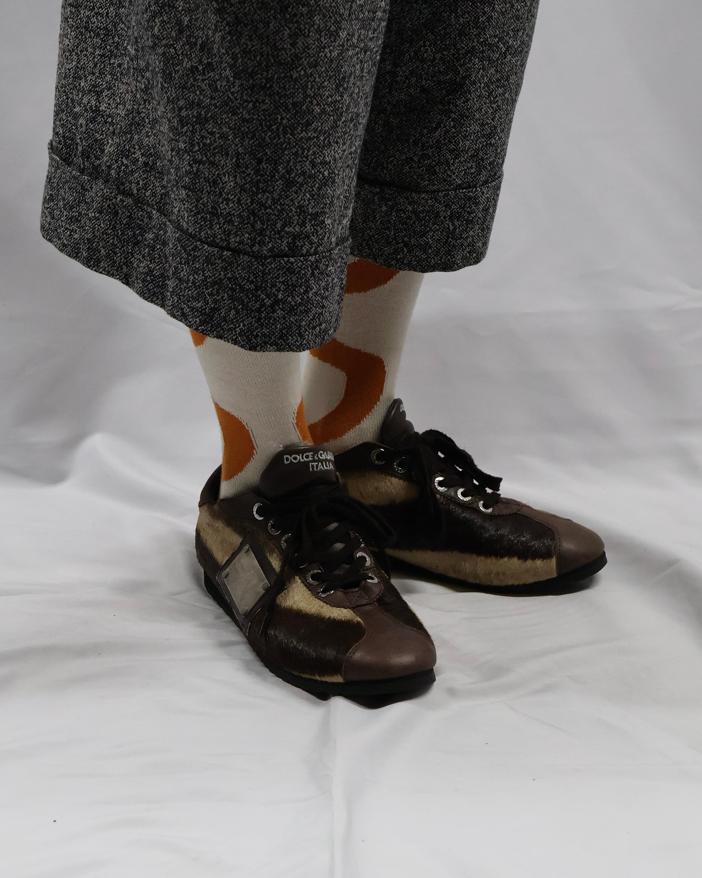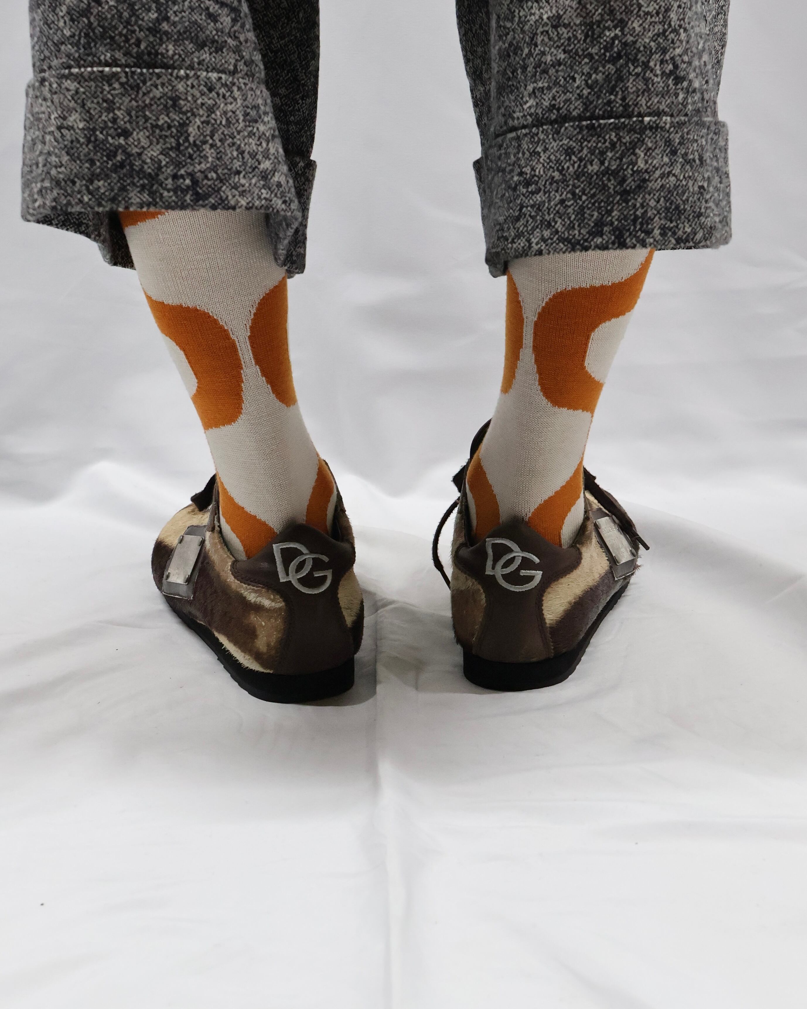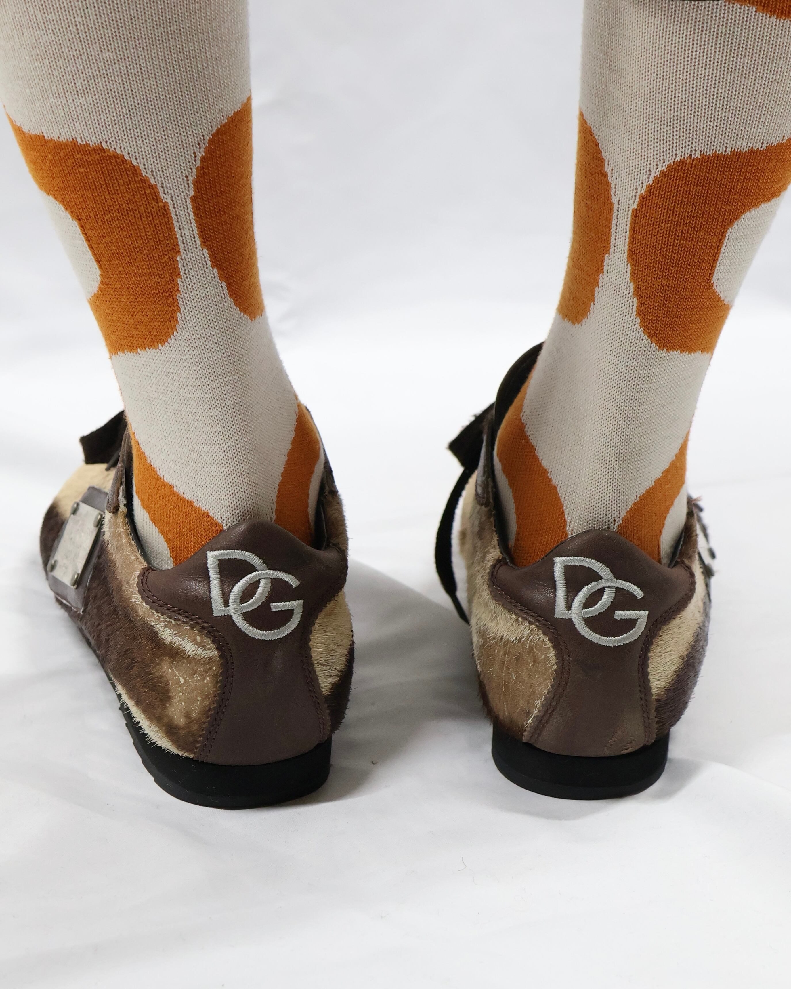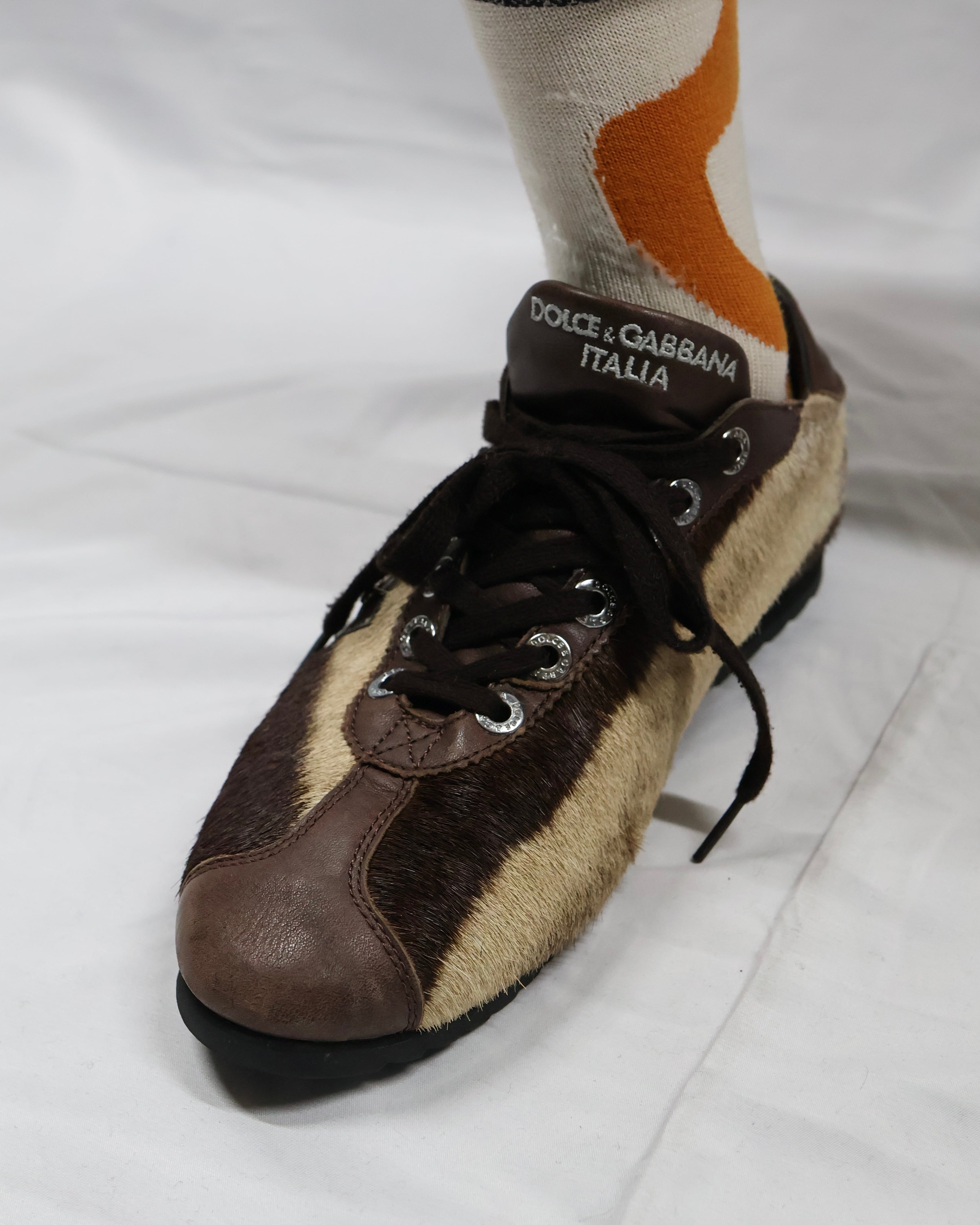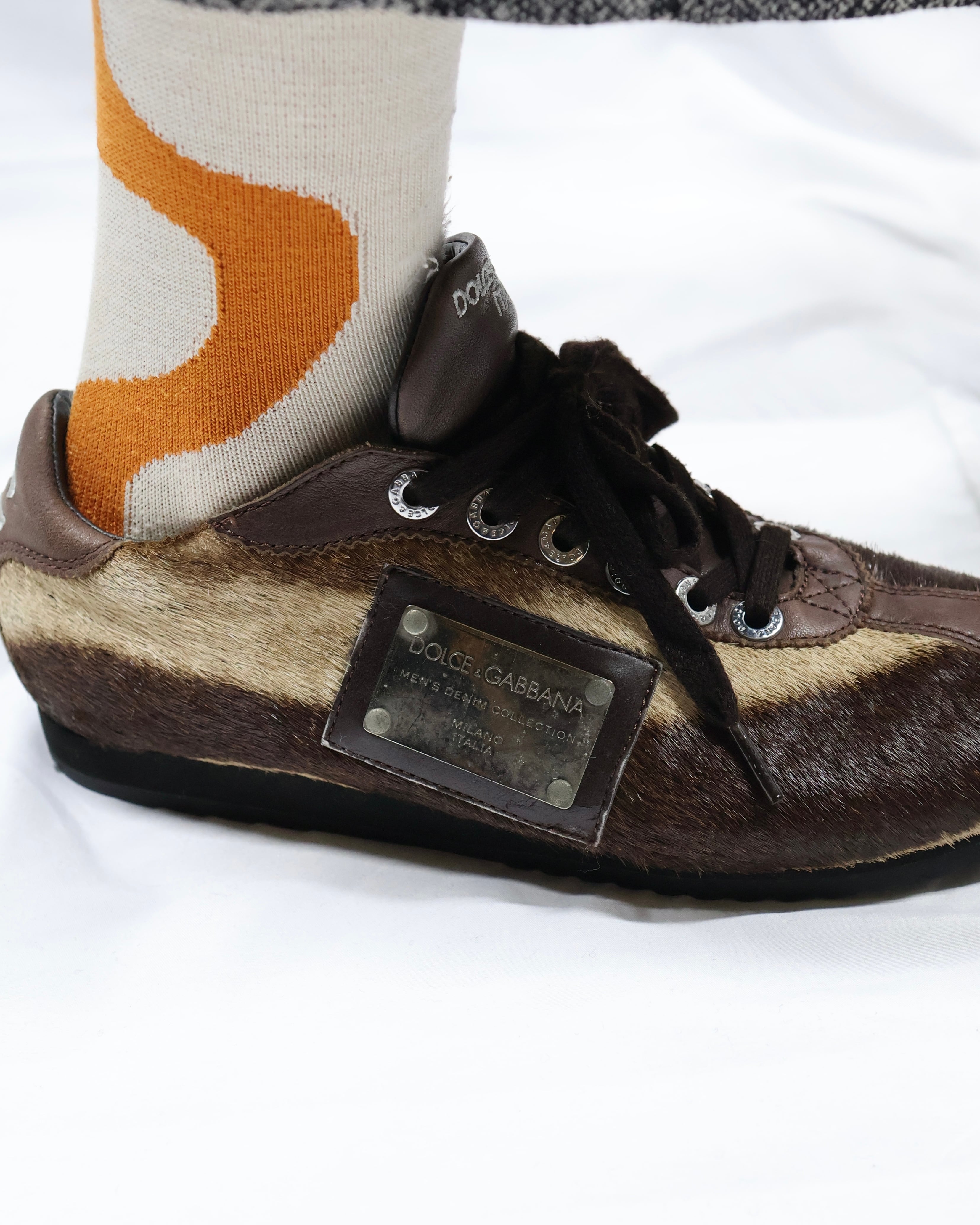 キレイな毛足で、色合いも程よくゴージャス、シェイプも美しい、オールシーズンで履けるスニーカーです。踵のデザインが程よく抜け感を出してくれますので、カジュアルなお洋服にもクラシックな格好のはずしに使っていただいてもgoodです。