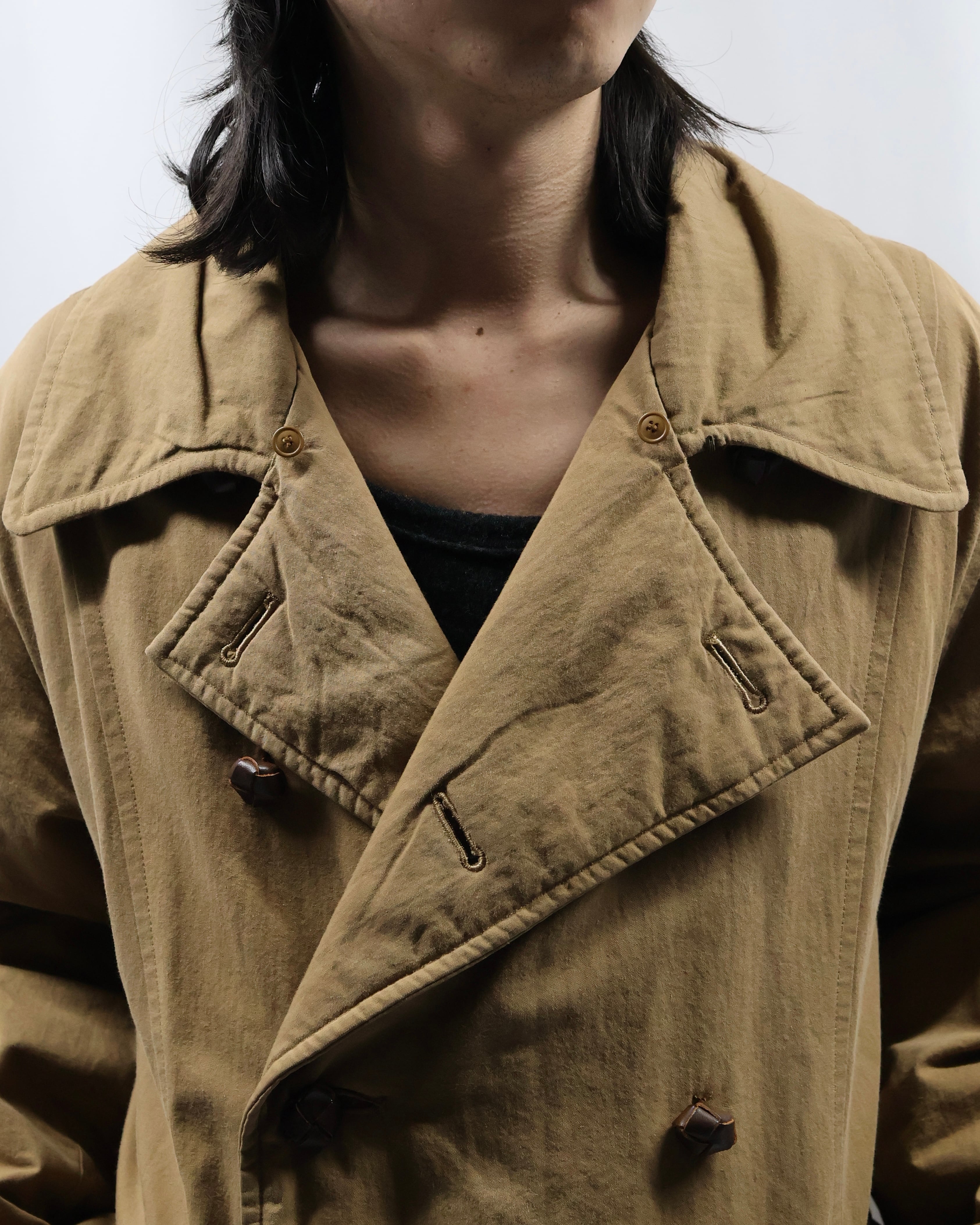 取り外し可能のボアカラーがついたオーバーコート。適度な厚さ、サイズ感がファッションと機能性の両面を底上げしてくれます。ミリタリーに仕上げるもよし、カジュアルに合わせていただくのもカッコよく、様になります。