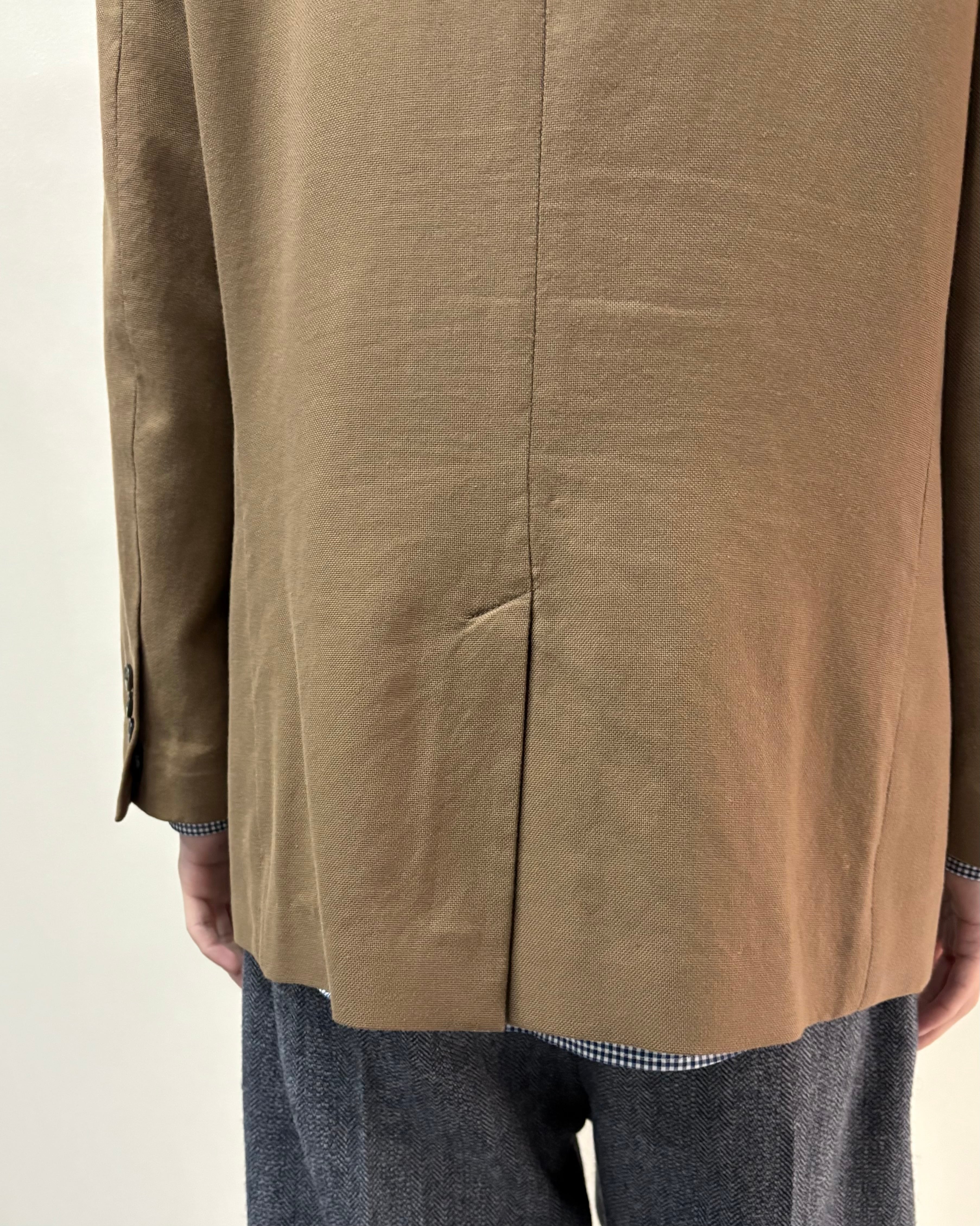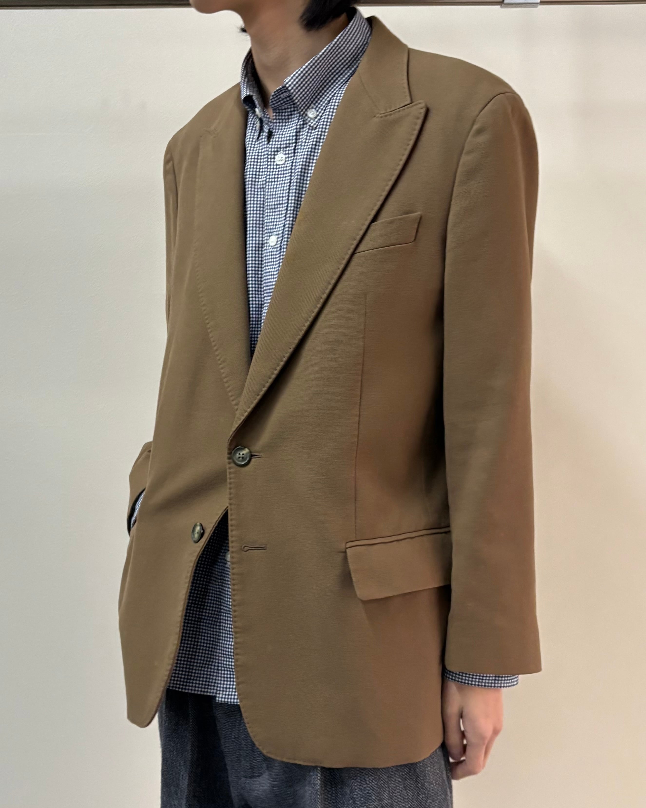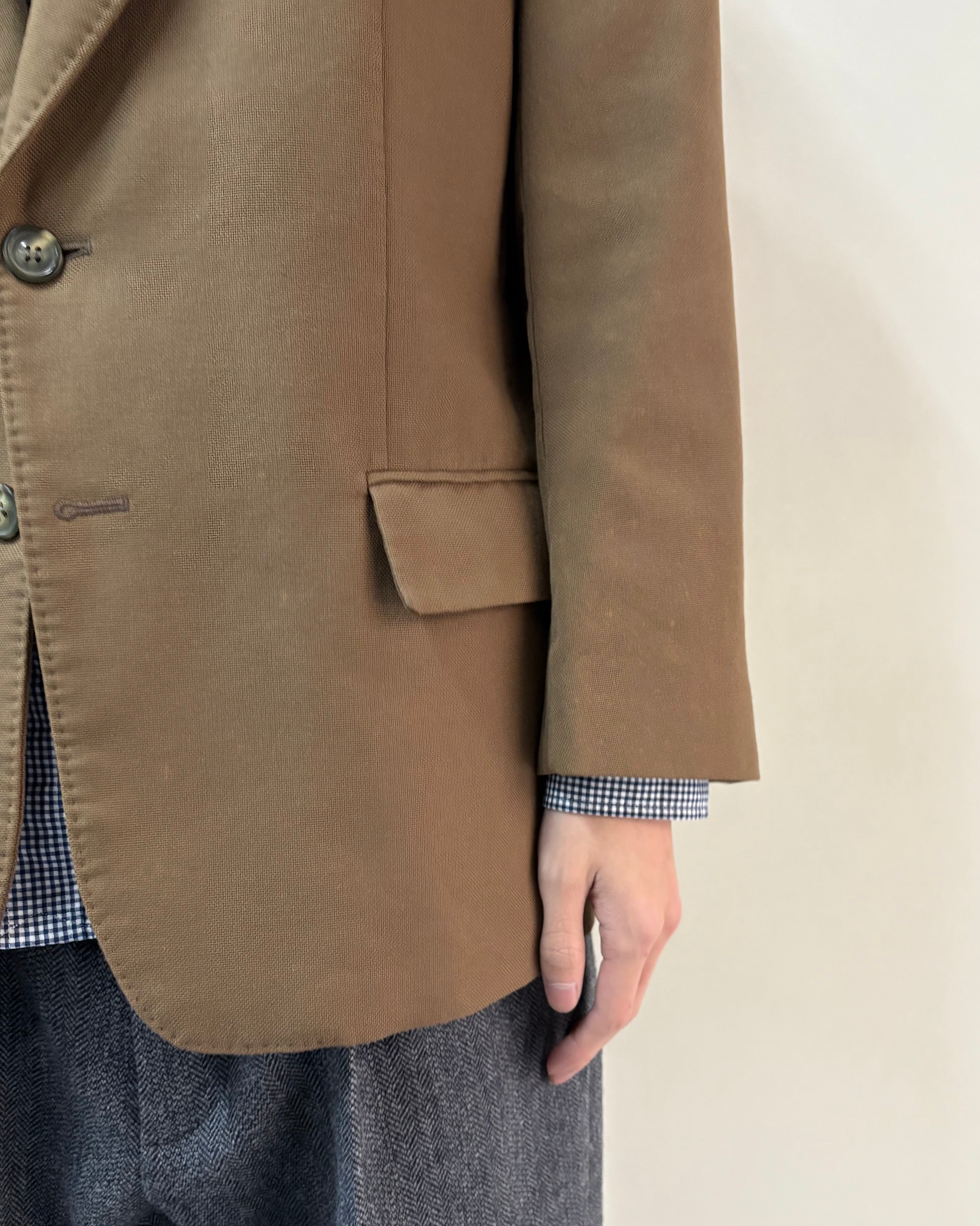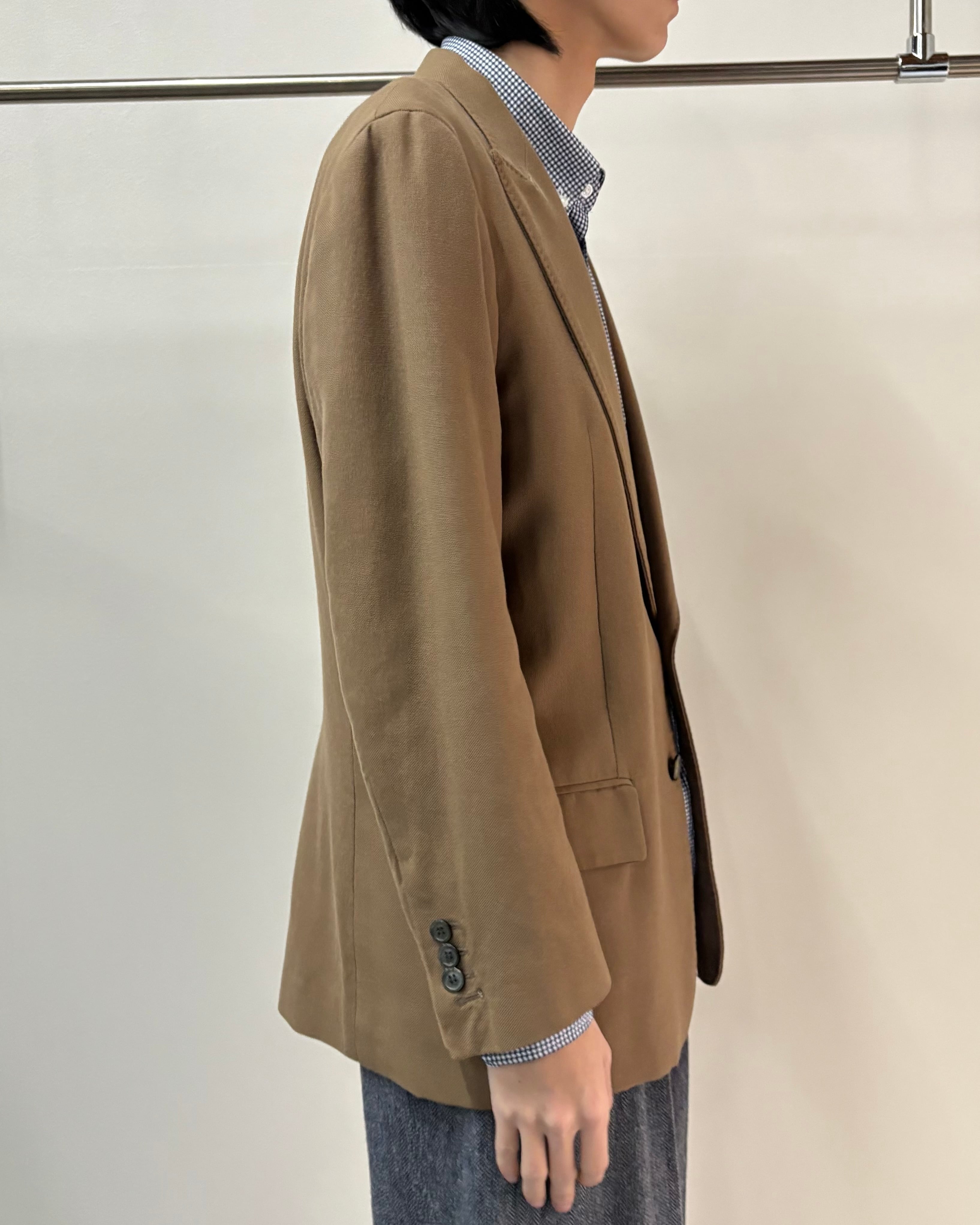 落ち着いたキャメルブラウンカラーに、端正なシルエットとミニマルなディテールを掛け合わせたタイムレスな一着。