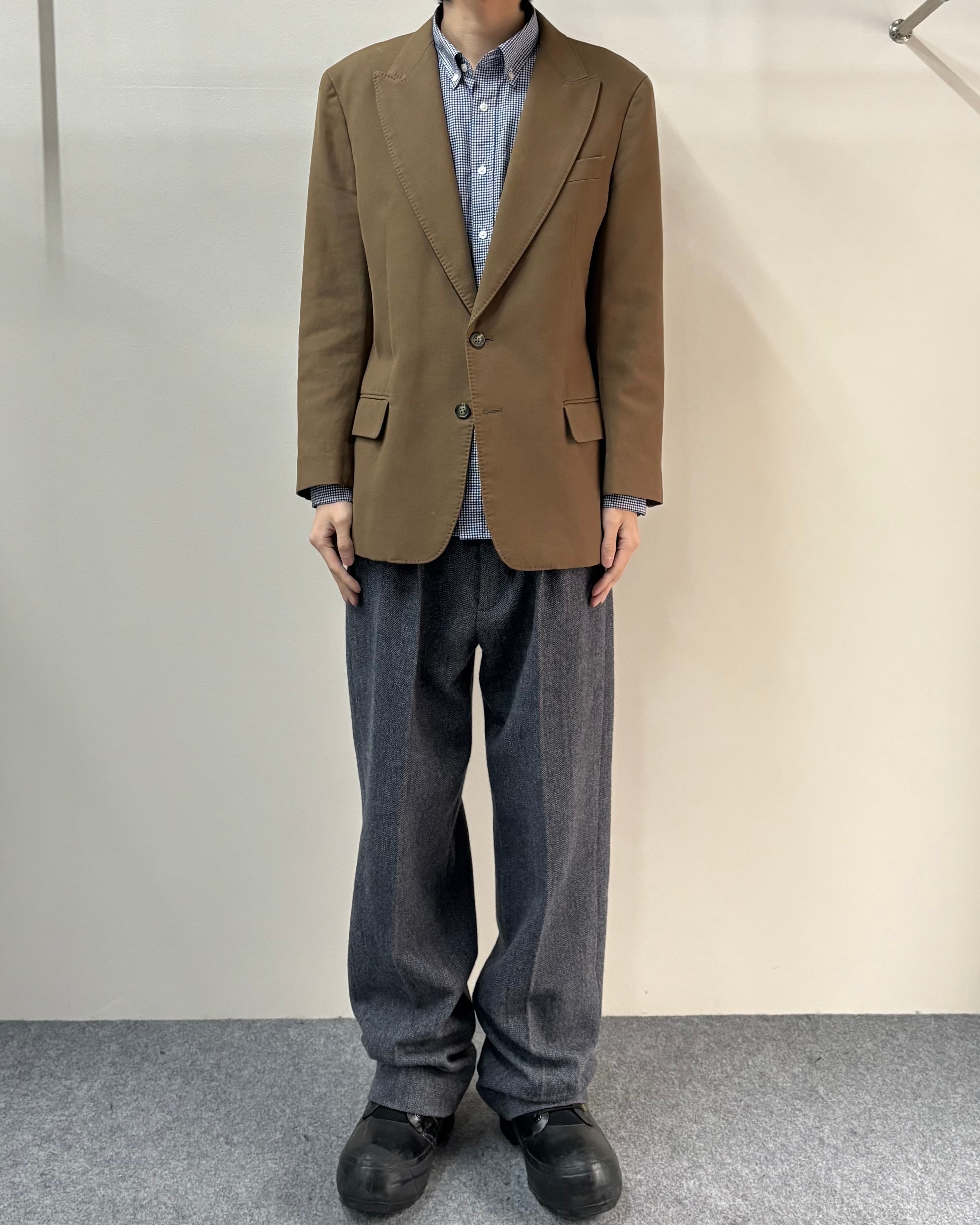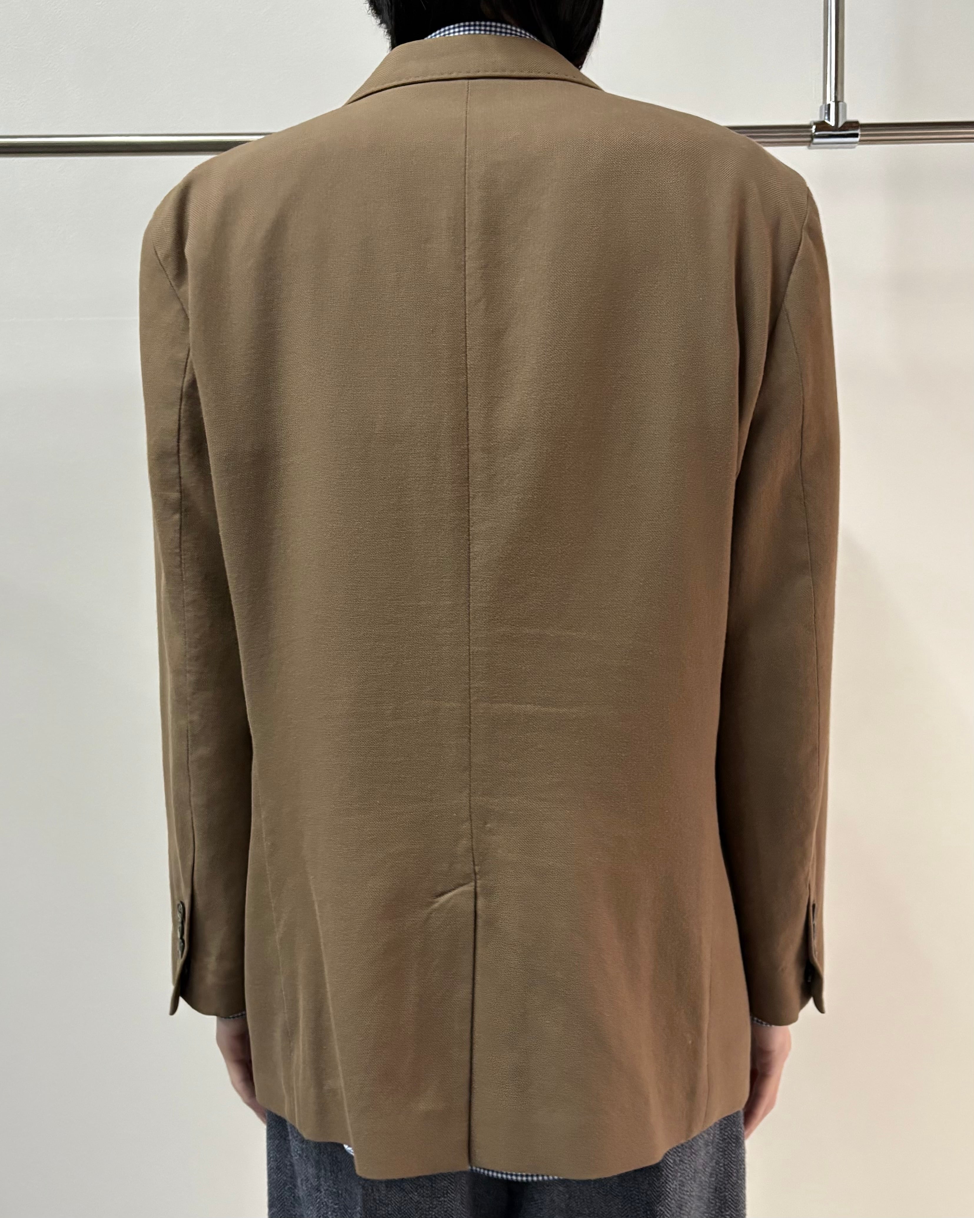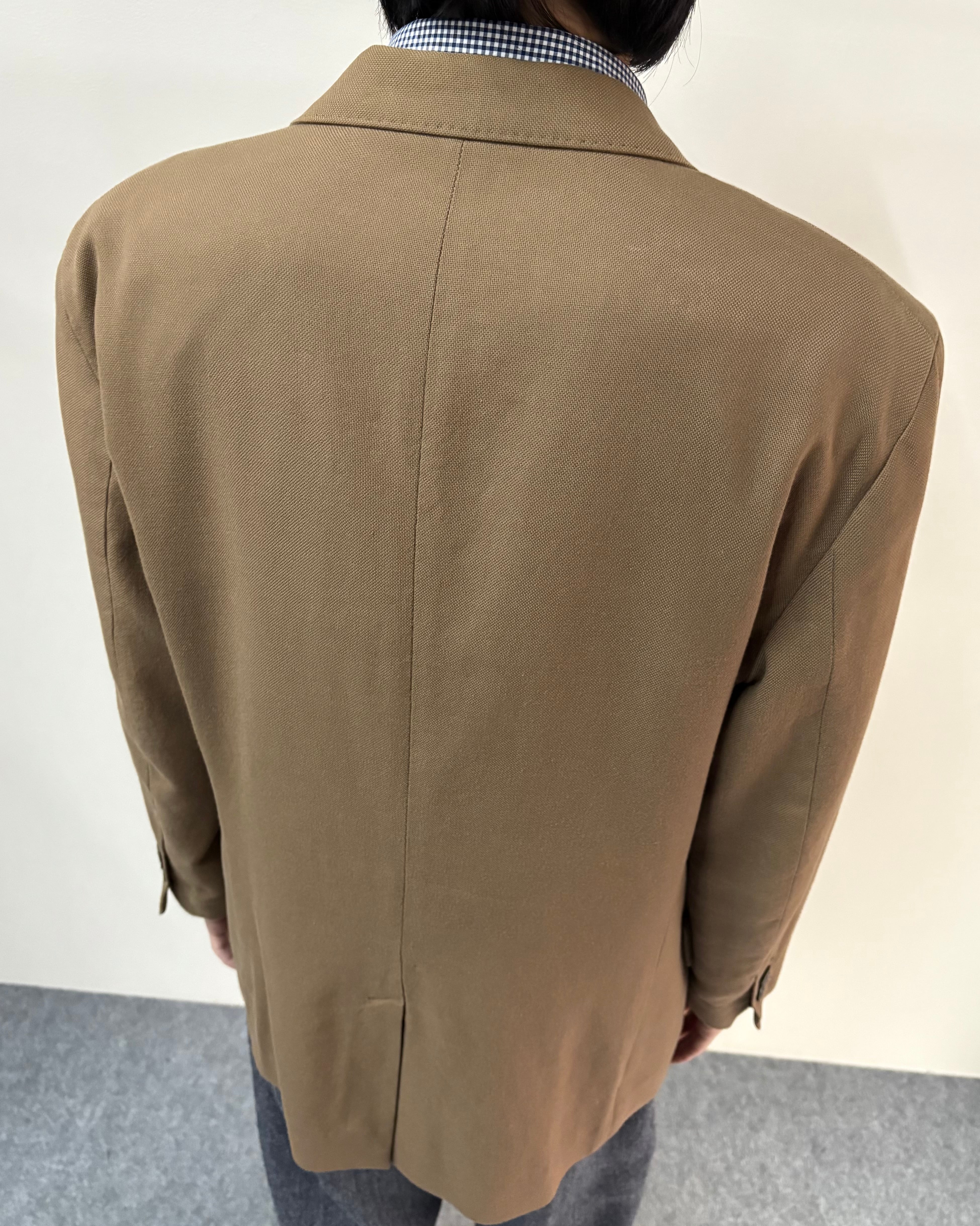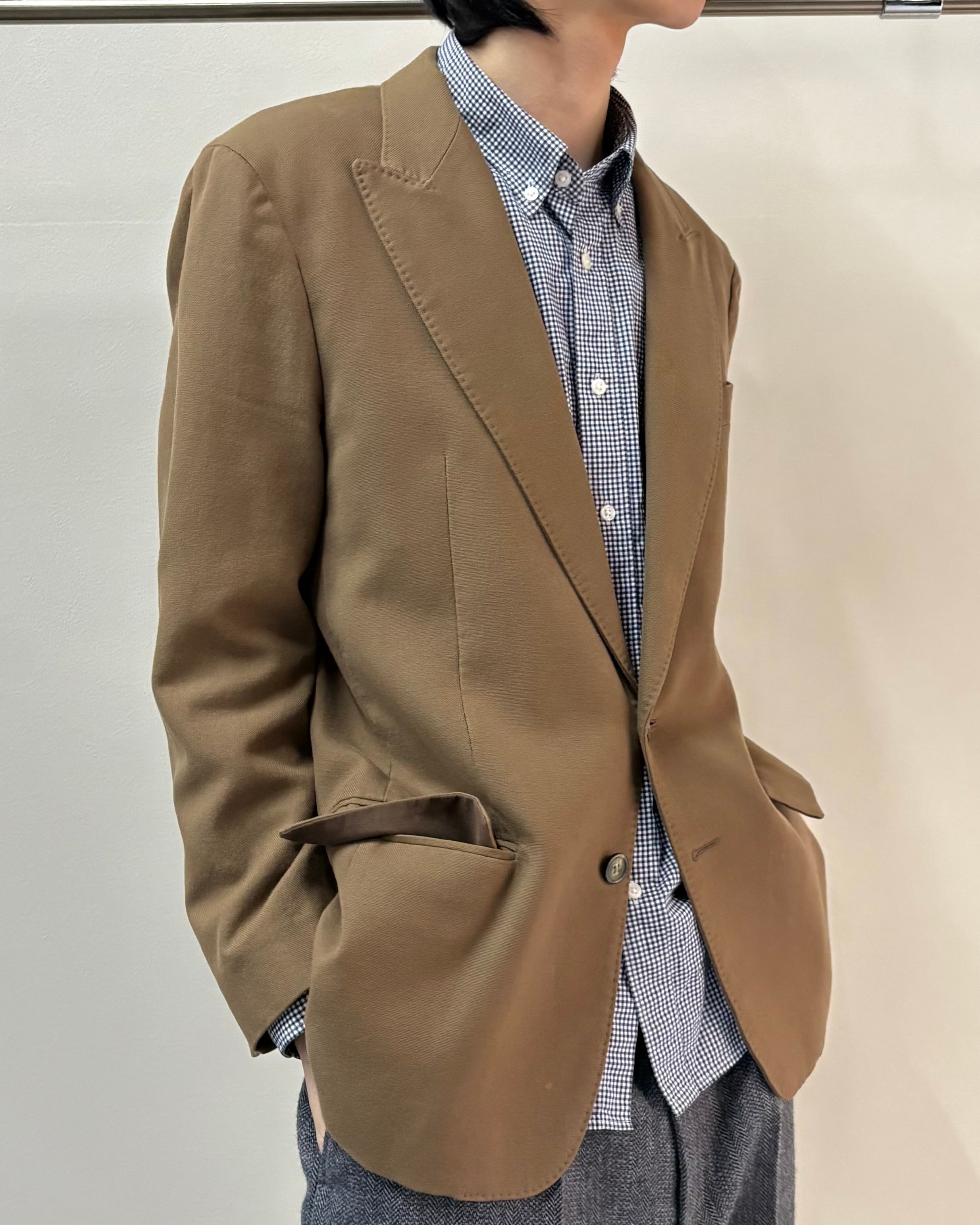 落ち着いたキャメルブラウンカラーに、端正なシルエットとミニマルなディテールを掛け合わせたタイムレスな一着。