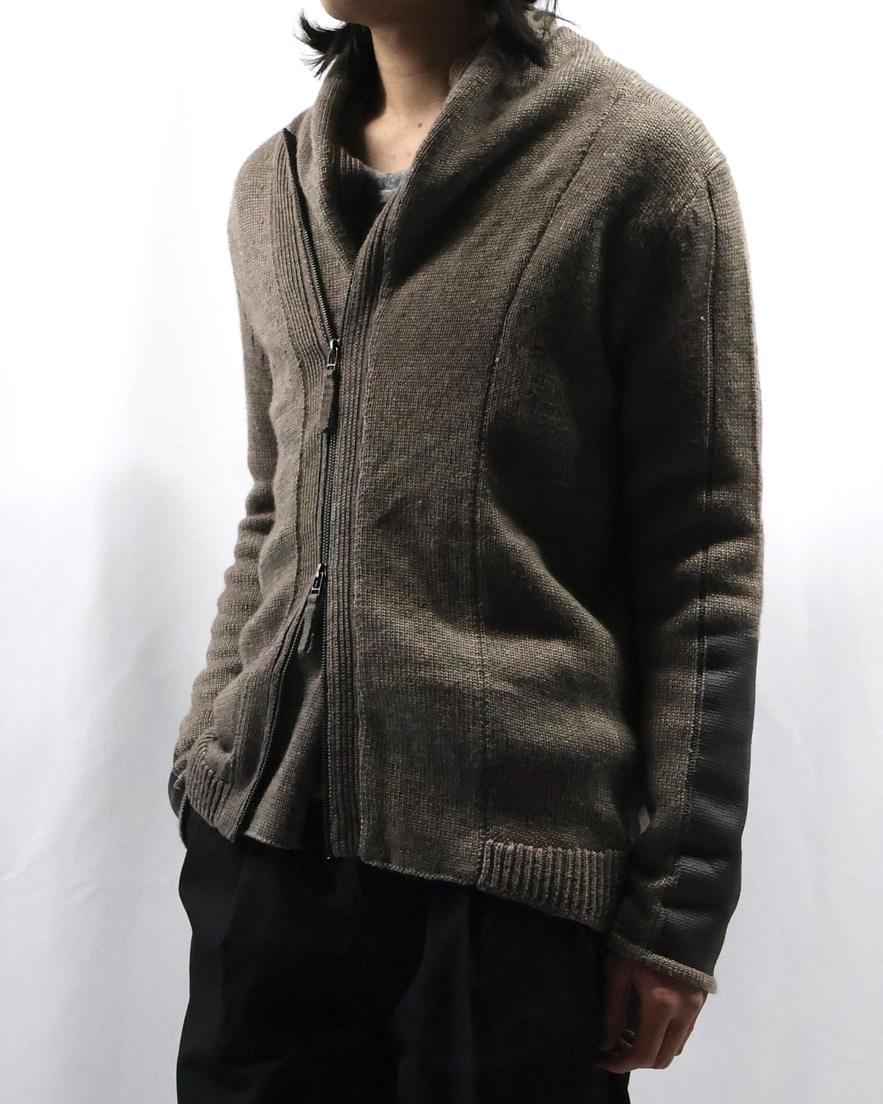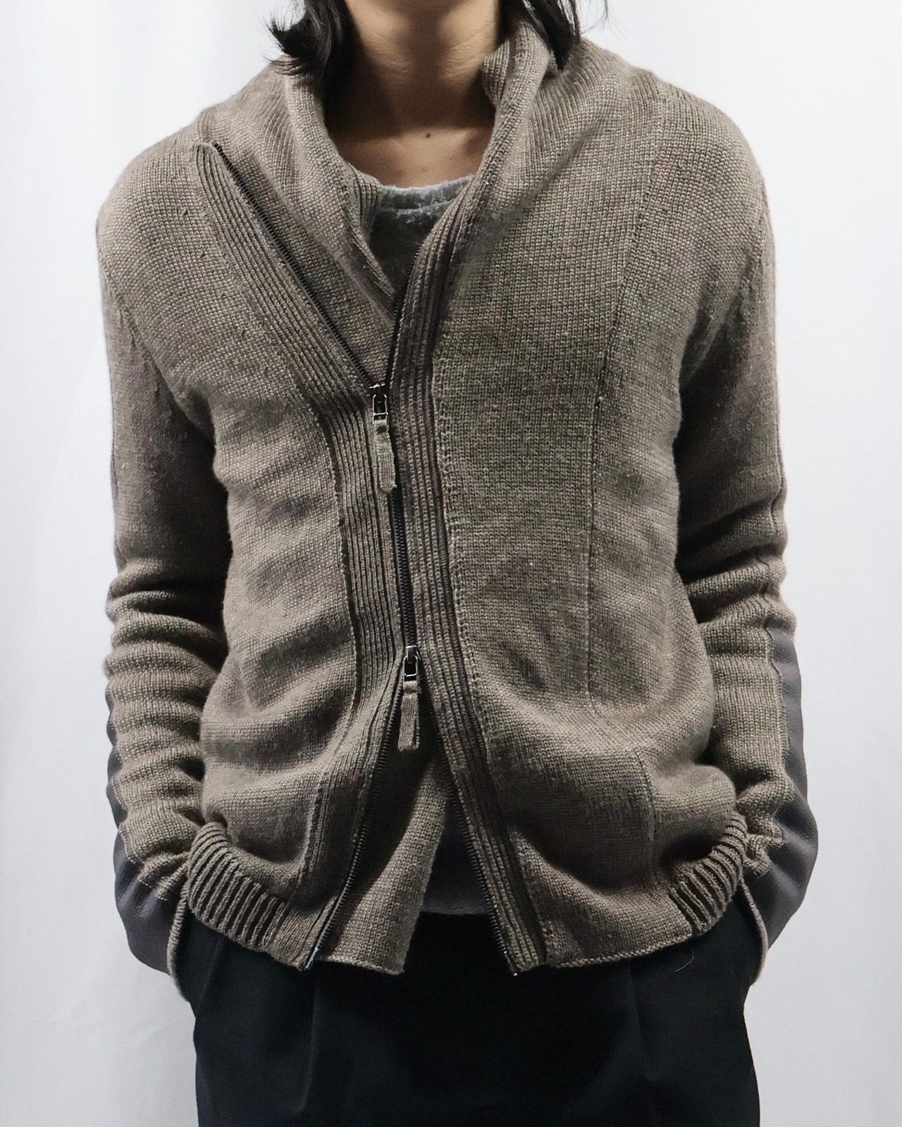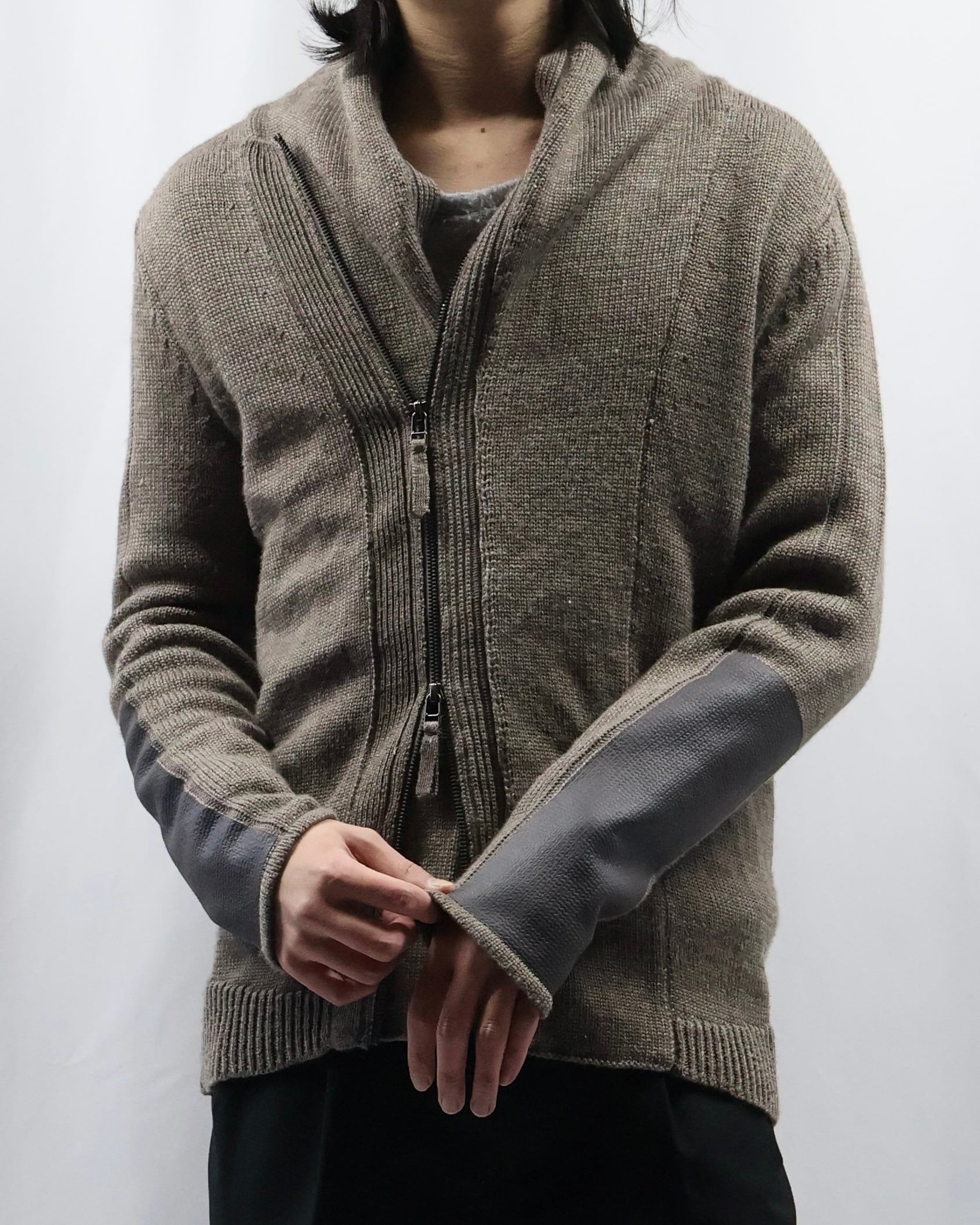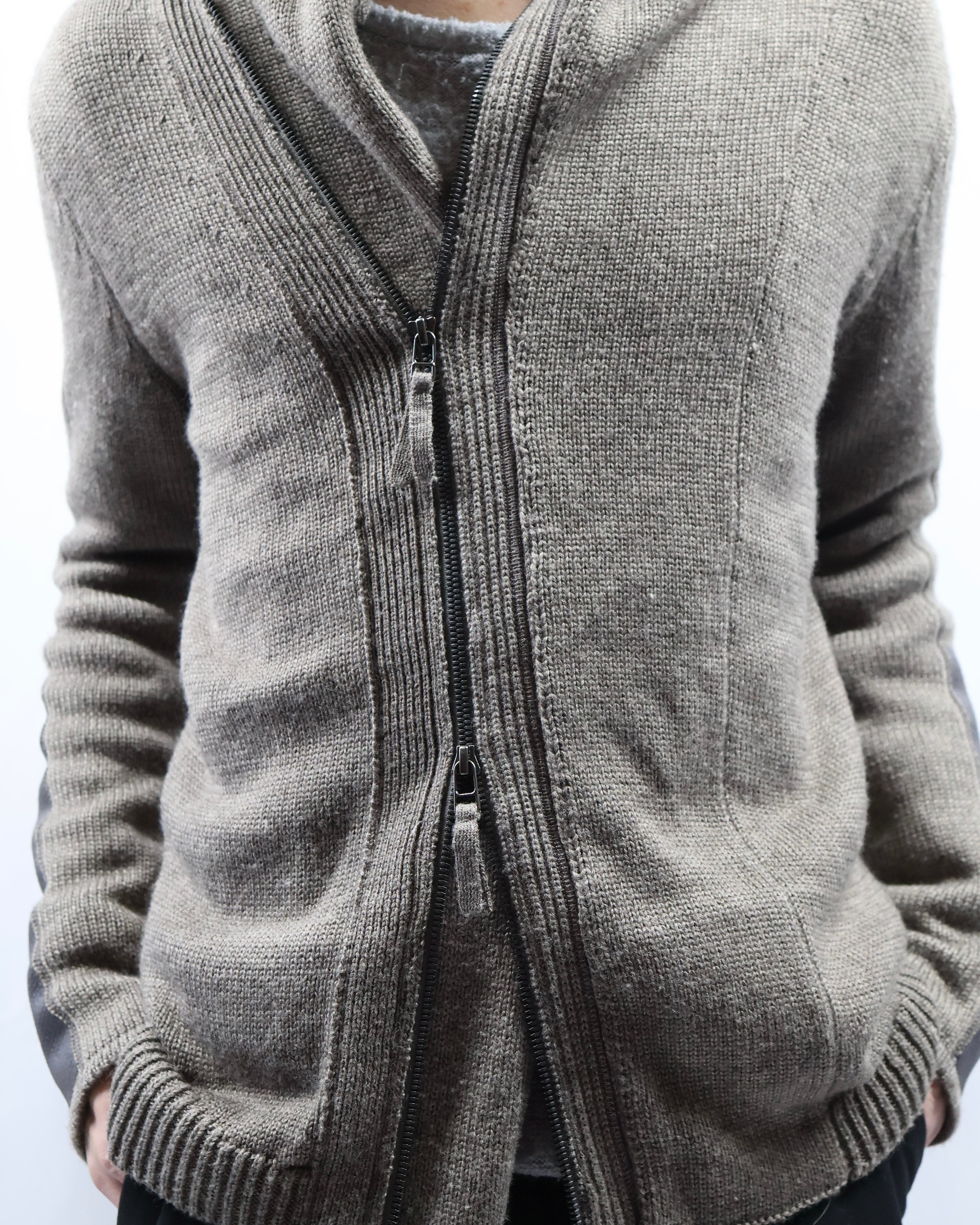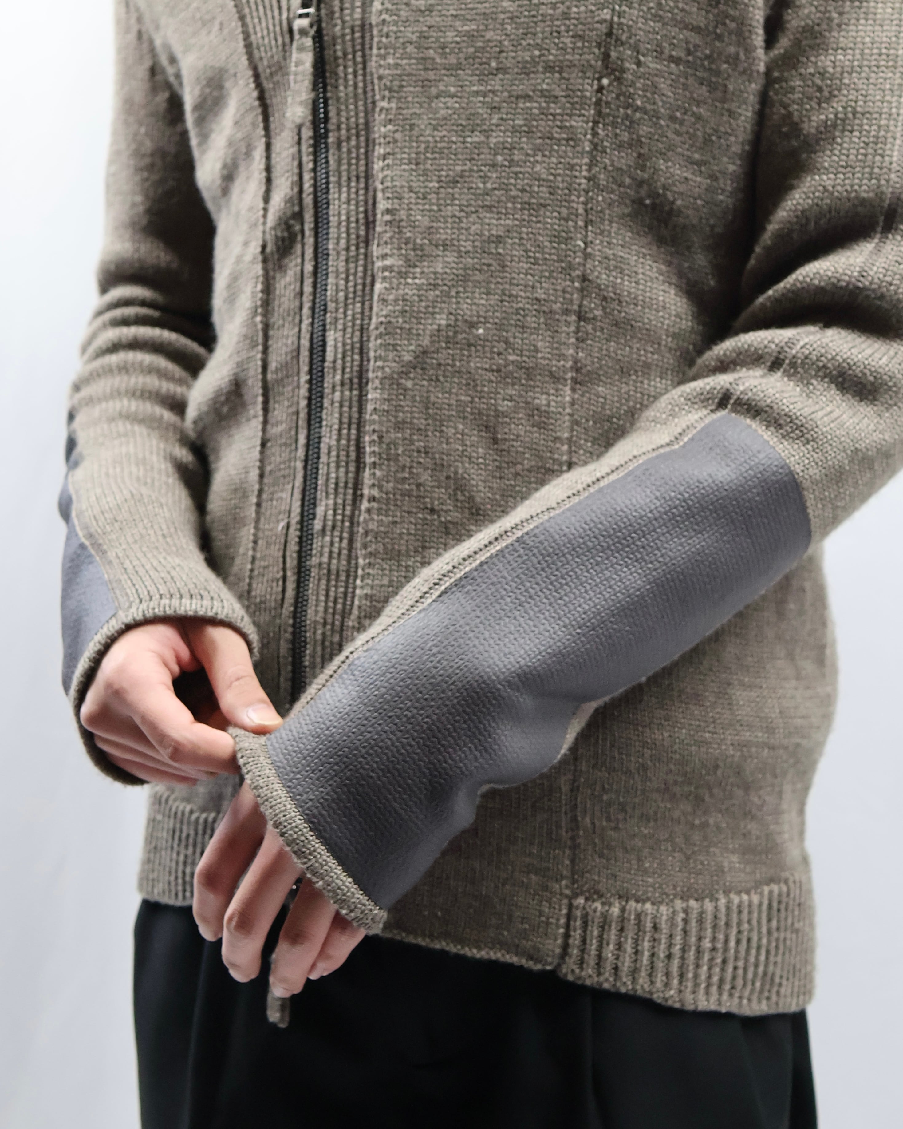 リブパッチデザインが特徴的なダブルジップニット