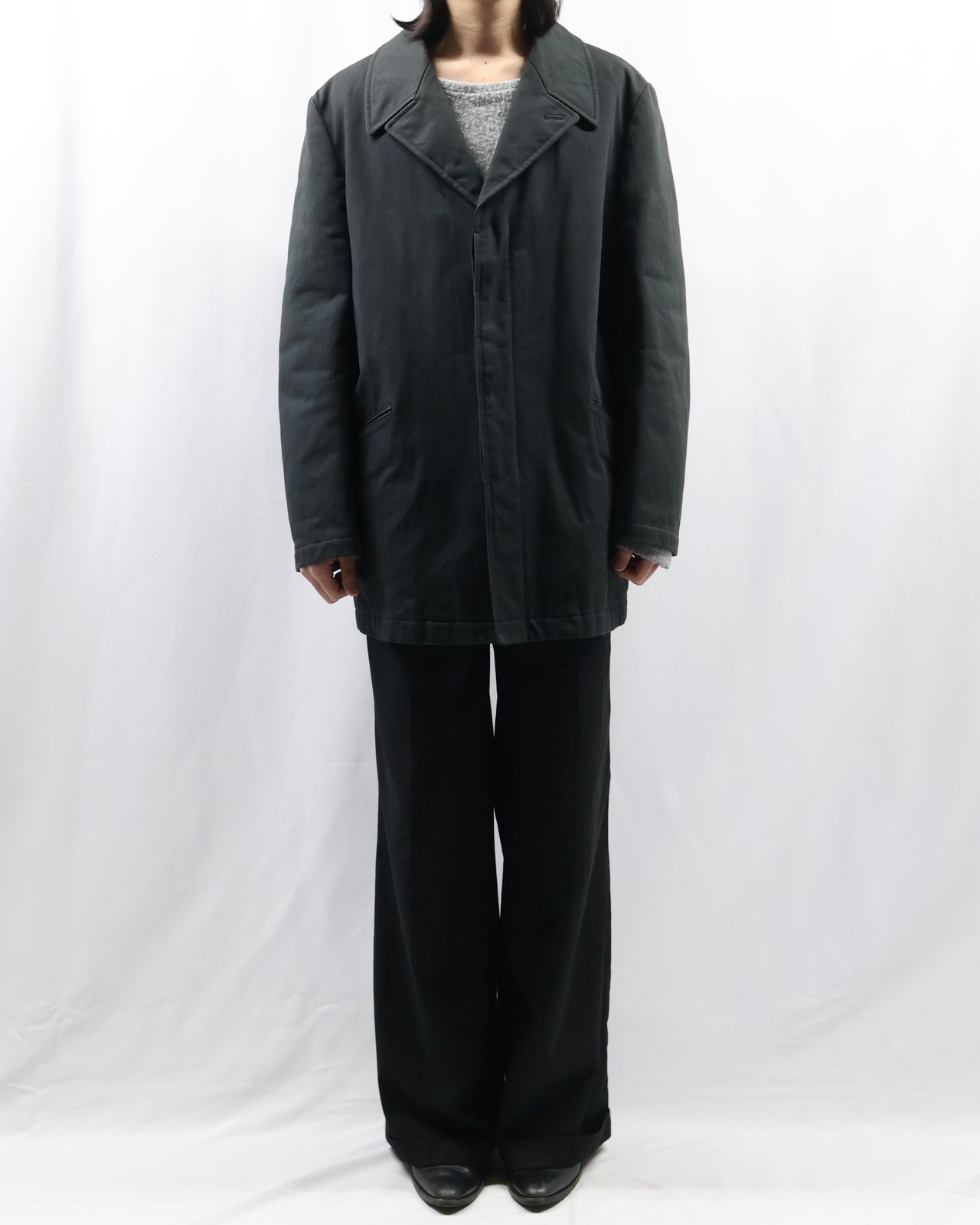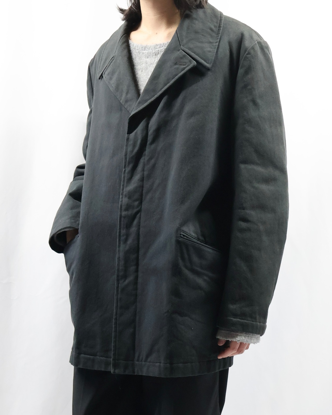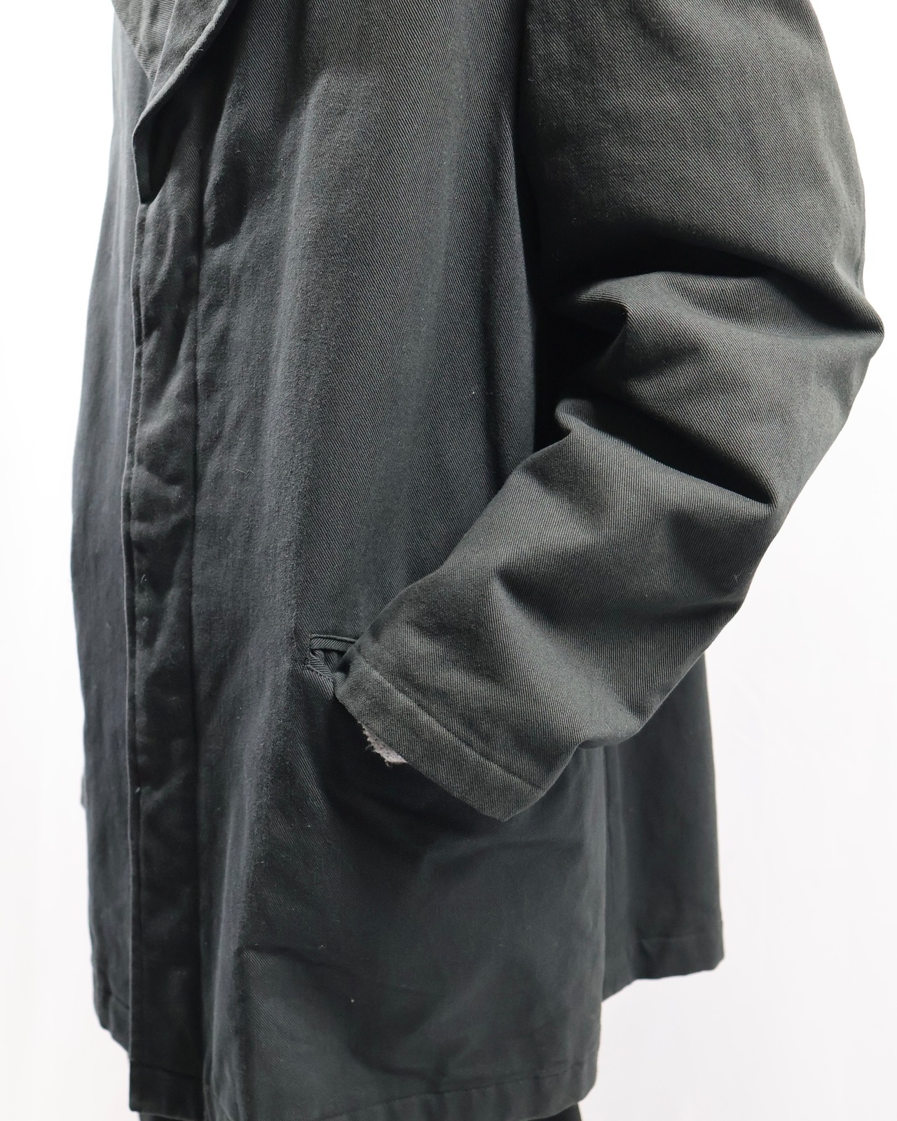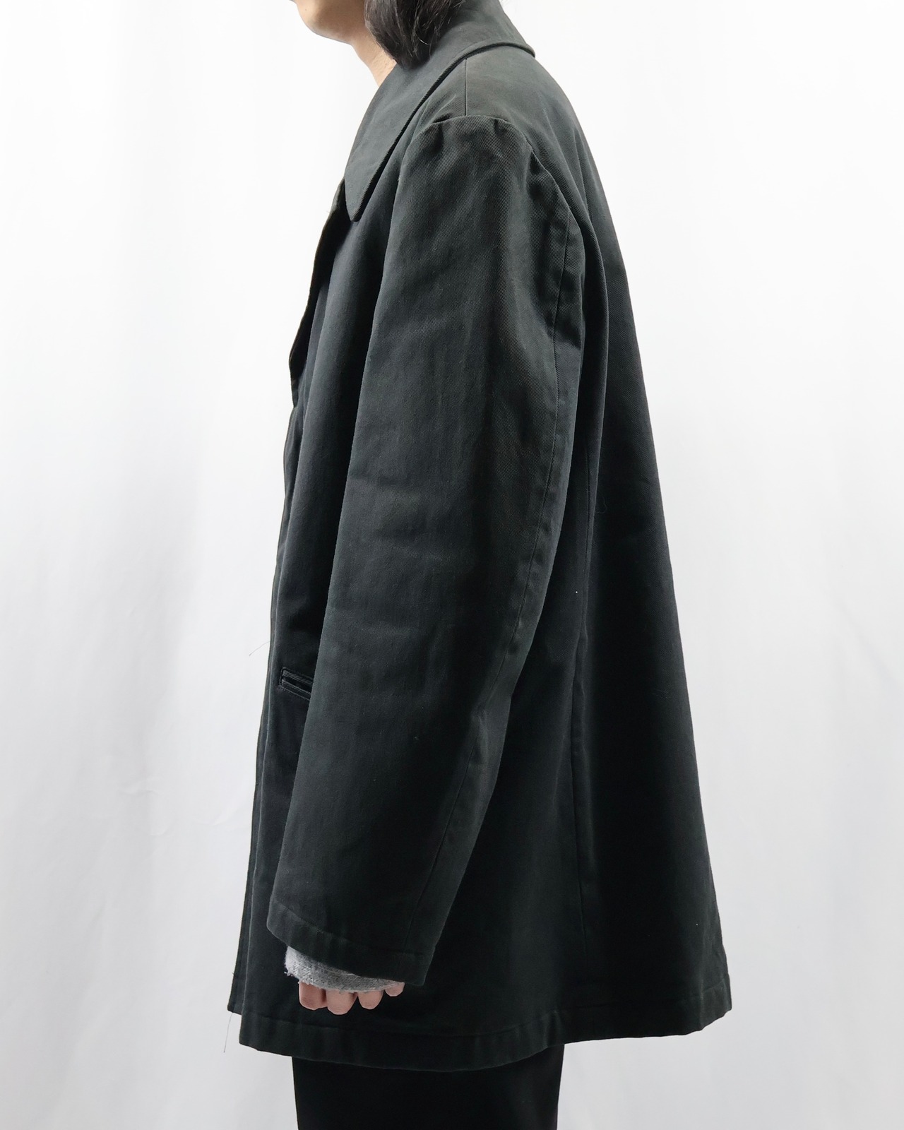 フェードのかかった、ボリューム感のあるハーフコート。シルエットがよく、モードに合わせても、少しミリタリーな要素の外套として使ってもgood。サイズ感も少しオーバーで遊び心のあるコーディネートに仕上がります。あくまでシンプルなデザインなので、サイズ感や色で遊びたい方にオススメです。
