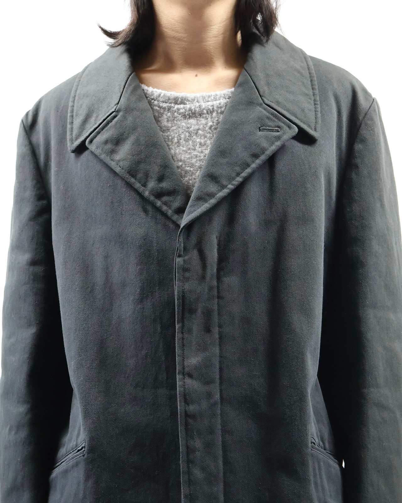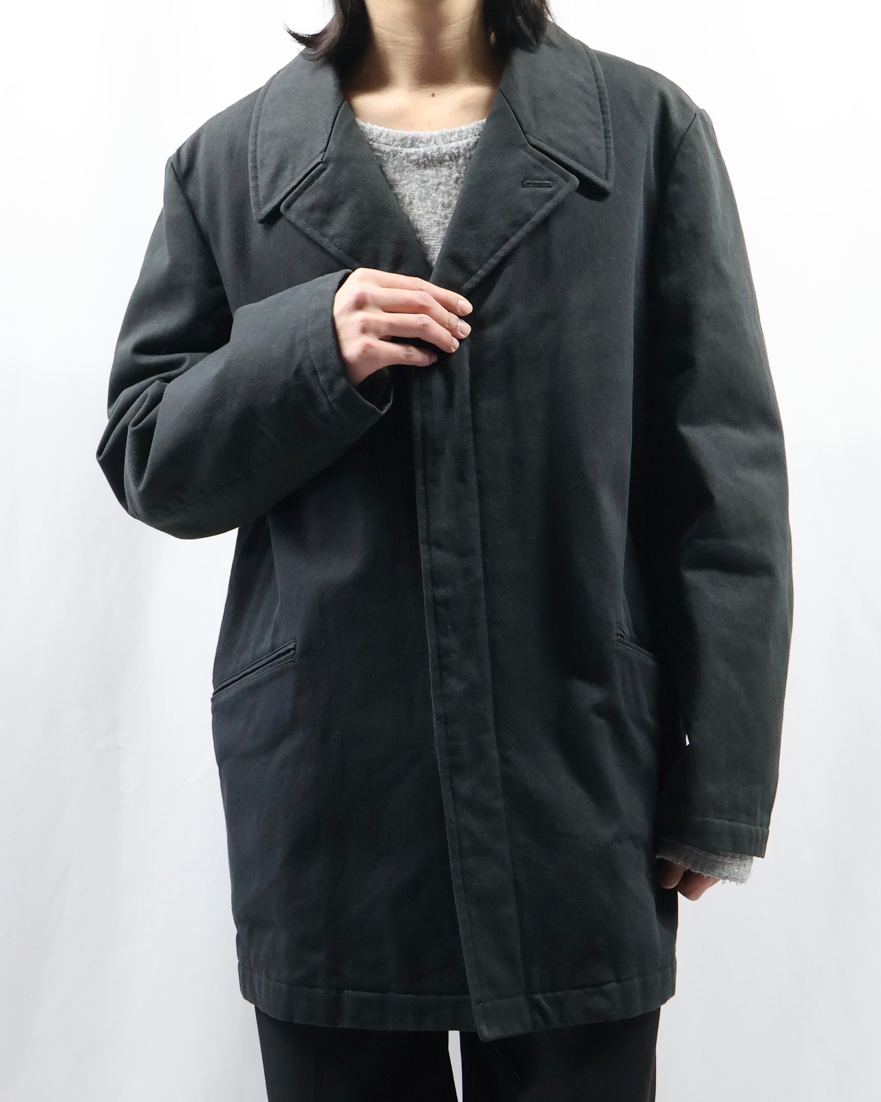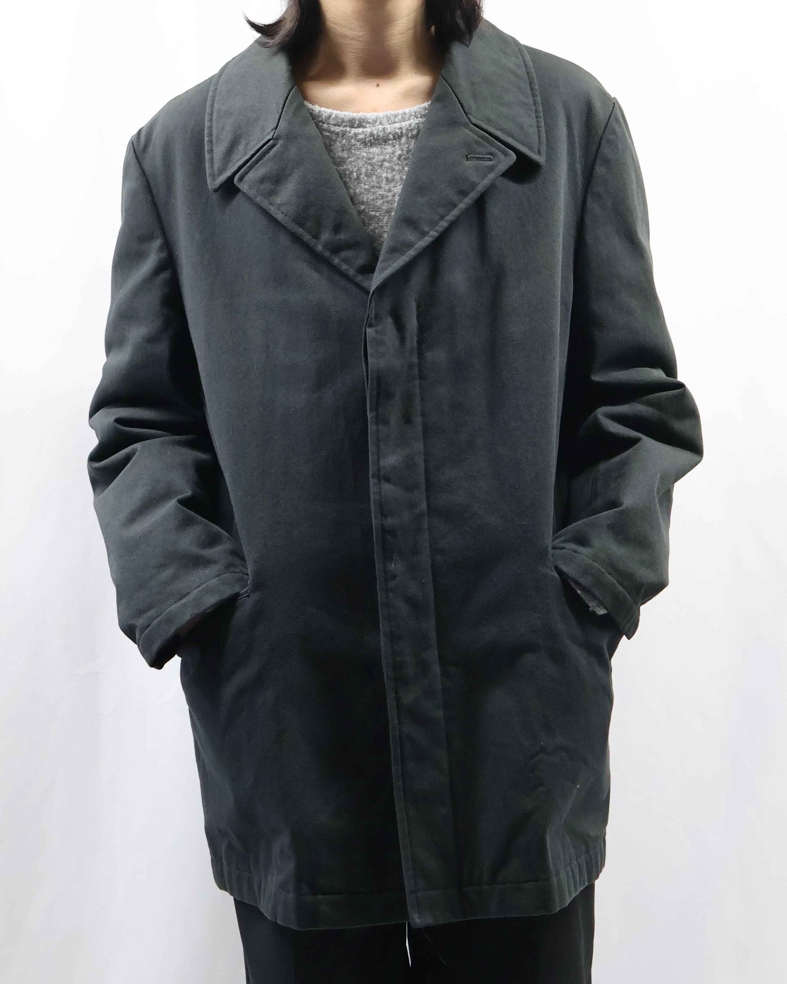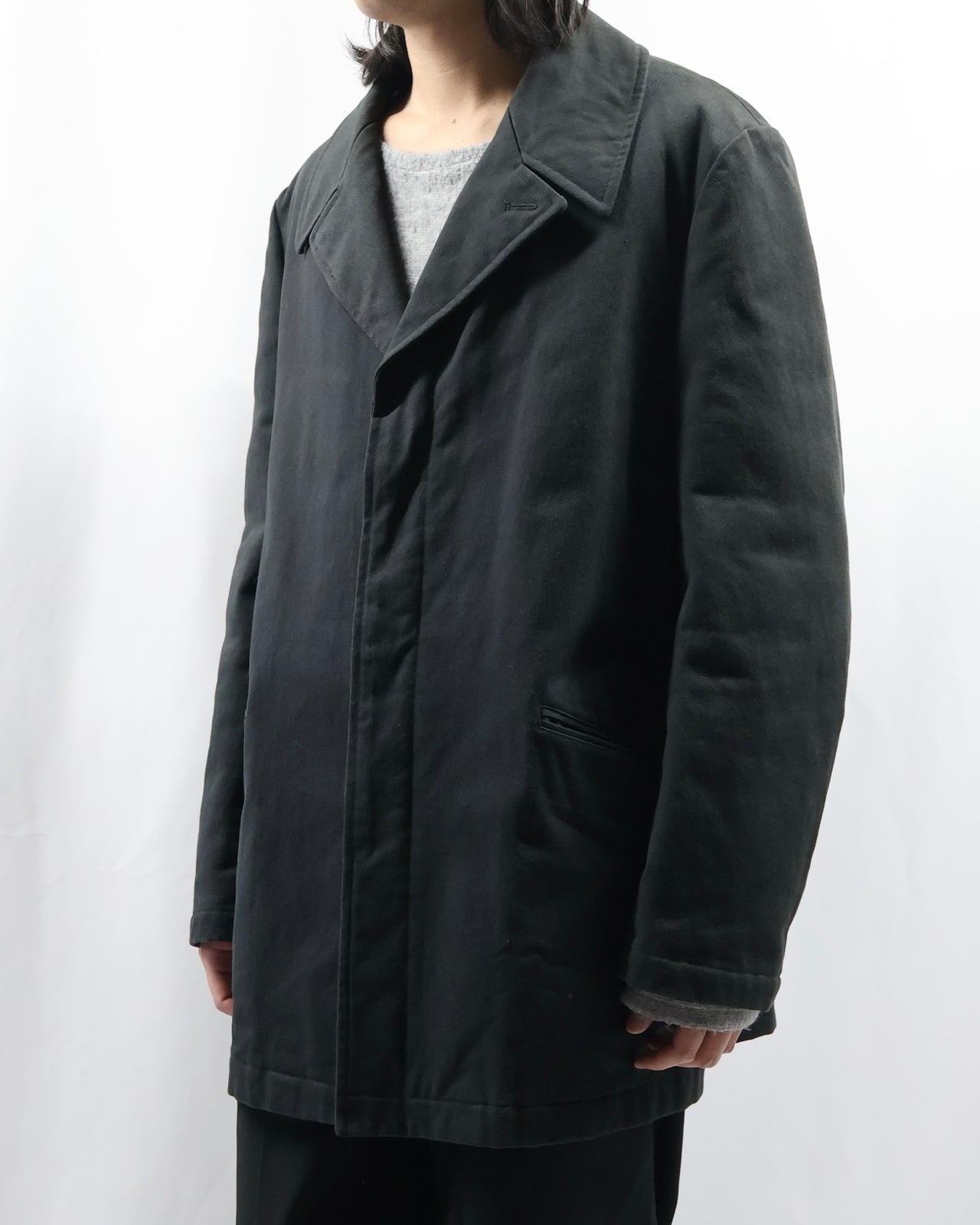 フェードのかかった、ボリューム感のあるハーフコート。シルエットがよく、モードに合わせても、少しミリタリーな要素の外套として使ってもgood。サイズ感も少しオーバーで遊び心のあるコーディネートに仕上がります。あくまでシンプルなデザインなので、サイズ感や色で遊びたい方にオススメです。