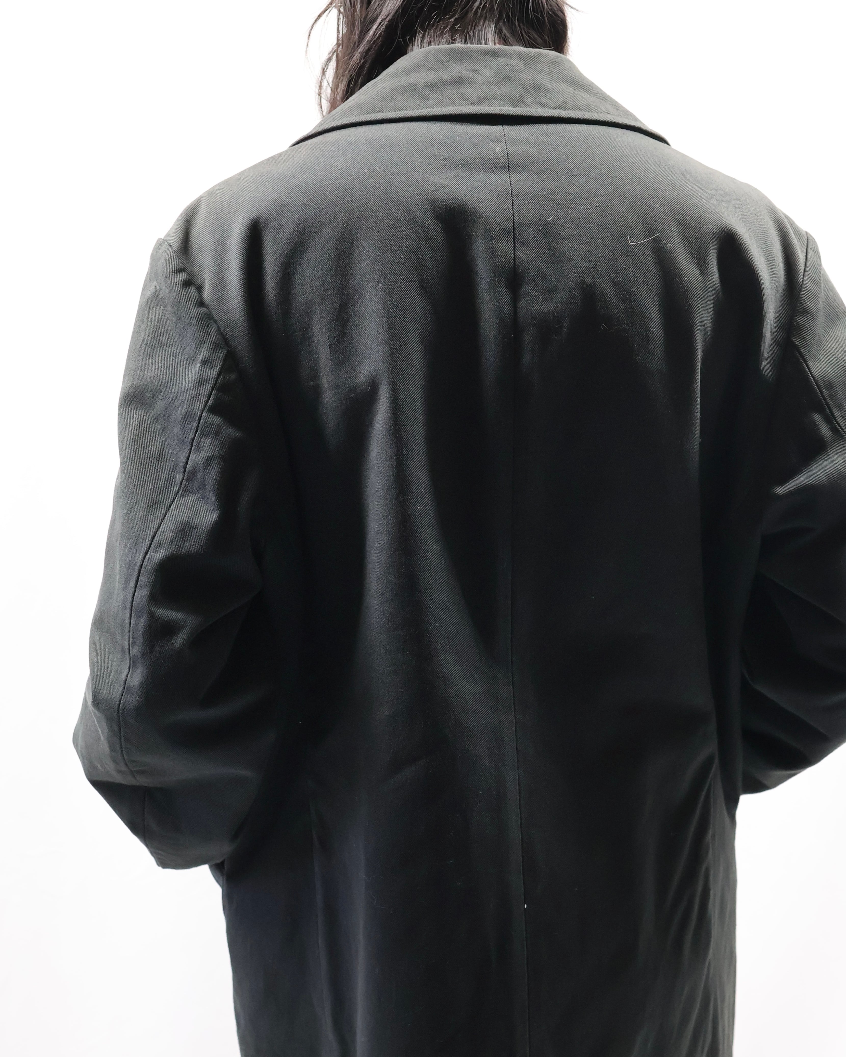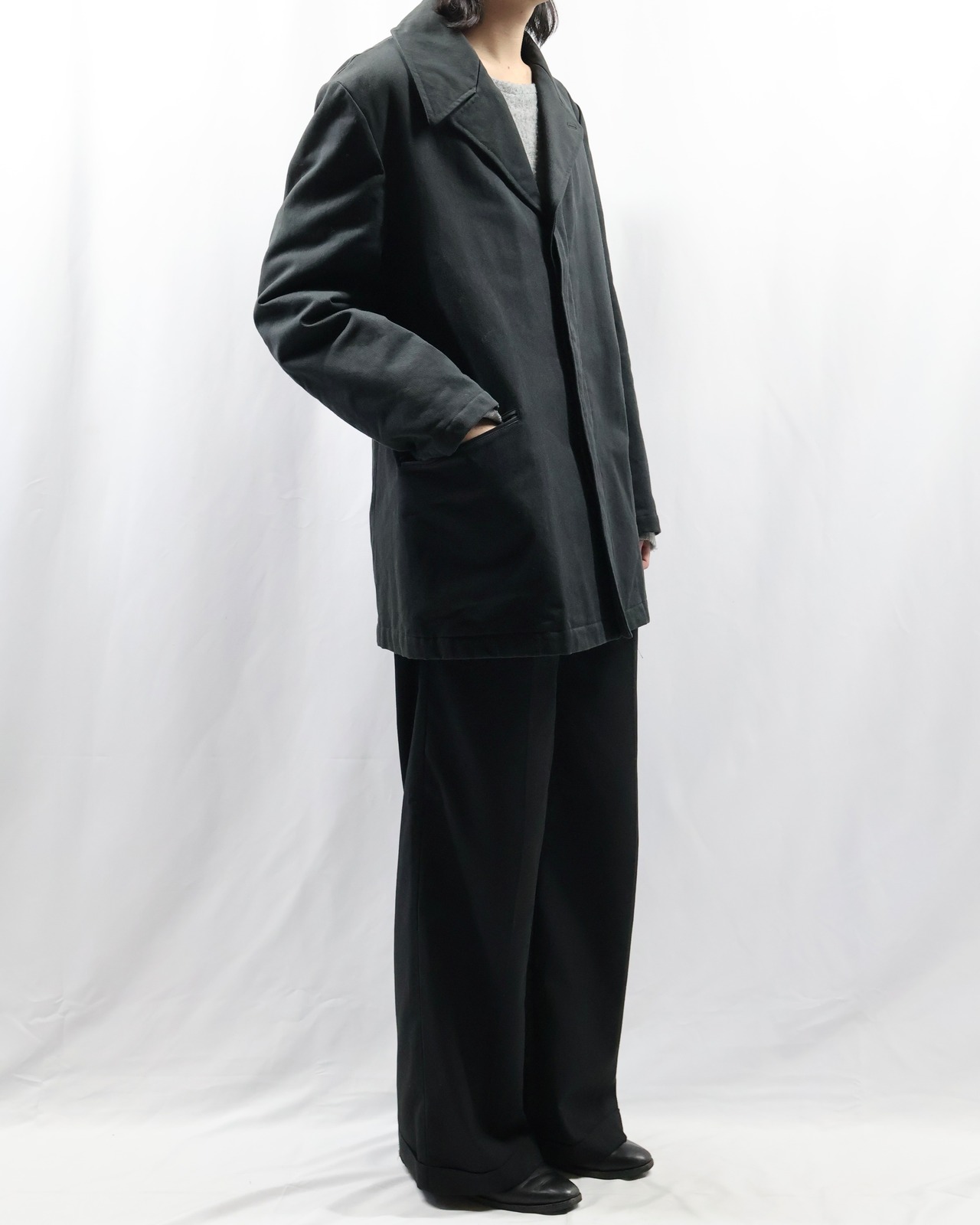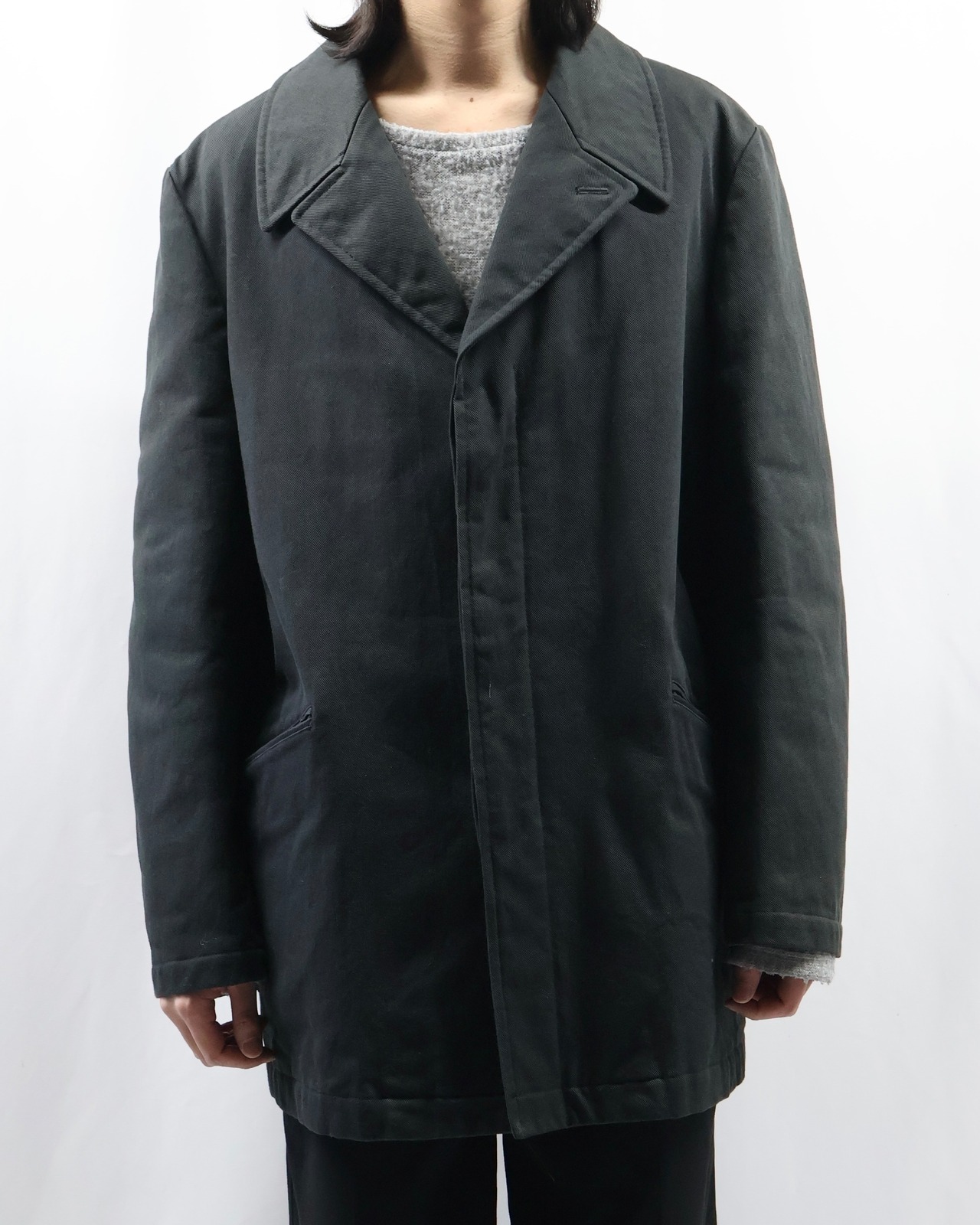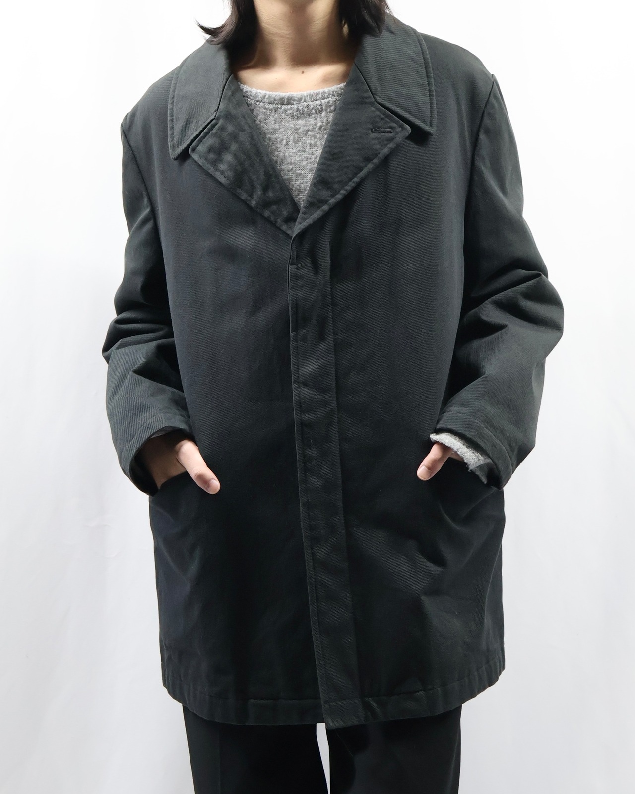 フェードのかかった、ボリューム感のあるハーフコート。シルエットがよく、モードに合わせても、少しミリタリーな要素の外套として使ってもgood。サイズ感も少しオーバーで遊び心のあるコーディネートに仕上がります。あくまでシンプルなデザインなので、サイズ感や色で遊びたい方にオススメです。