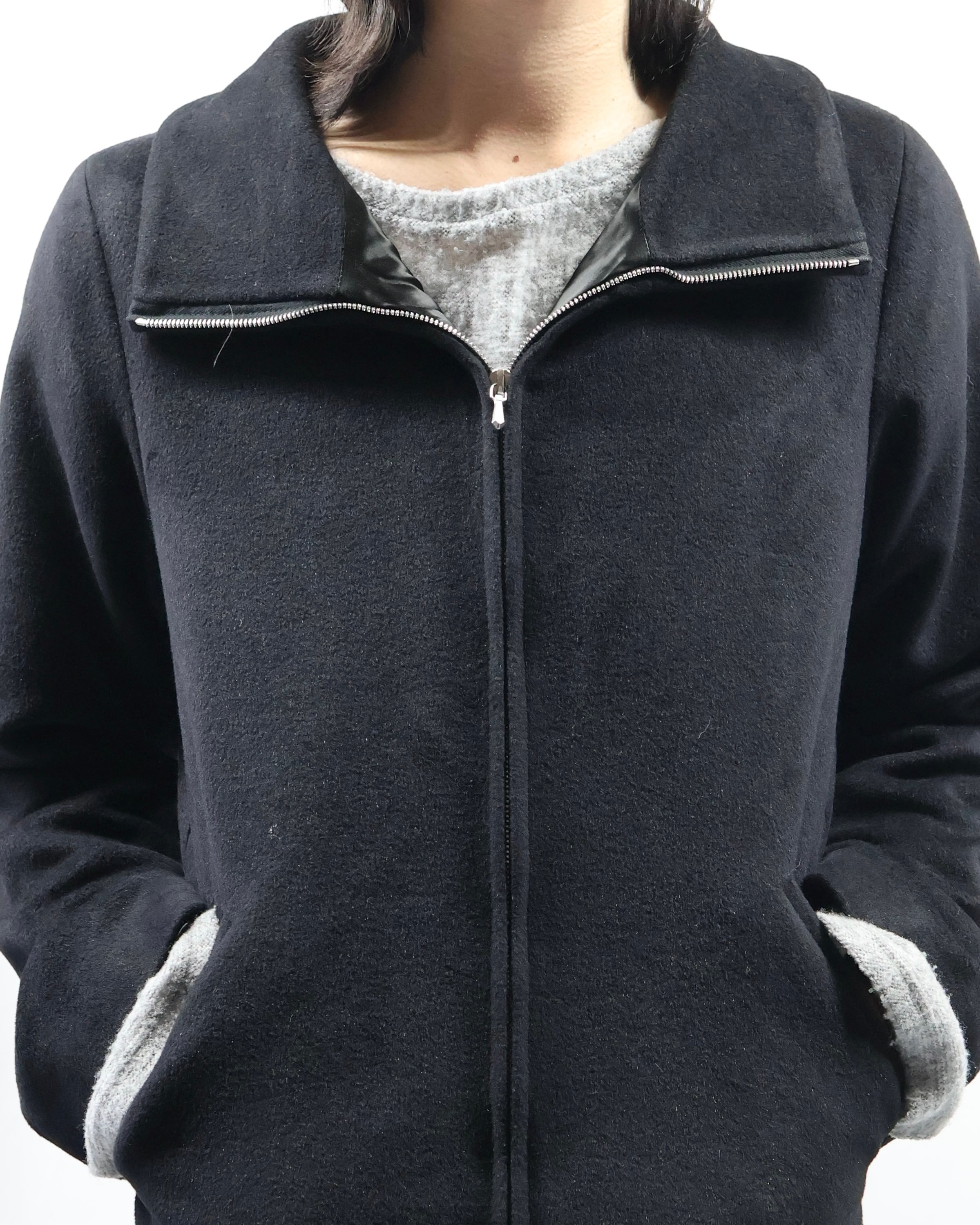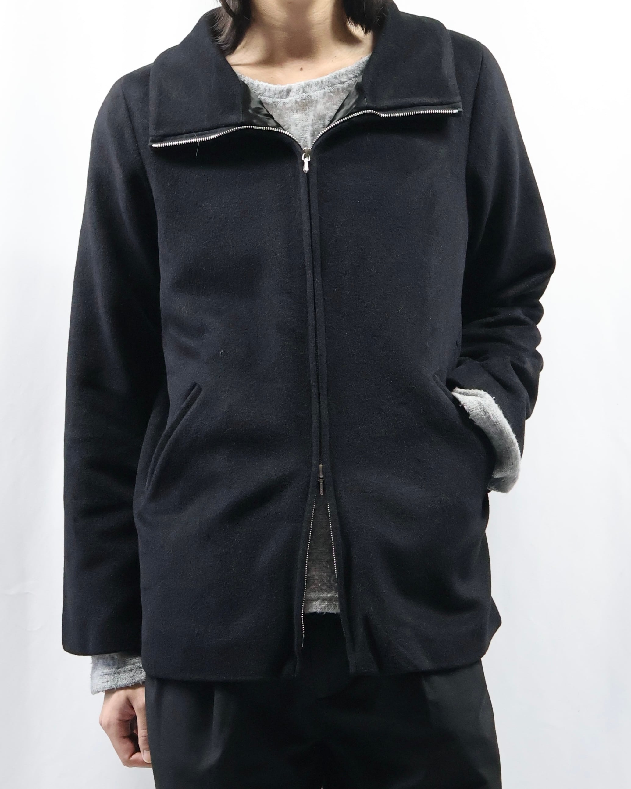 ラグジュアリーな雰囲気の立ち襟可能なウールブルゾン。着なくともかっこよさが伝わる細やかなディテールやシルエットへのこだわり。細身なラインはもちろん、立ち襟の長さや、ジップの高級感、語ればキリがありませんが、こういったブルゾンは探して出てくるものではありません、上質でデイリーで使えるブルゾンをお探しの方、是非。