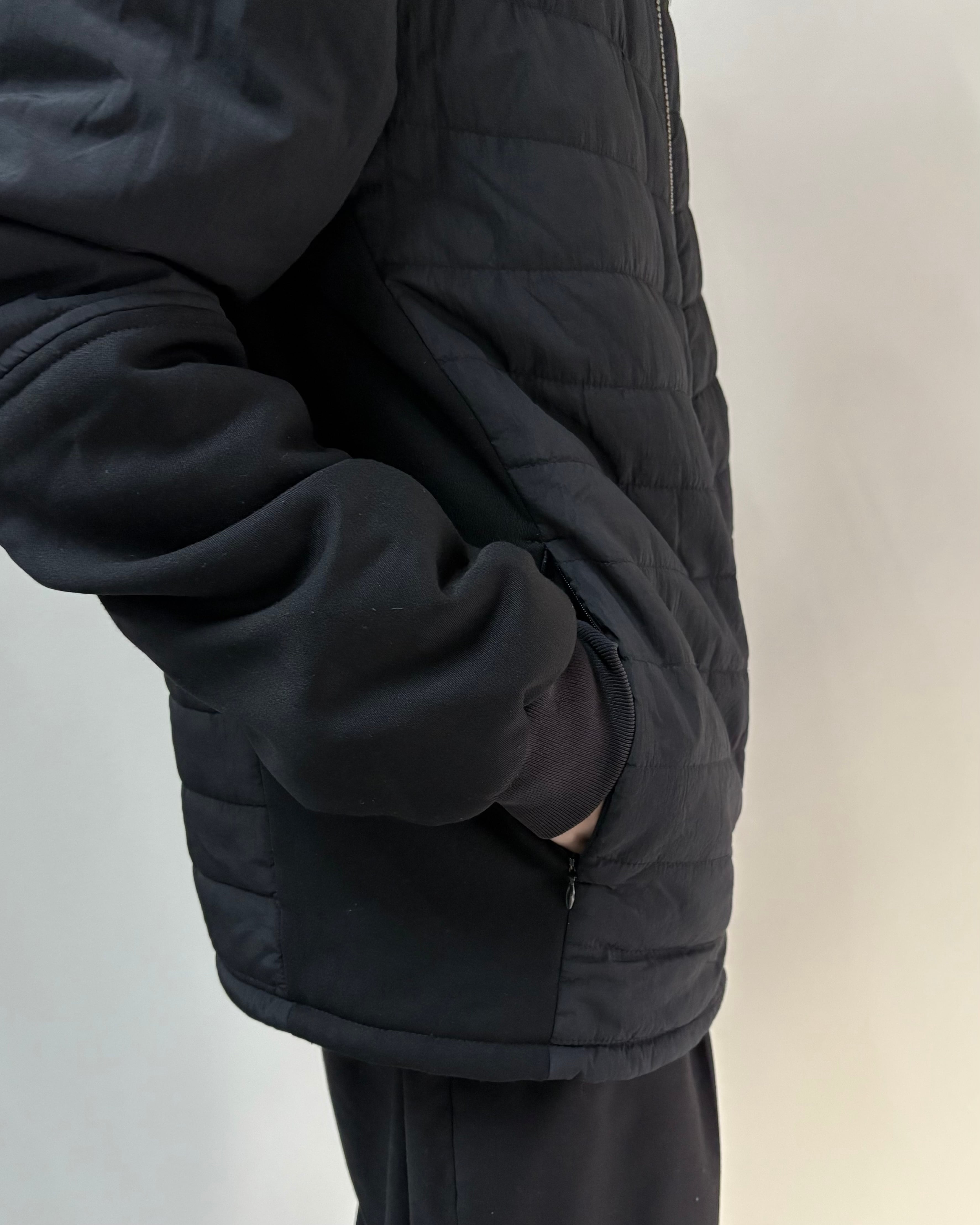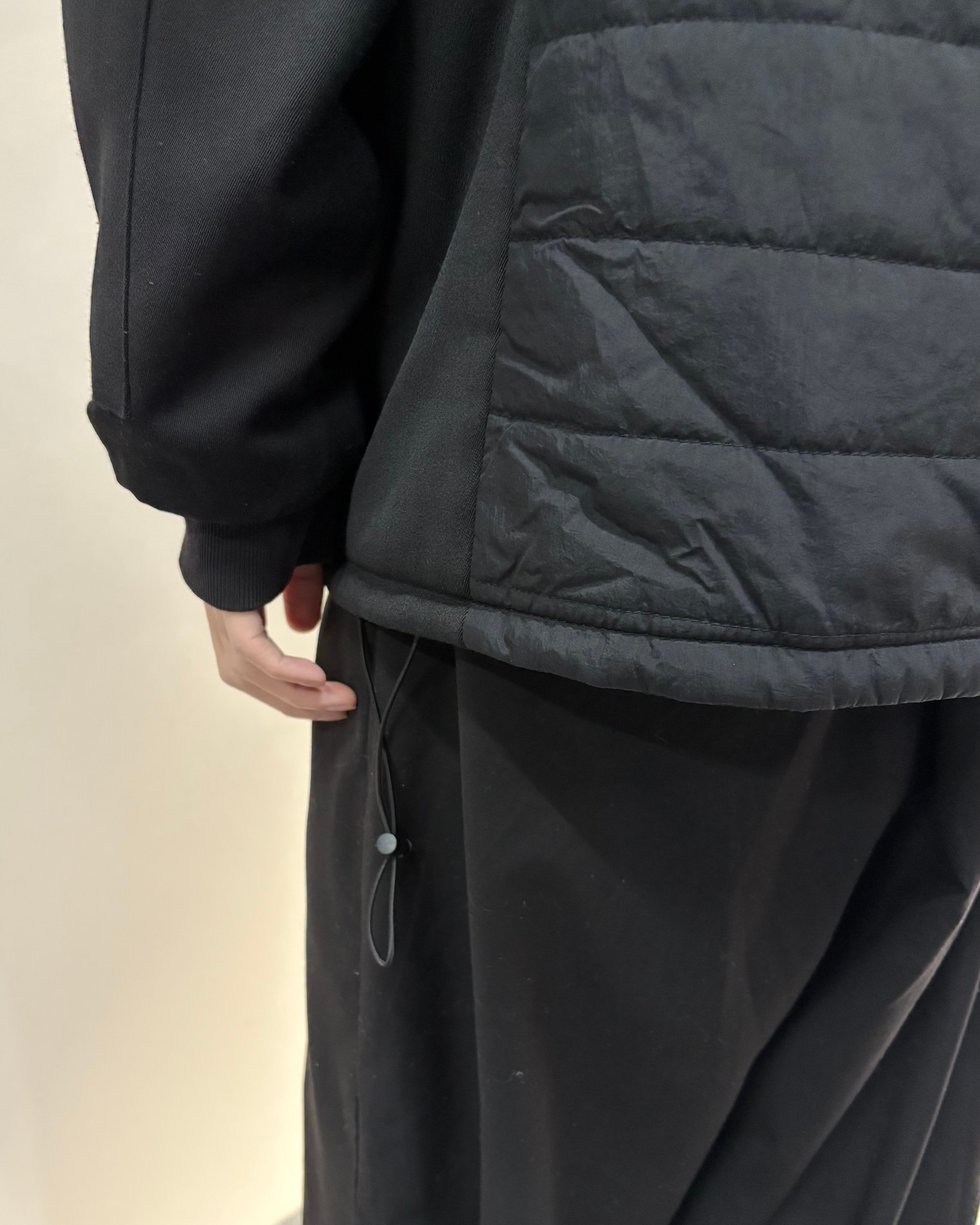 マットな質感のキルティング素材を使用し、身体に沿うシャープなシルエットながら程よい中綿により軽さと保温性もあるアイテム。インナー使いからライトアウターとしてまで幅広く活躍する一着。