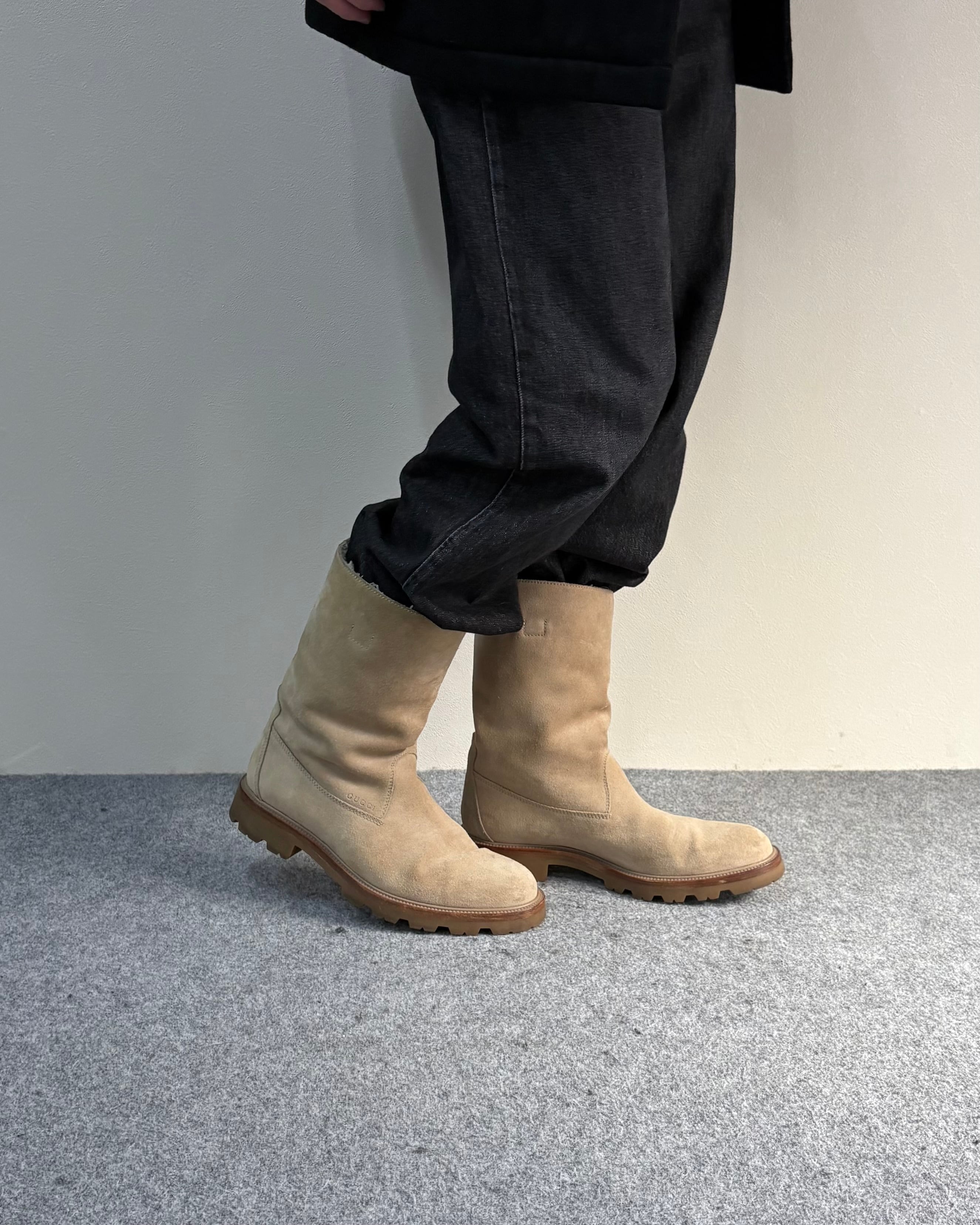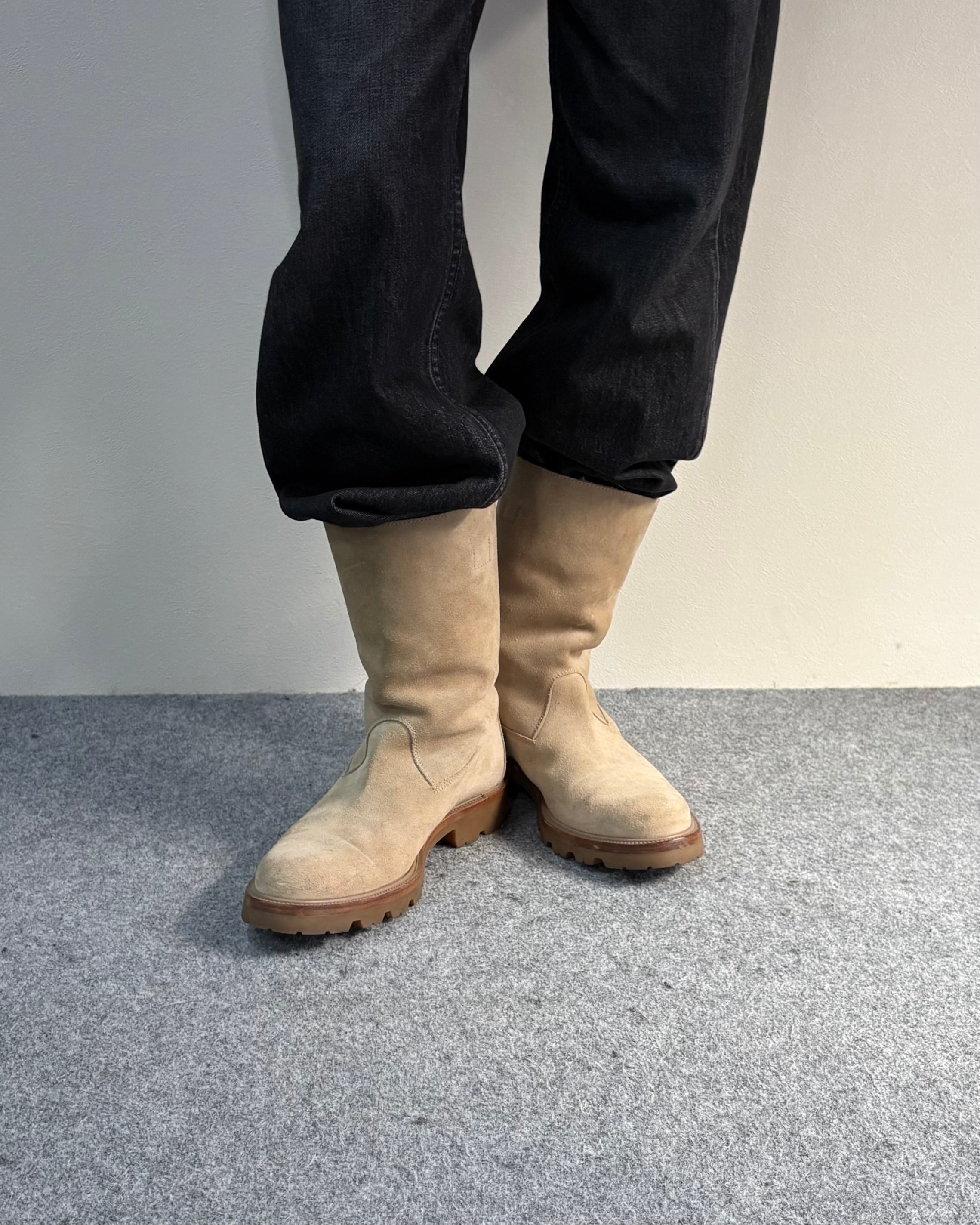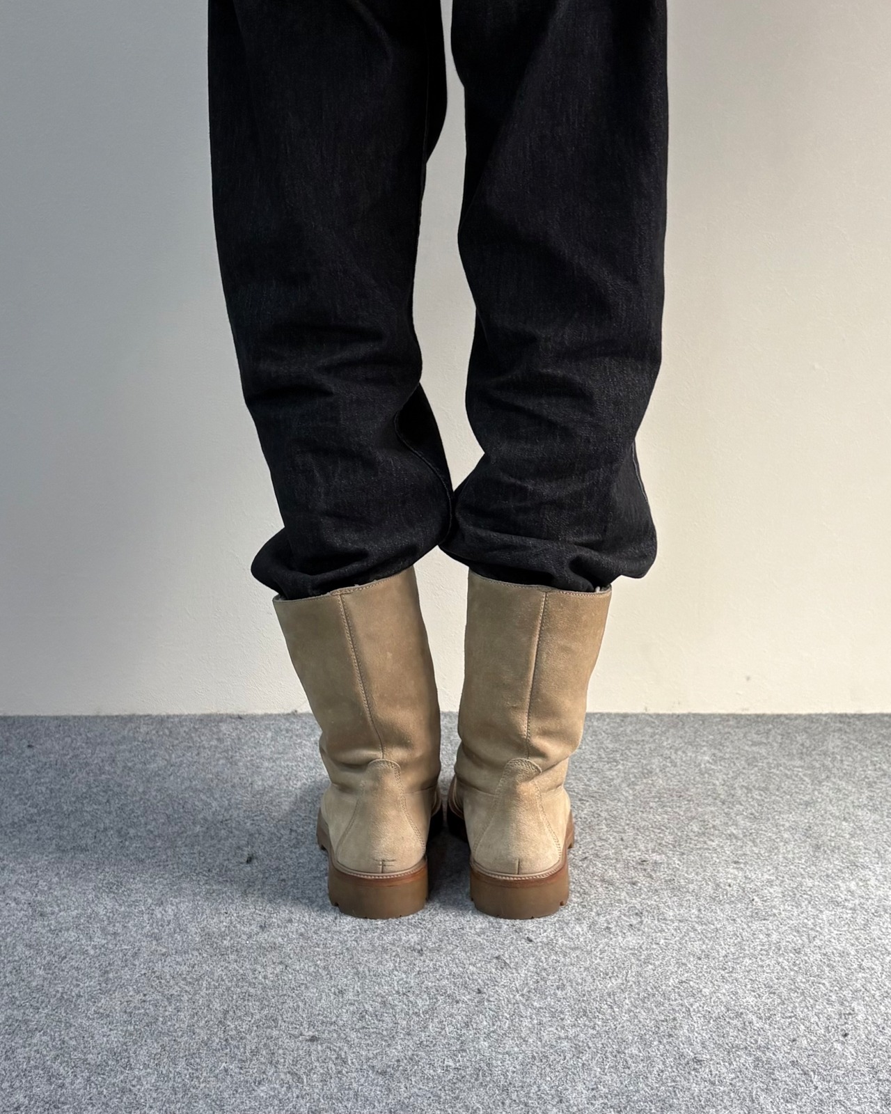 柔らかく起毛感のあるスエードレザーを使用し、ナチュラルなベージュトーンがスタイリングに程よい抜け感を与えてくれる一足。