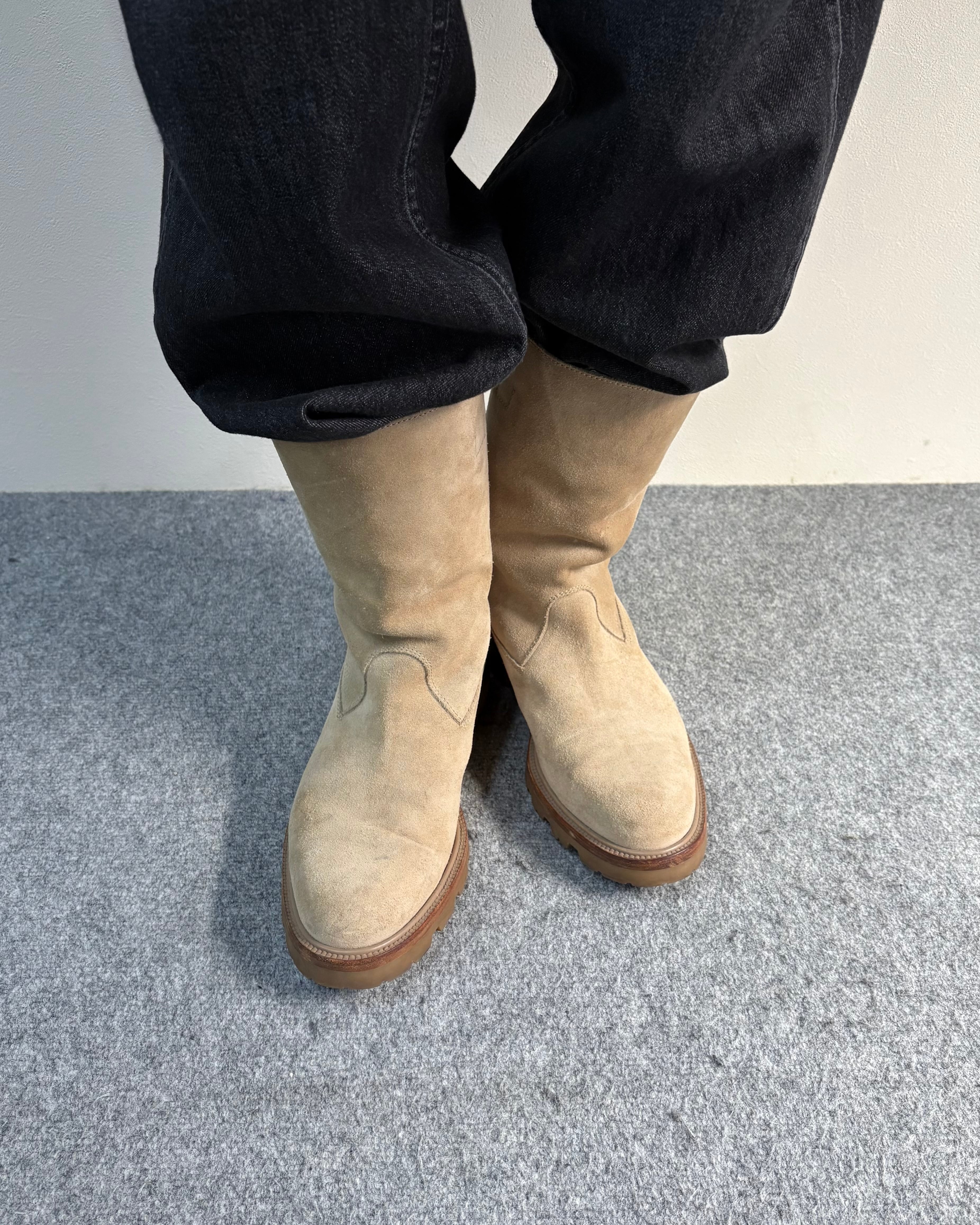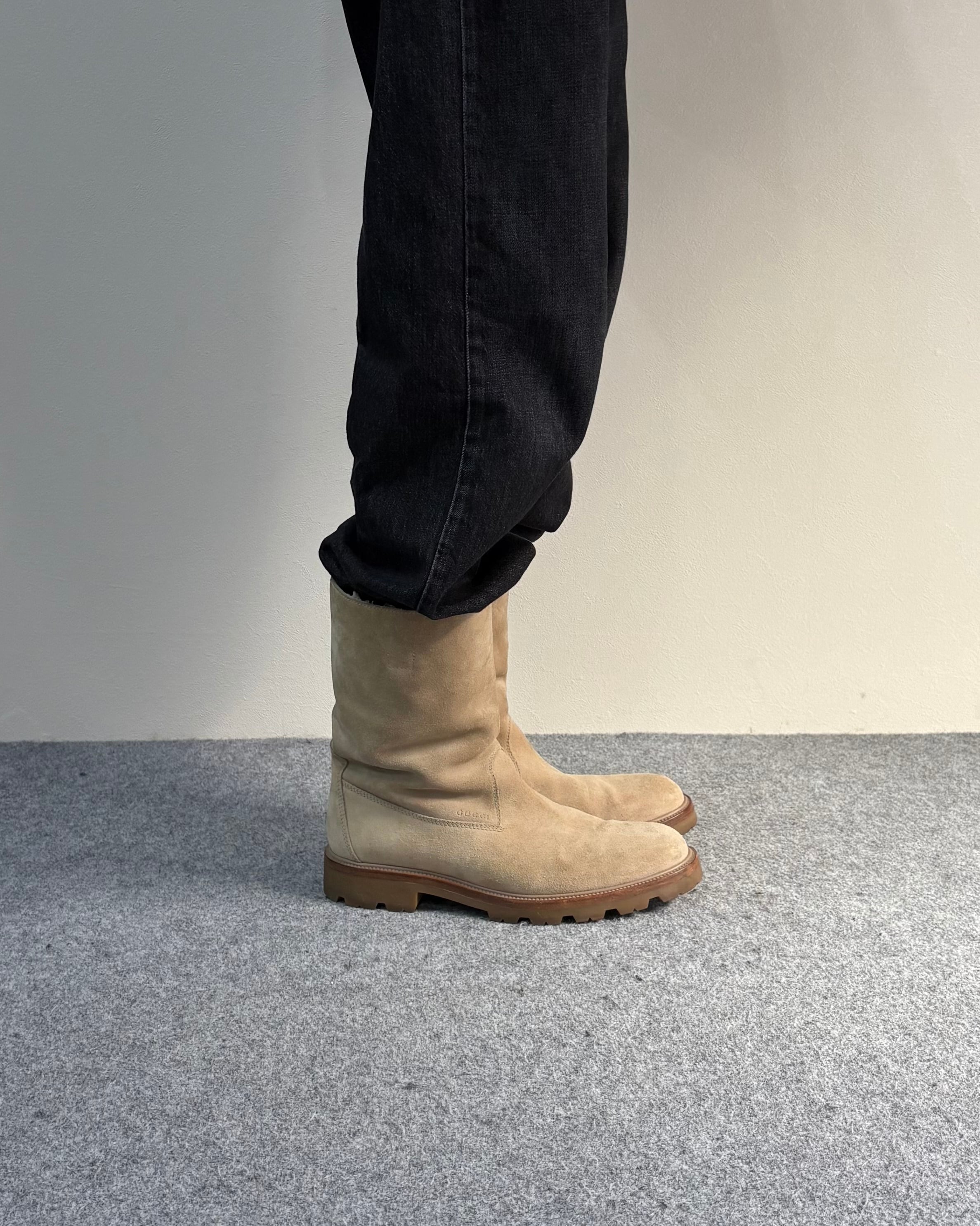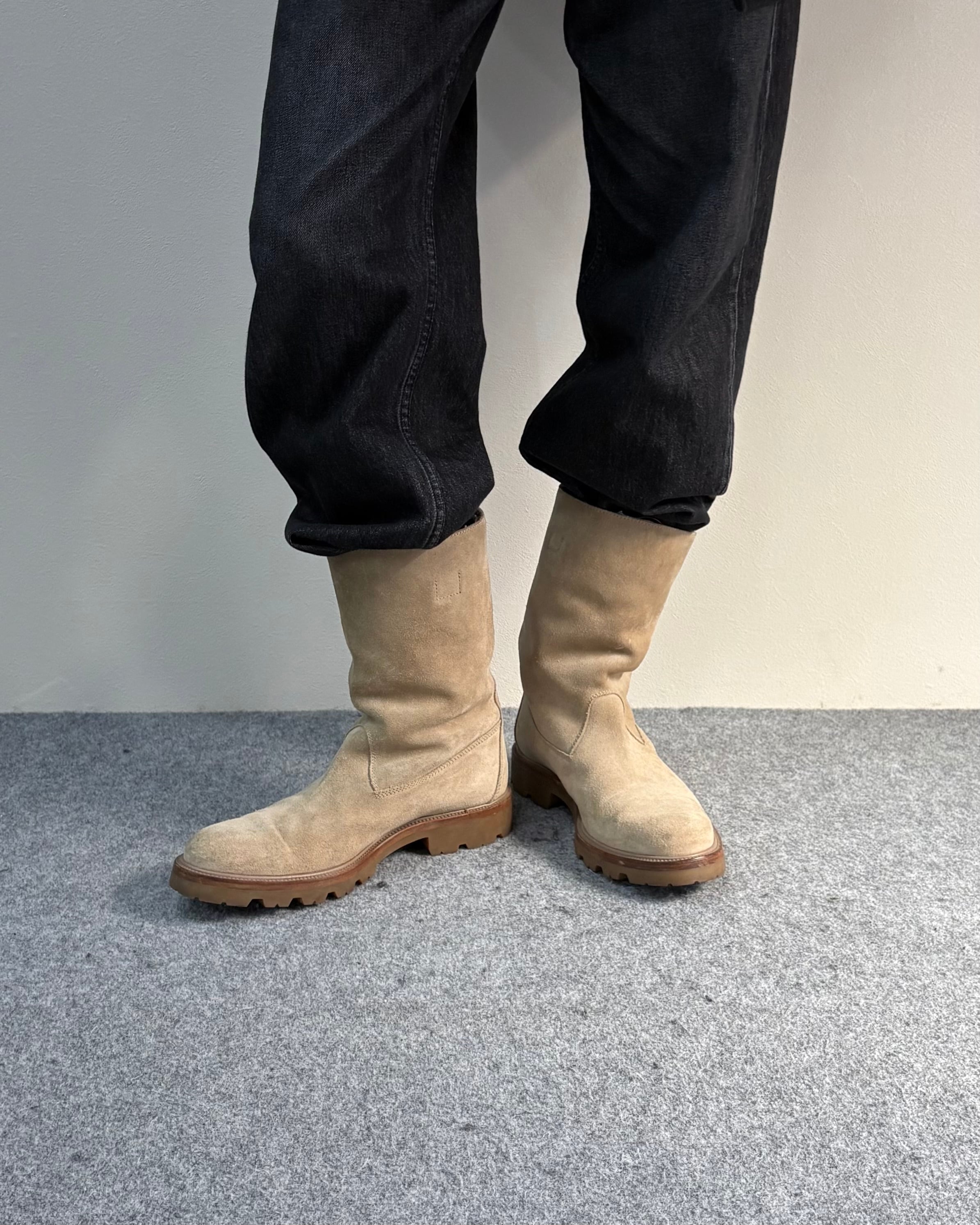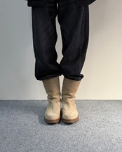 柔らかく起毛感のあるスエードレザーを使用し、ナチュラルなベージュトーンがスタイリングに程よい抜け感を与えてくれる一足。