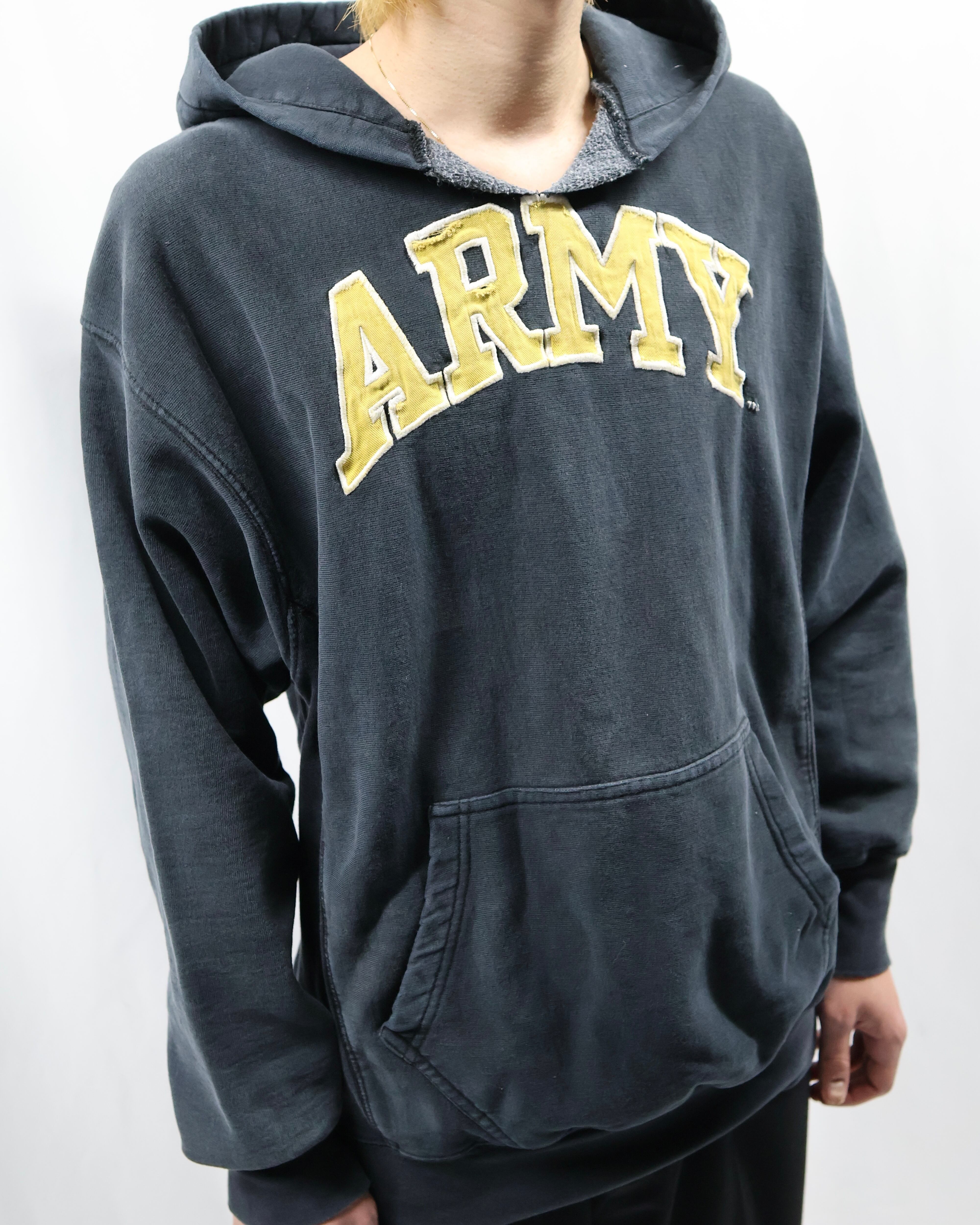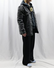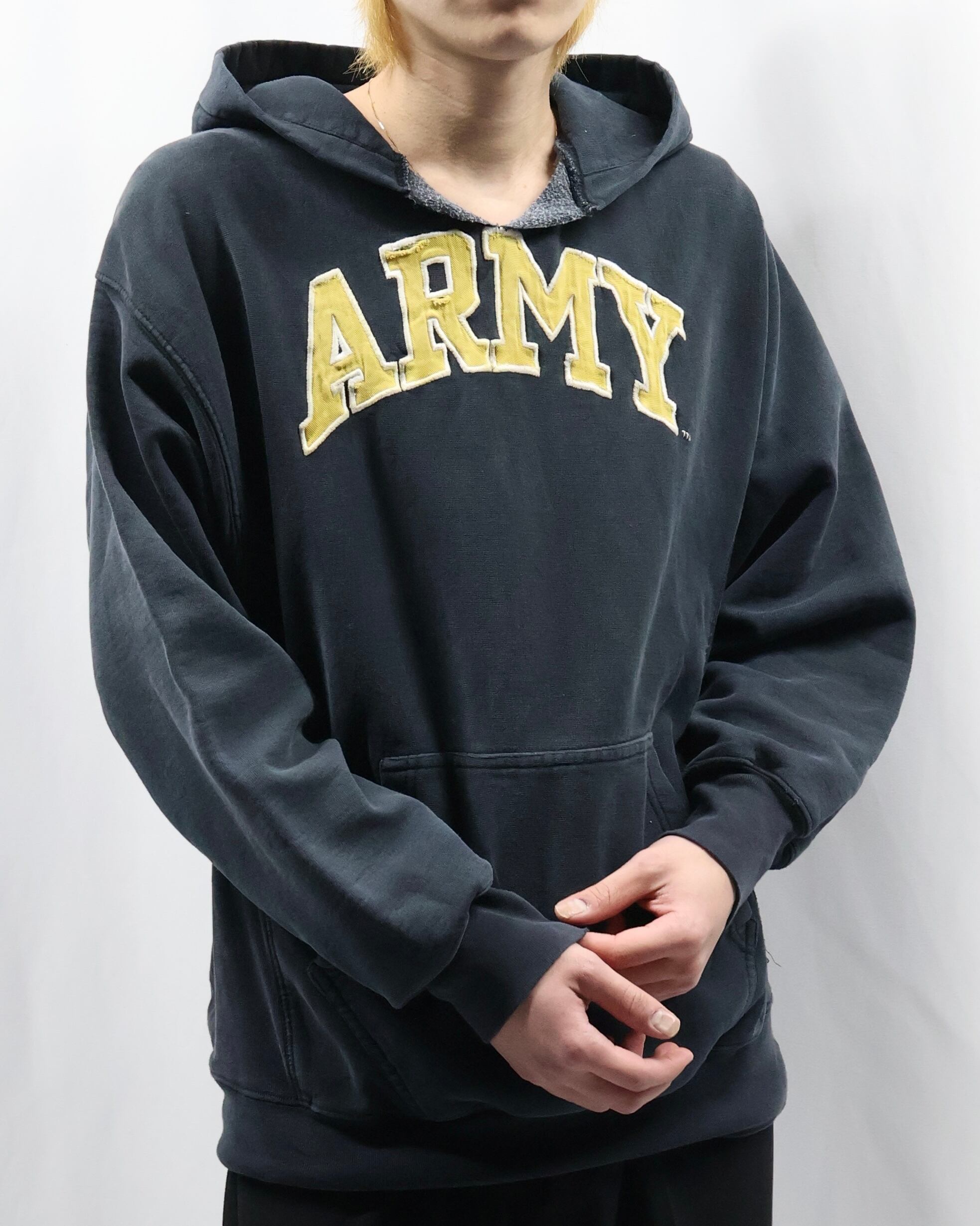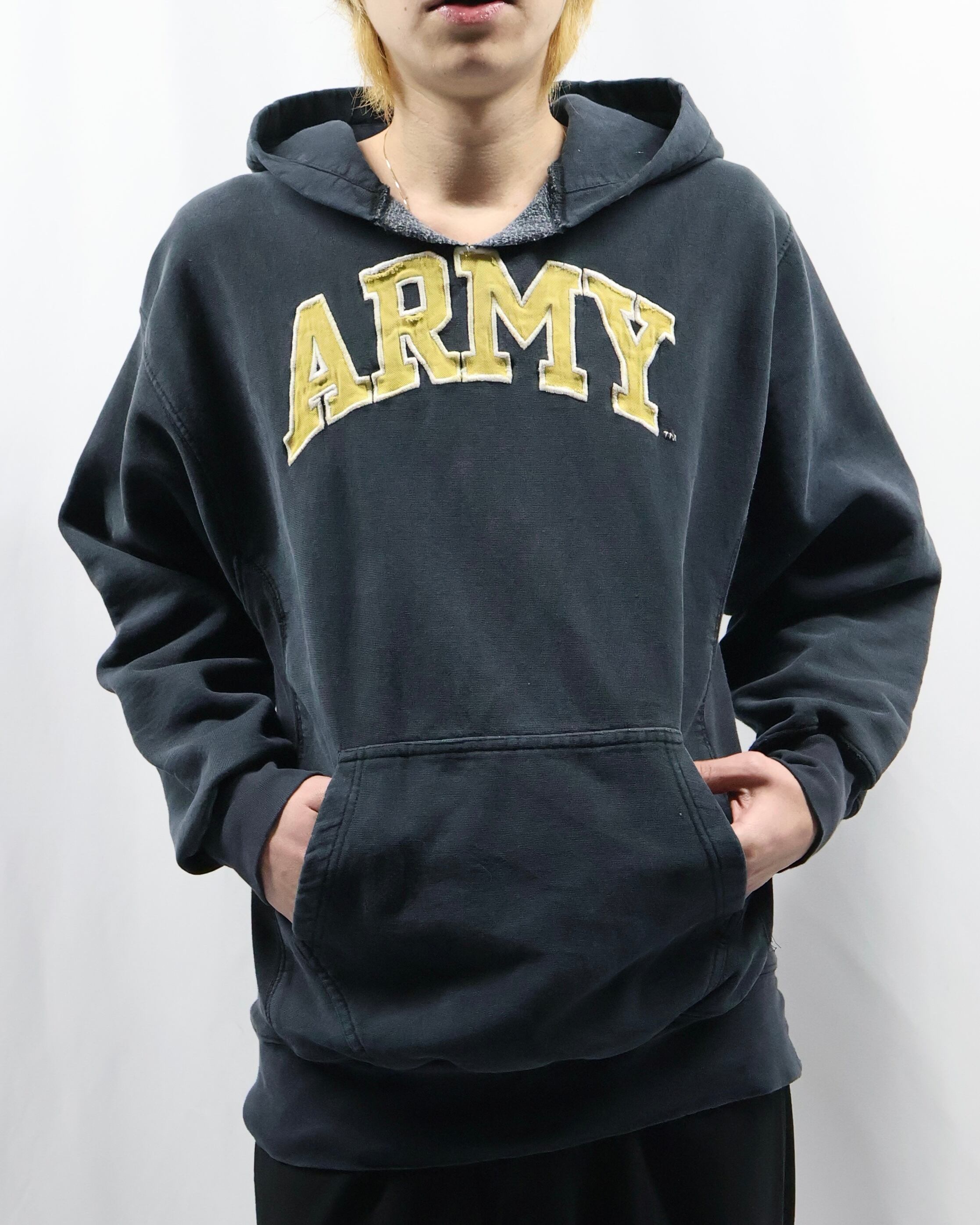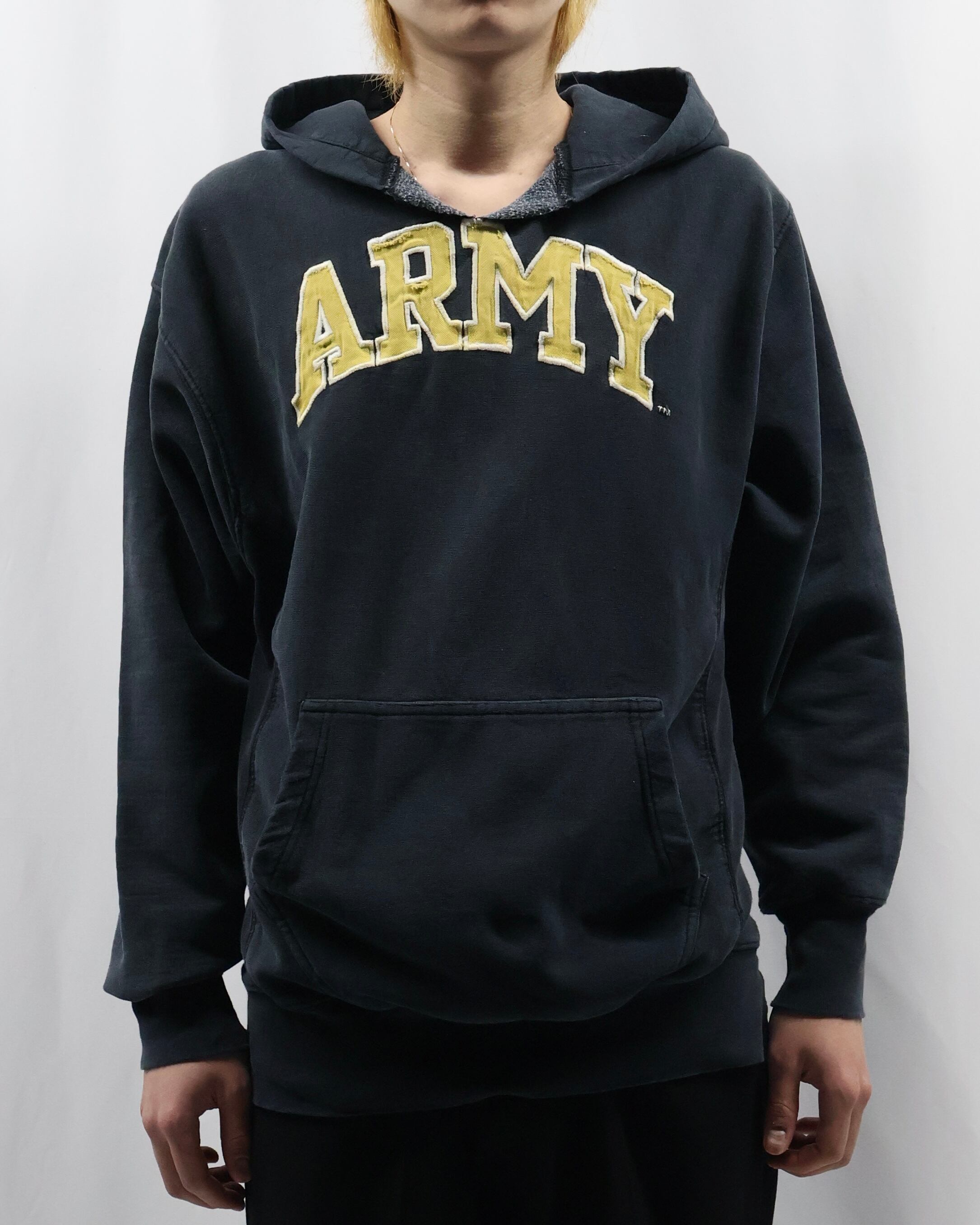 前見頃上部に大きめのロゴデザインが入ったフーディ。ポップでカジュアルをしたい方にぜひお勧めしたい一枚。面白いデザインではありながら一枚できた時のリブや袖の立体感がチープに見えない佇まいを演出します。インナーとして使ってもロゴのデザインが目立ち、キッズ感のある着こなしはもちろん、クラシックなお洋服に差し込むといい意味で他とは一線を画す玄人なファッションを作り出します。