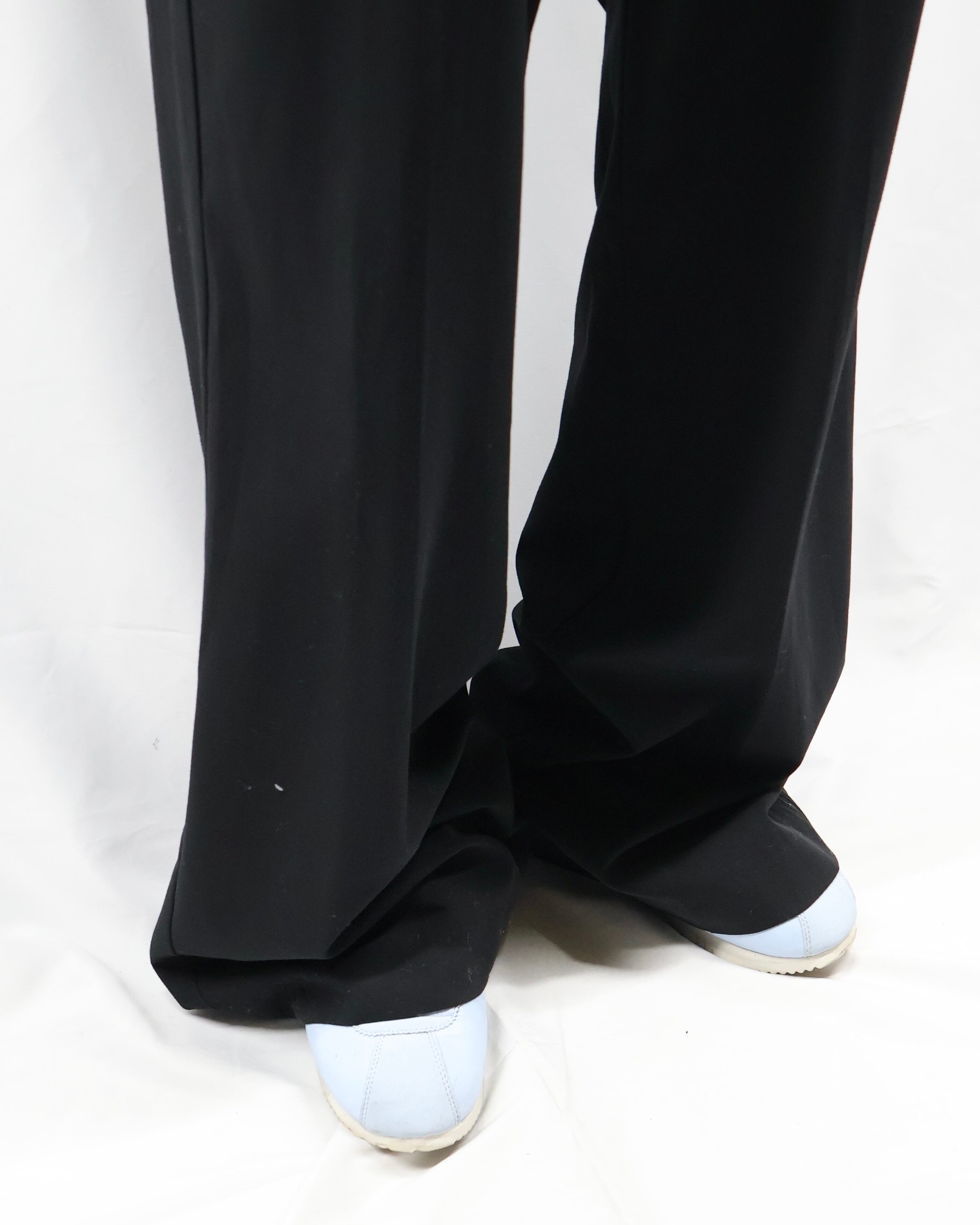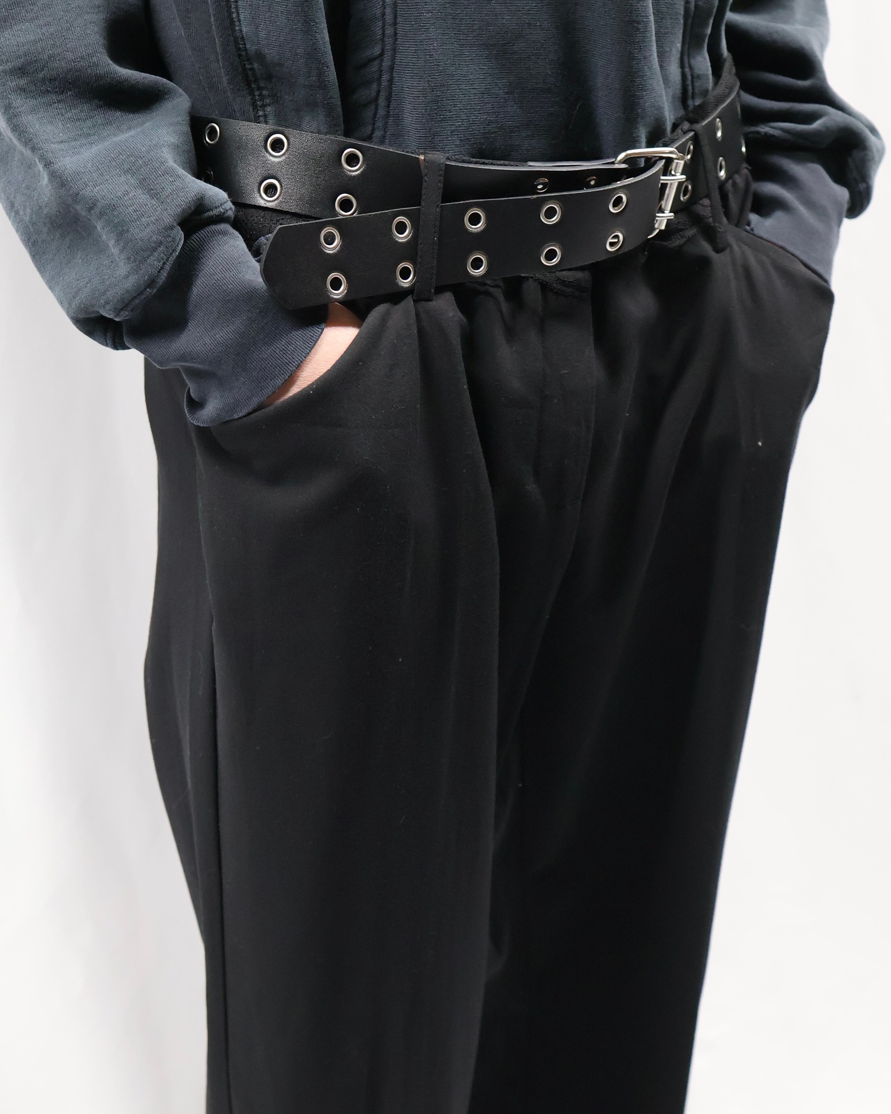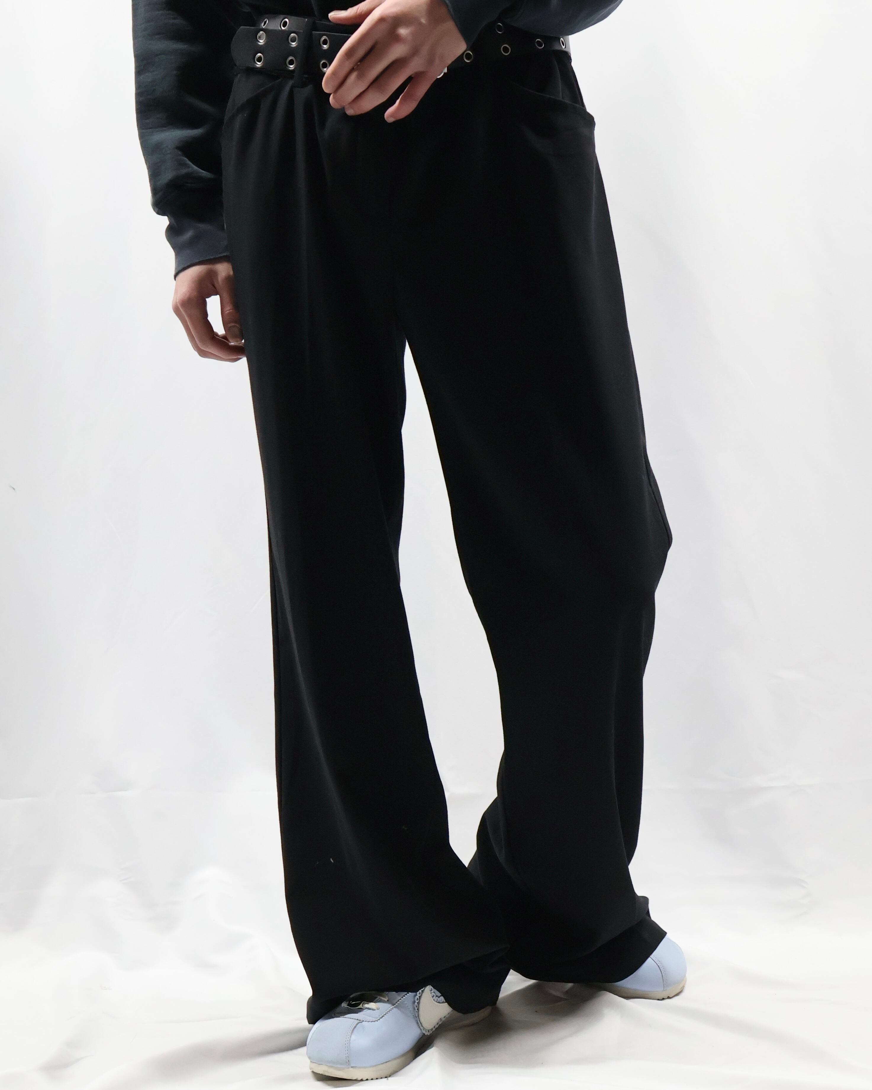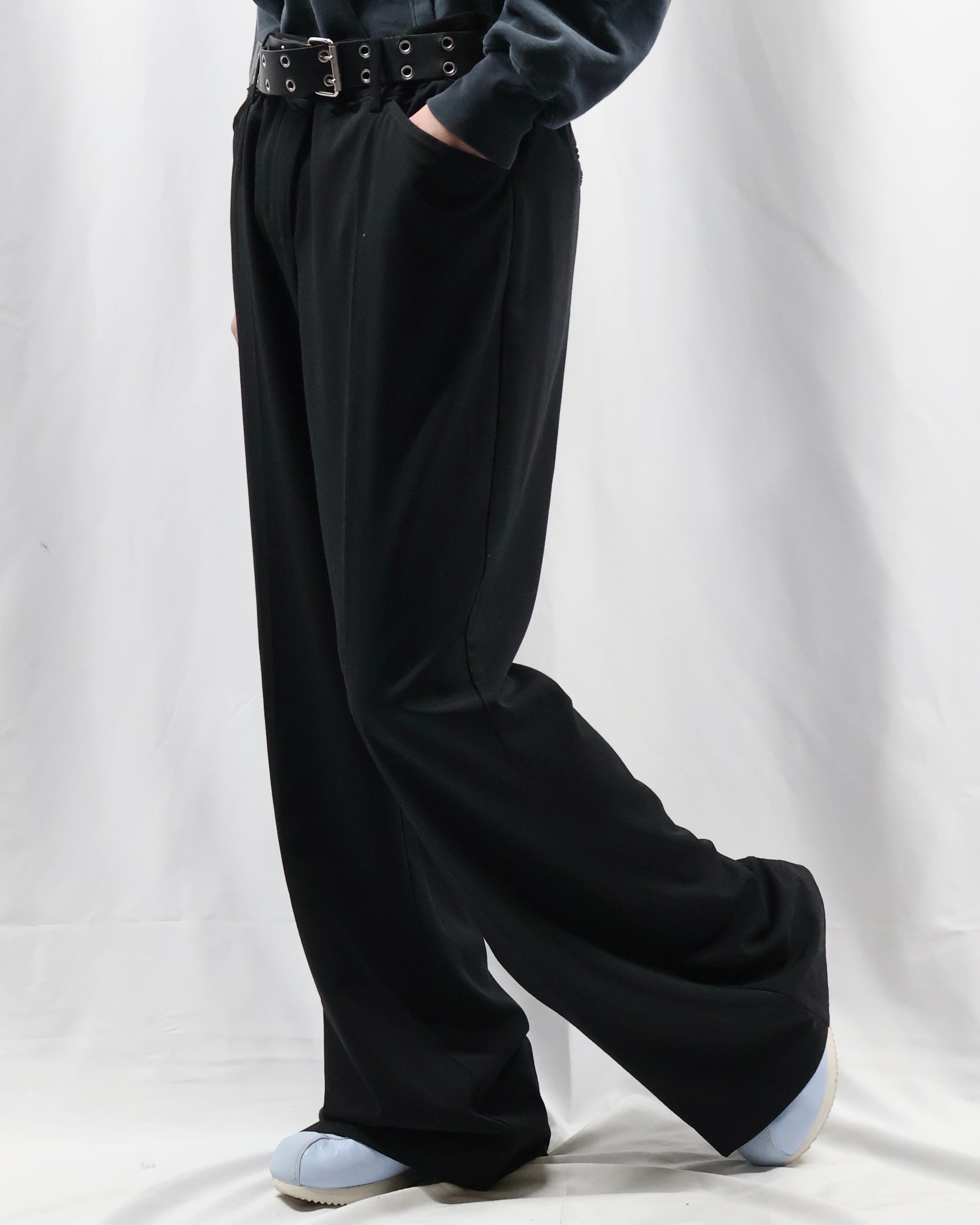 トレンディな細身のシルエットでウエスト部分にレースデザインが施されているスラックス。シルエットはシンプルでウエストにデザインがある、コーディネートにテクニカルな印象を与えてくれるパンツ。タックインして全容を見せてもいいですし、ウエストにかかるほどのトップスと合わせてチラっと見えるほどにして、アクセントとして用いるもgood。普段は綺麗なスラックスとして使っていただけますので、黒のスラックスをお探しの方にもお勧めできます。