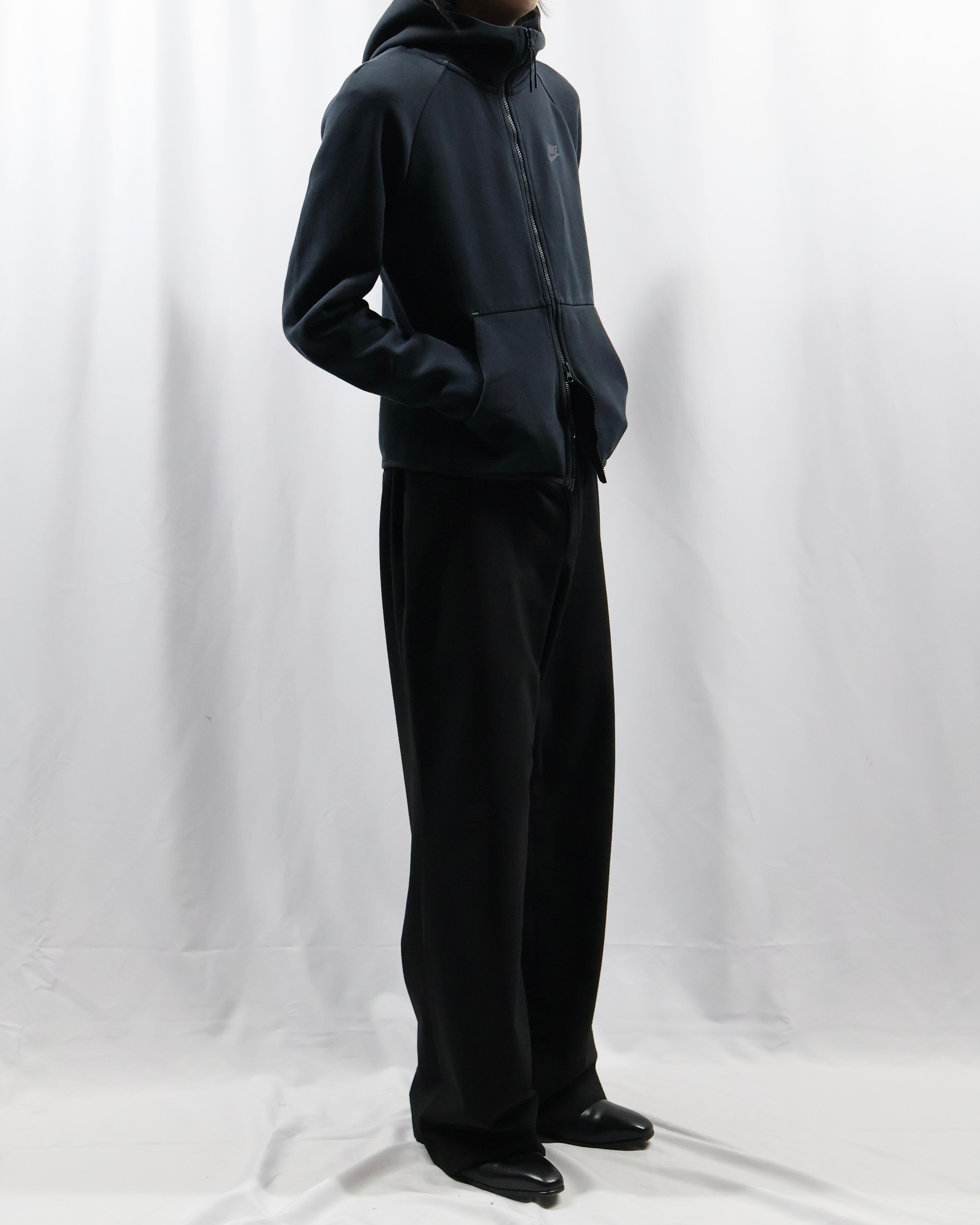 スポーティなデザインのフーディ。素材感も相まってカジュアルでそれでいて遊び心のあるインナーとして使っていただけます。ネックのデザインも小洒落ていてインナー映えするトップスです。スポーツブランドならではのいい意味でのチープさを楽しんでいただけたらと。