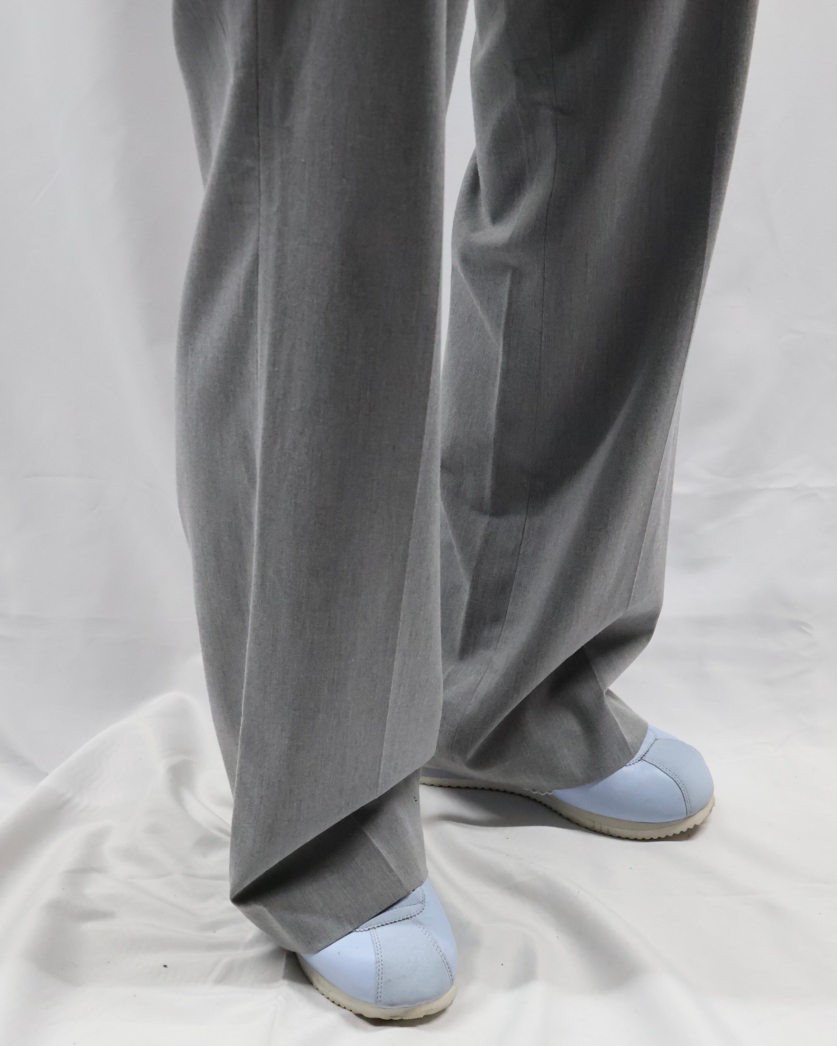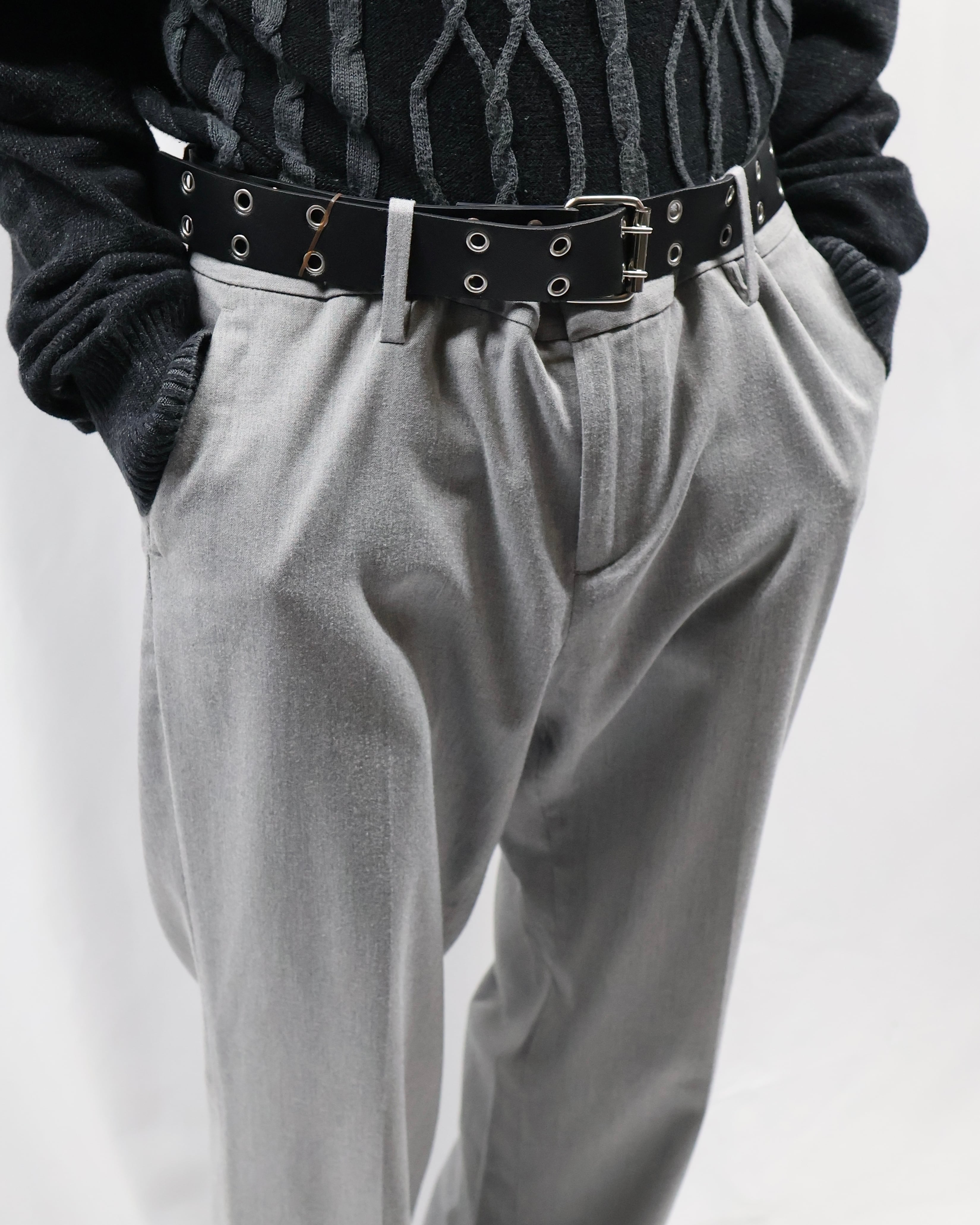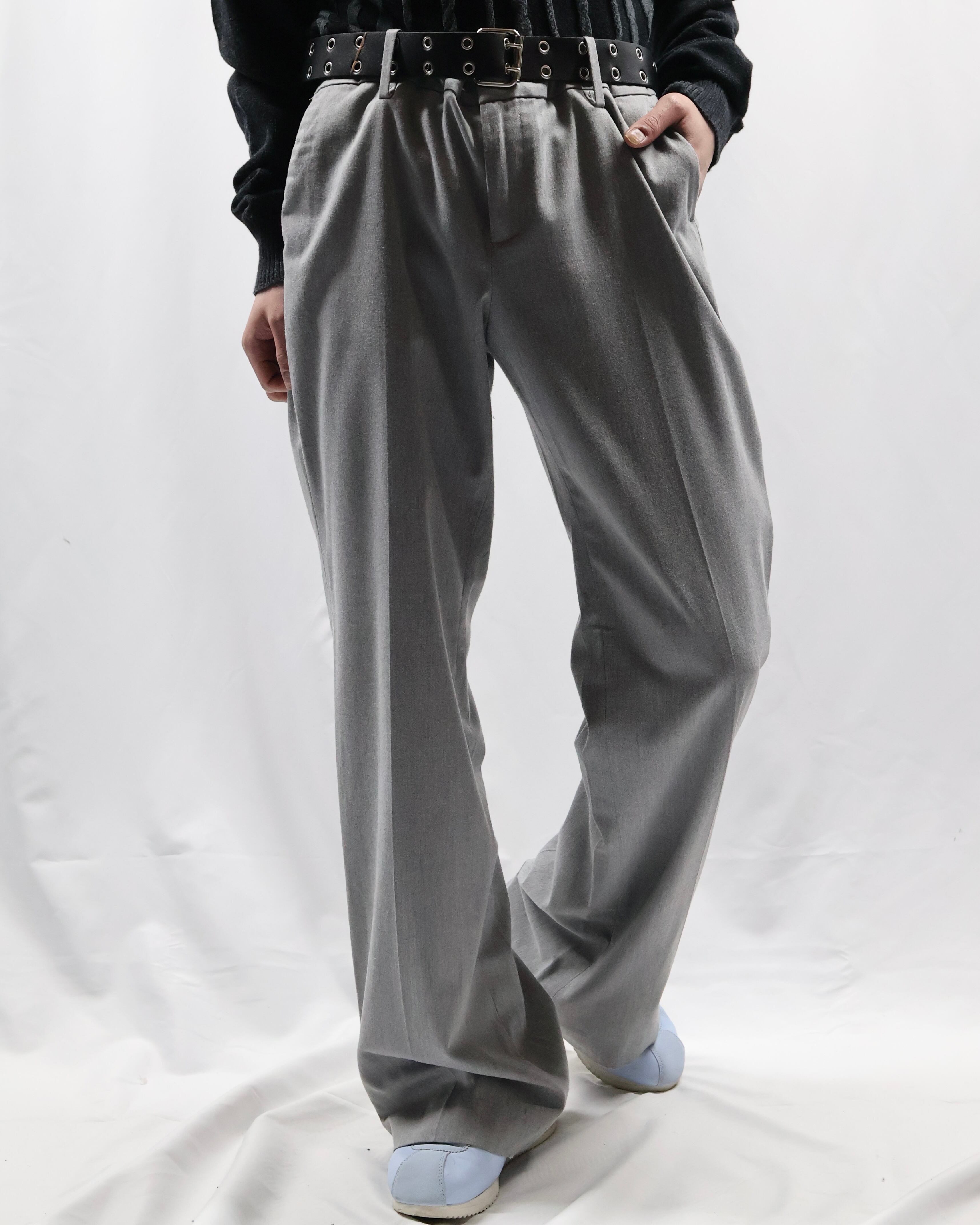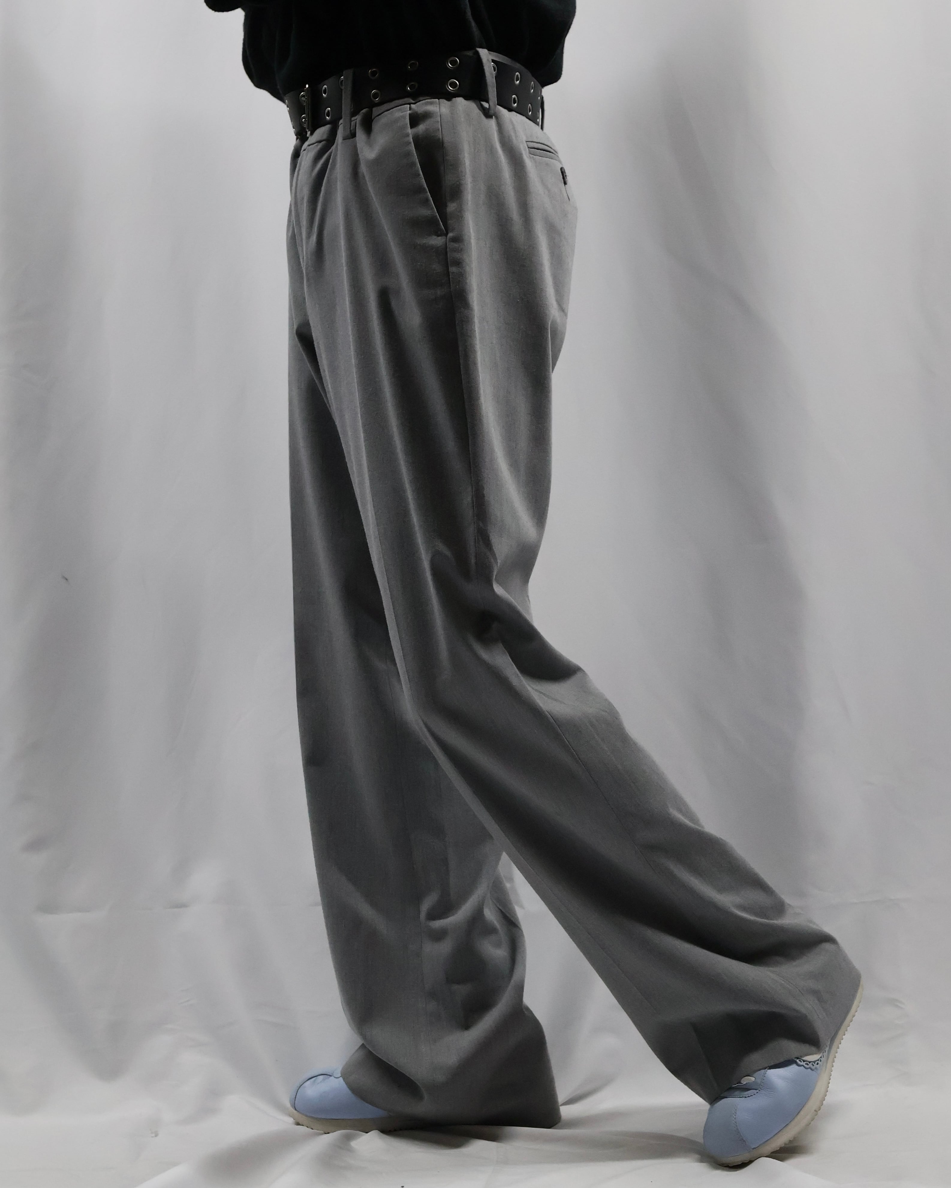 ノータックで何にでも合わせやすいライトグレーのスラックス。足元にストンと落ちる綺麗なトラウザーです。ノータックなことでボトムス以上でも以下でもない、ベースをしっかりと作り上げてくれるとりあえず一枚履いておきたいパンツ。ライトグレーというカラーがオールシーズンに馴染む色合いで様々な場所に連れていきたくなります。