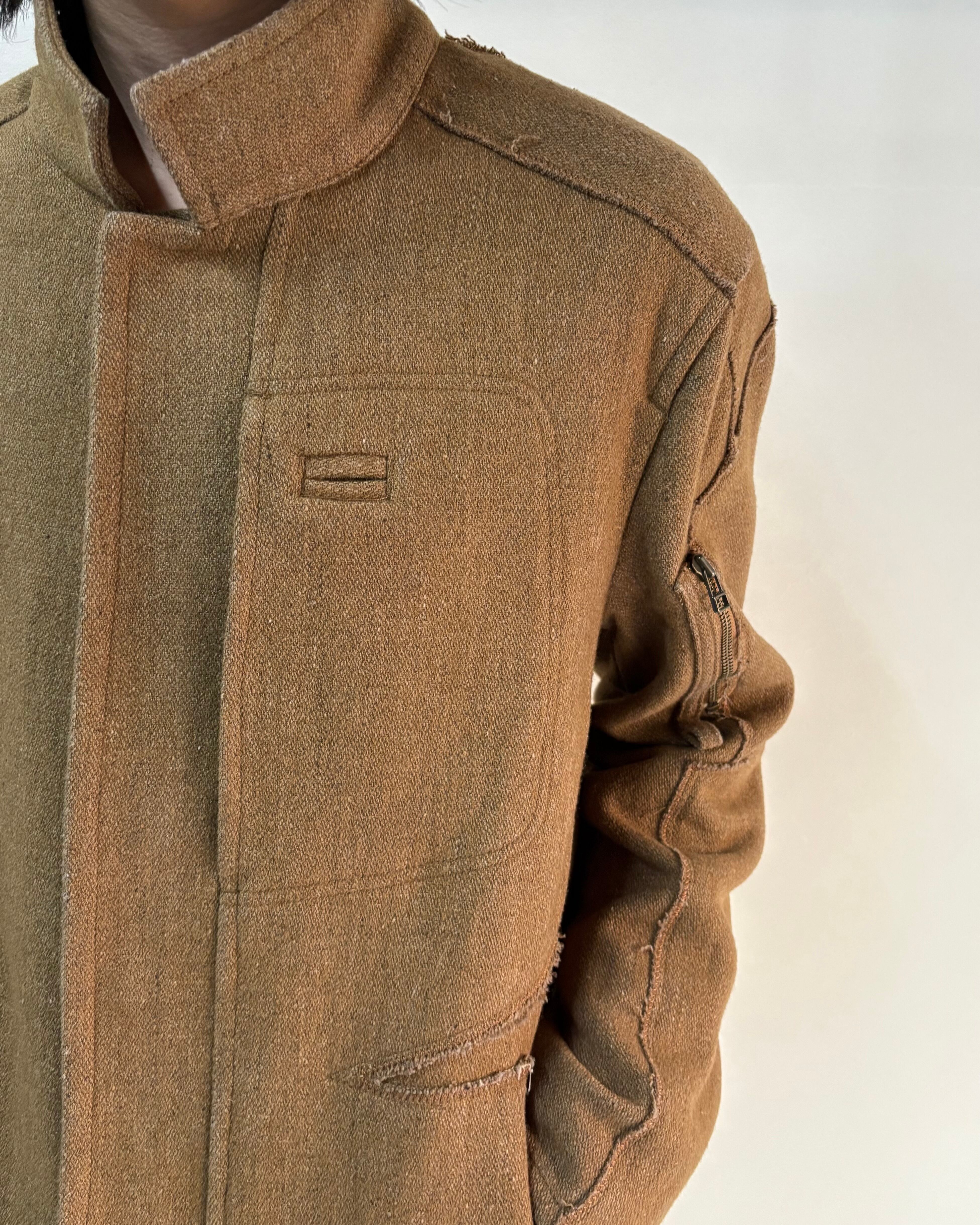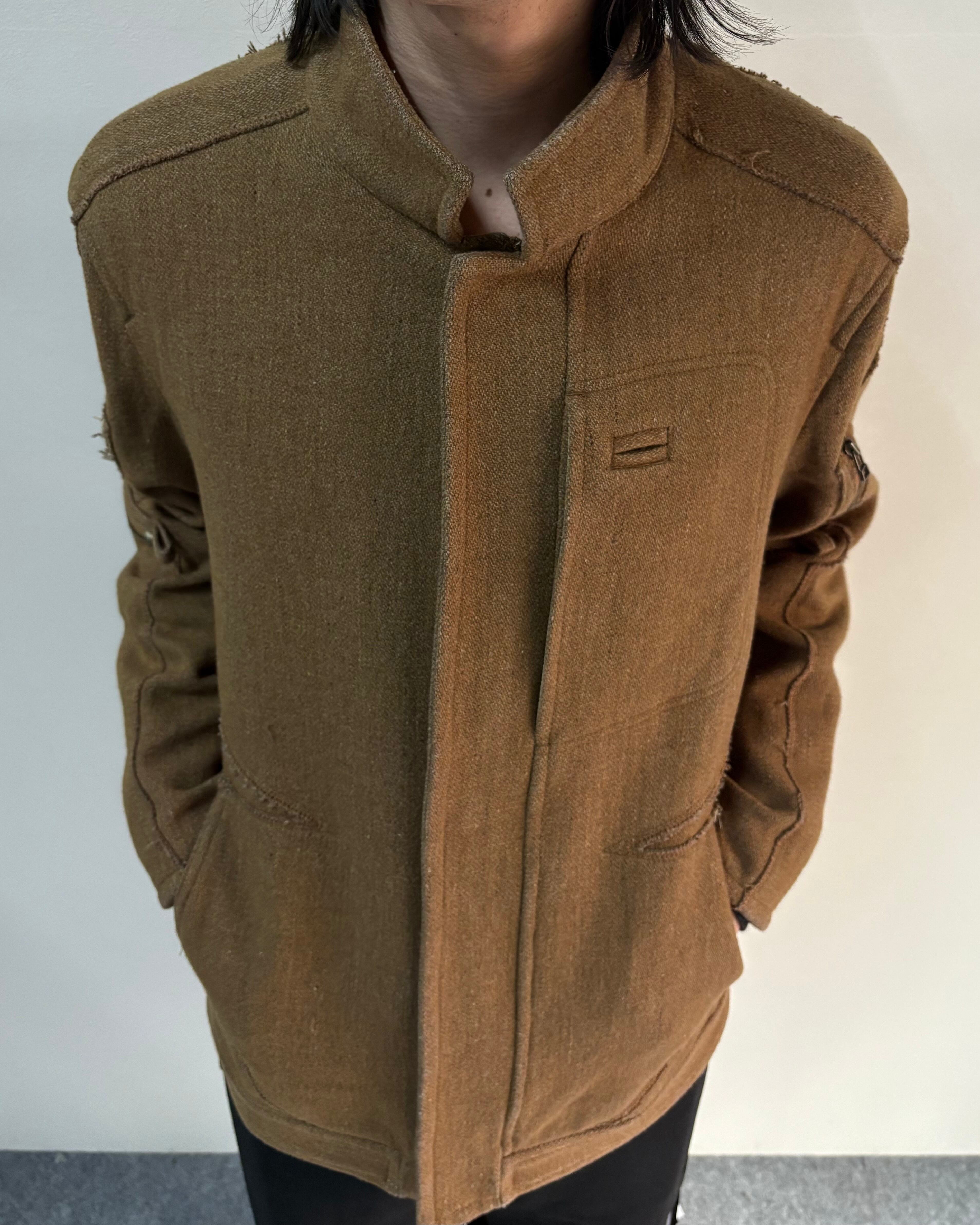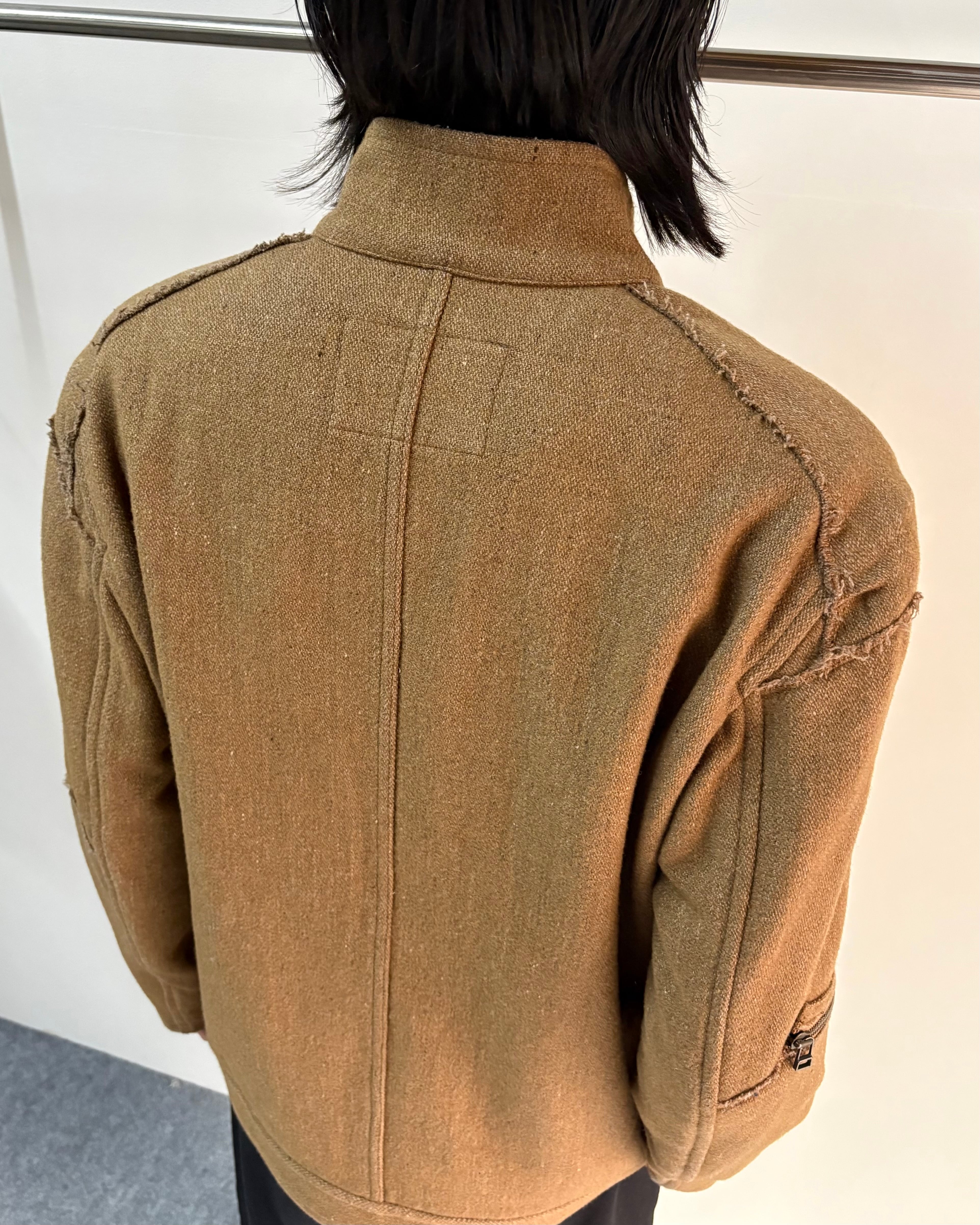 ミリタリージャケットをベースに、ジルボーらしい再構築的デザインと立体的パターンワークを落とし込んだ一着。