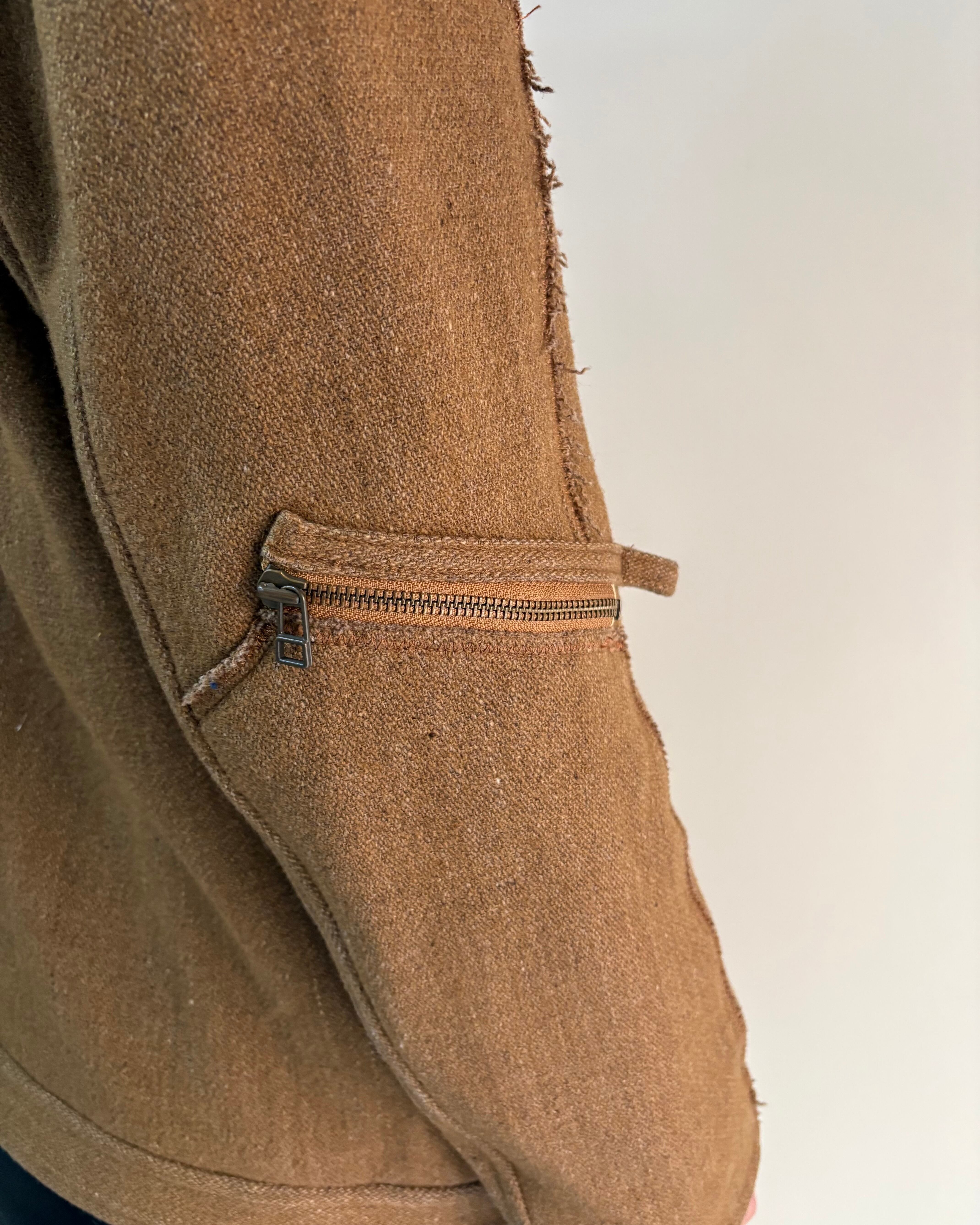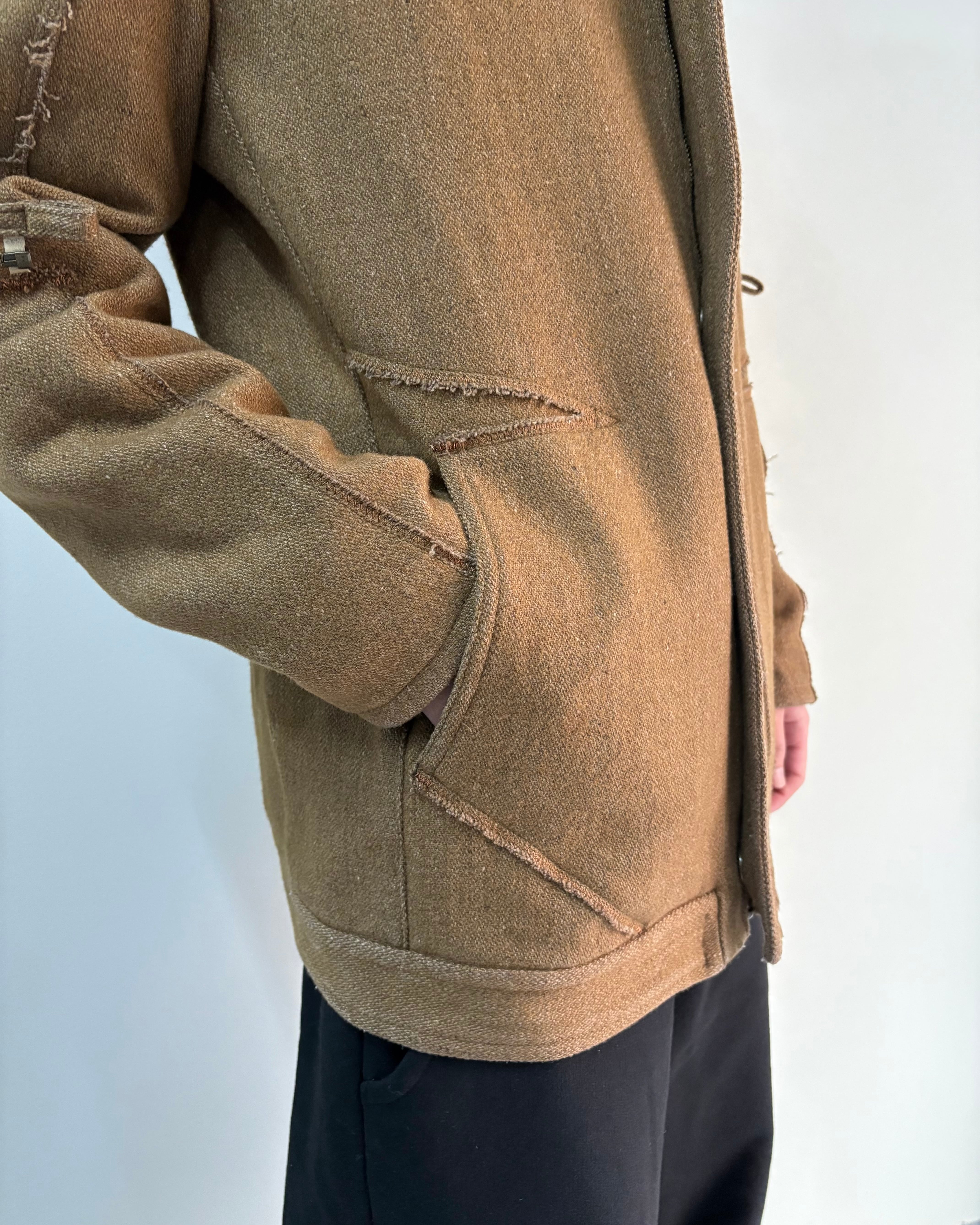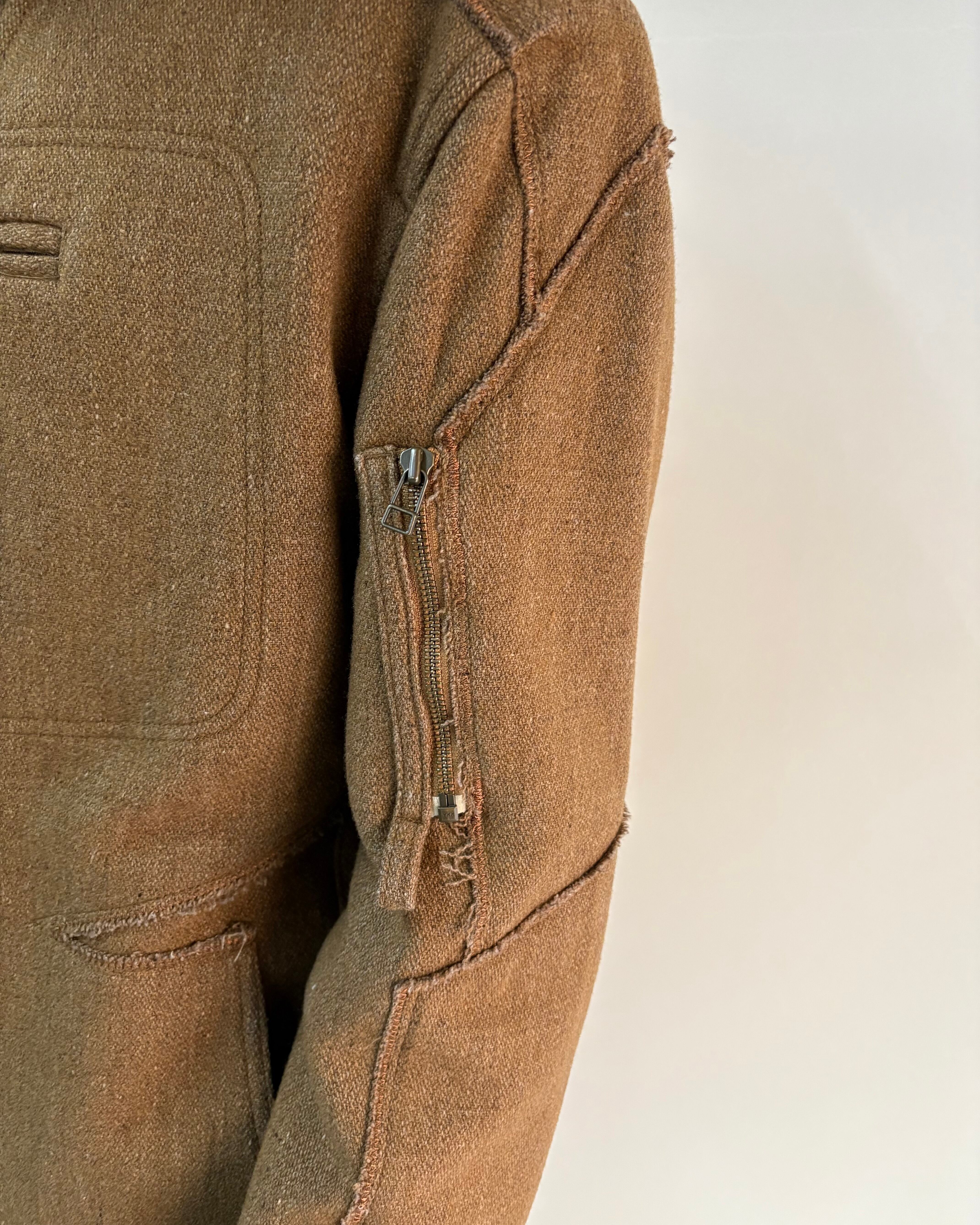 ミリタリージャケットをベースに、ジルボーらしい再構築的デザインと立体的パターンワークを落とし込んだ一着。