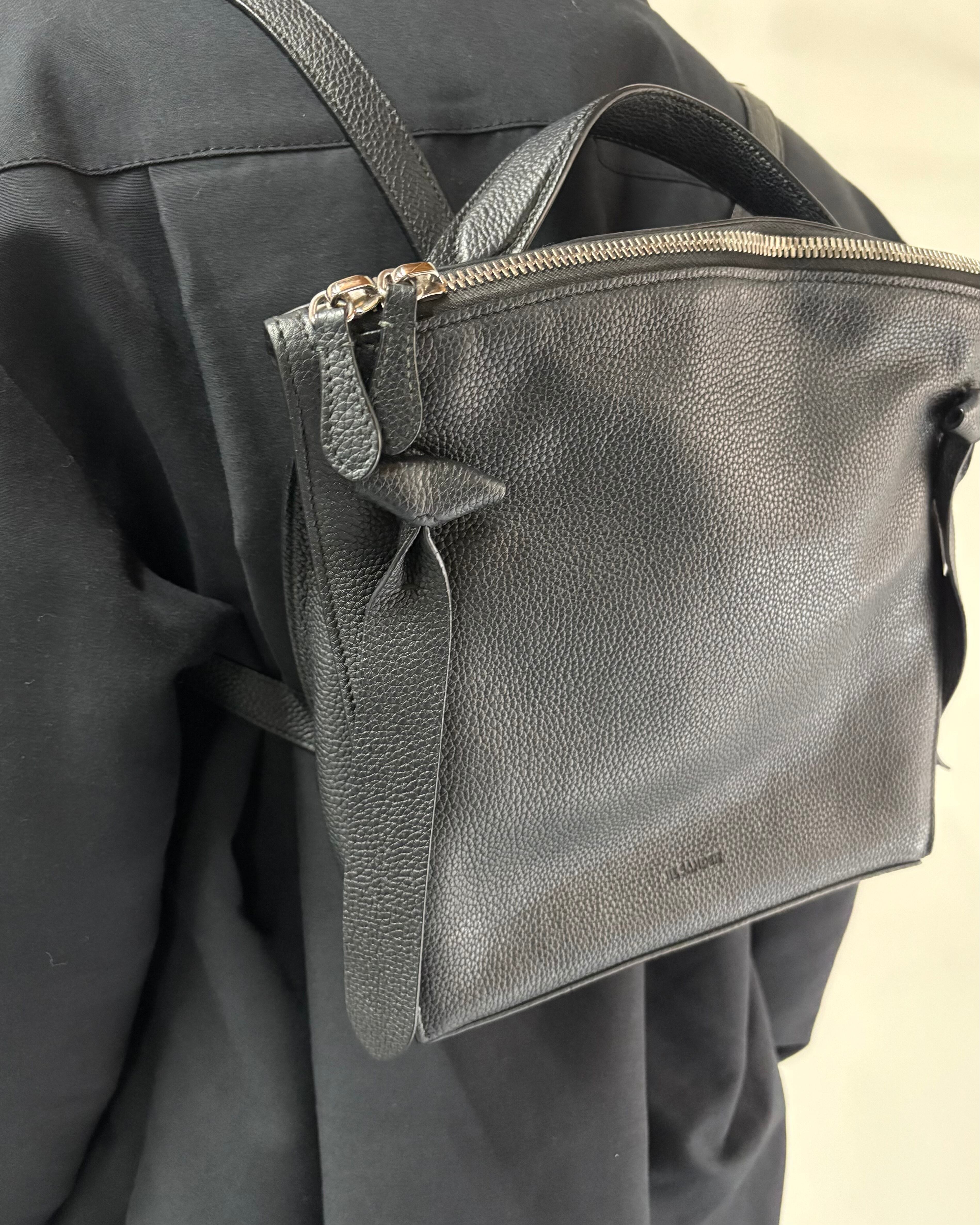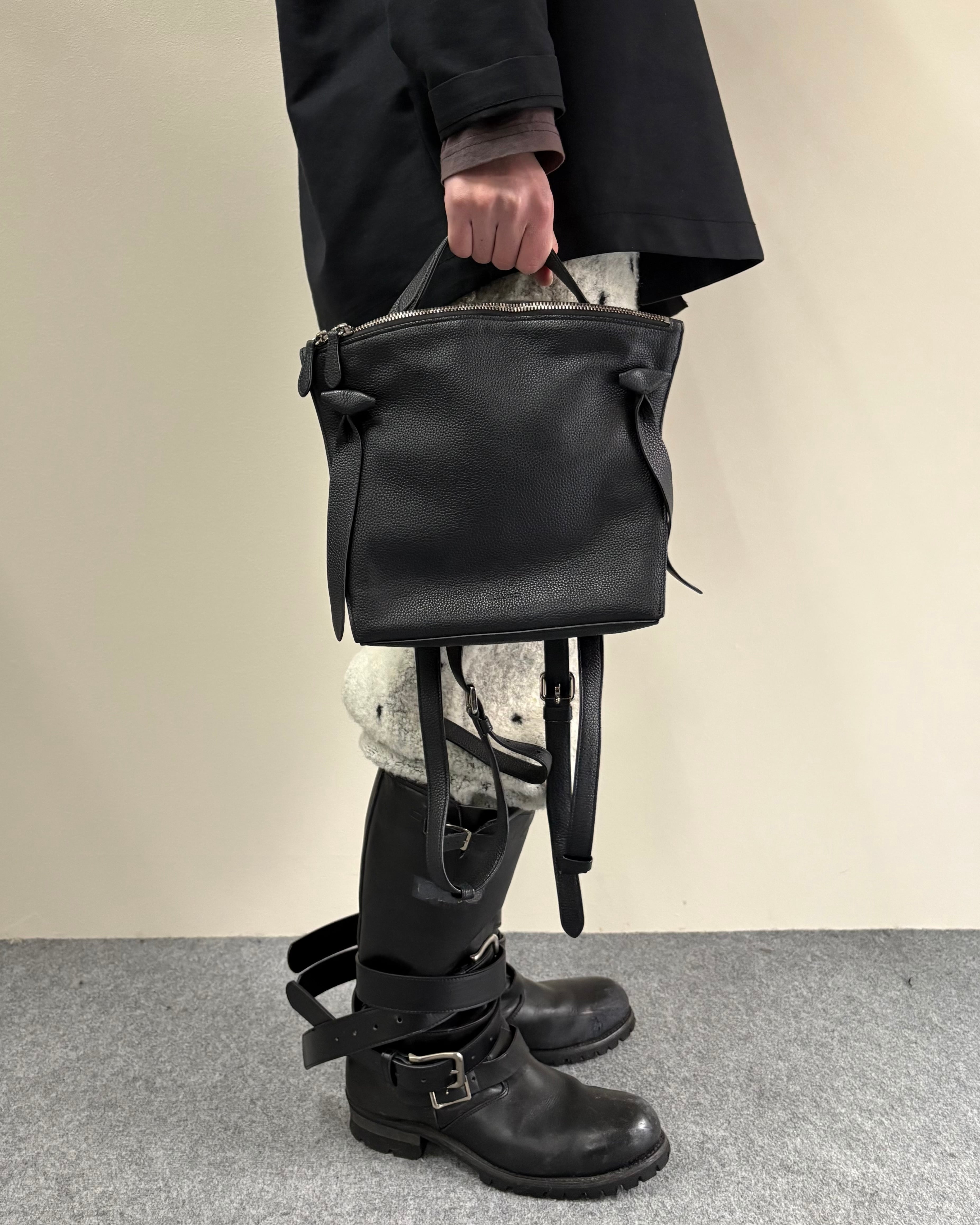 トップハンドル+バックパックストラップ の2WAY仕様で、手持ち・背負いの両方が可能。