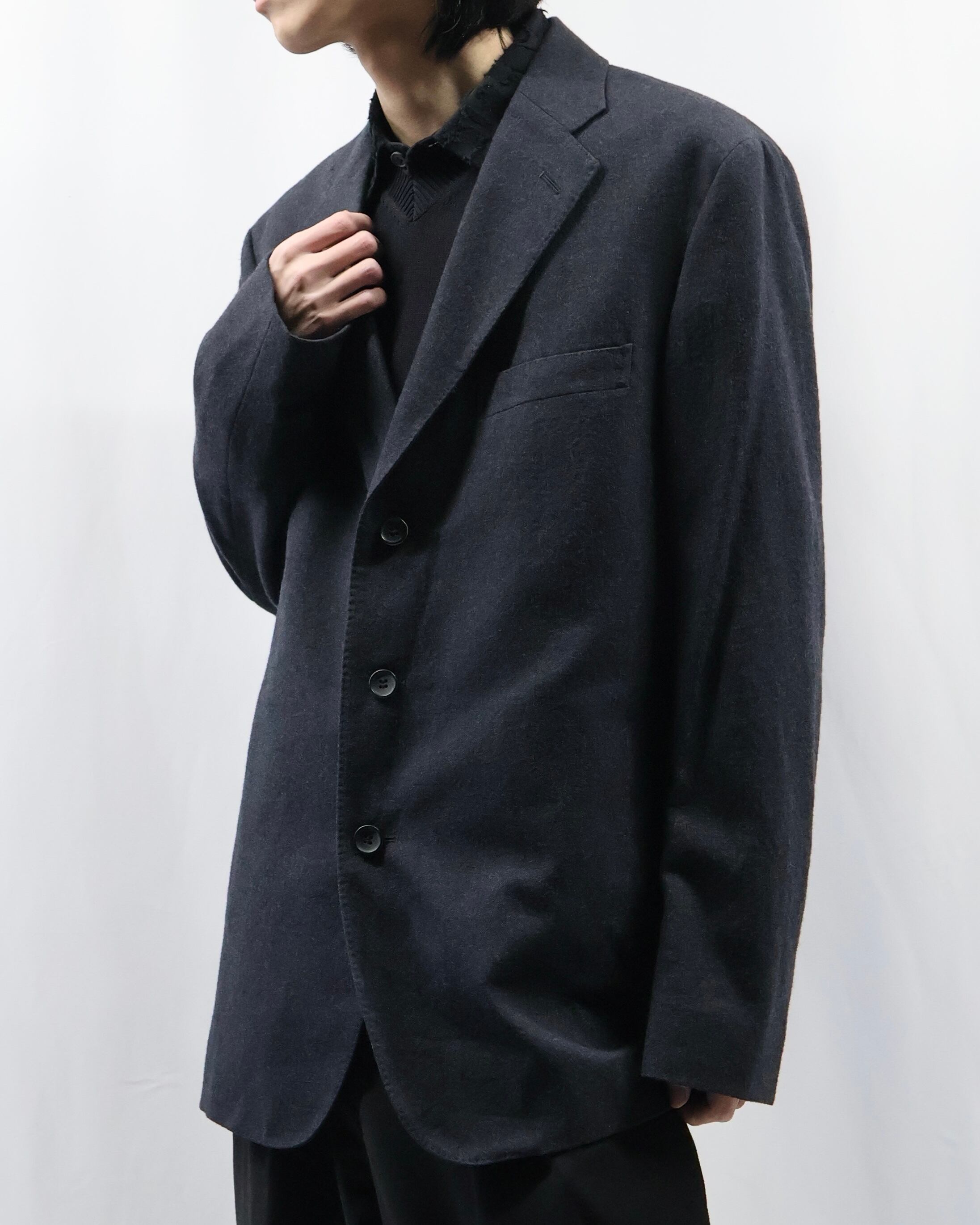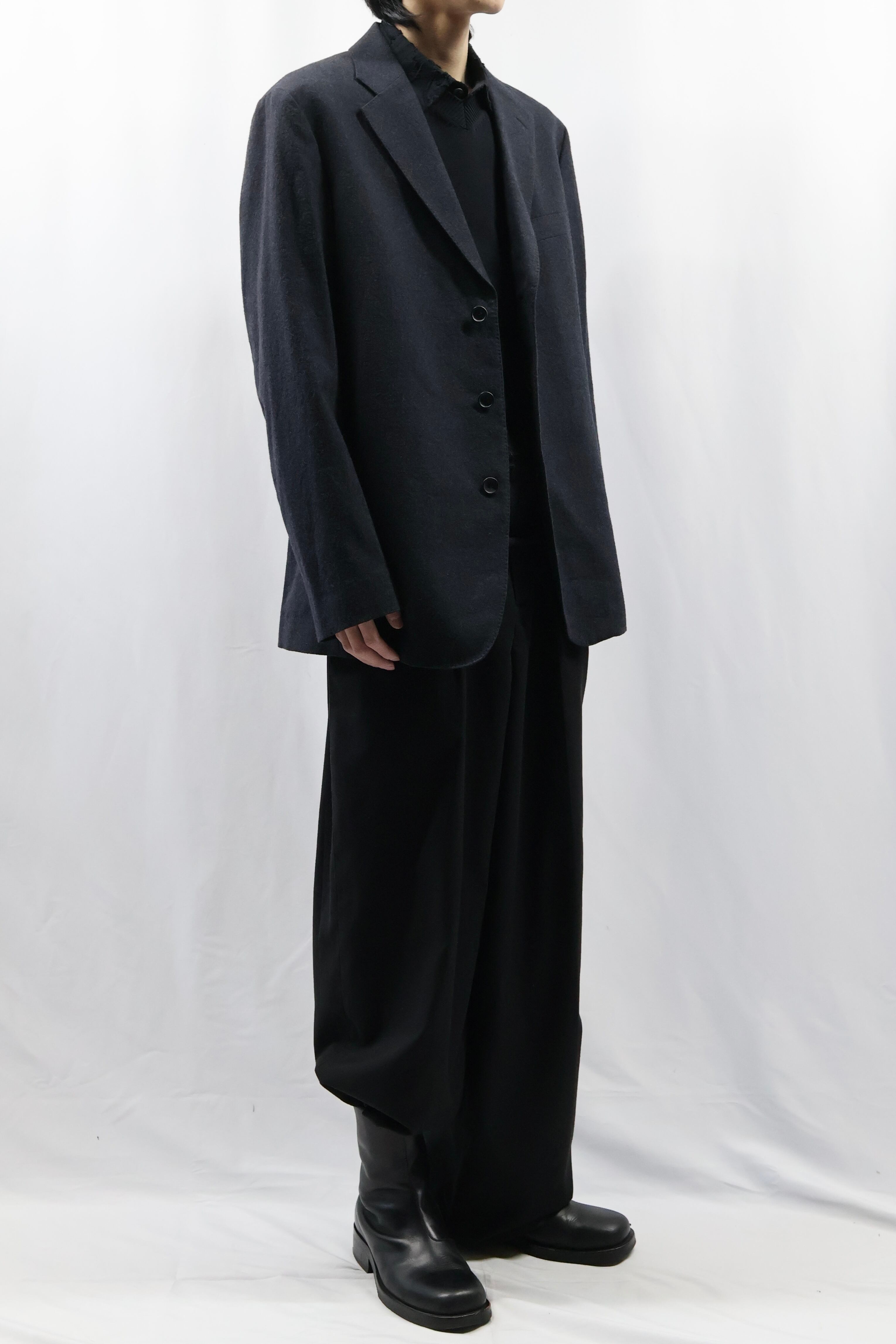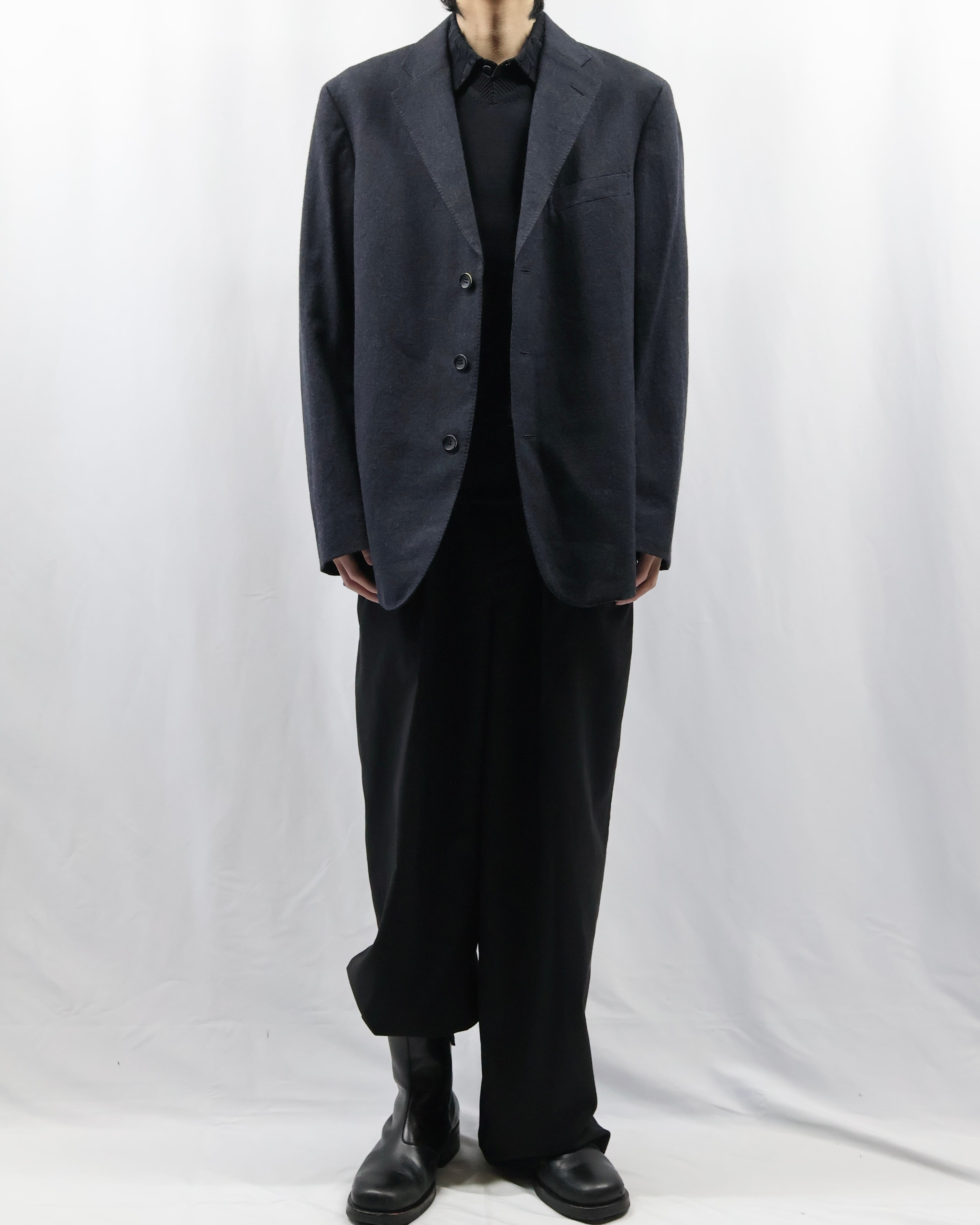 色味もあって、何を合わせてもはまるような汎用性の高いジャケット。ラペルの大きさやシルエットがミニマルでシンプルではありながら高級な存在感を放つ、テーラードとして完成度が高い一枚。