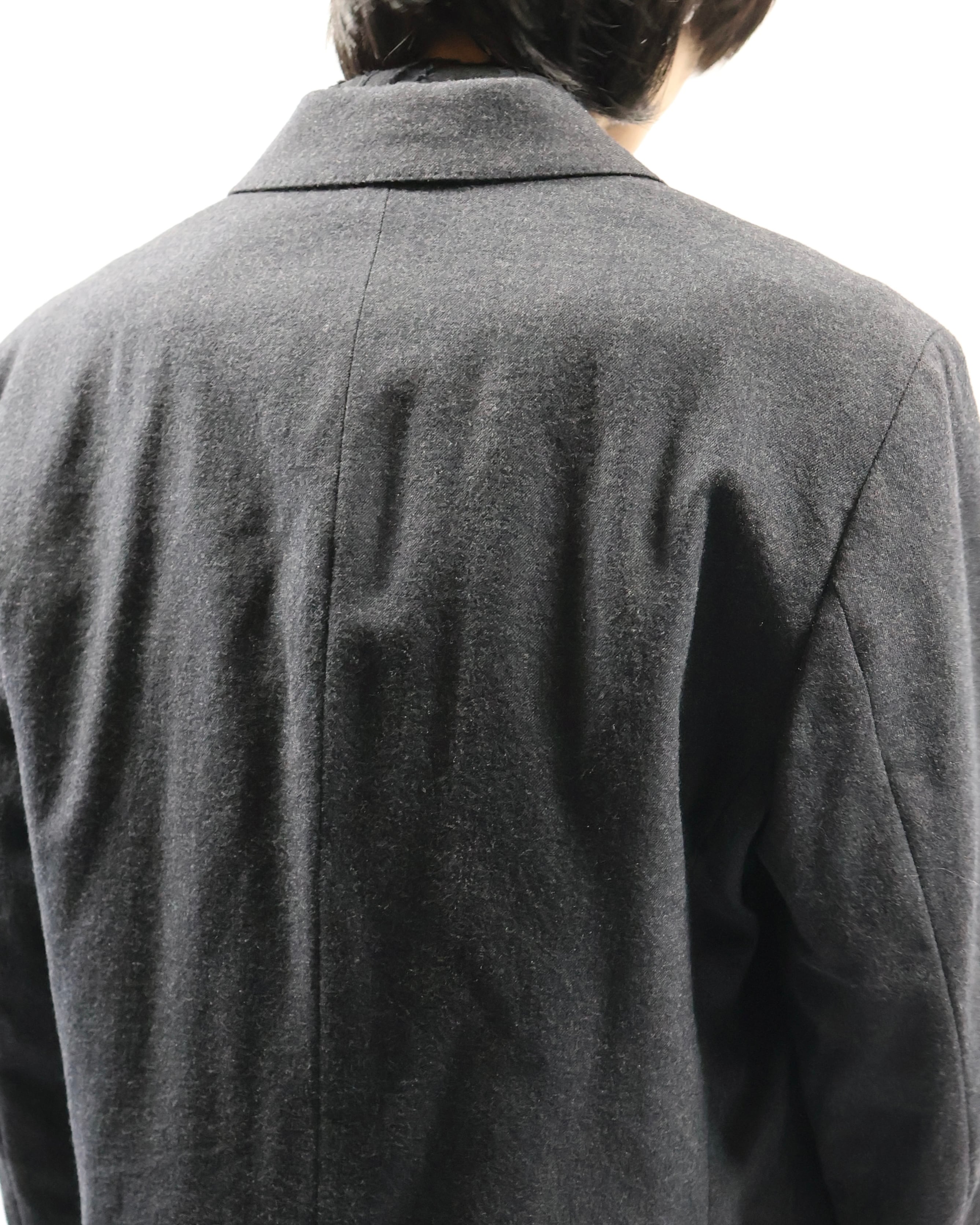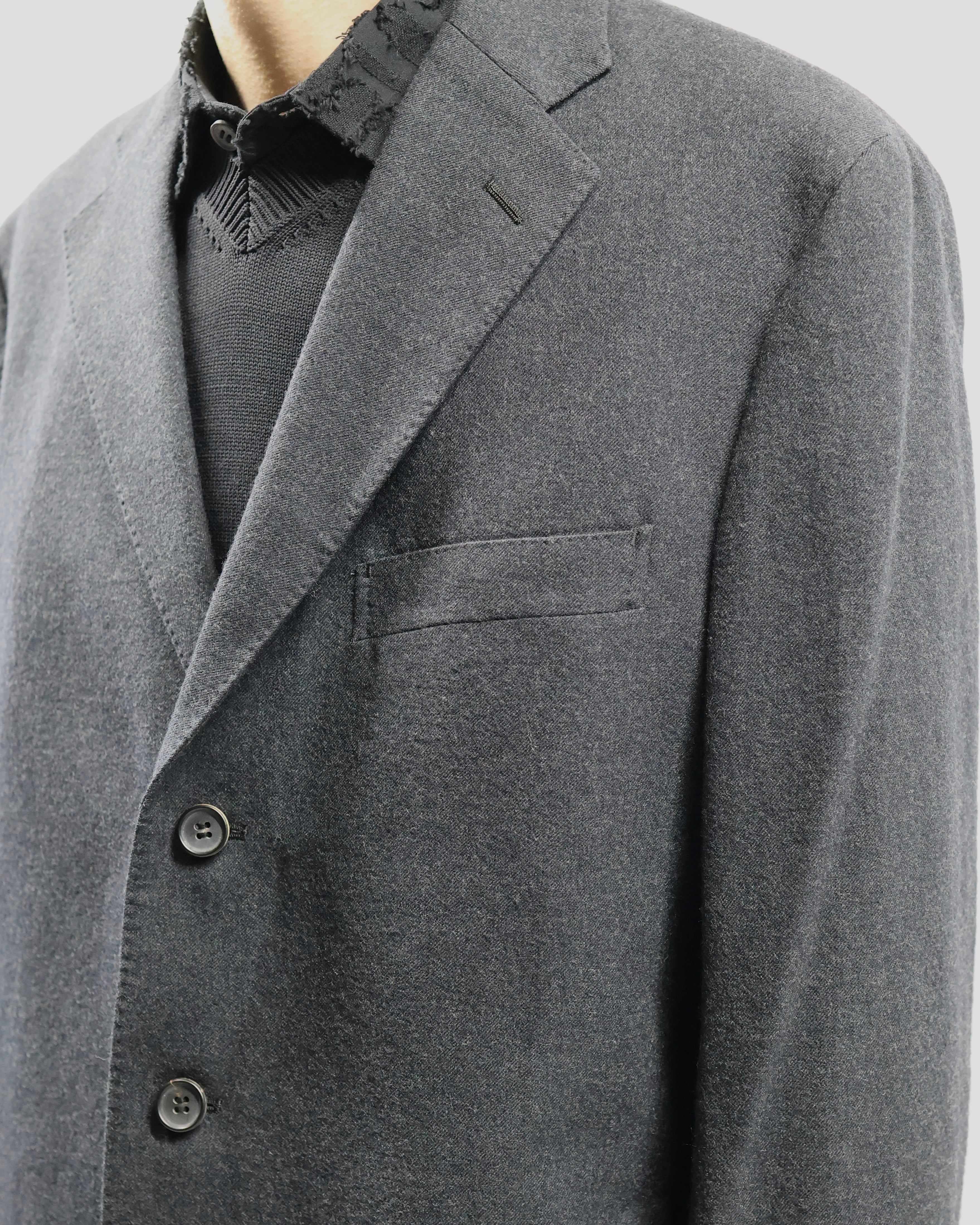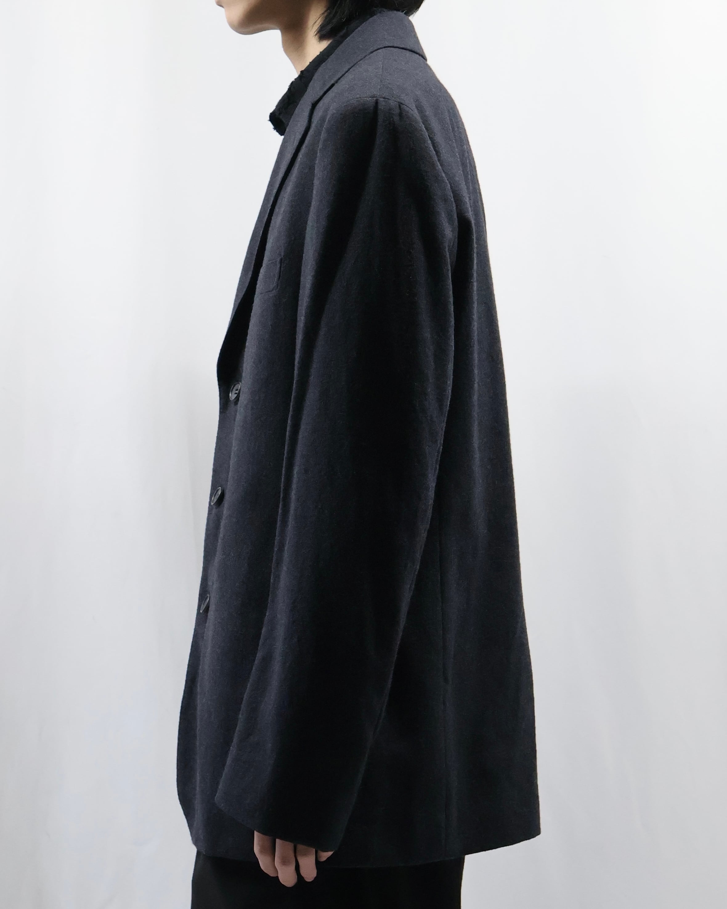 色味もあって、何を合わせてもはまるような汎用性の高いジャケット。ラペルの大きさやシルエットがミニマルでシンプルではありながら高級な存在感を放つ、テーラードとして完成度が高い一枚。
