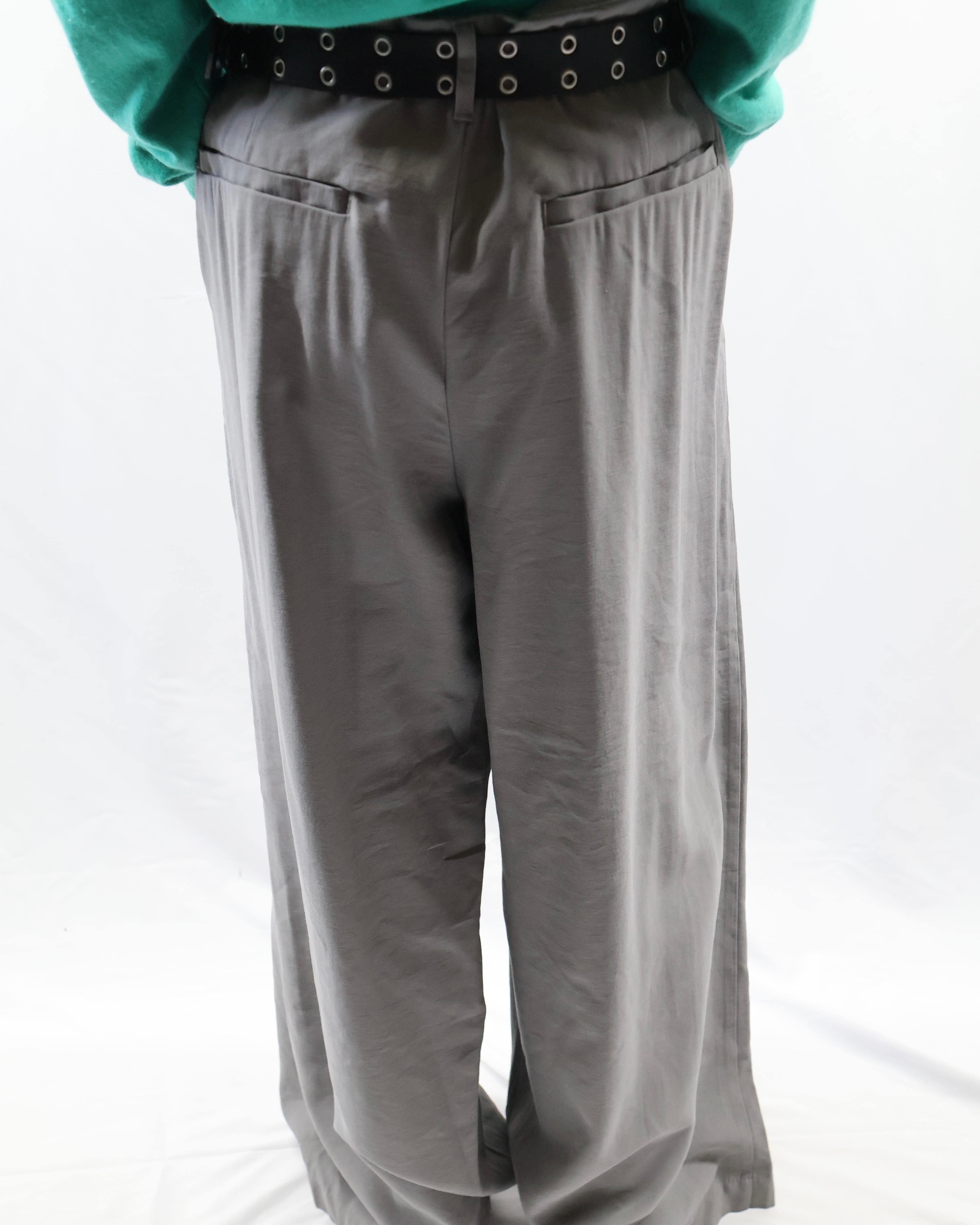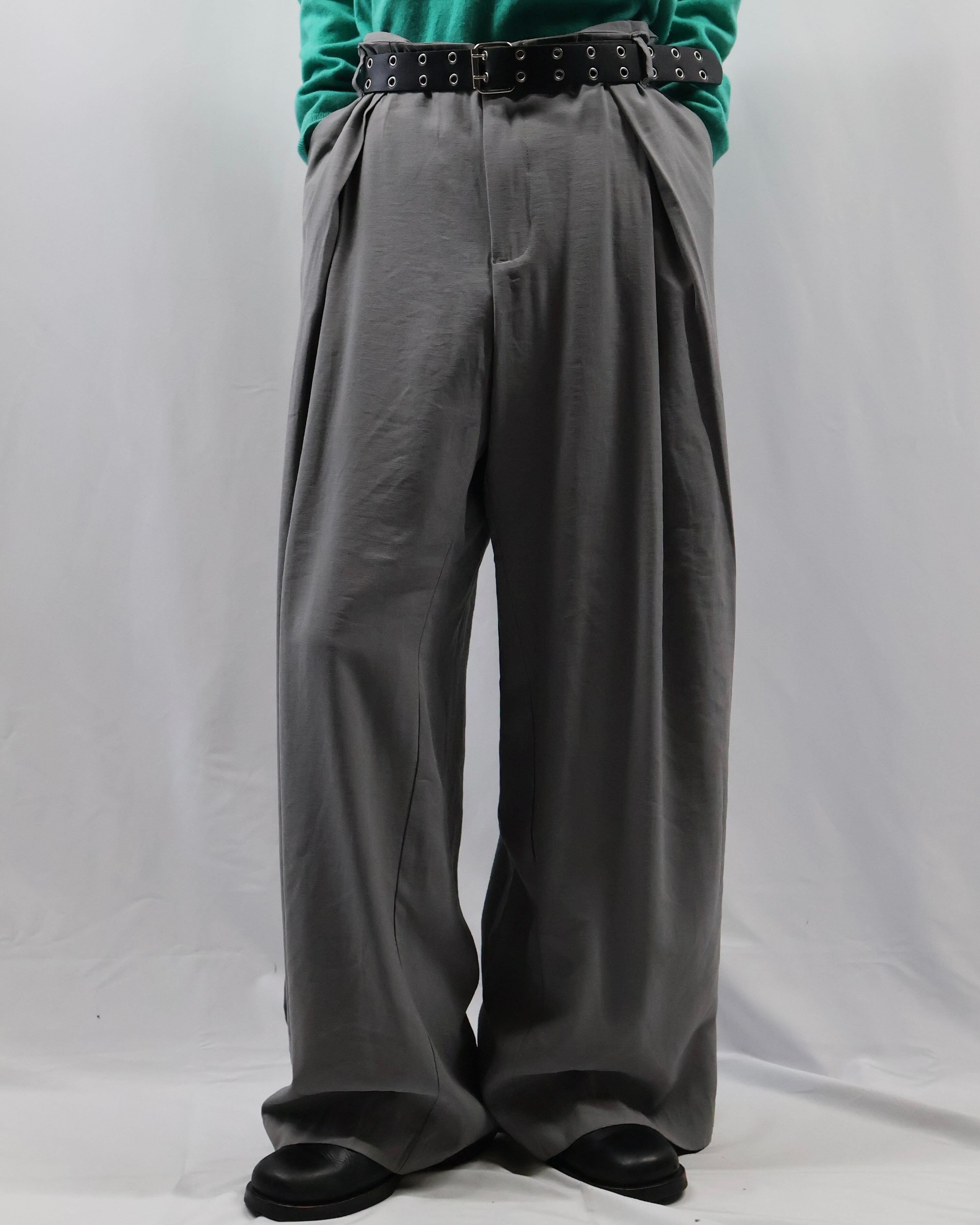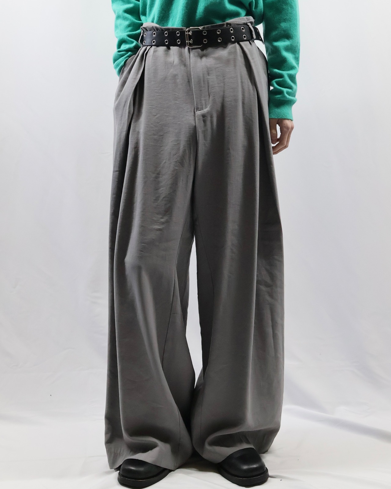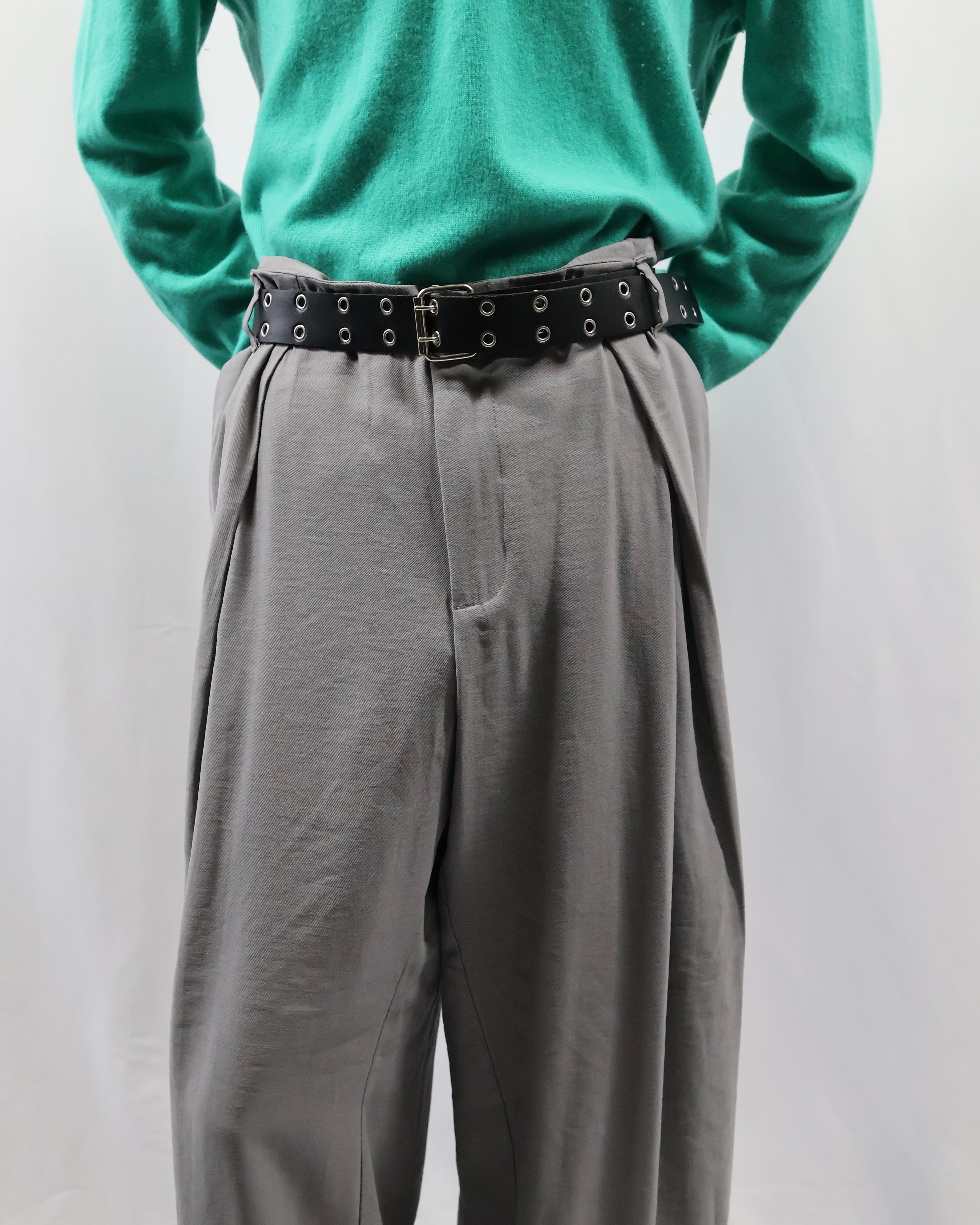 色味が良く、コテコテのクラシックになりすぎずファッションに落とし込めるワイドストレートのスラックス。タックの入り方が特徴的でドレープ感といやらしくない動きを演出しており、シンプルなコーディネートに差し込むだけで一気にスタイリングとして格上げされます。