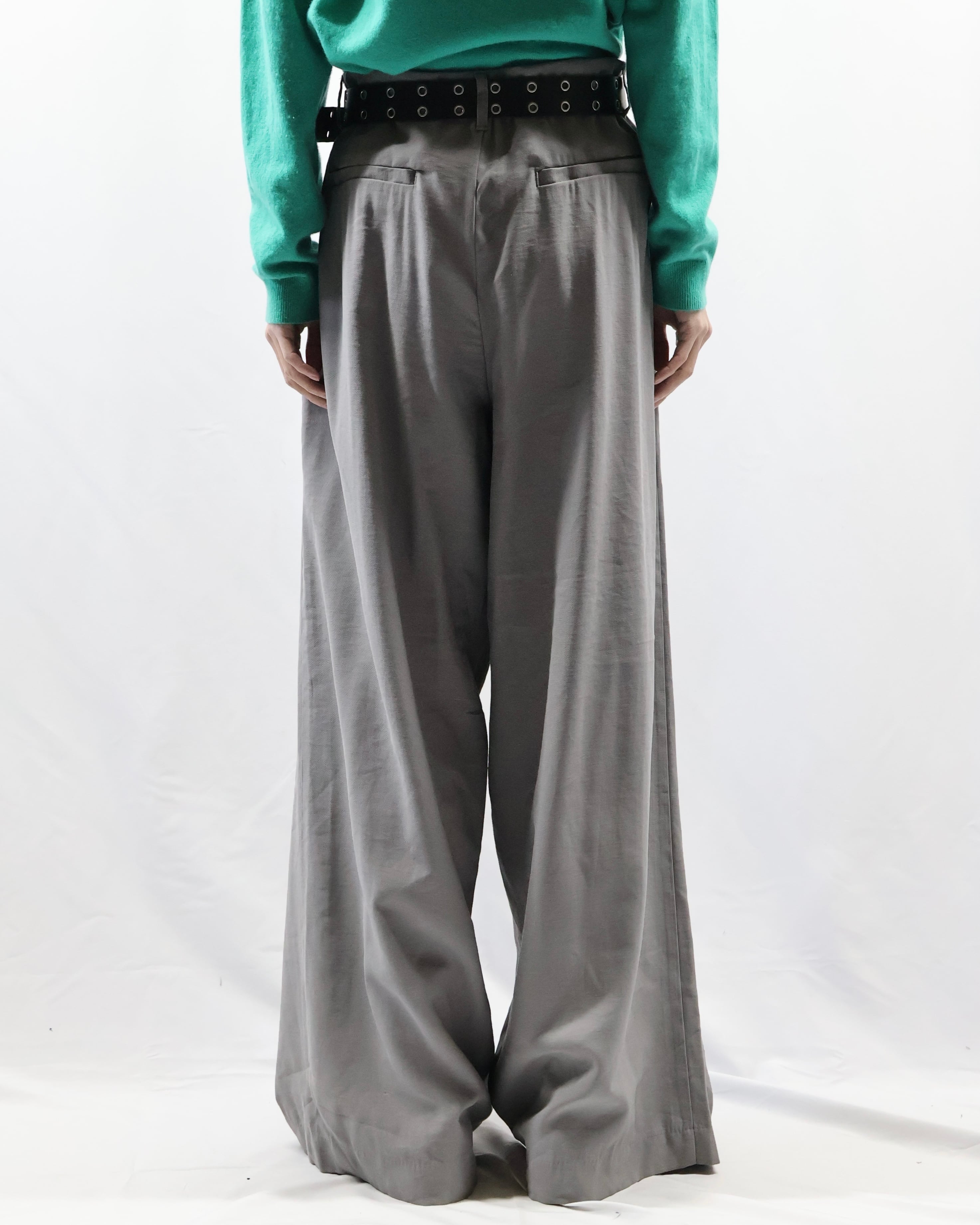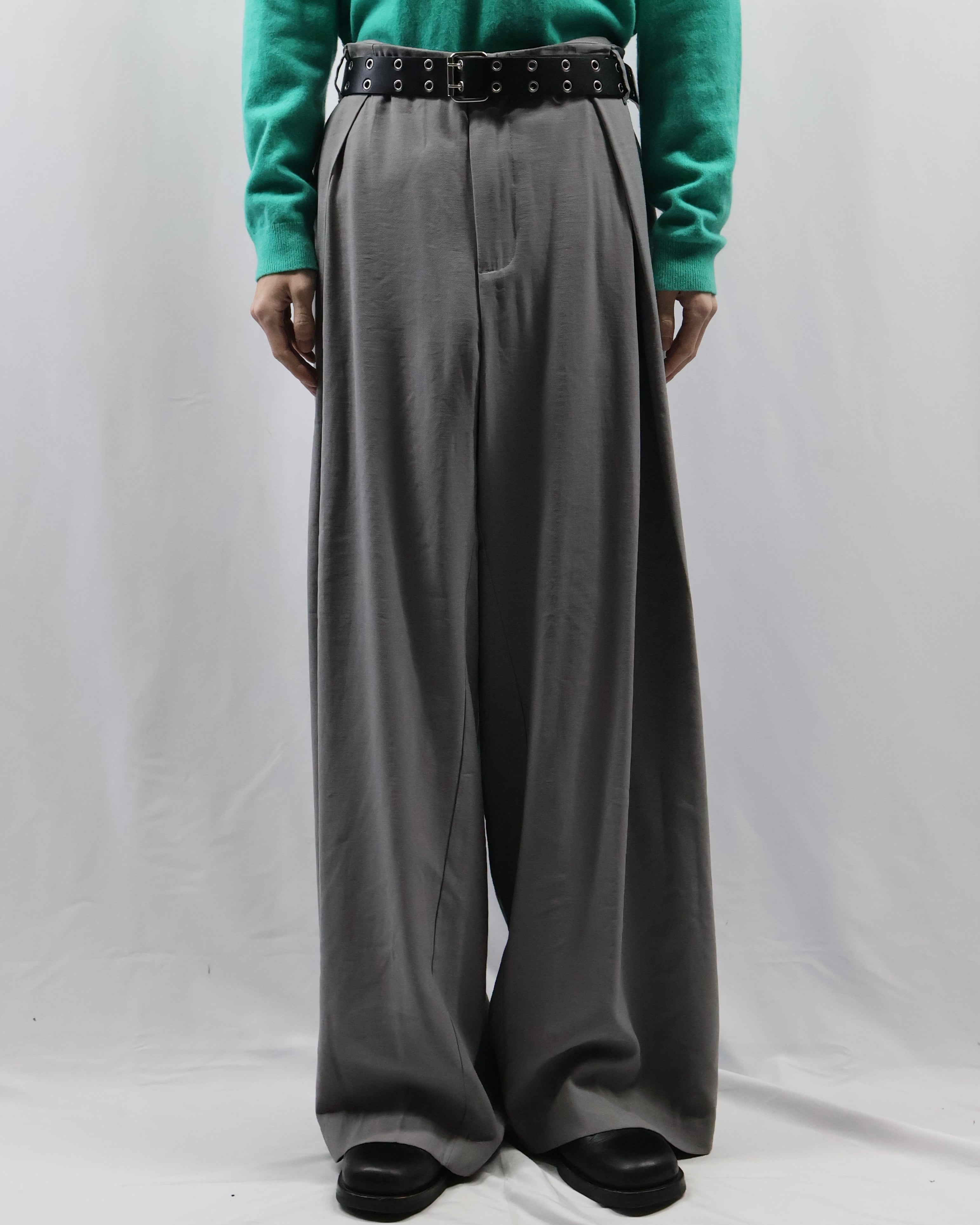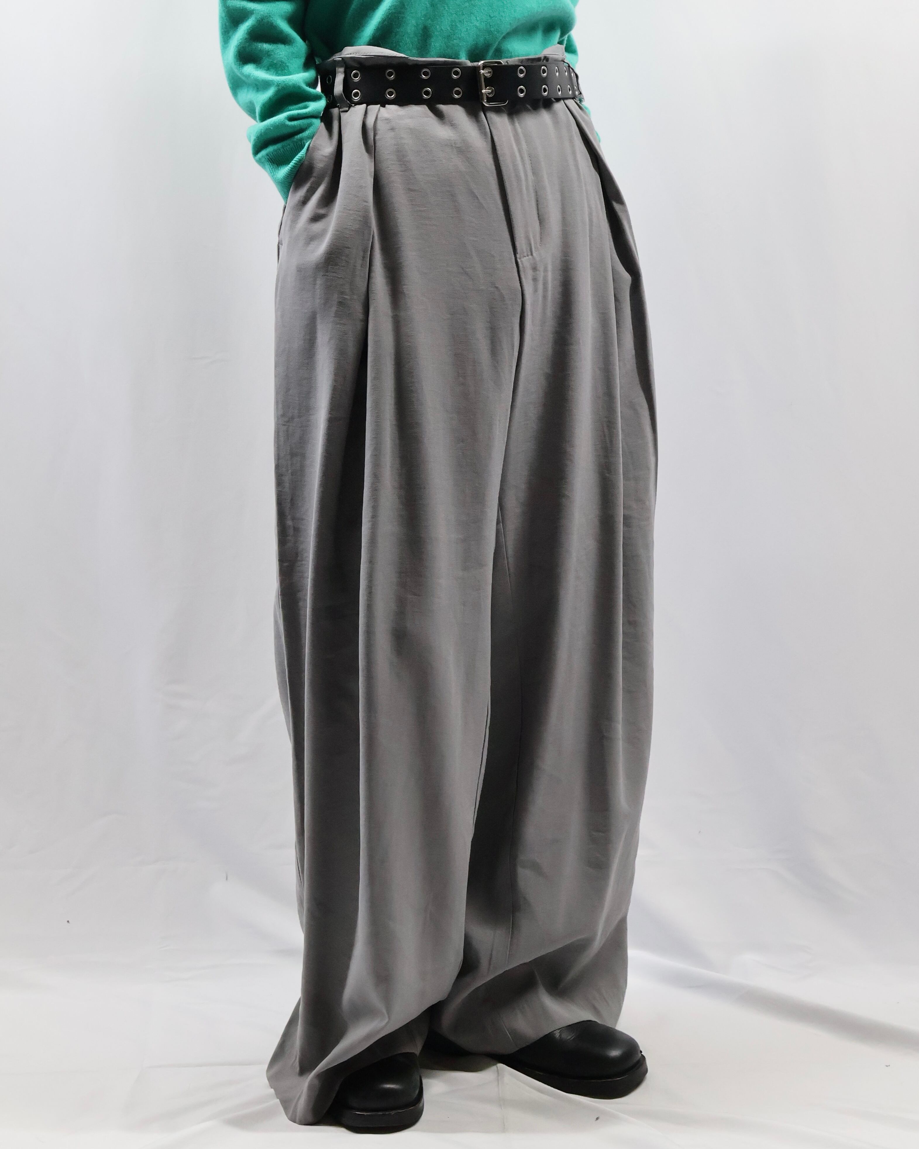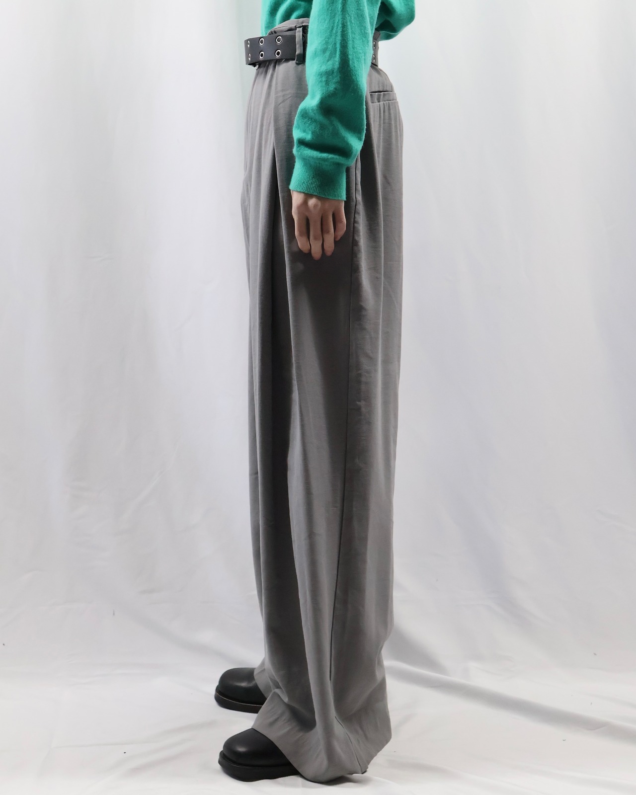 色味が良く、コテコテのクラシックになりすぎずファッションに落とし込めるワイドストレートのスラックス。タックの入り方が特徴的でドレープ感といやらしくない動きを演出しており、シンプルなコーディネートに差し込むだけで一気にスタイリングとして格上げされます。