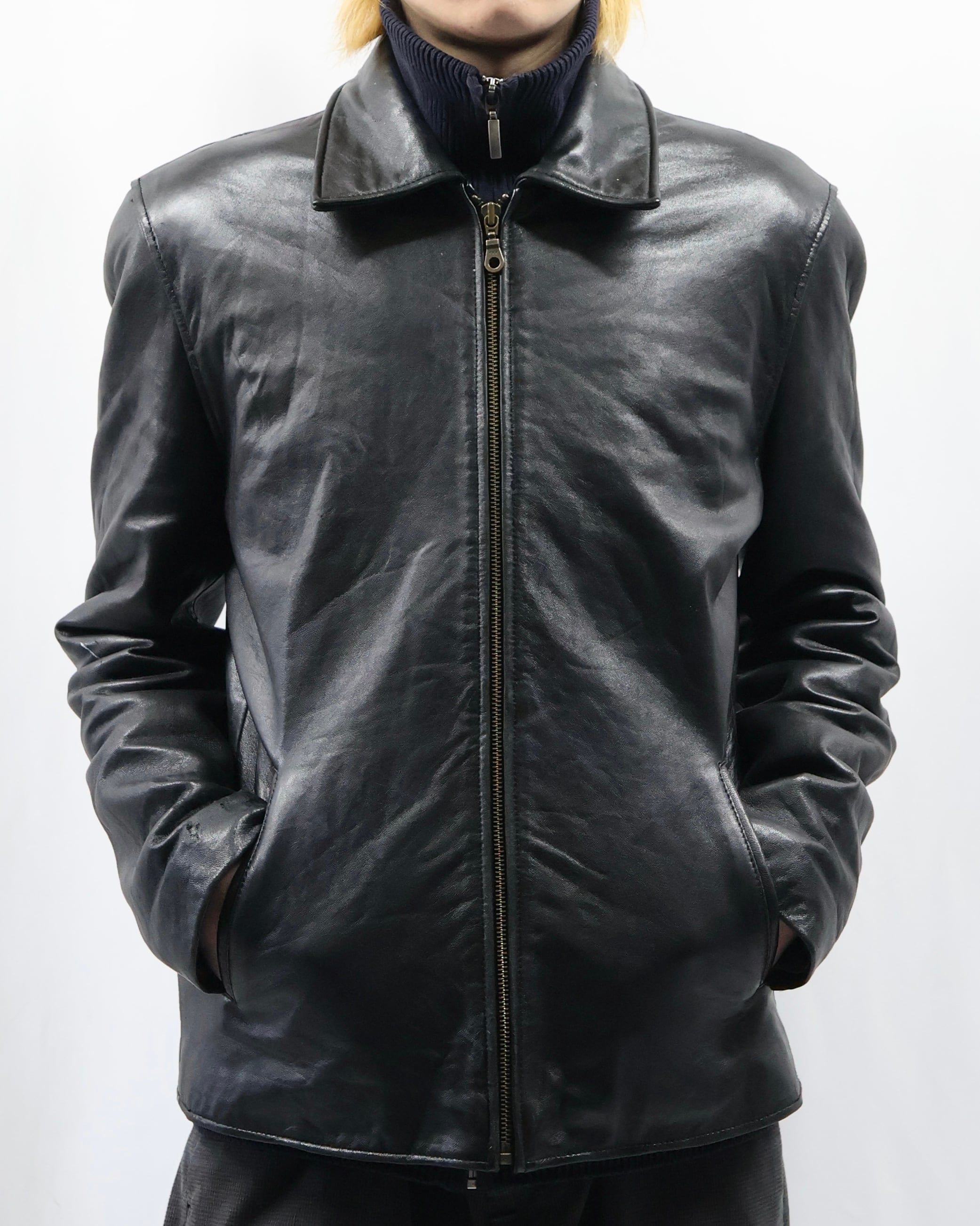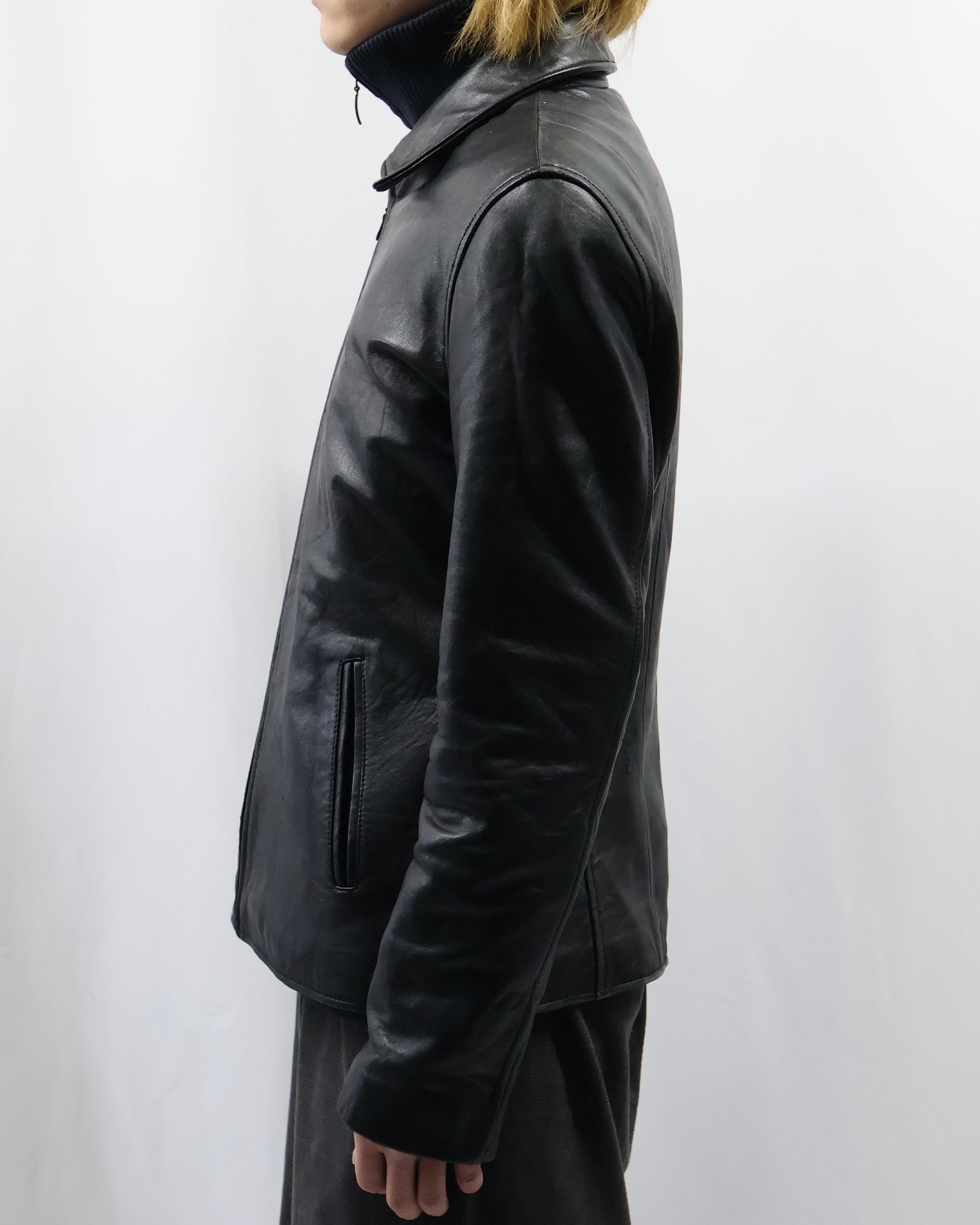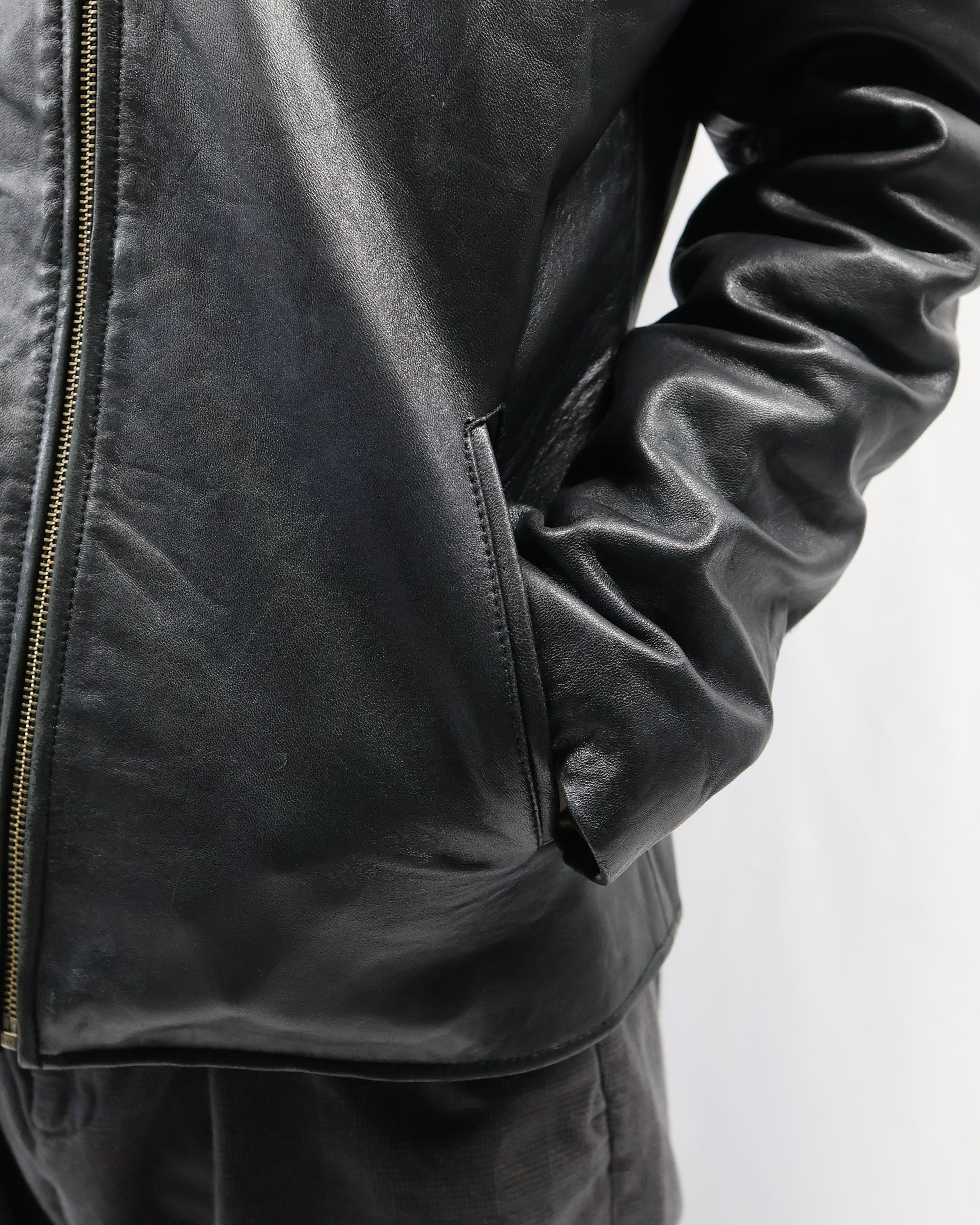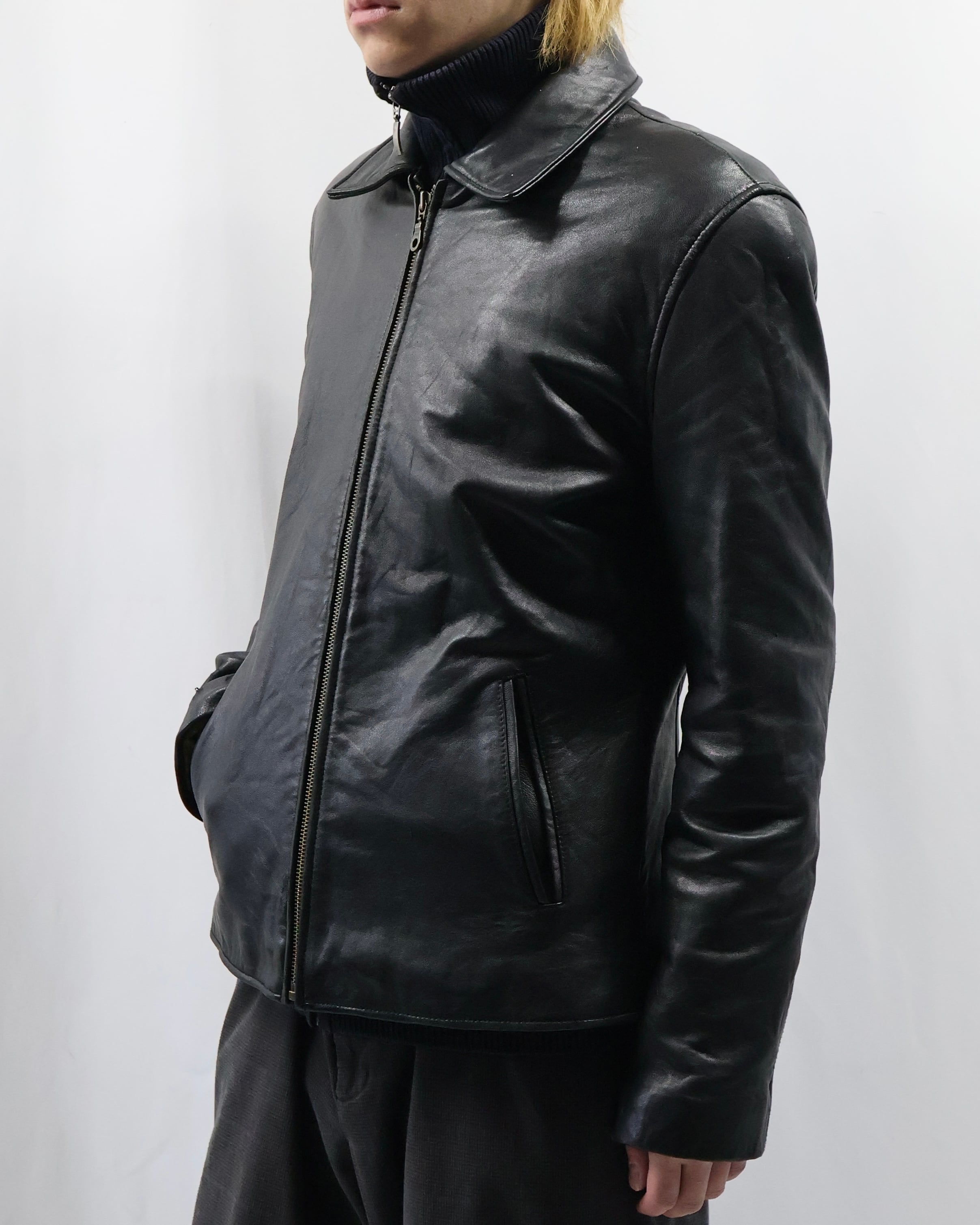 スムースレザーで綺麗に着れるレザージャケット。ミニマルな作りでハードにもカジュアルにも使える万能なレザーブルゾン。ダークトーンでまとめてハードな印象を作りたい方におすすめ。サイズ感もオーバーすぎず、タイムレスに着ていただけます。