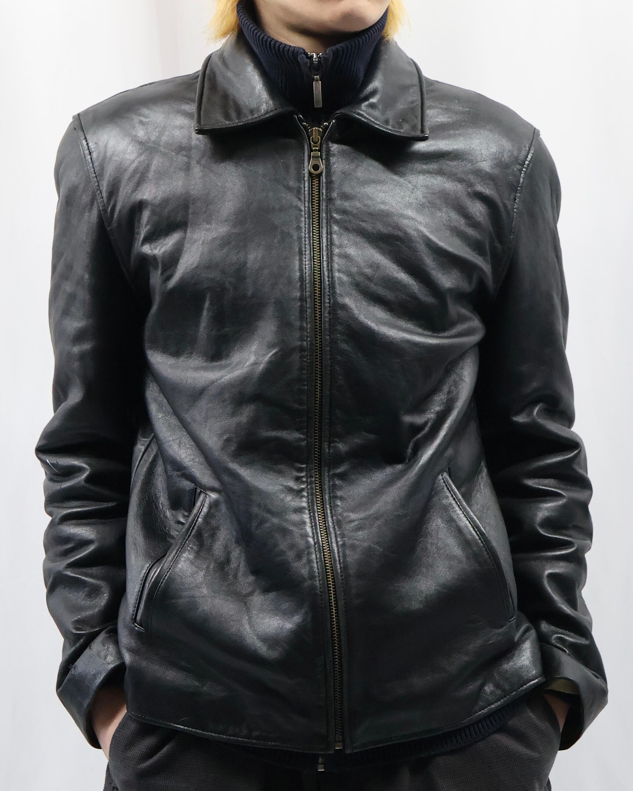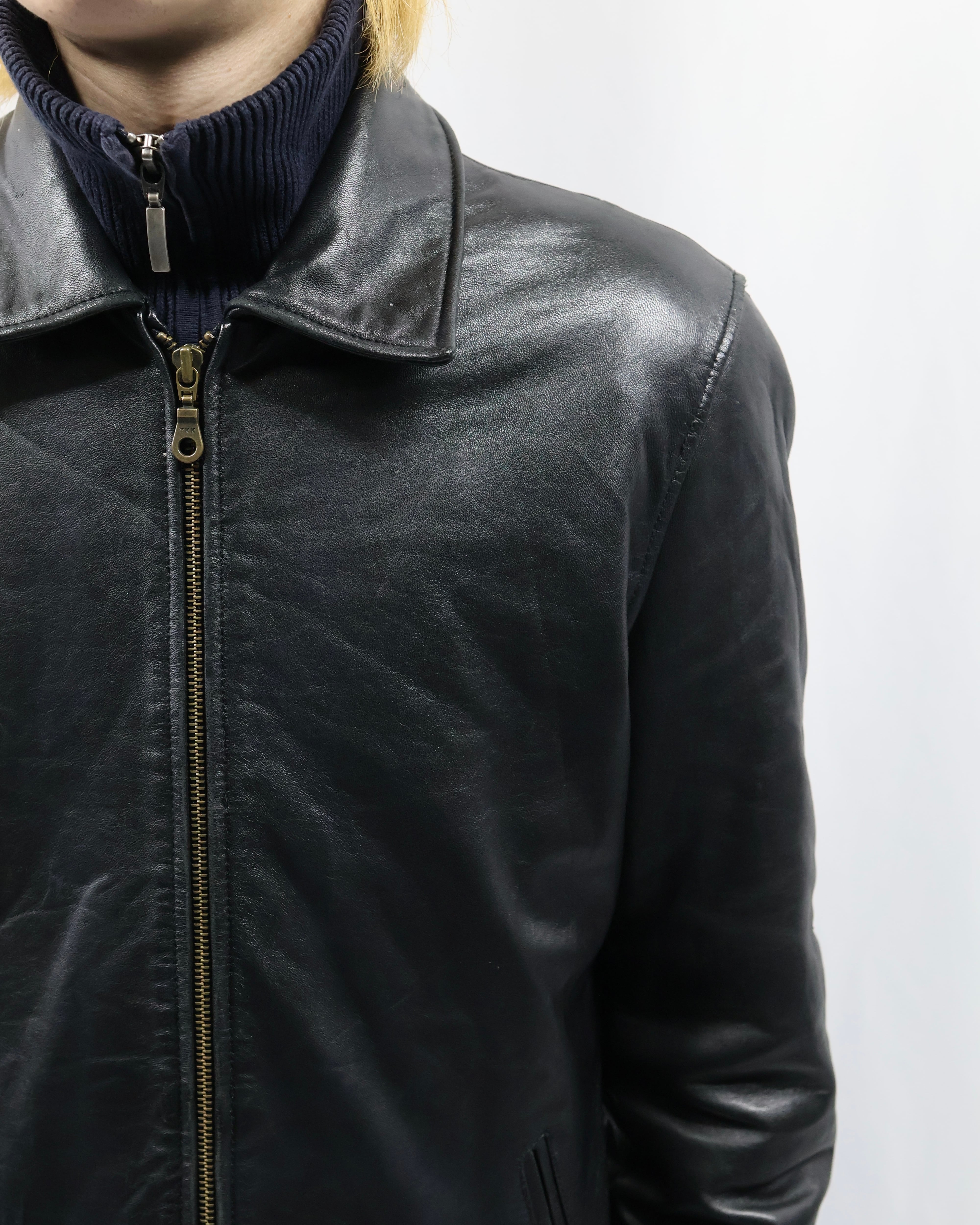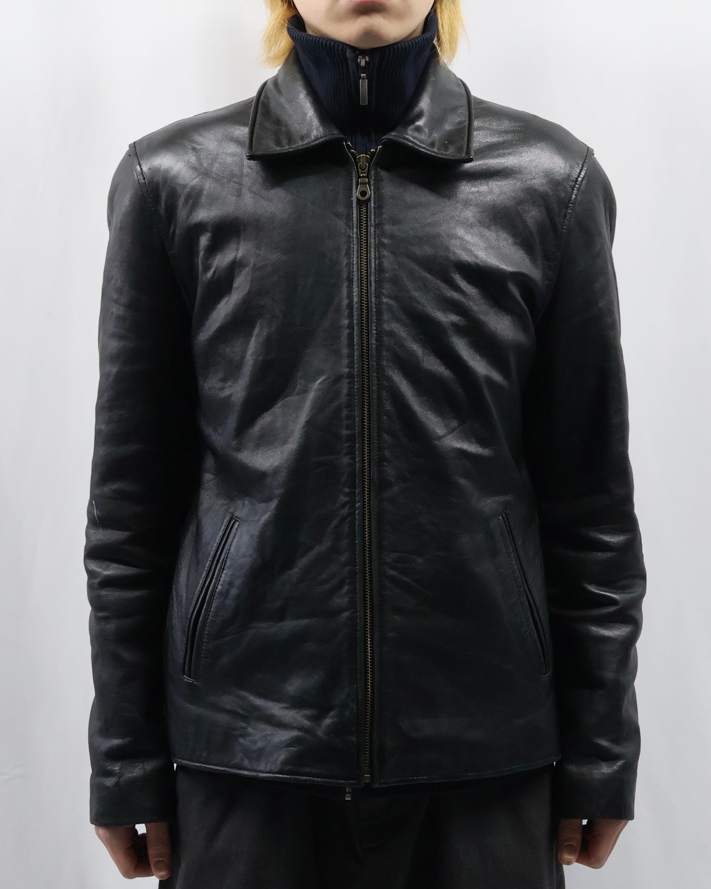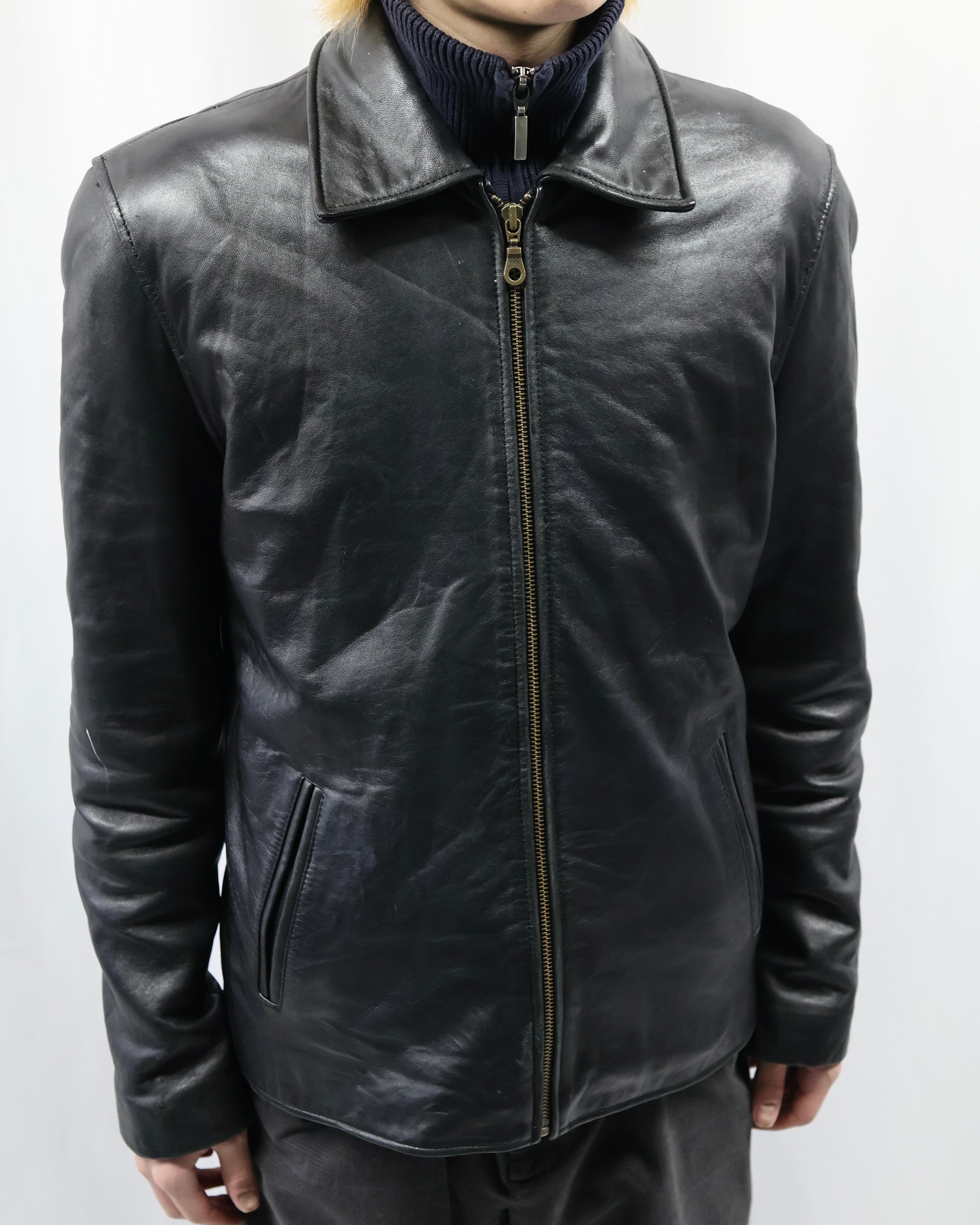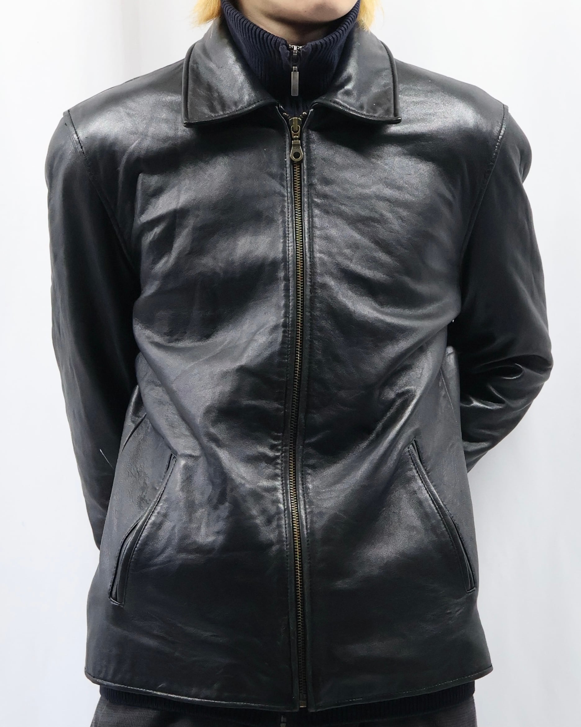 スムースレザーで綺麗に着れるレザージャケット。ミニマルな作りでハードにもカジュアルにも使える万能なレザーブルゾン。ダークトーンでまとめてハードな印象を作りたい方におすすめ。サイズ感もオーバーすぎず、タイムレスに着ていただけます。
