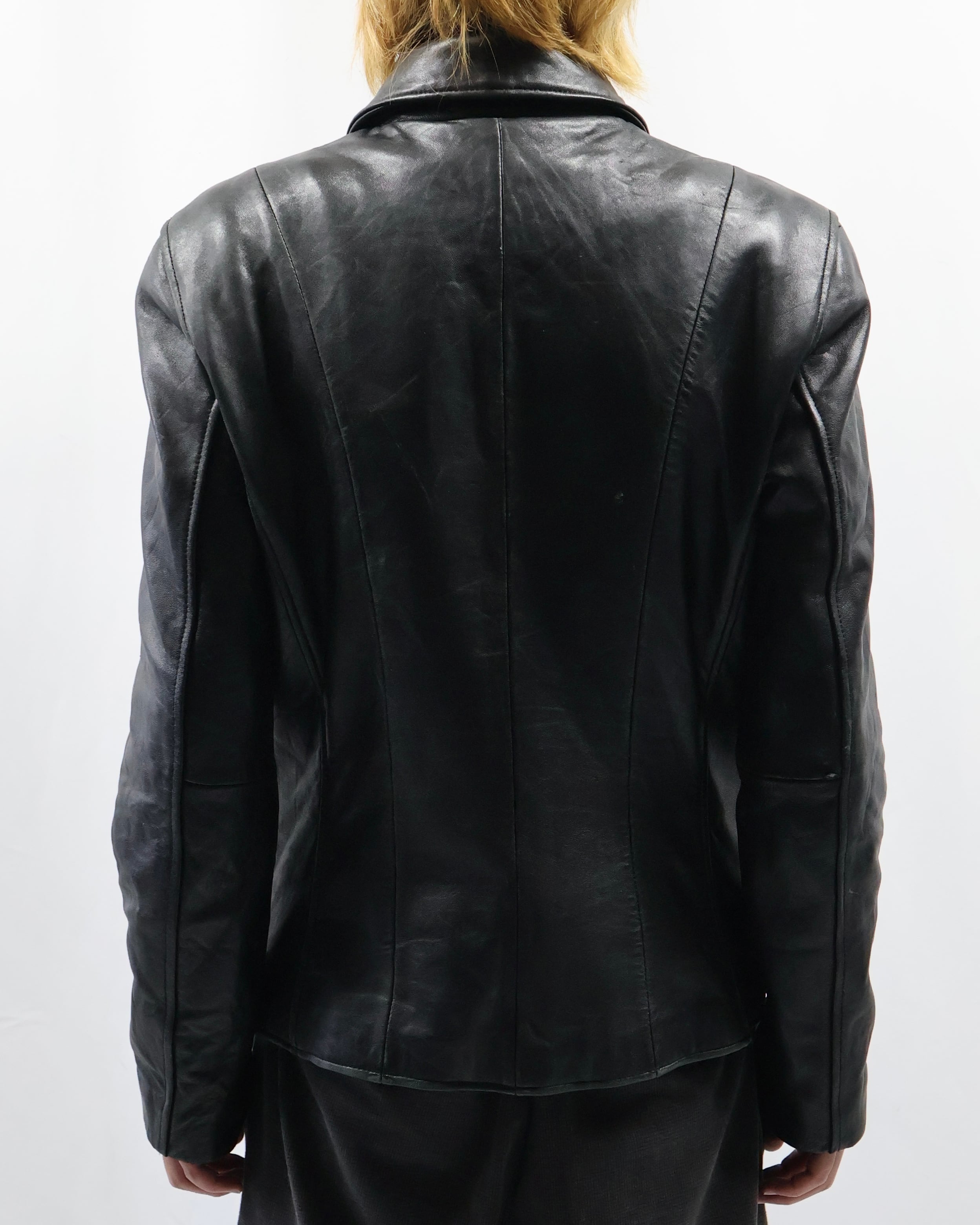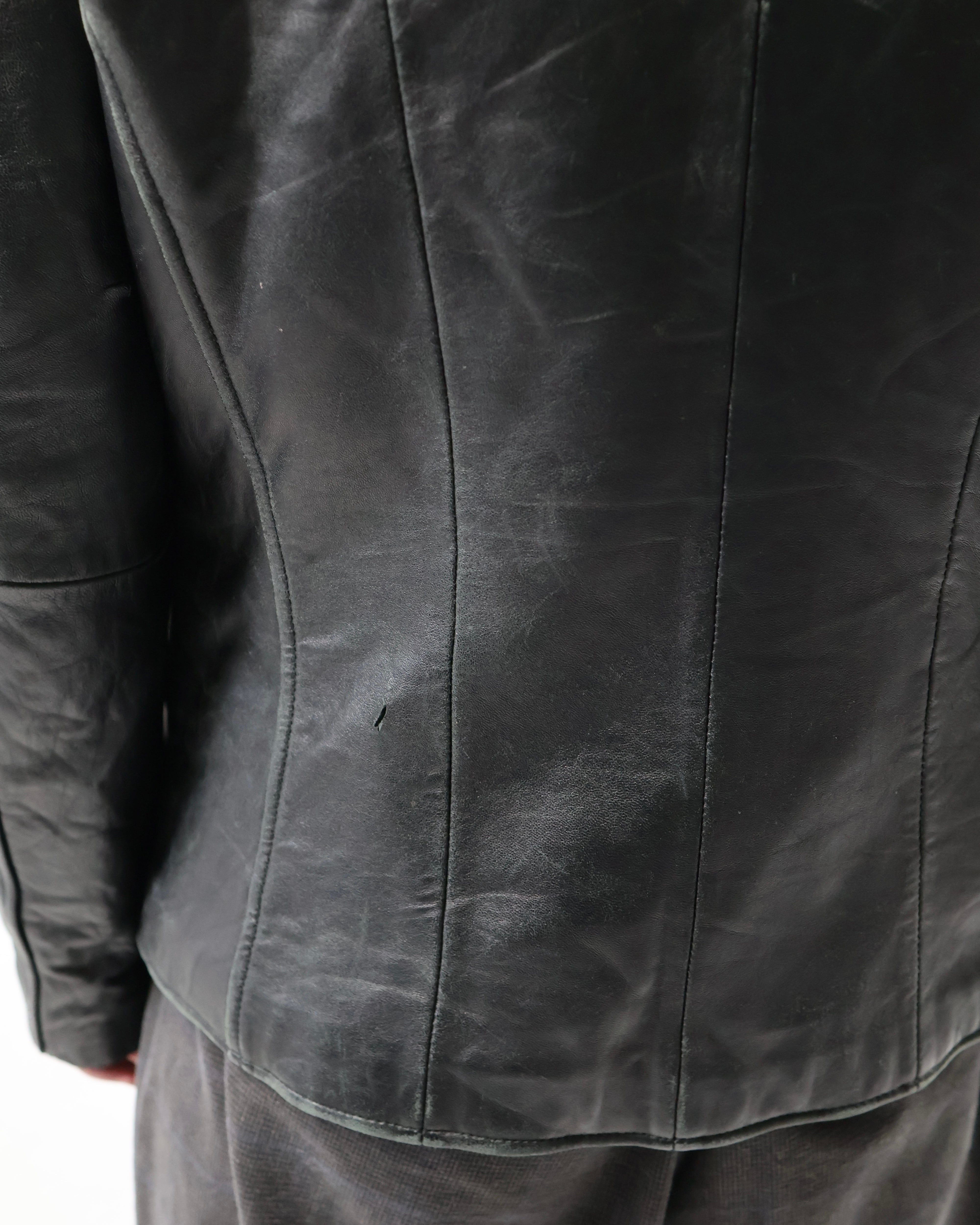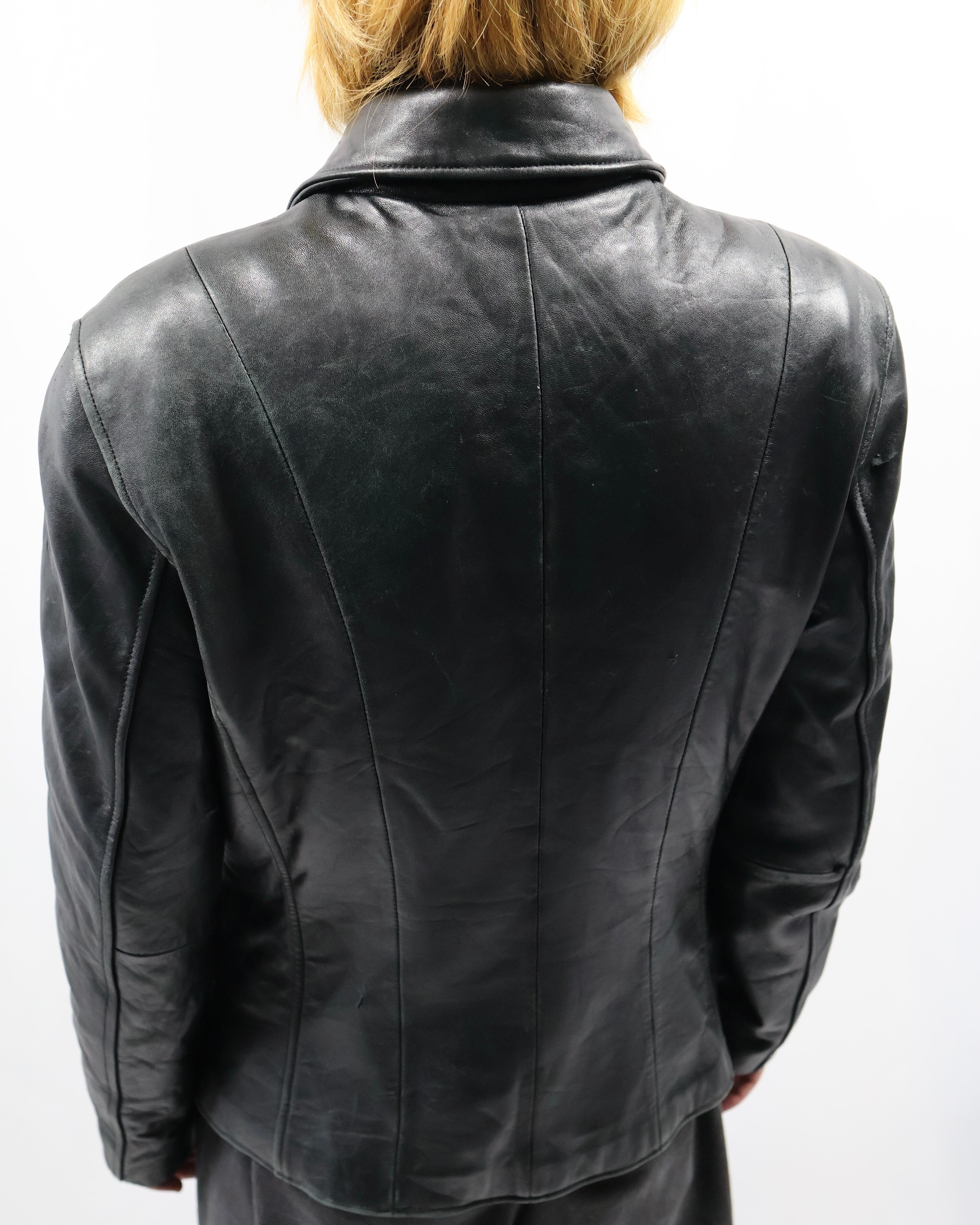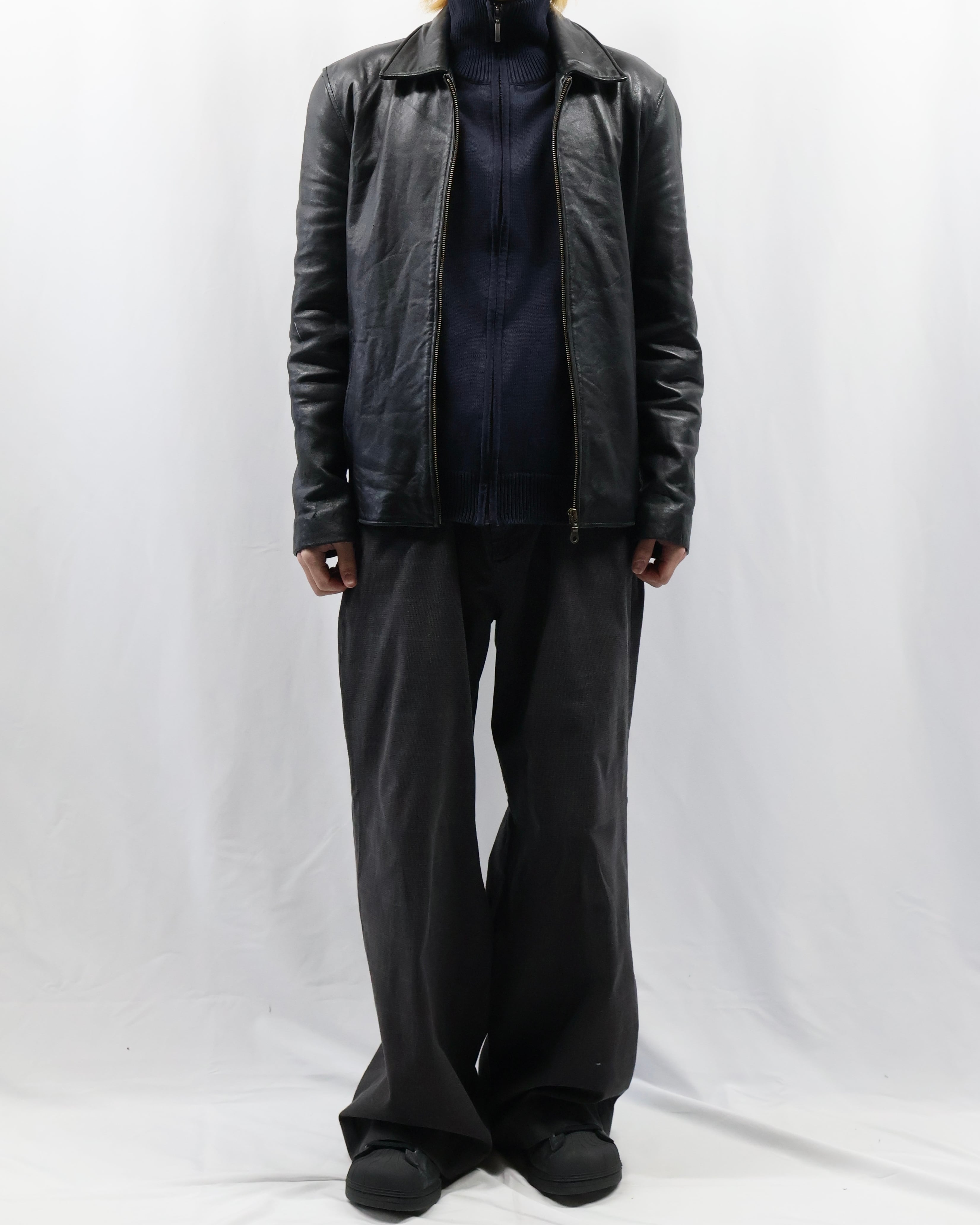 スムースレザーで綺麗に着れるレザージャケット。ミニマルな作りでハードにもカジュアルにも使える万能なレザーブルゾン。ダークトーンでまとめてハードな印象を作りたい方におすすめ。サイズ感もオーバーすぎず、タイムレスに着ていただけます。