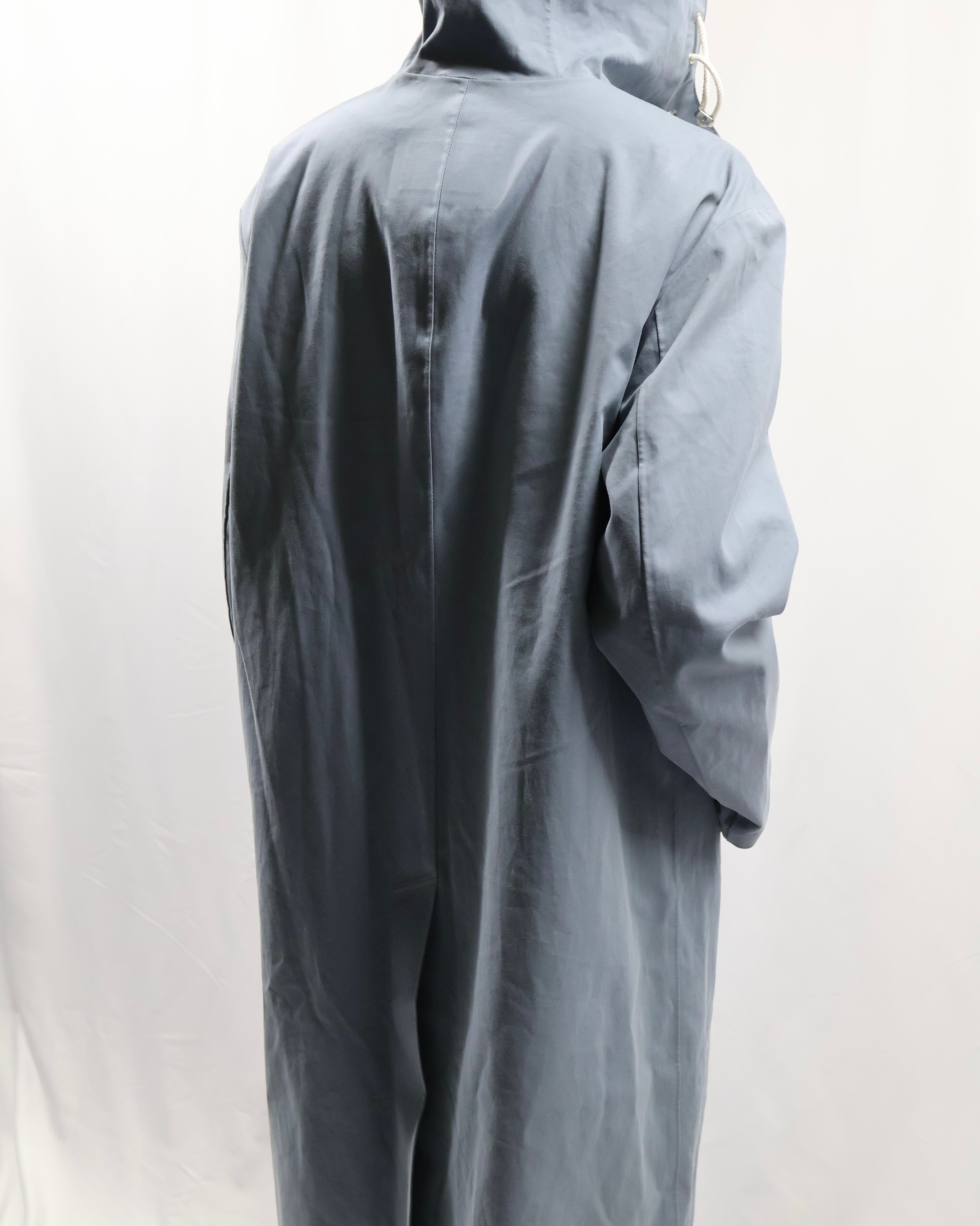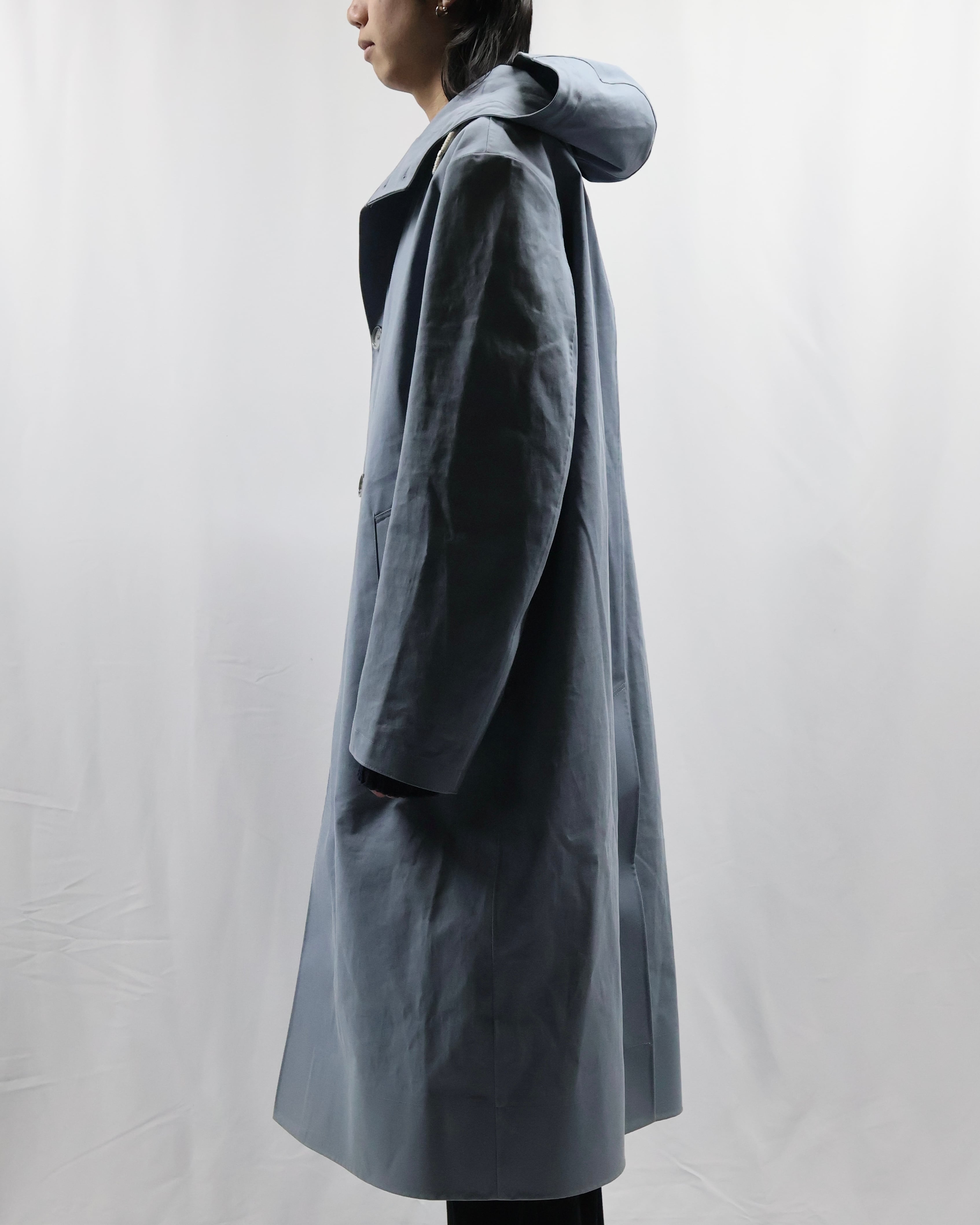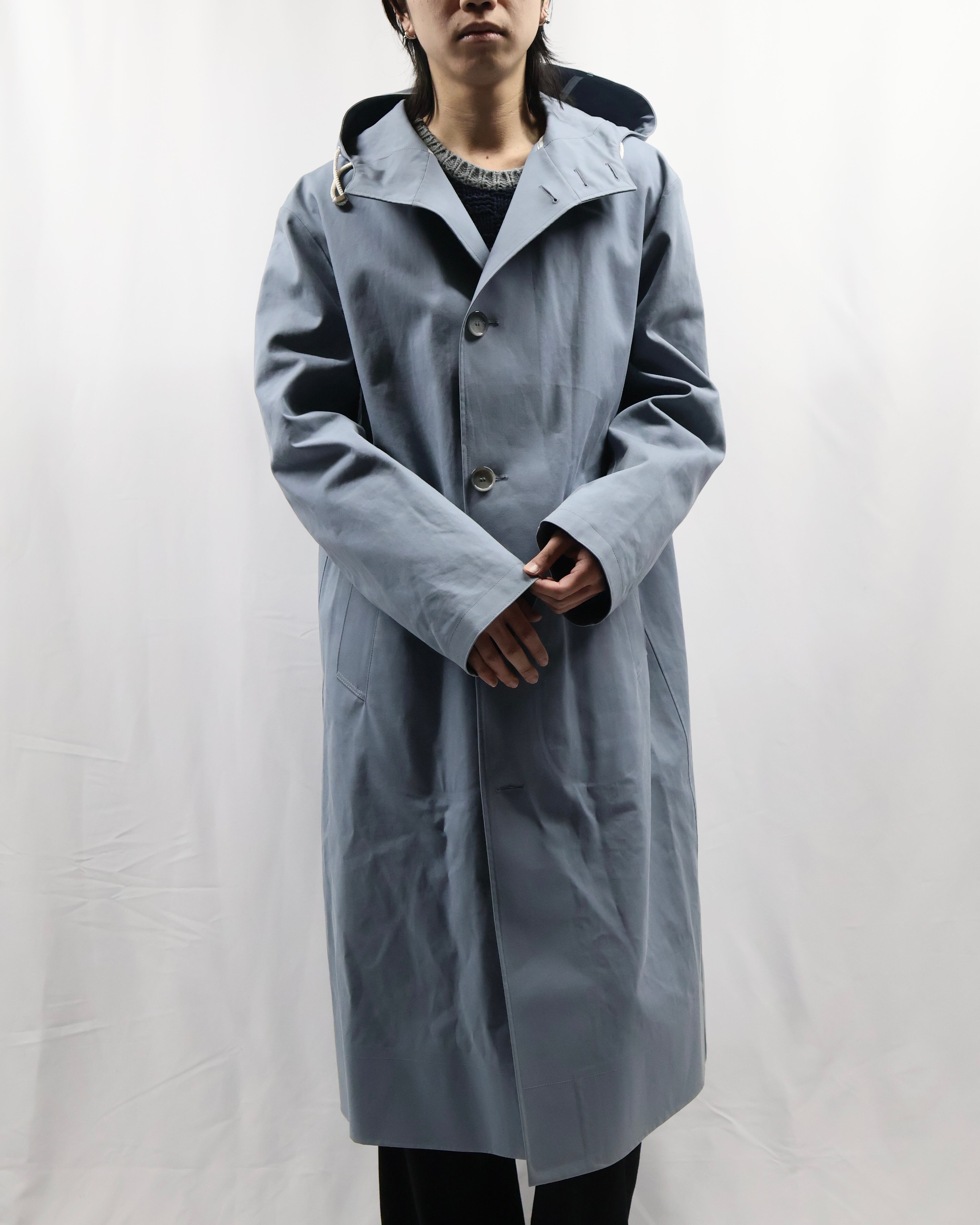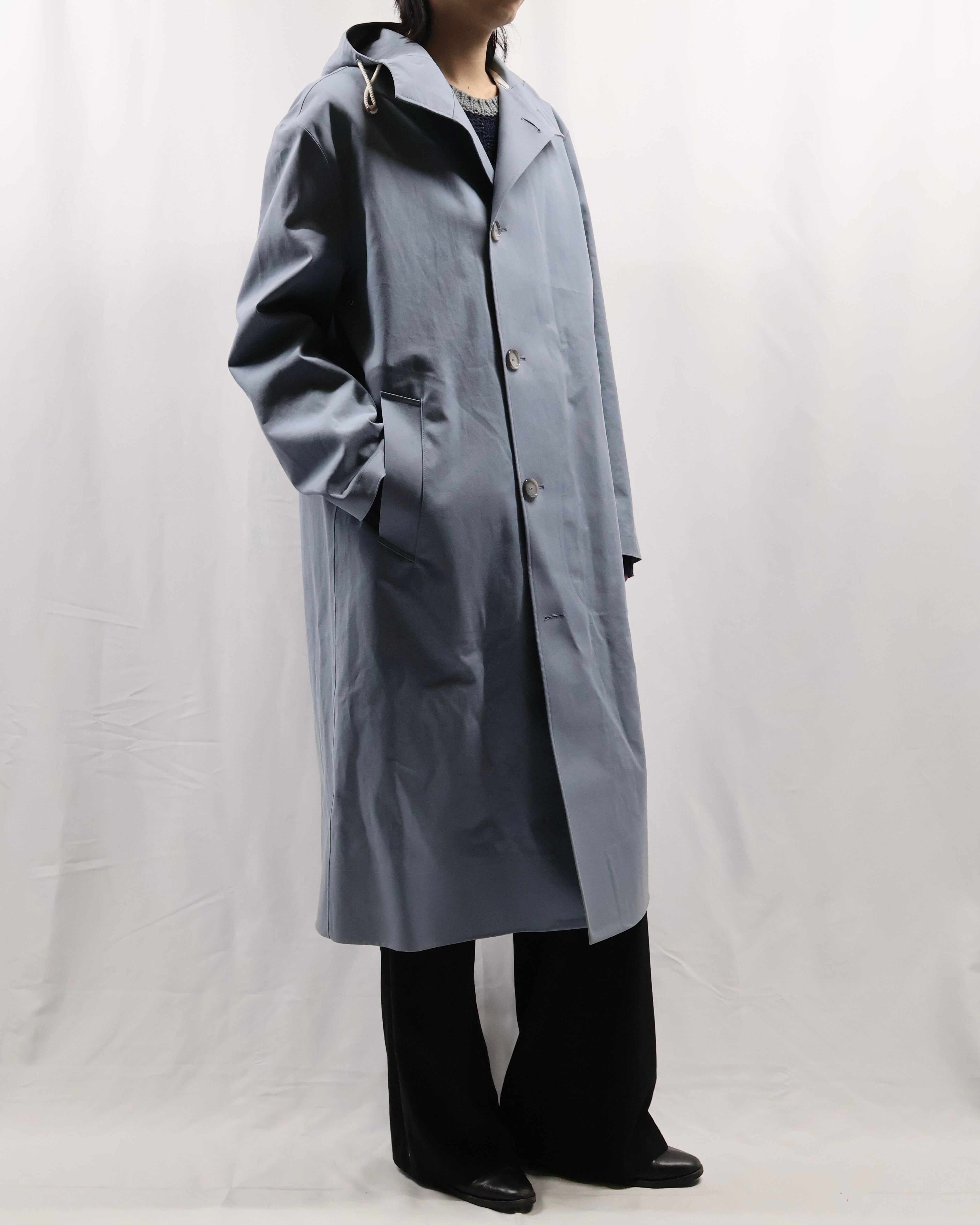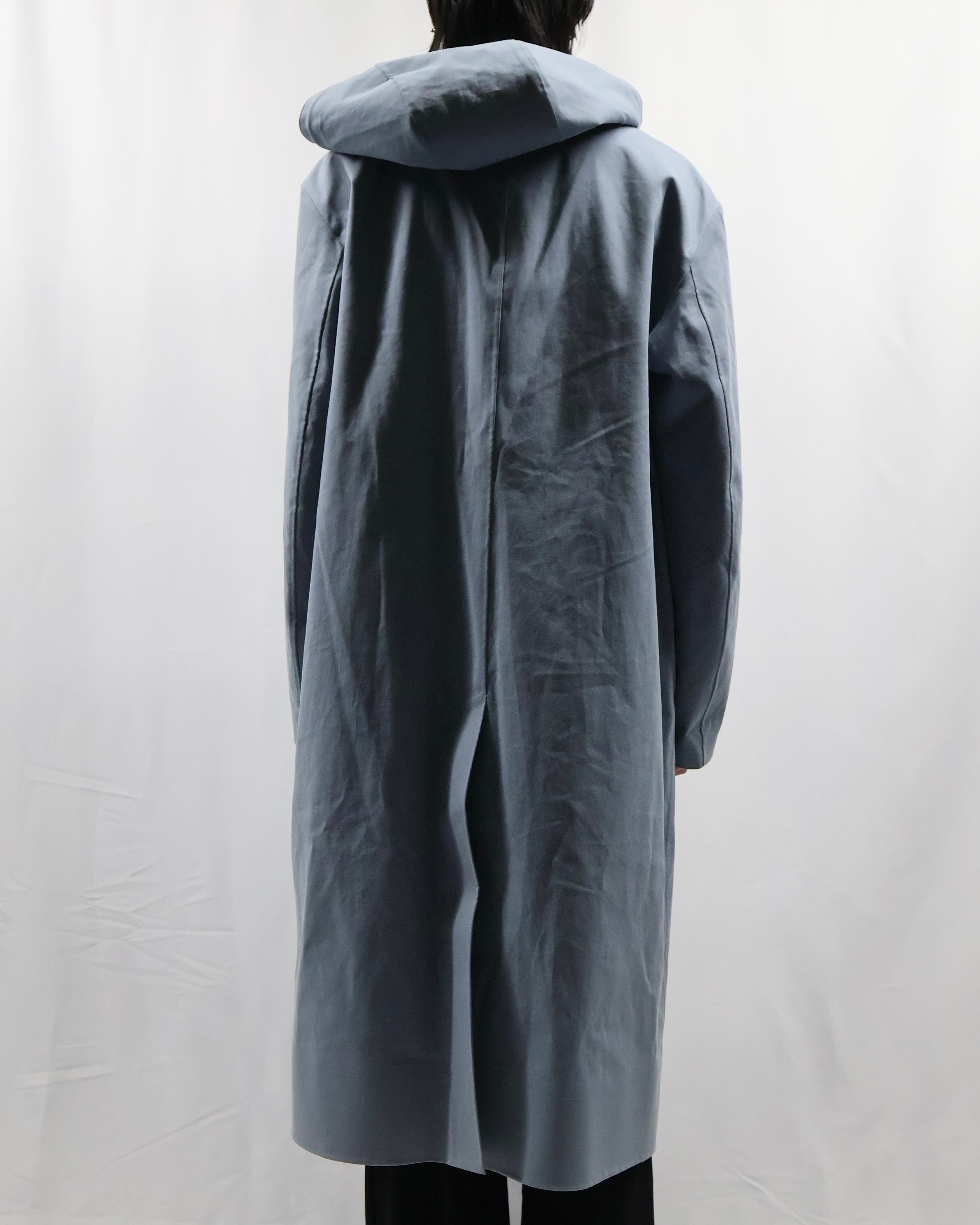 ハリ感と高級感がある、オーバーサイズのフーデッドコート。中でも遊べるほど生地をたっぷりと使った身幅でインナーで遊んでもいいのはもちろん、一枚で完結する存在感があるコートです。色合いもよく、無彩色では出せない抜け感を演出します。フードをかぶってダークな雰囲気に寄せるか、カジュアルなインナーを刺してカジュアルダウンさせても可愛らしいです。