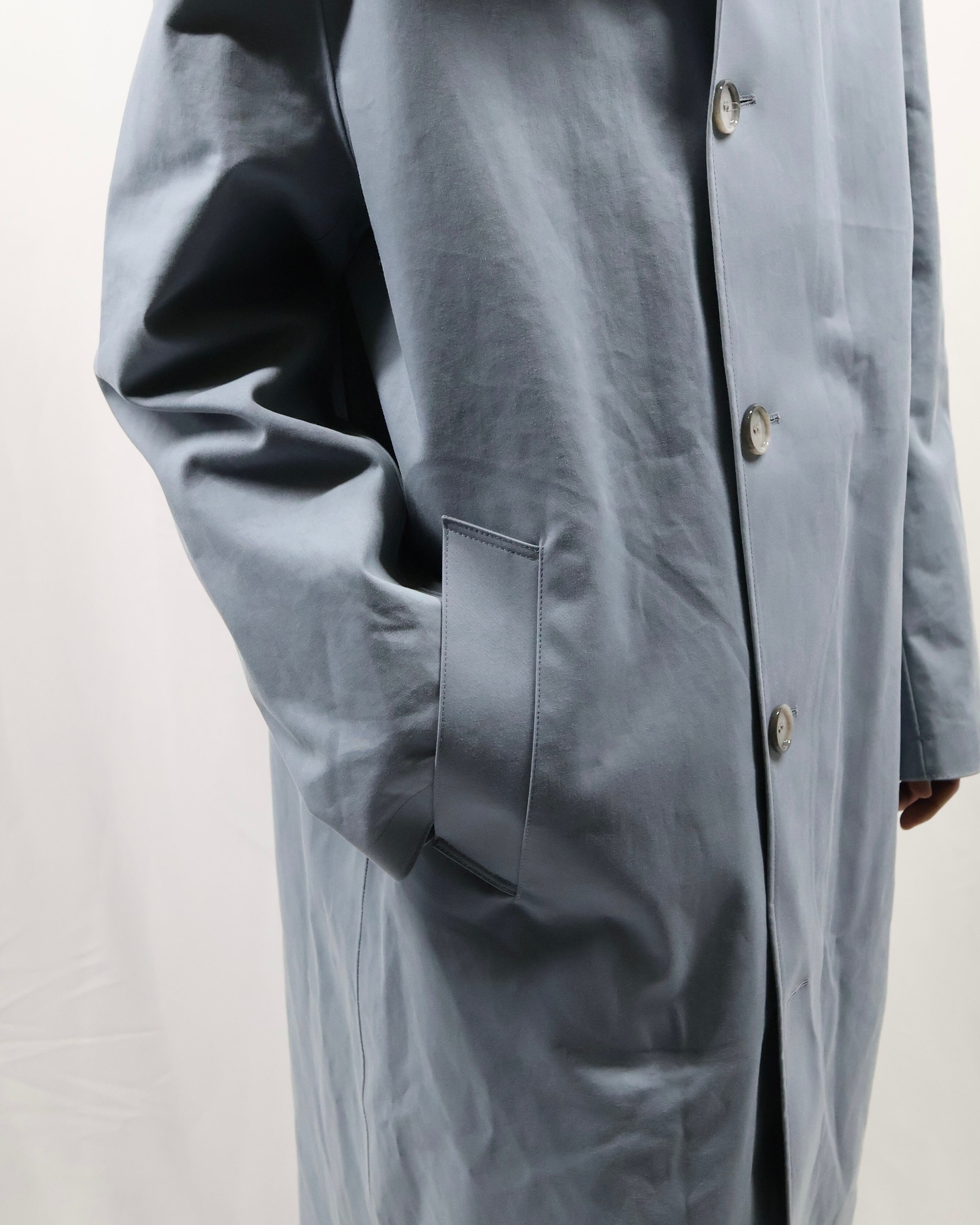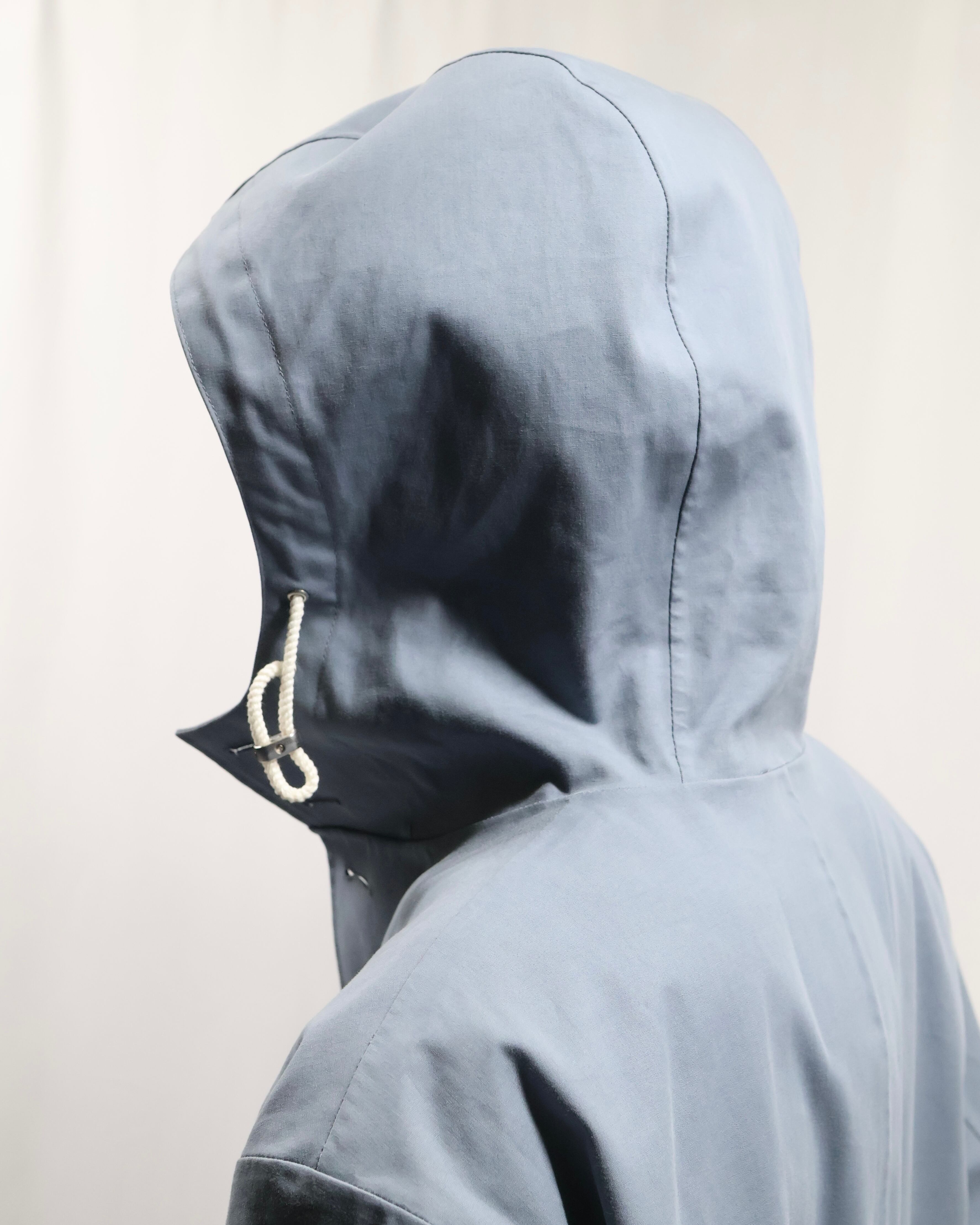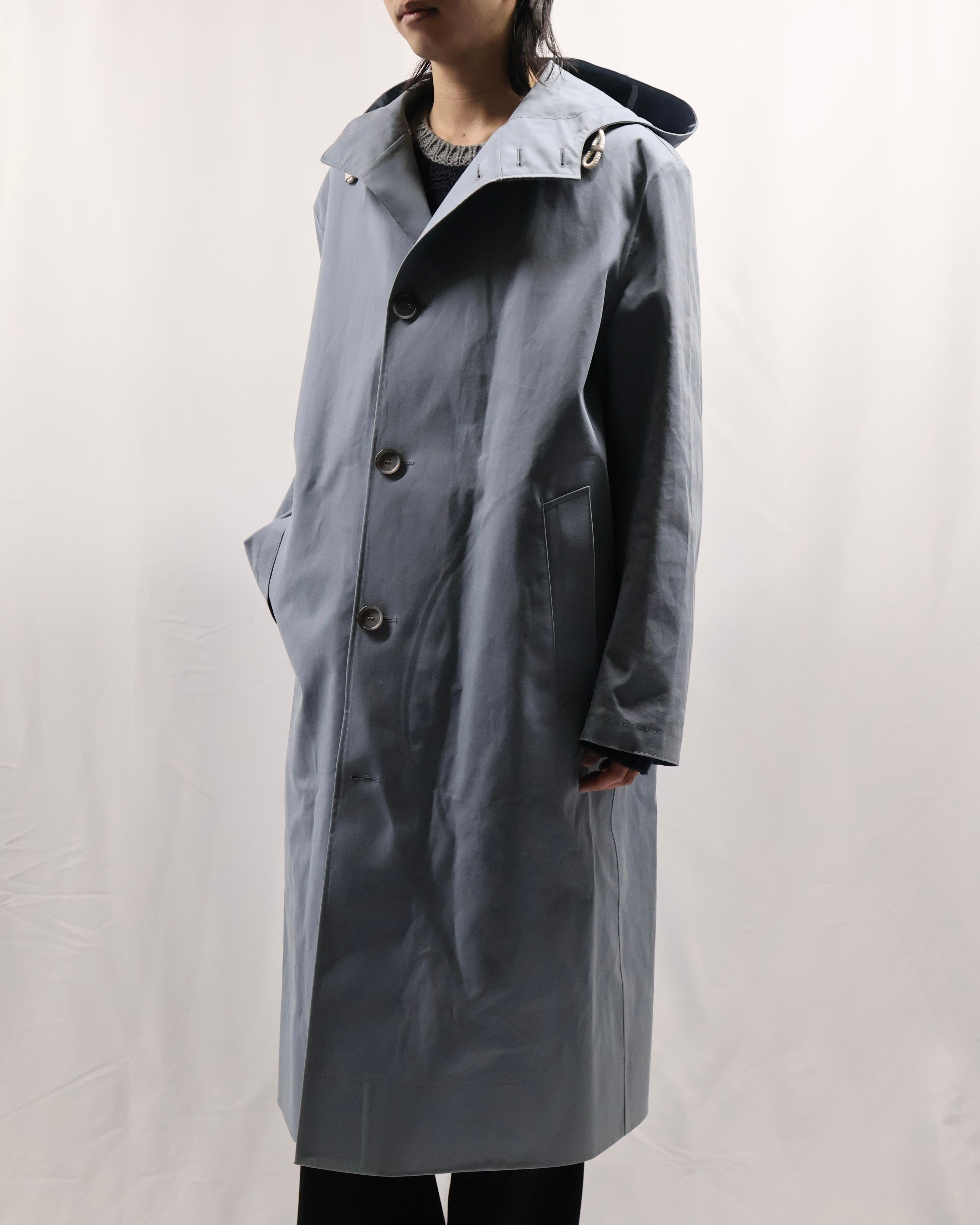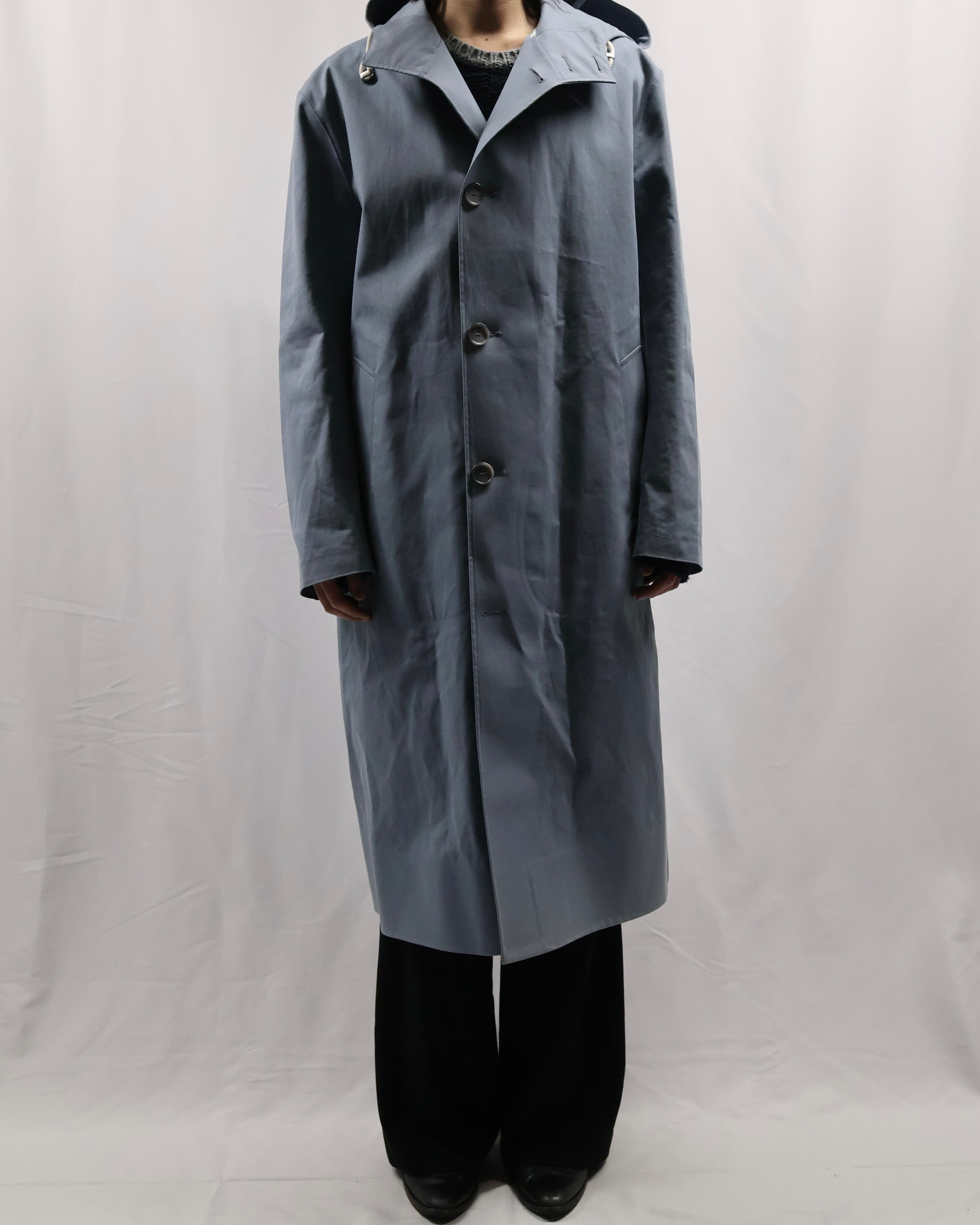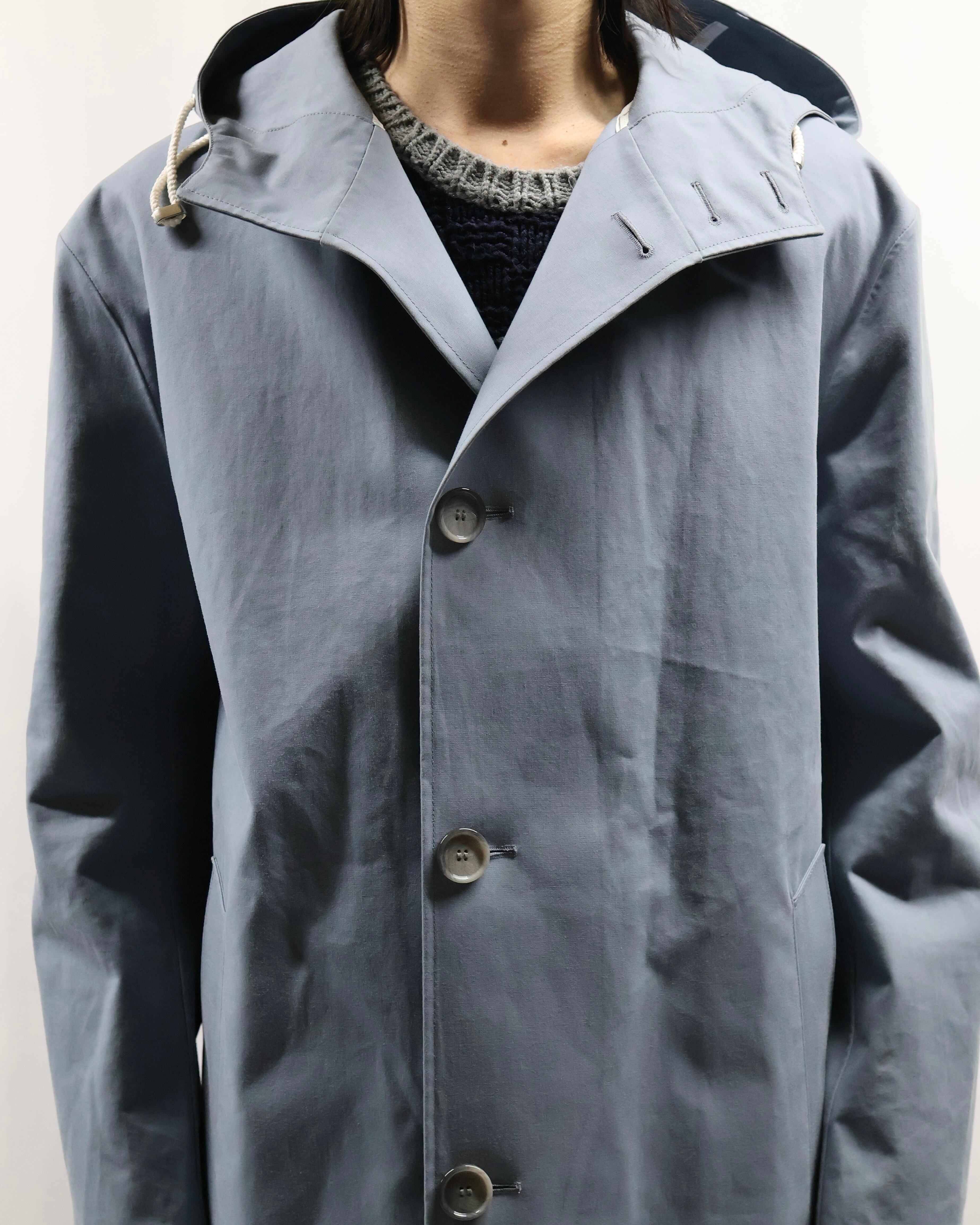 ハリ感と高級感がある、オーバーサイズのフーデッドコート。中でも遊べるほど生地をたっぷりと使った身幅でインナーで遊んでもいいのはもちろん、一枚で完結する存在感があるコートです。色合いもよく、無彩色では出せない抜け感を演出します。フードをかぶってダークな雰囲気に寄せるか、カジュアルなインナーを刺してカジュアルダウンさせても可愛らしいです。