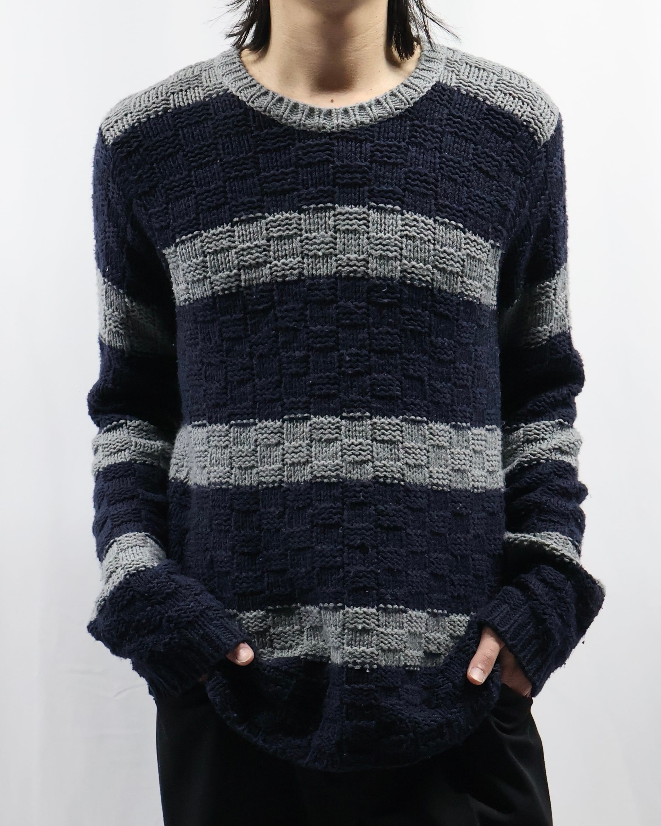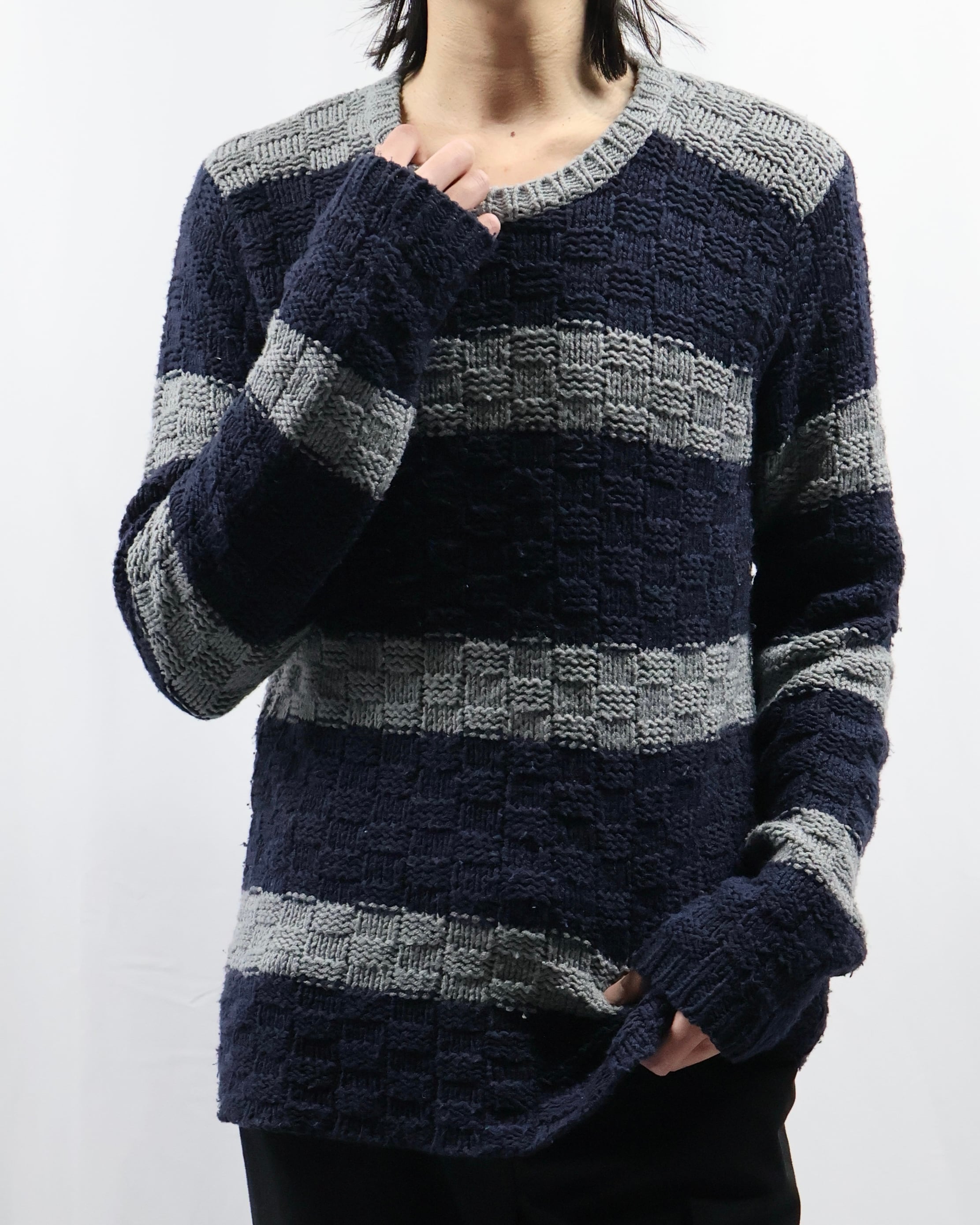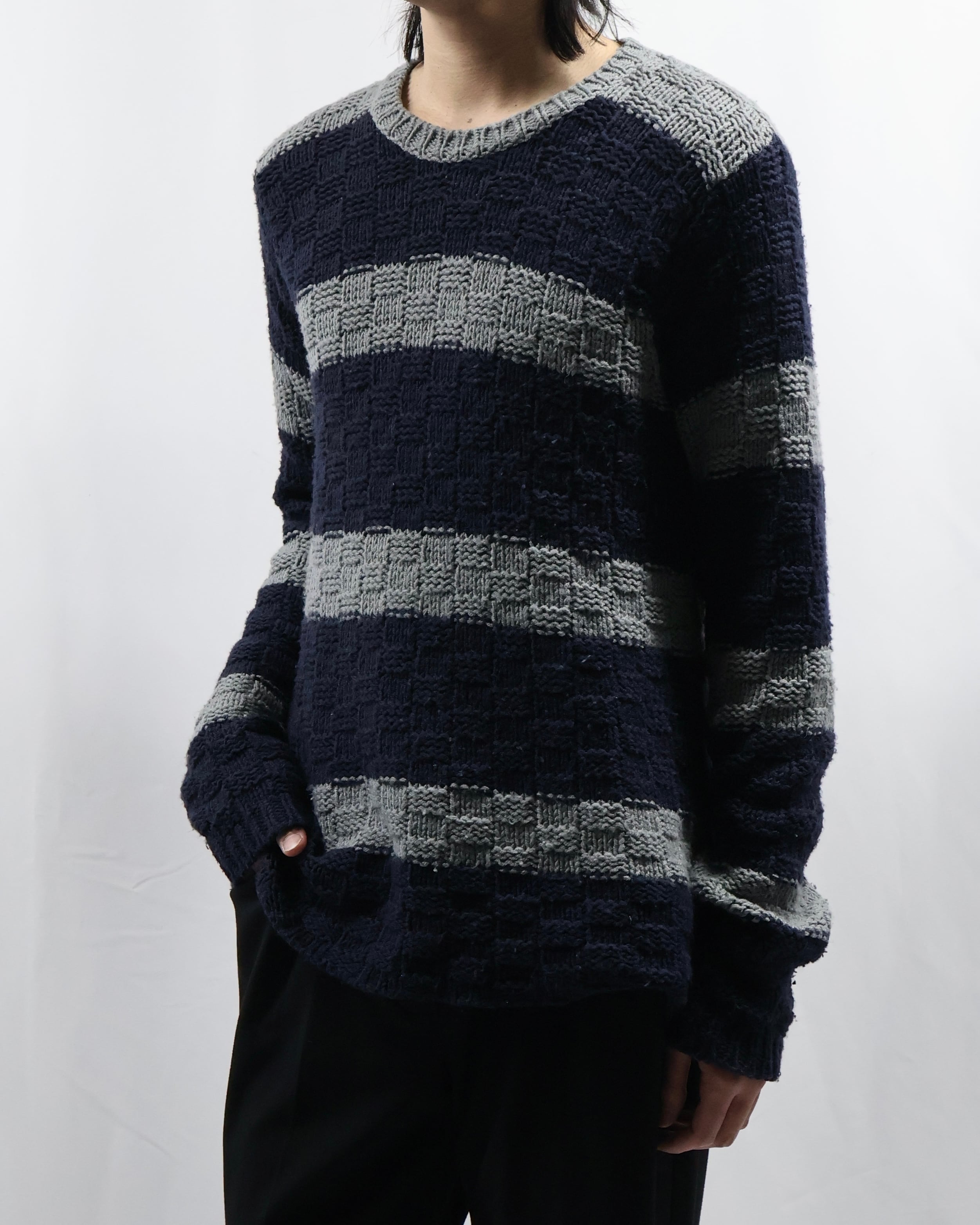 【EMPORIO ARMANI】low gauge border knit sweater