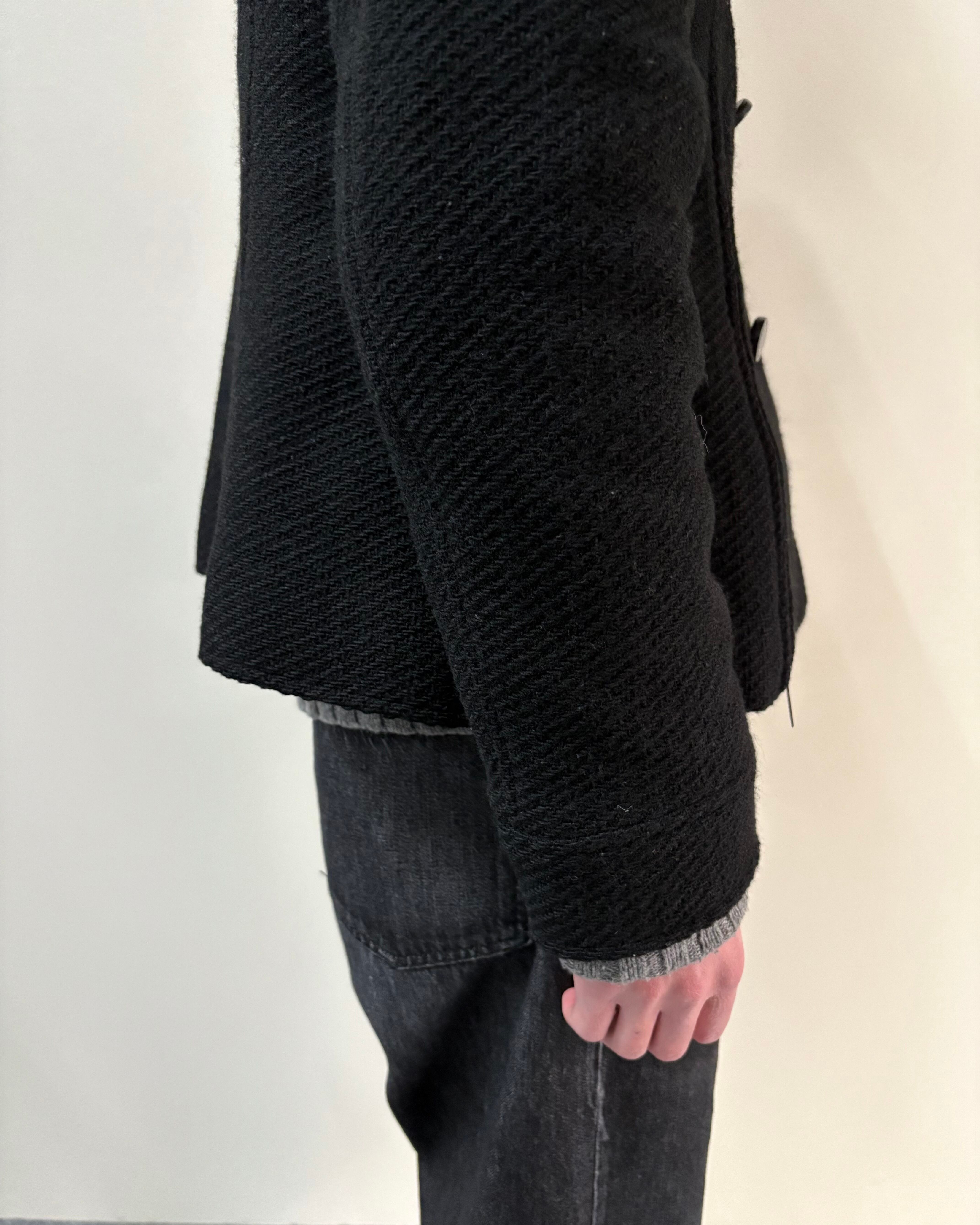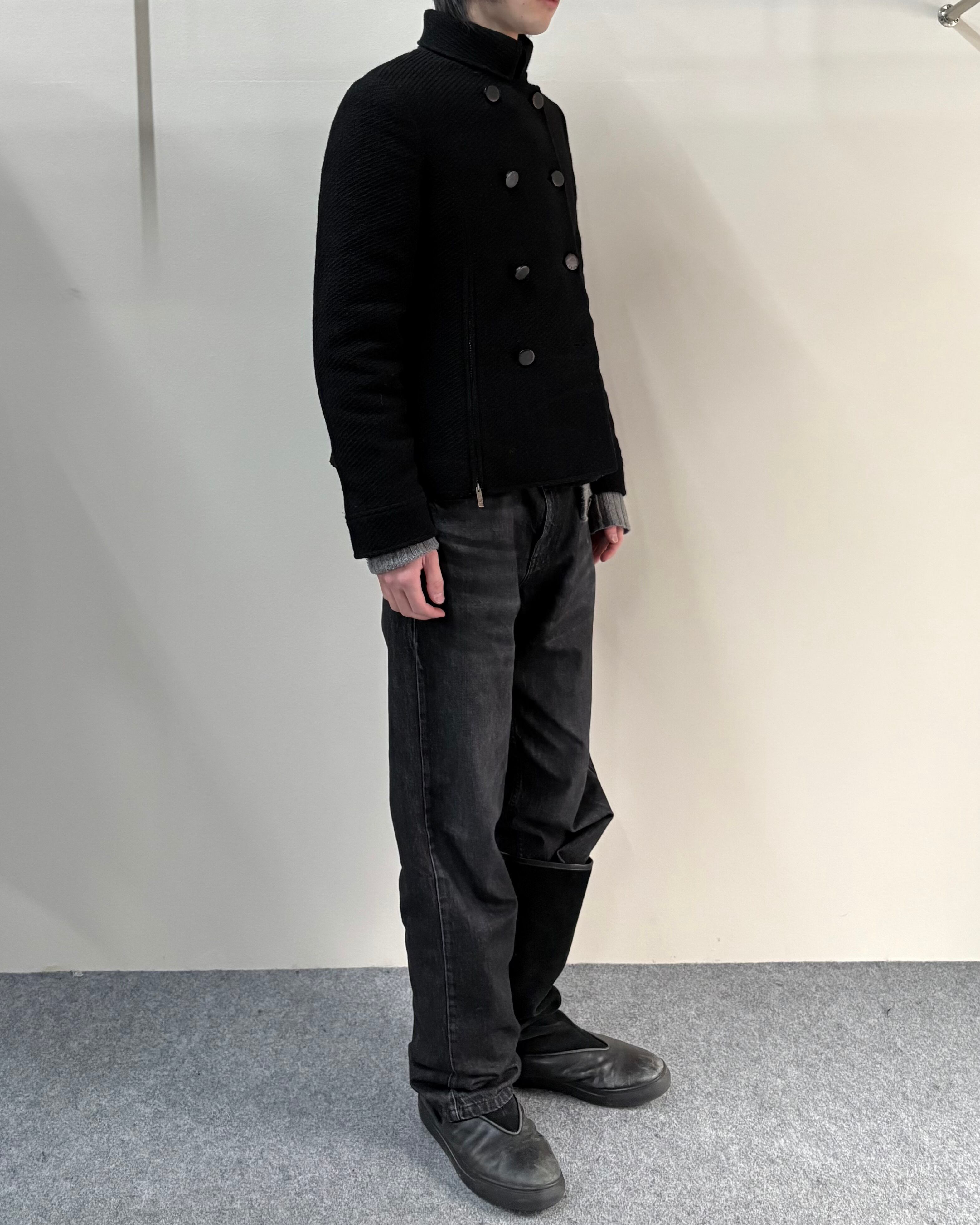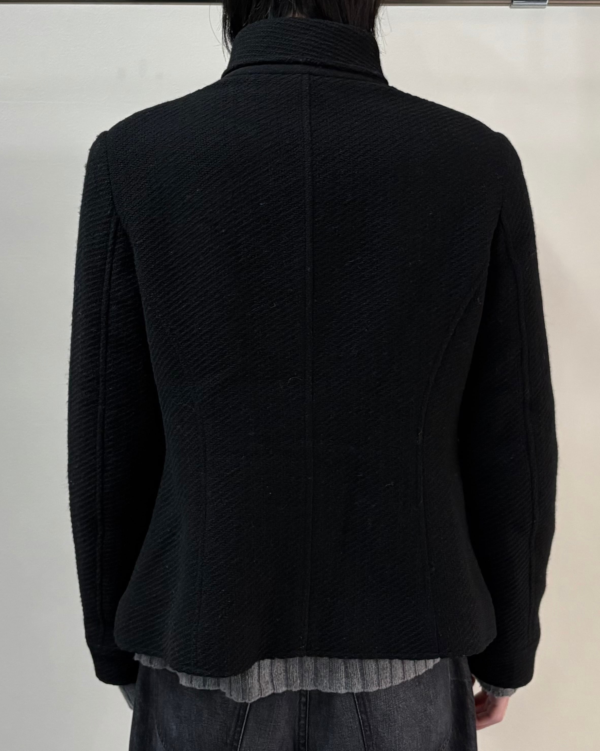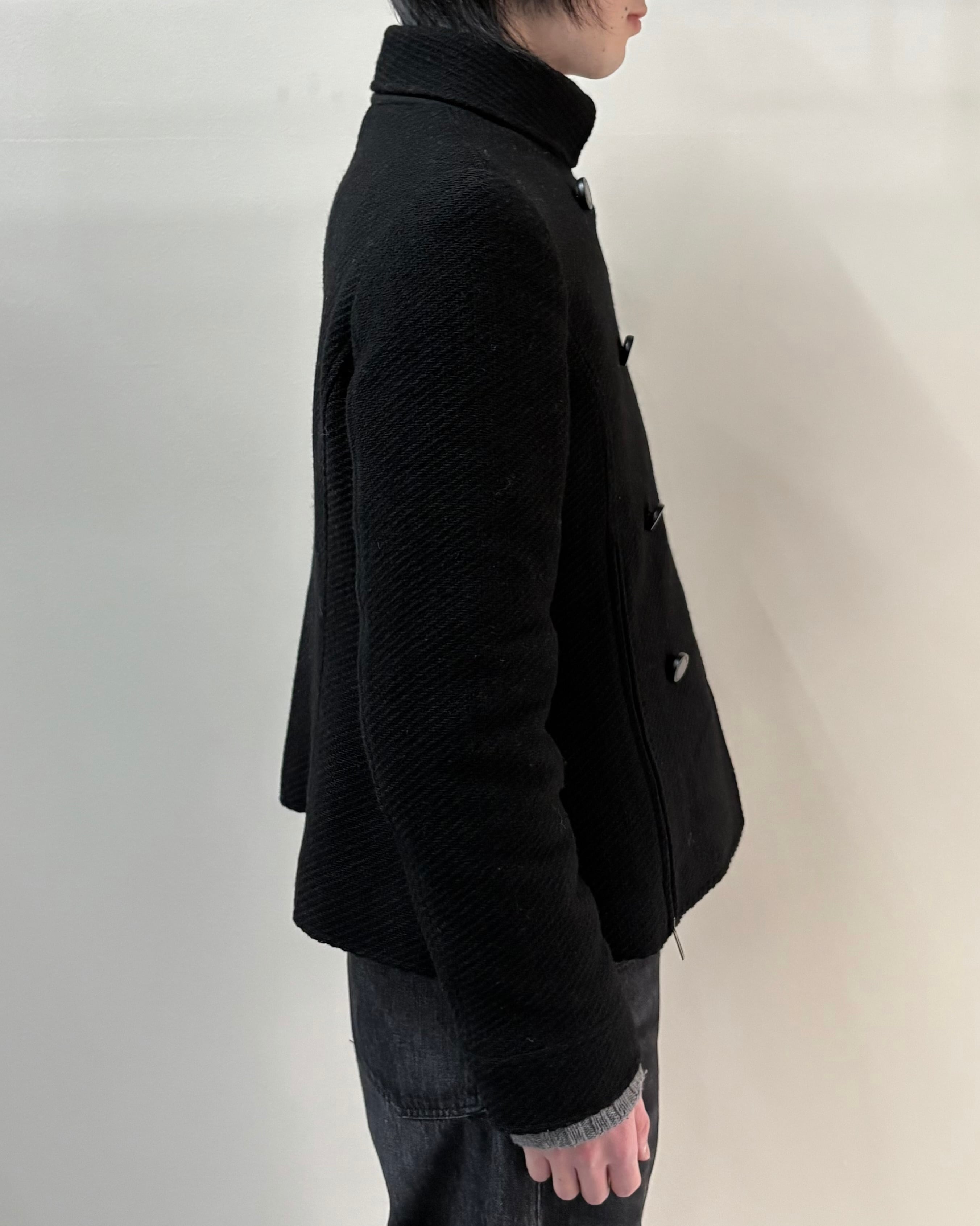 コンパクトなサイズ感と上質で表情のある生地感が特徴でクラシックとモードな雰囲気をバランス良く持った一着。