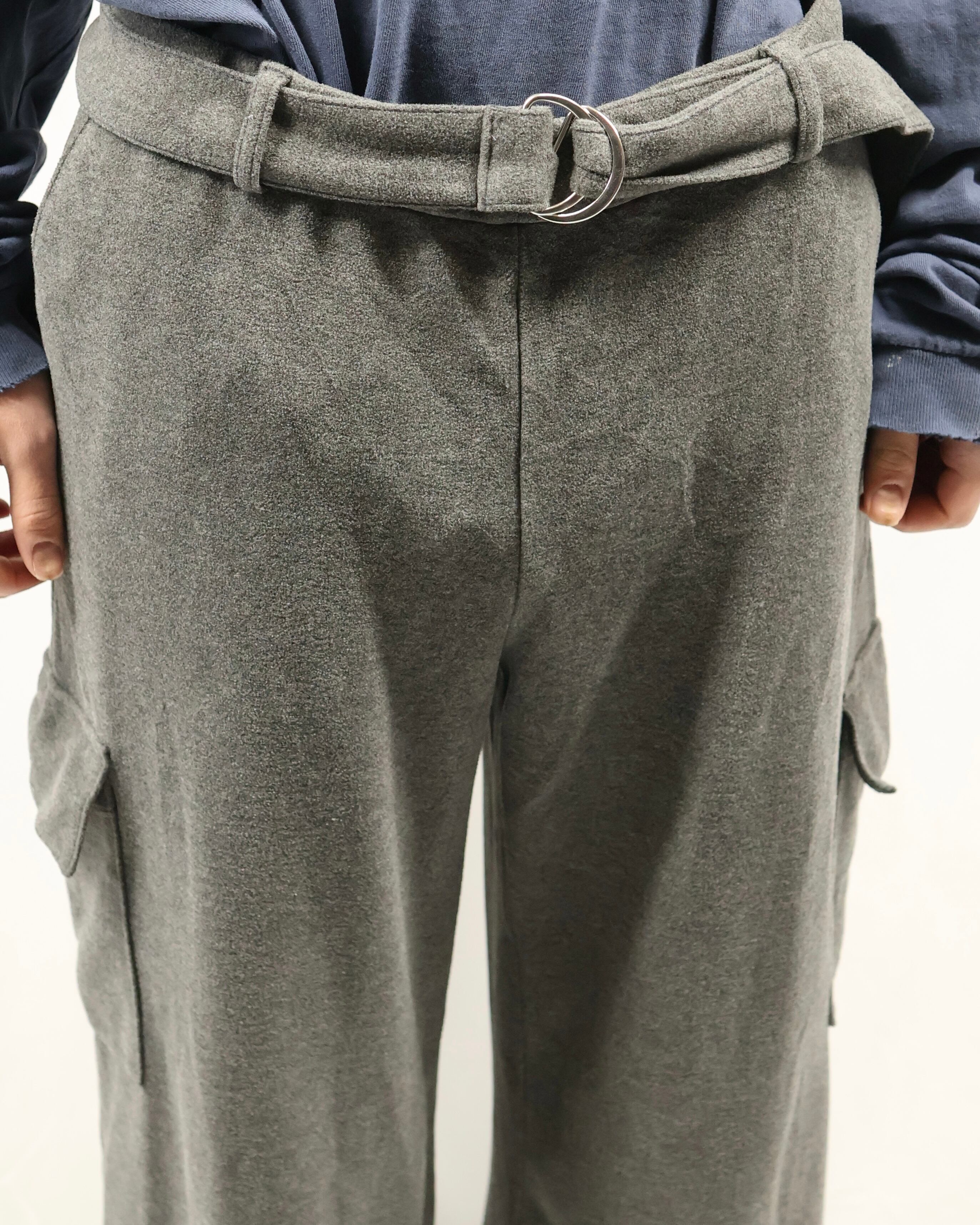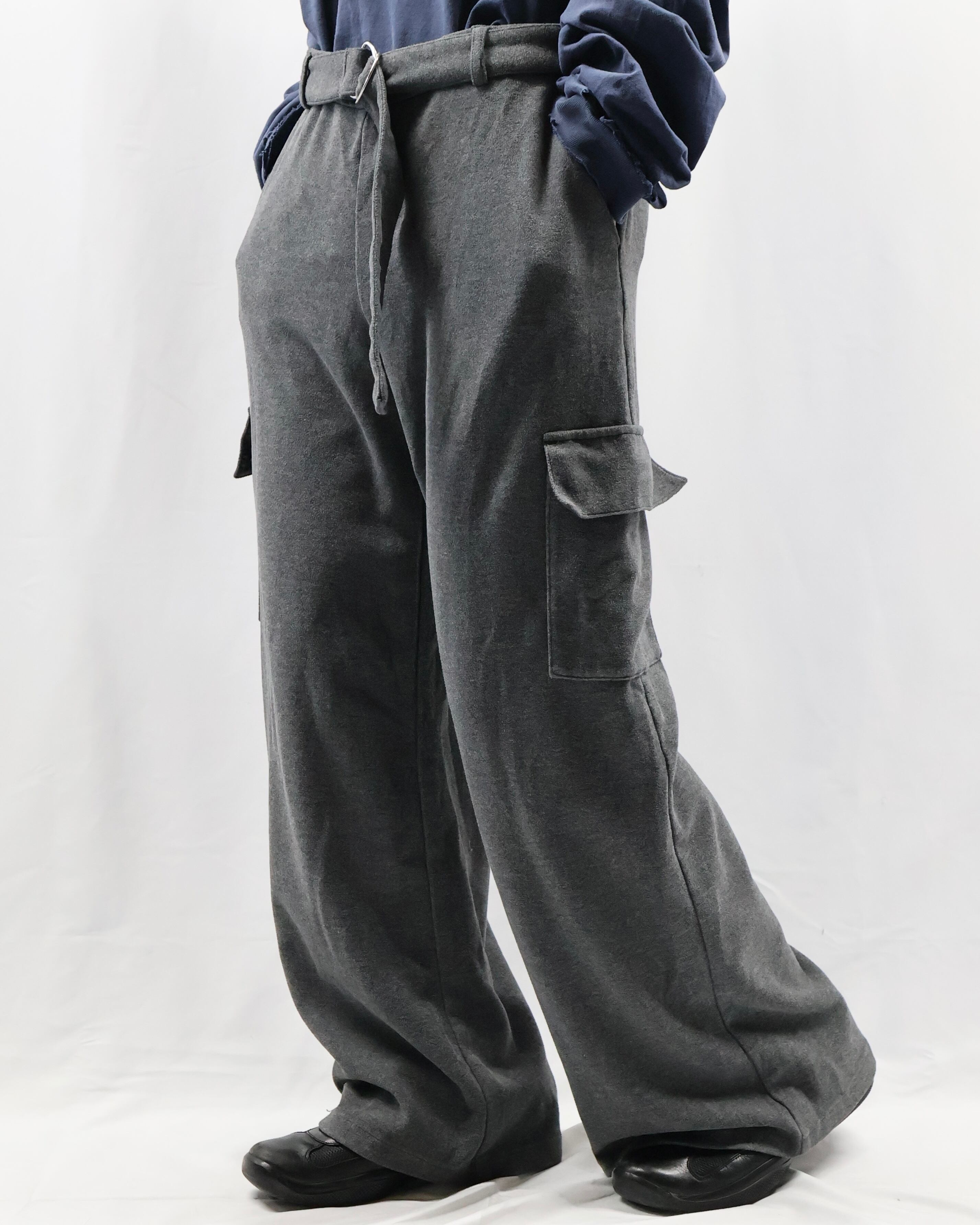 柔らかな風合いのカーゴスウェットパンツ。カーゴパンツのカジュアルな雰囲気と、ベルテッドでわずかに起毛した上品な素材感がうまくマッチした、どのコーデにも差し込めるパンツ。