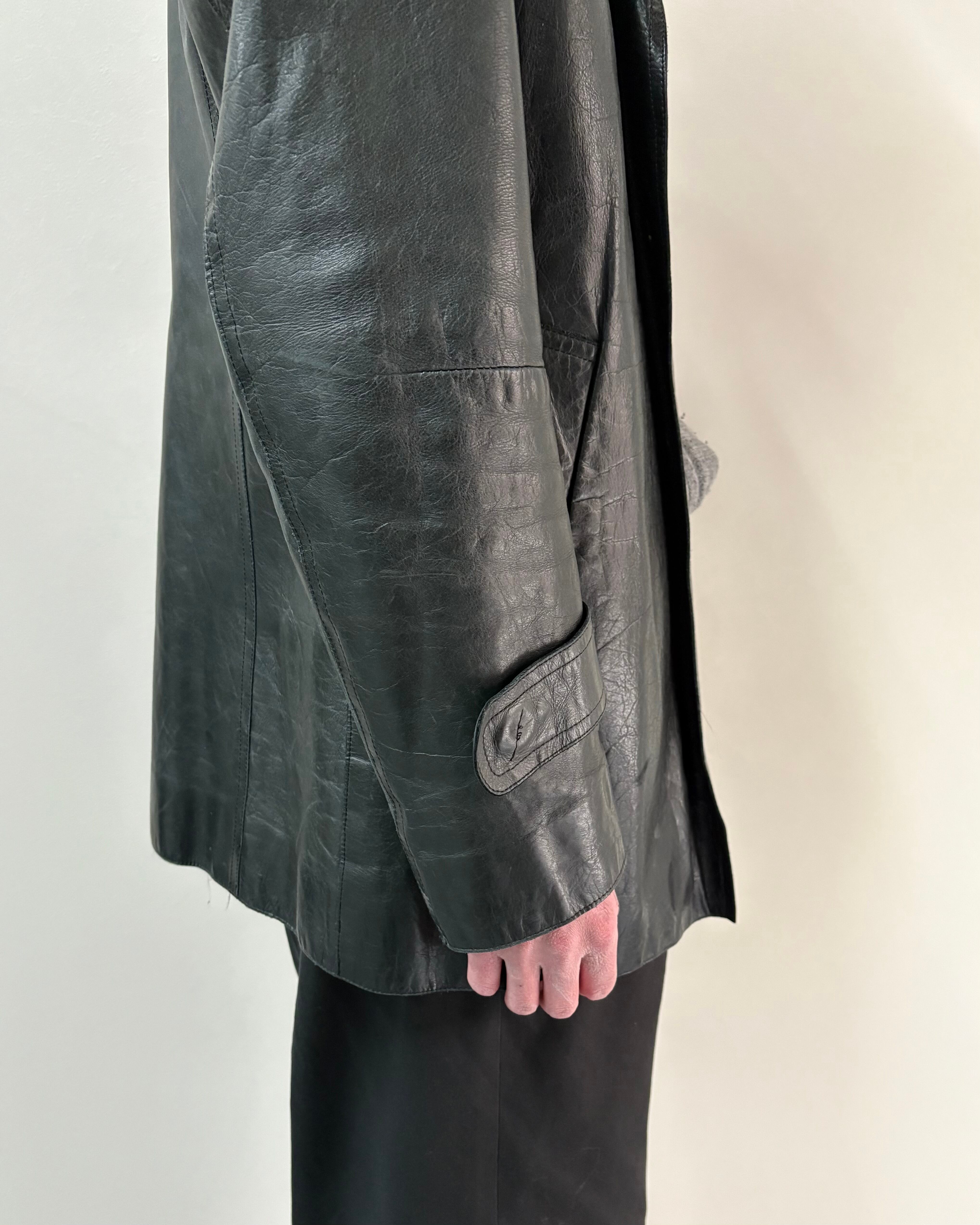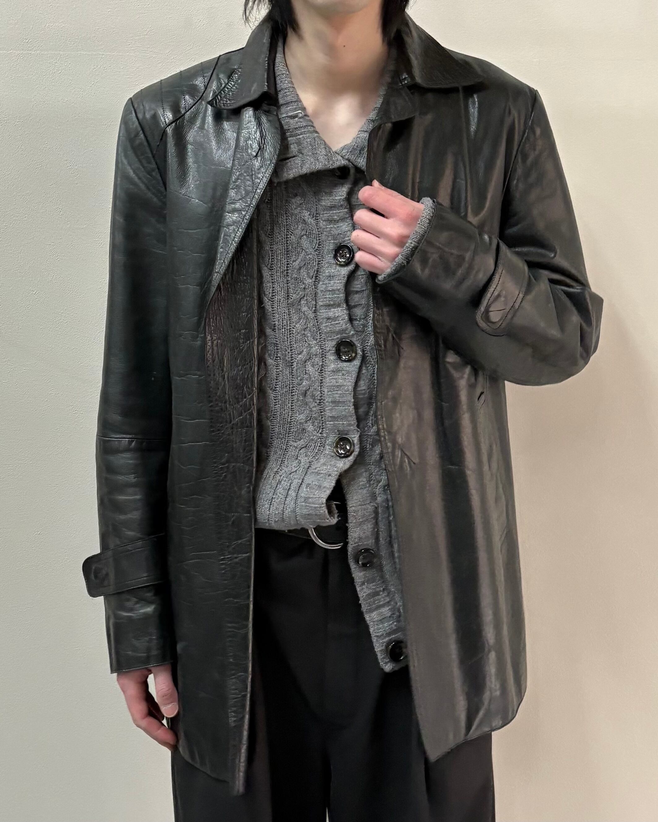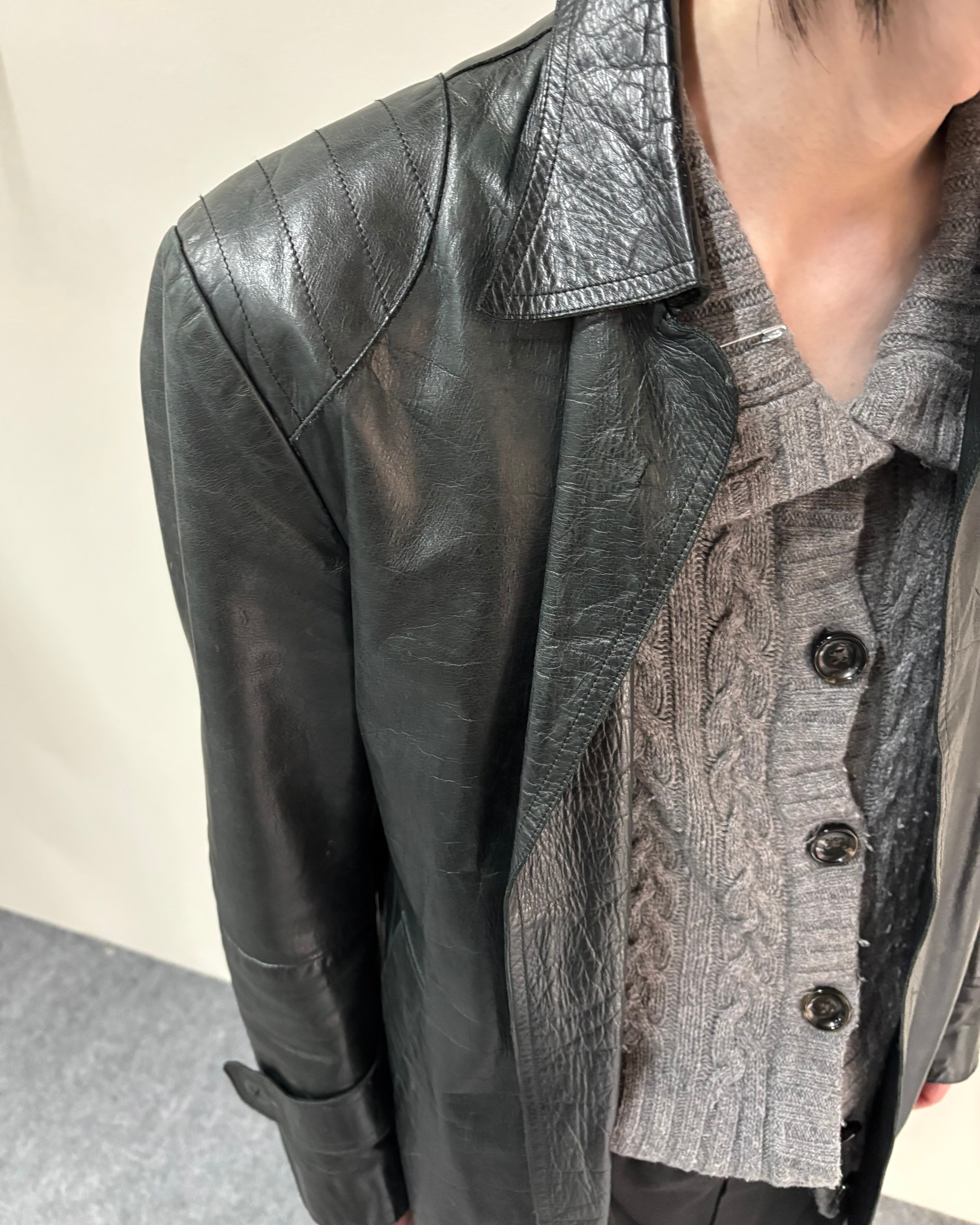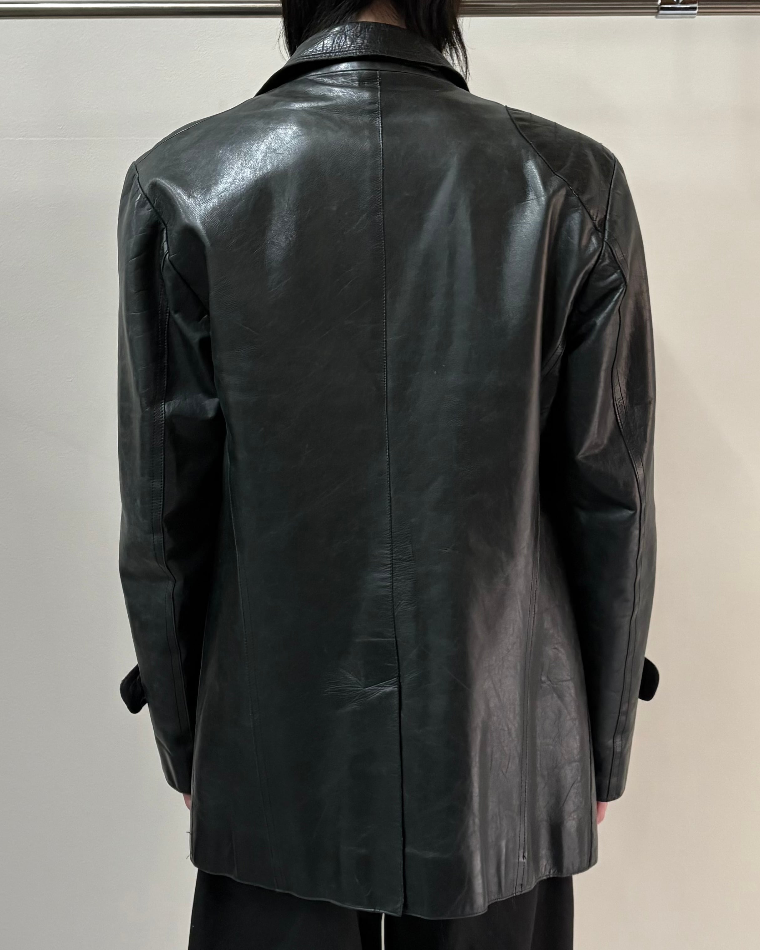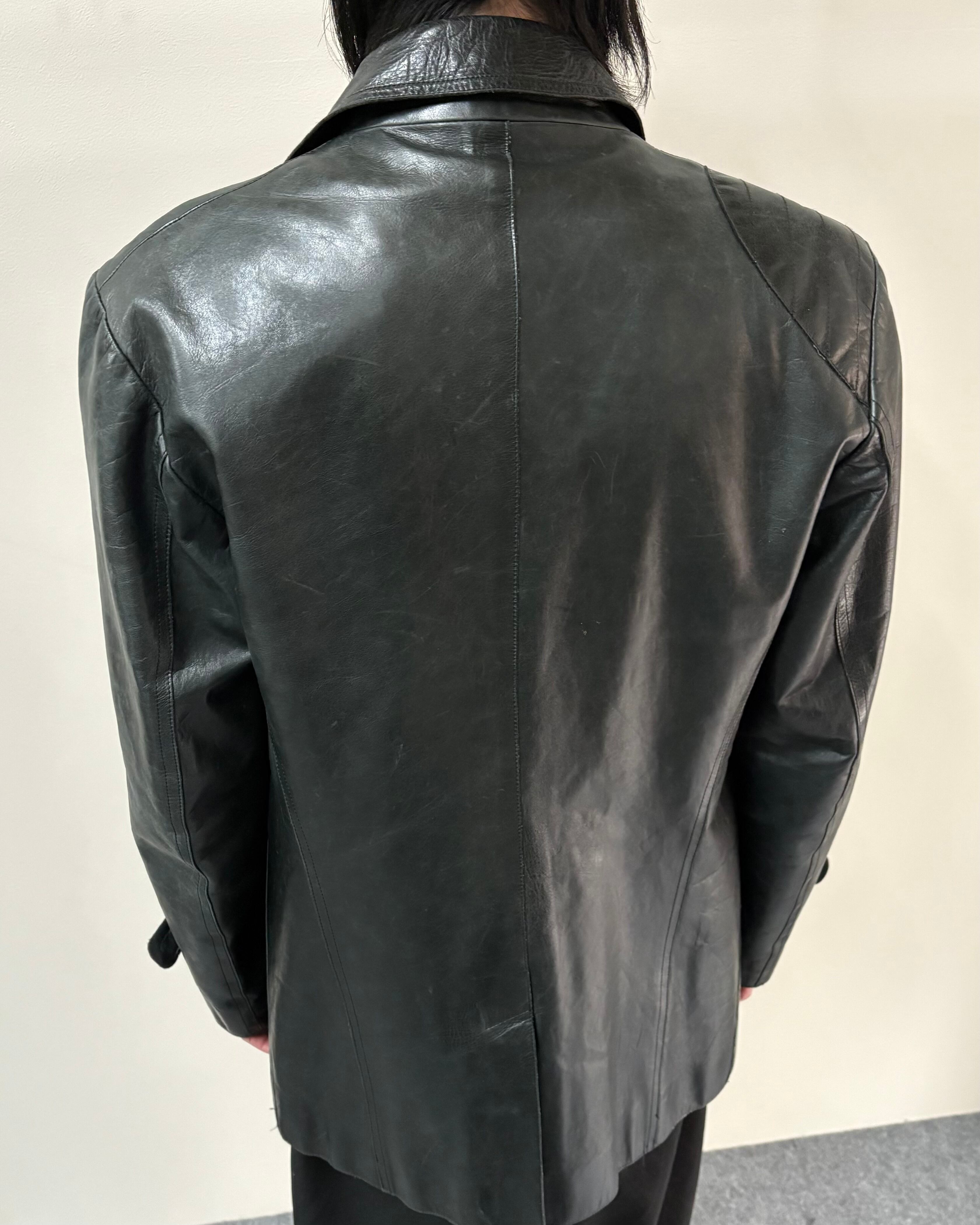 無駄の削ぎ落とされたミニマルなデザインが特徴。レザーの無骨さもありながらダークグリーンのカラーリングが上品さも演出。幅広いスタイルに合わせられる一着。