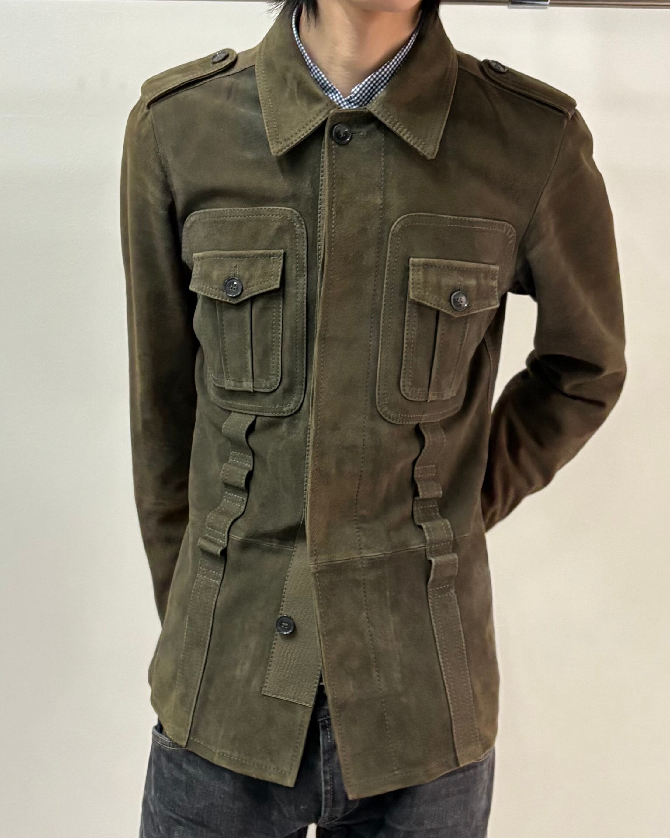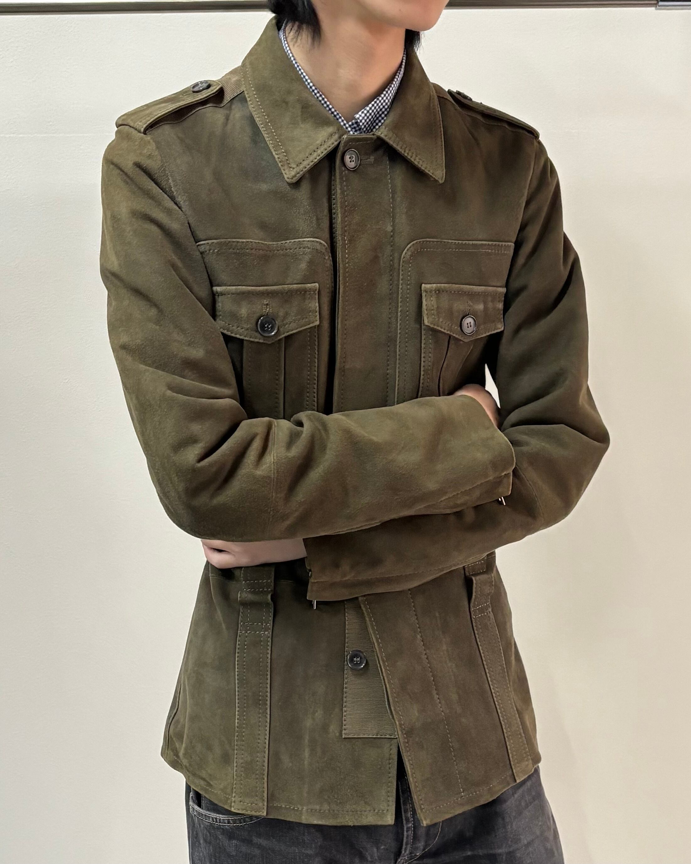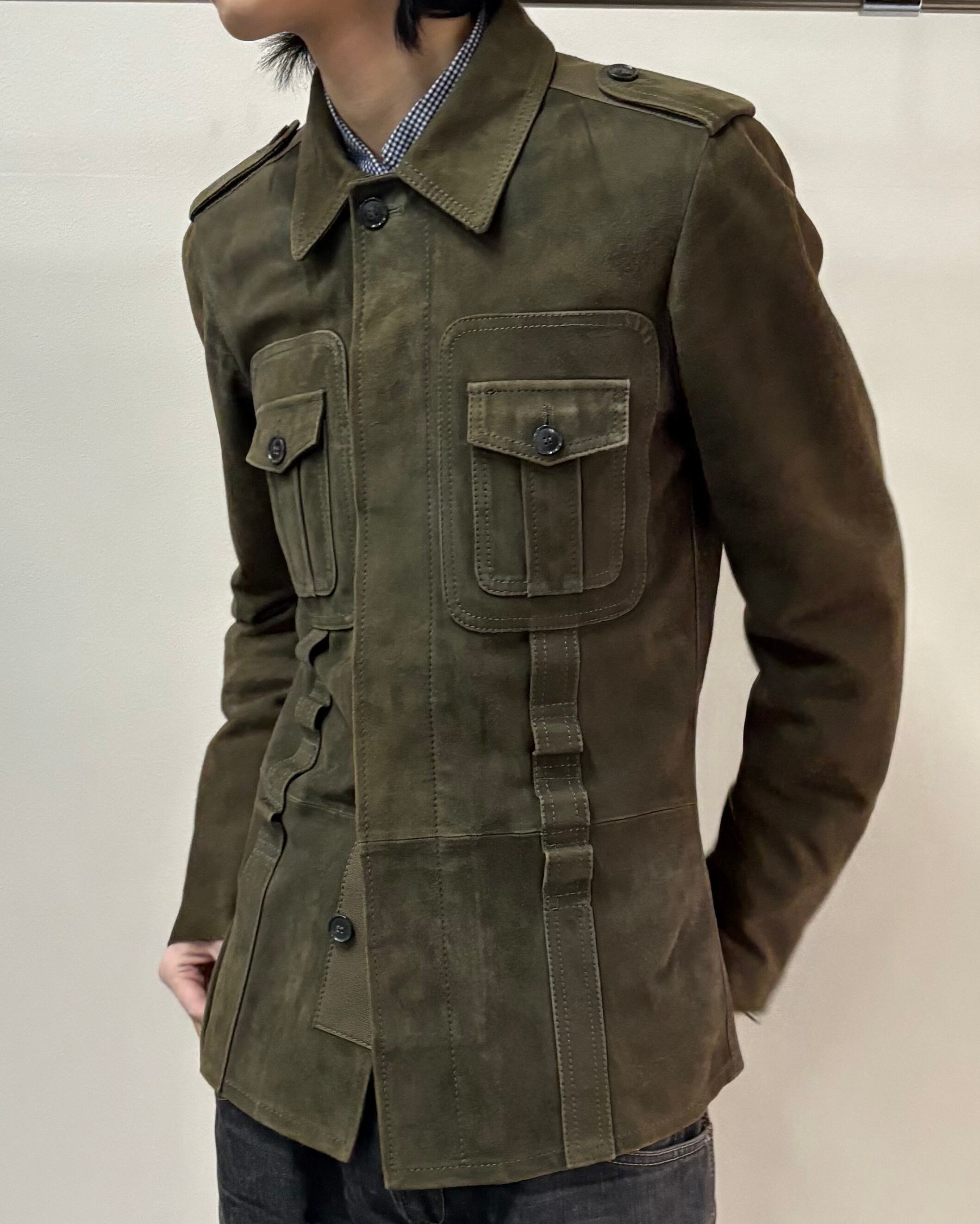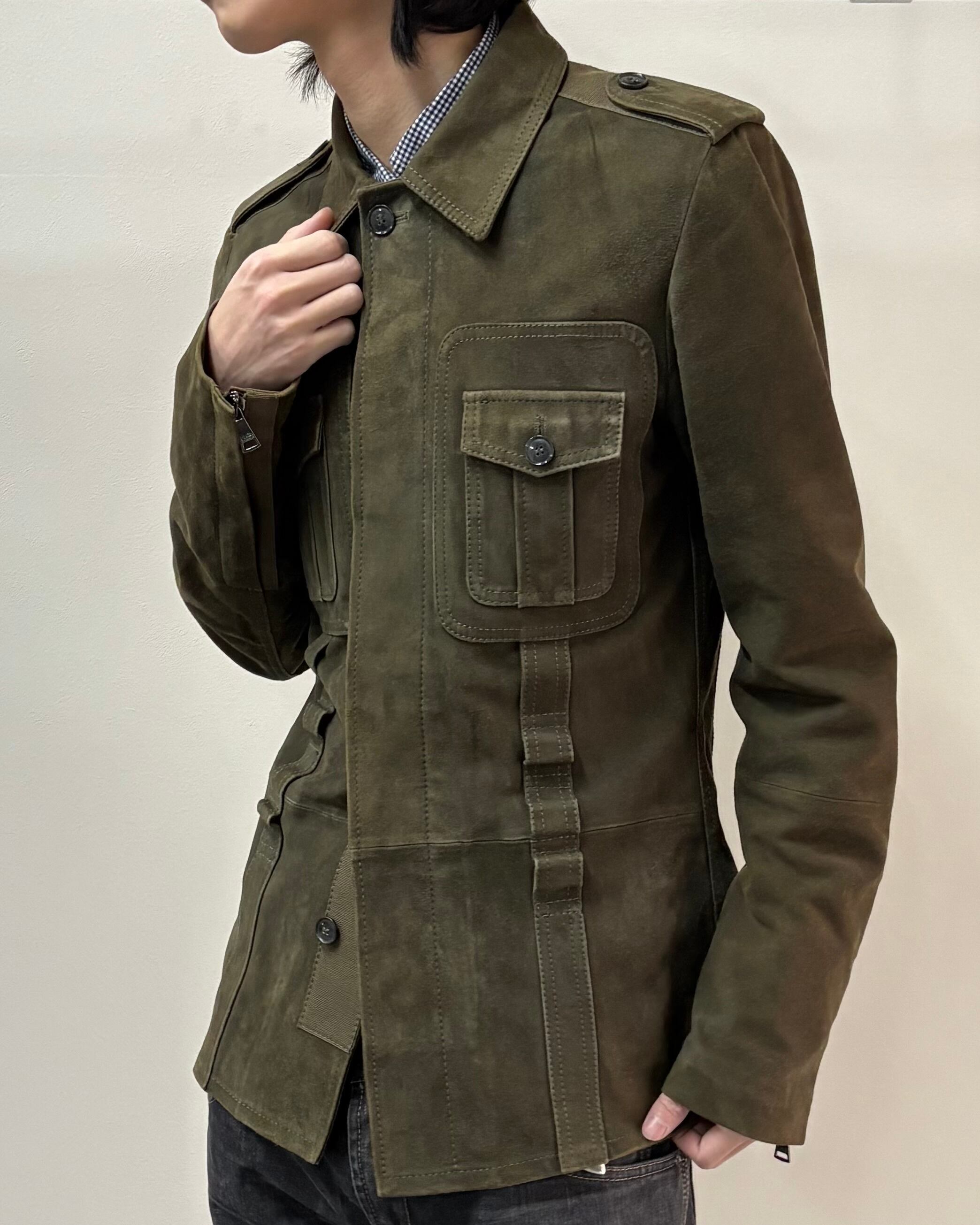 スッキリとしたサイズ感とゴートスキンスエードの上品さにミリタリーのディテールを落とし込んだ一着。
