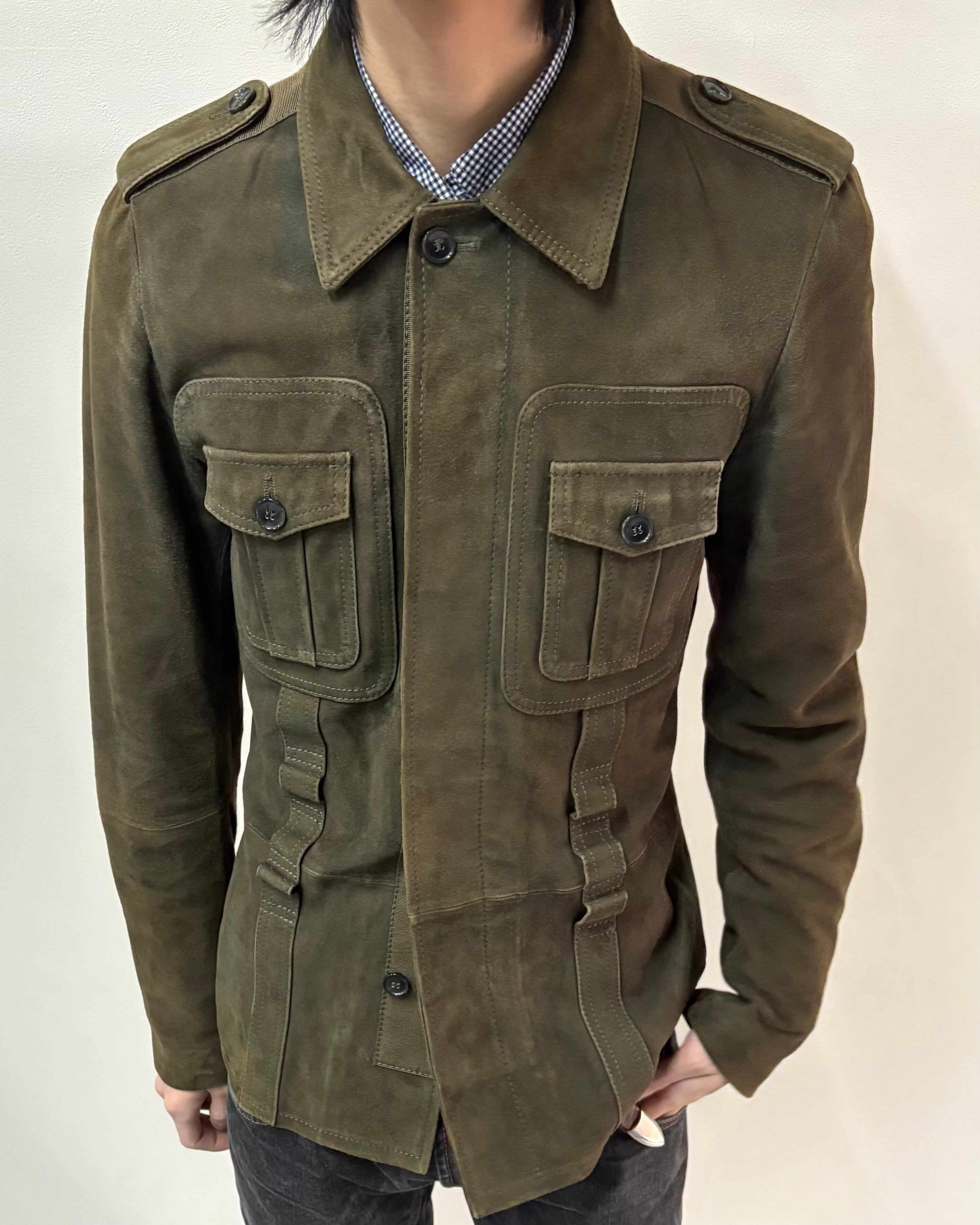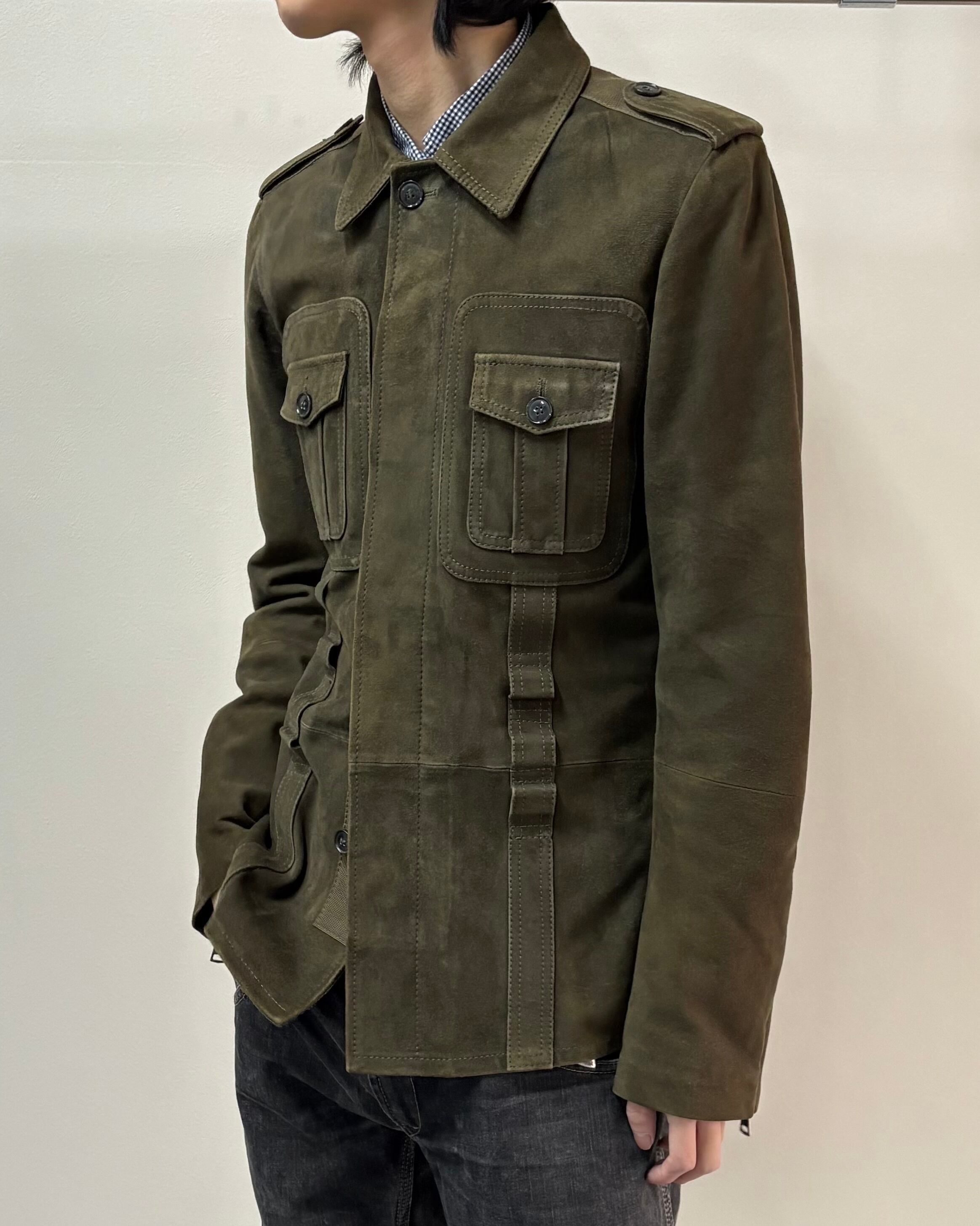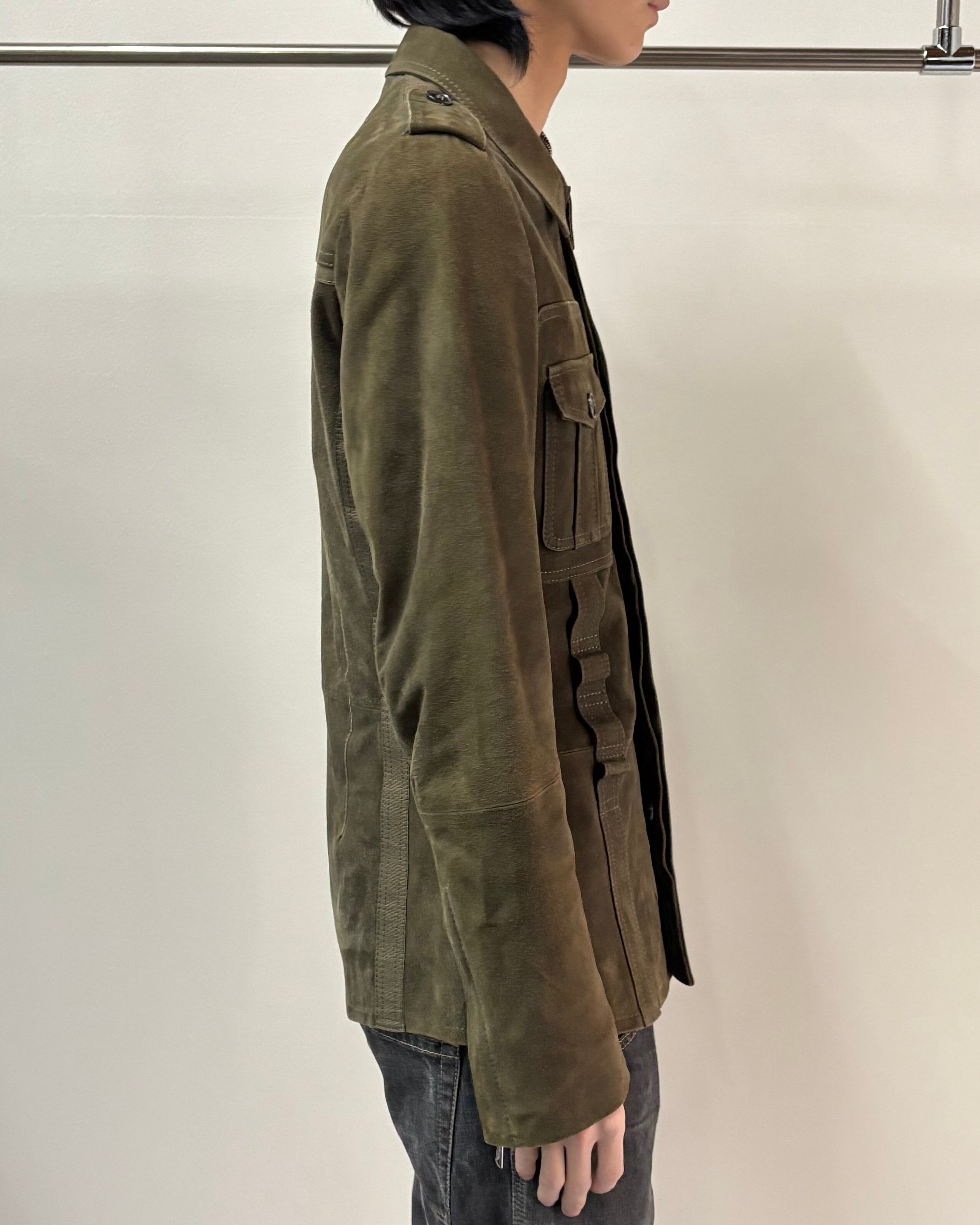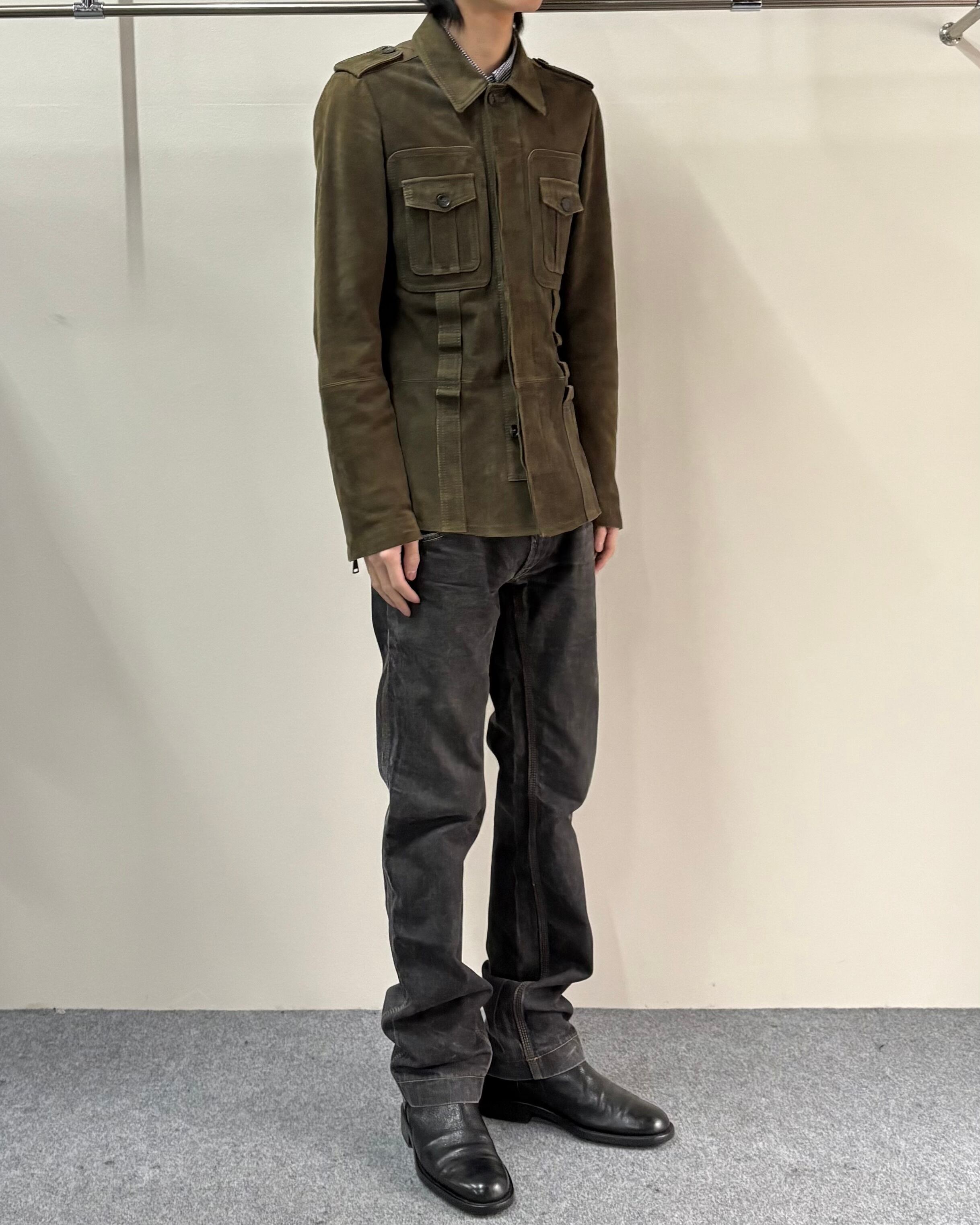スッキリとしたサイズ感とゴートスキンスエードの上品さにミリタリーのディテールを落とし込んだ一着。