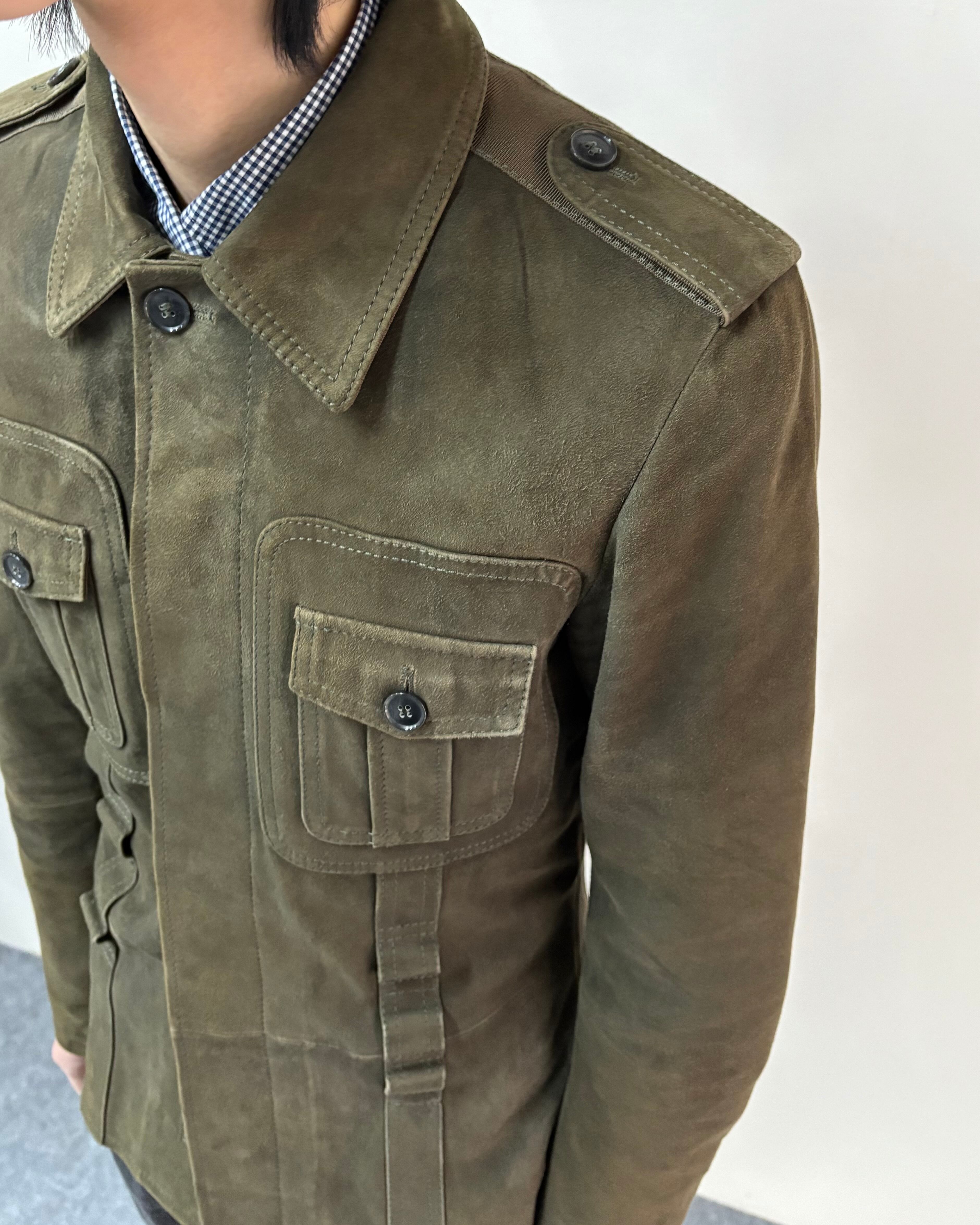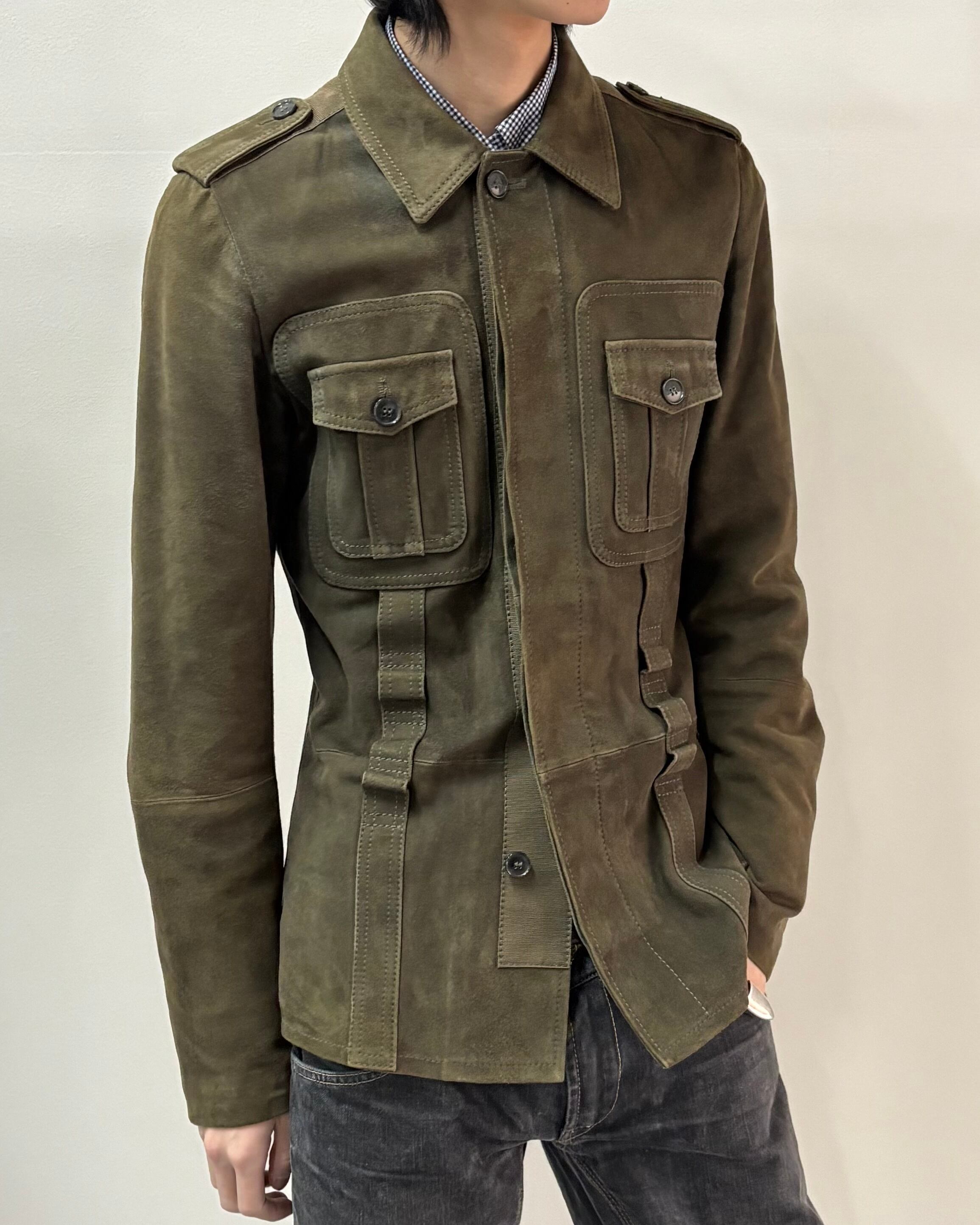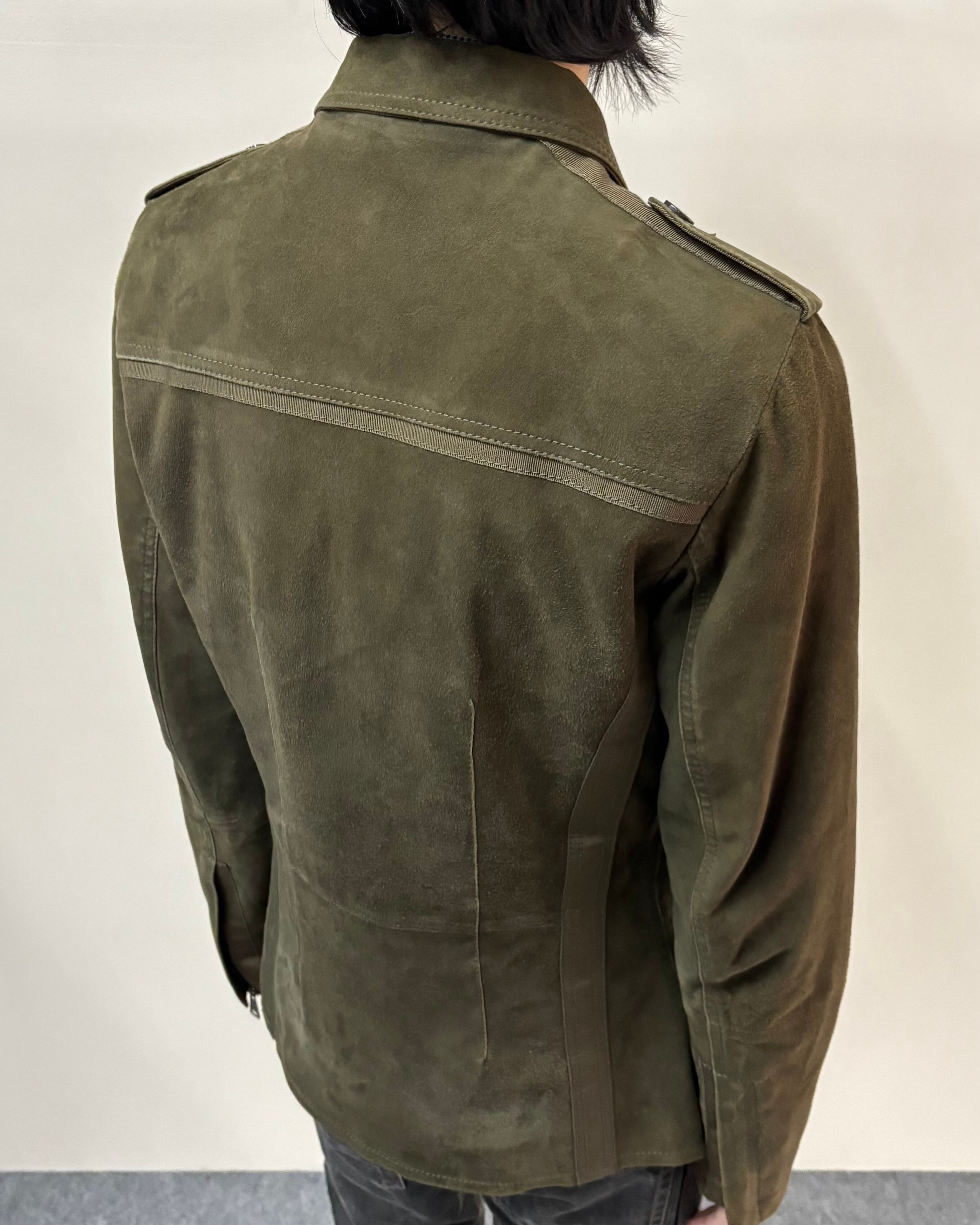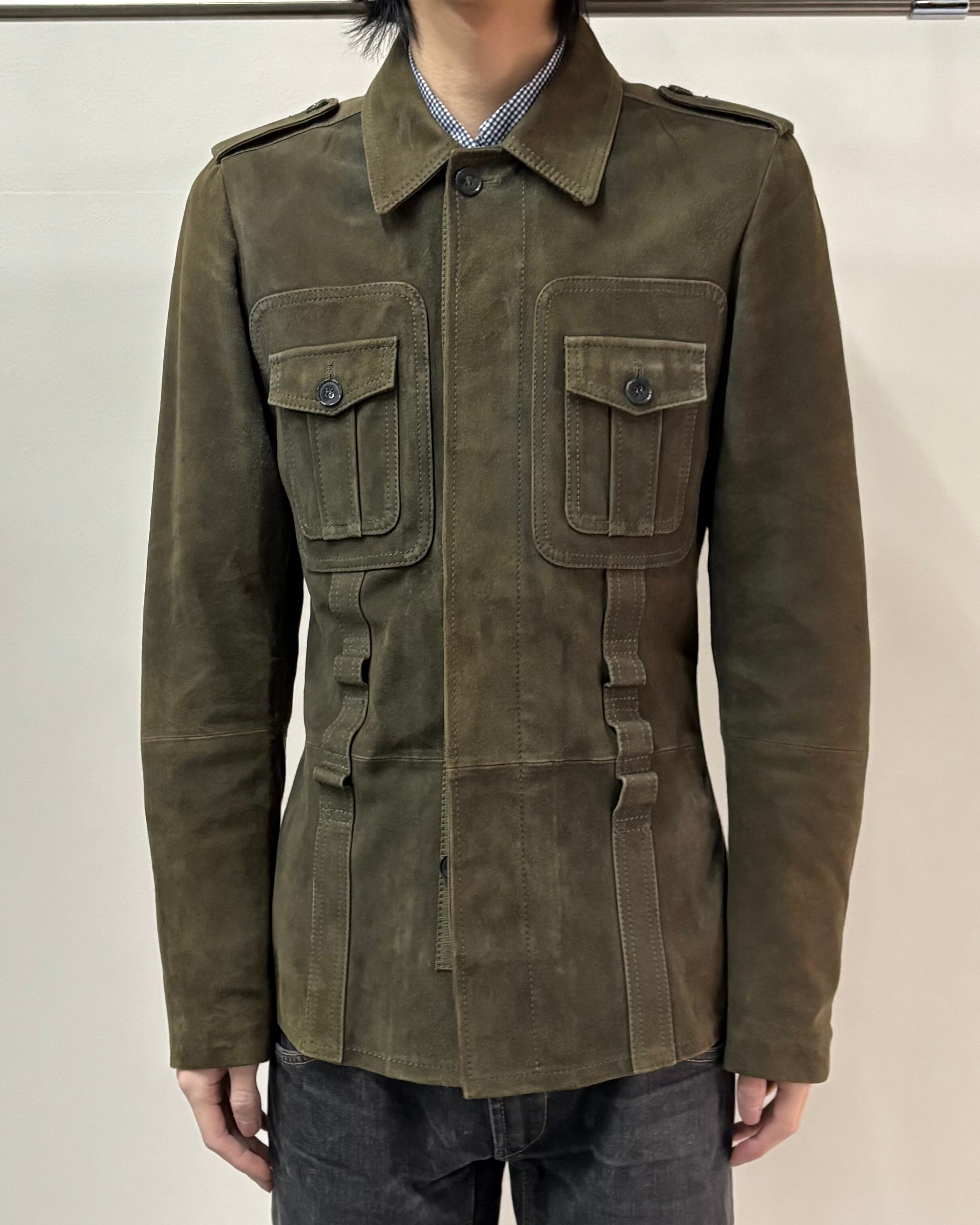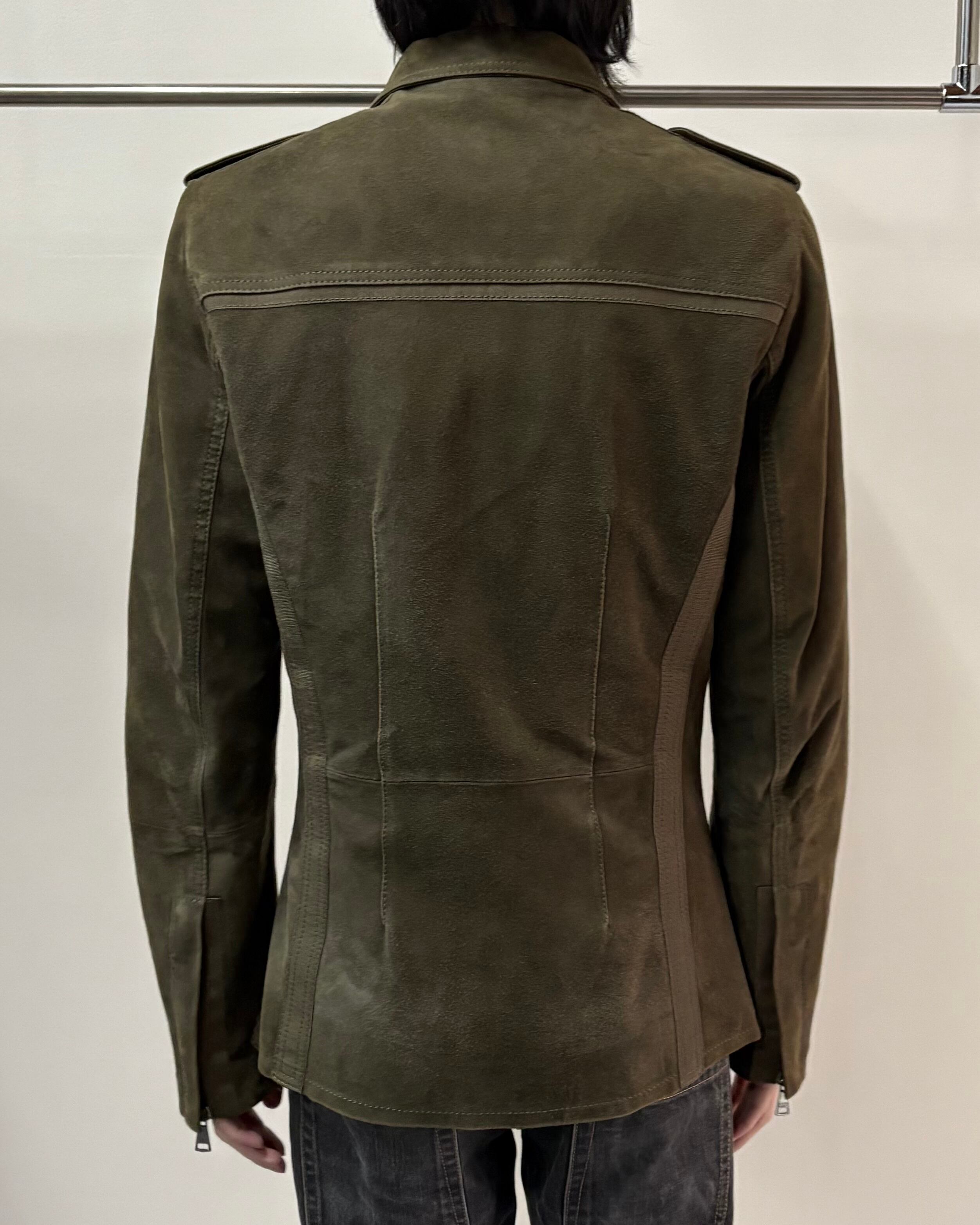スッキリとしたサイズ感とゴートスキンスエードの上品さにミリタリーのディテールを落とし込んだ一着。
