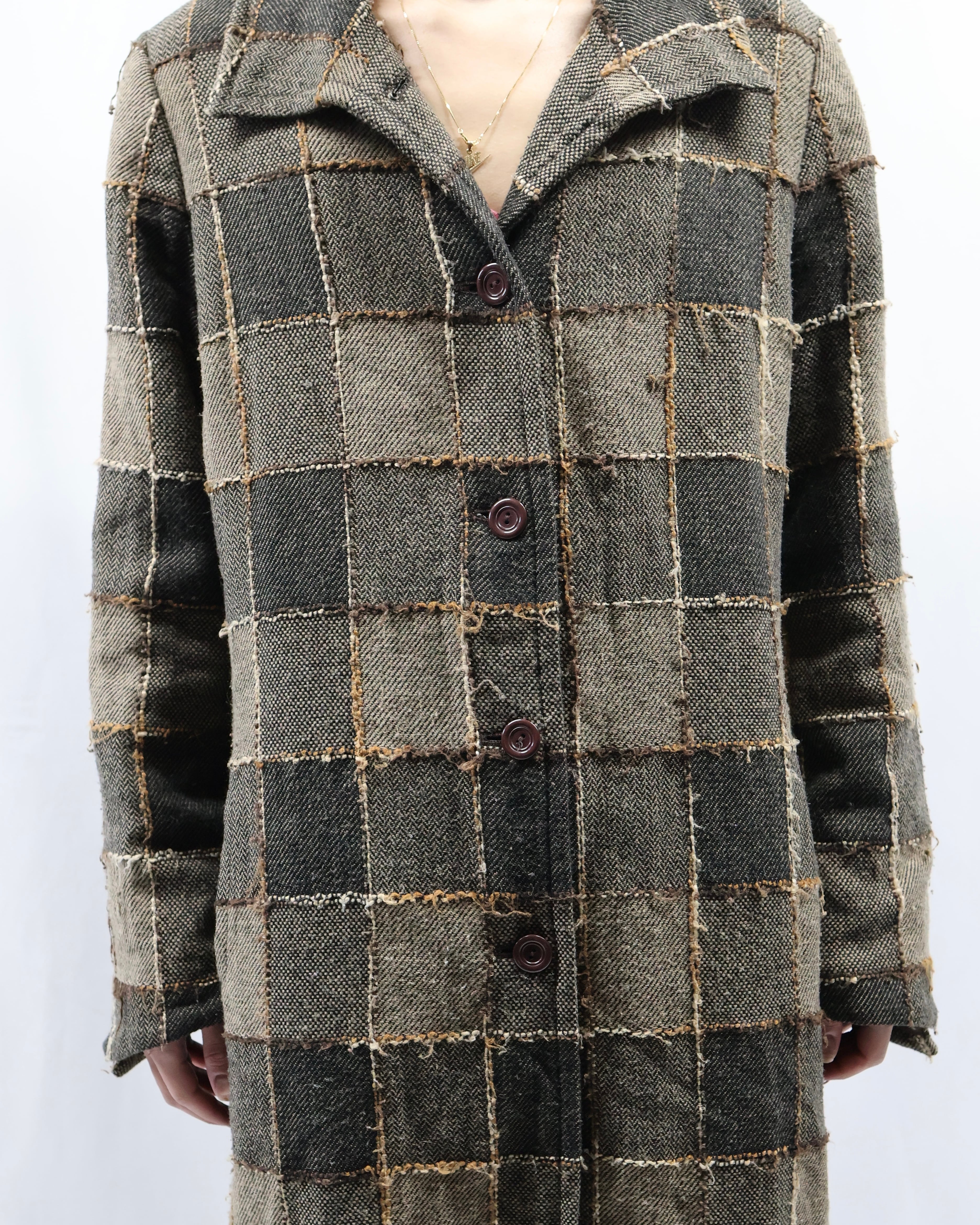 Check Design Mid-Length Coat