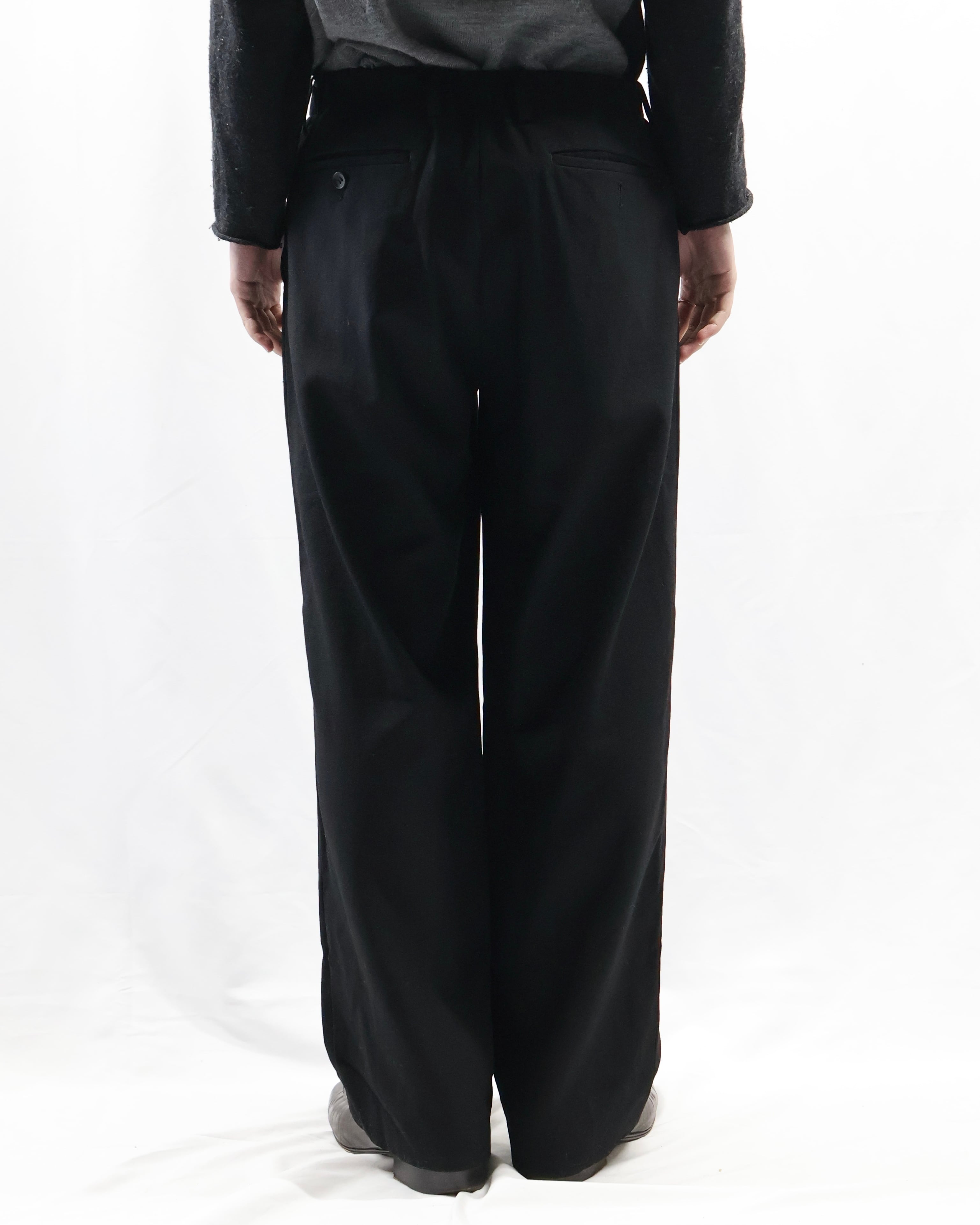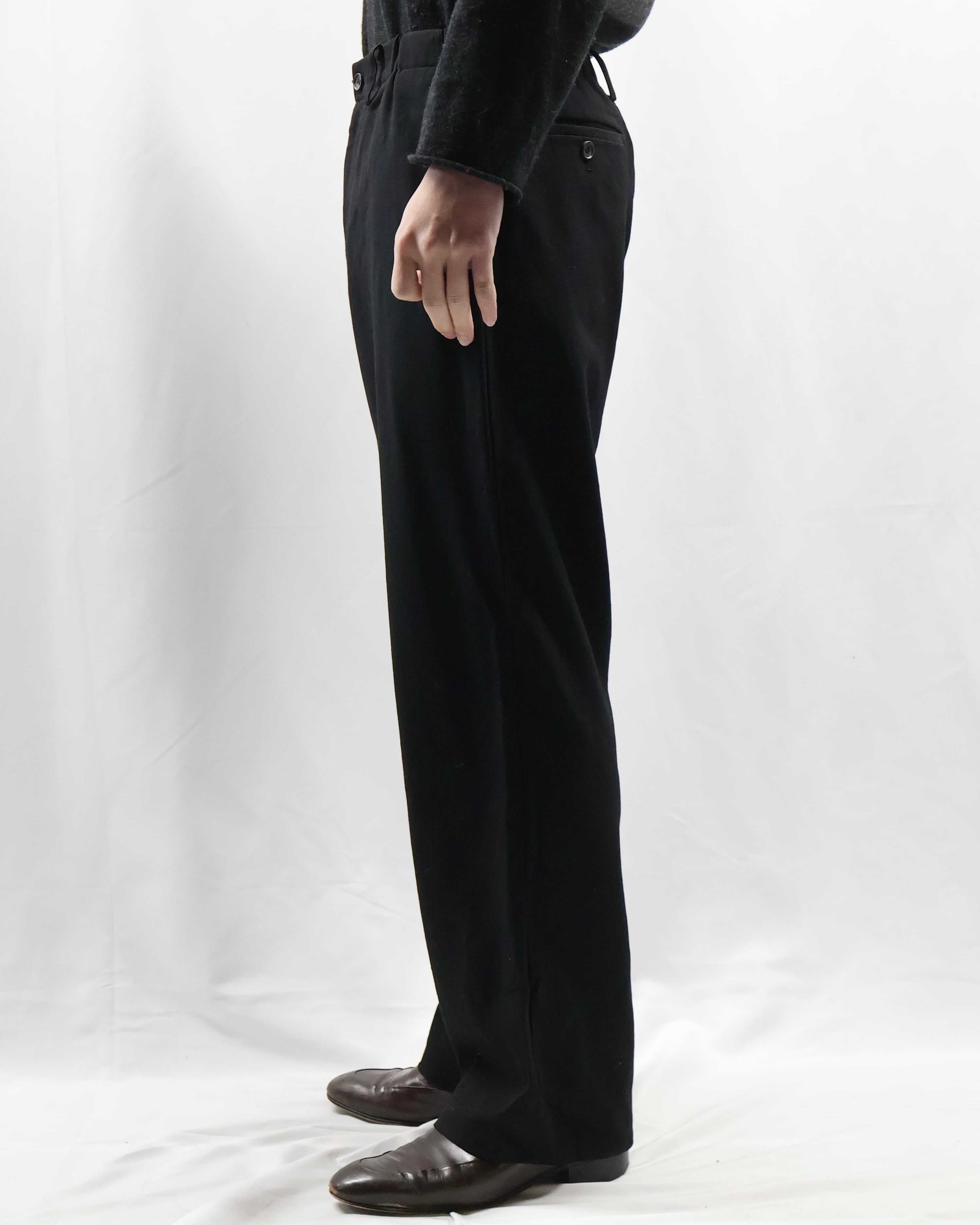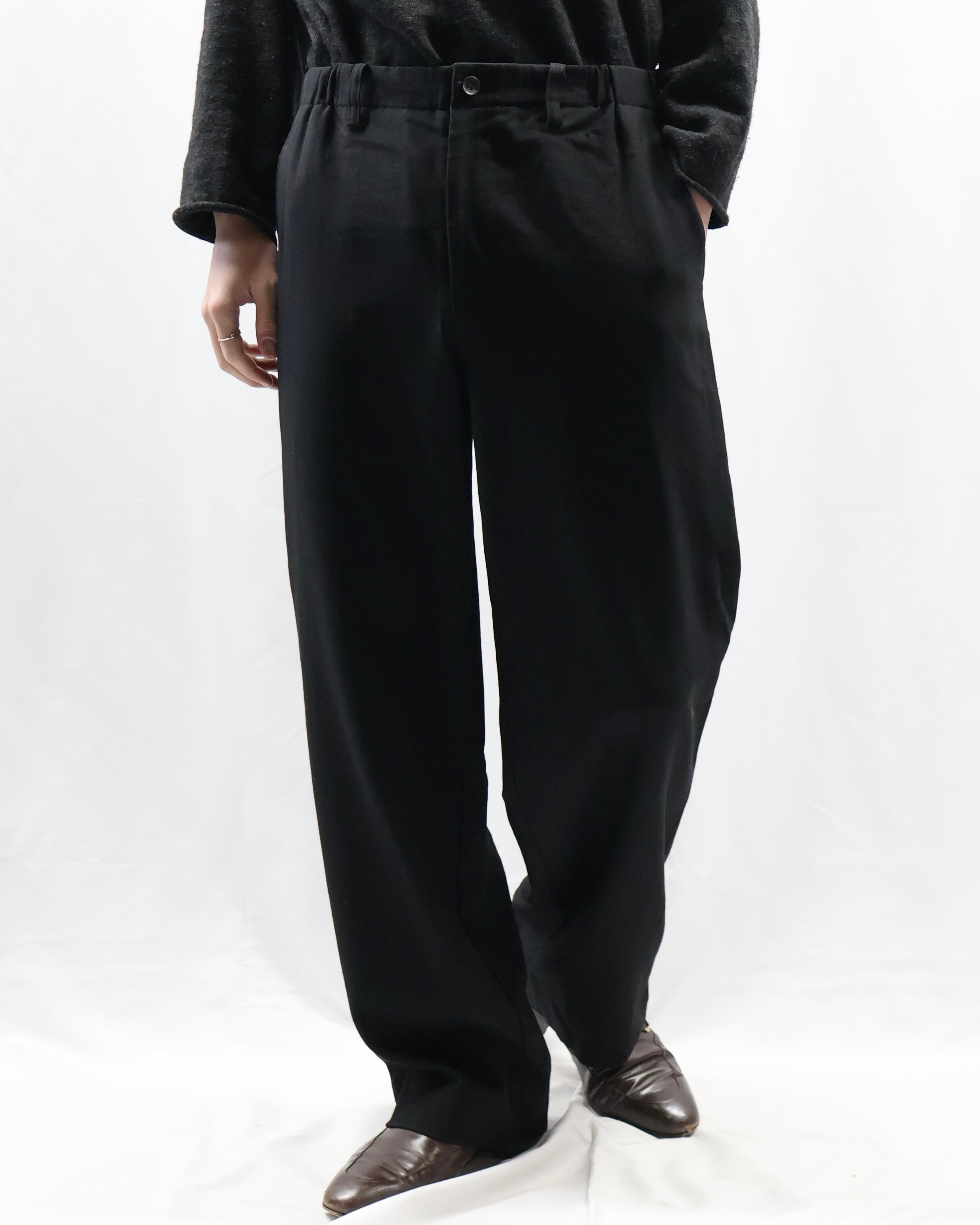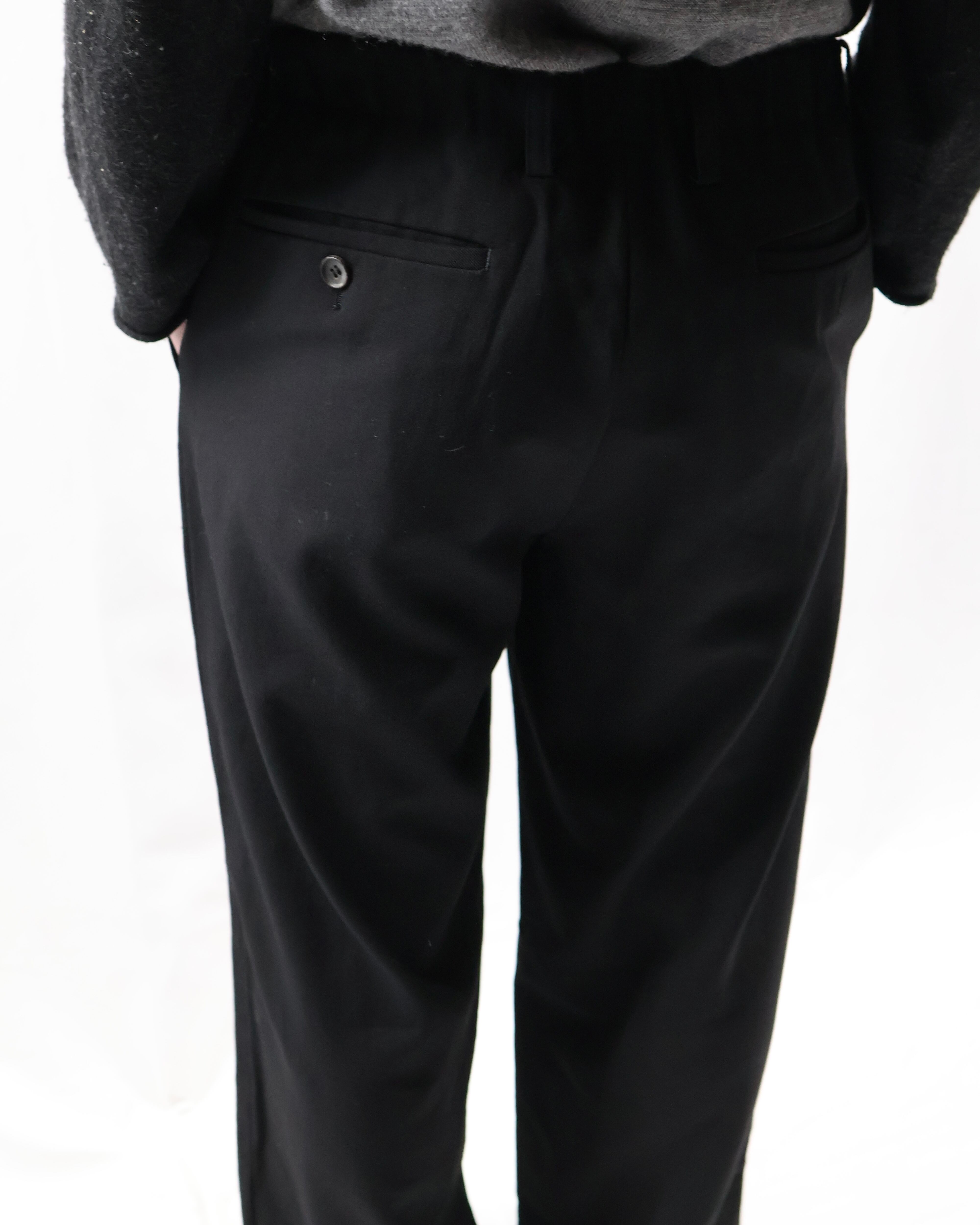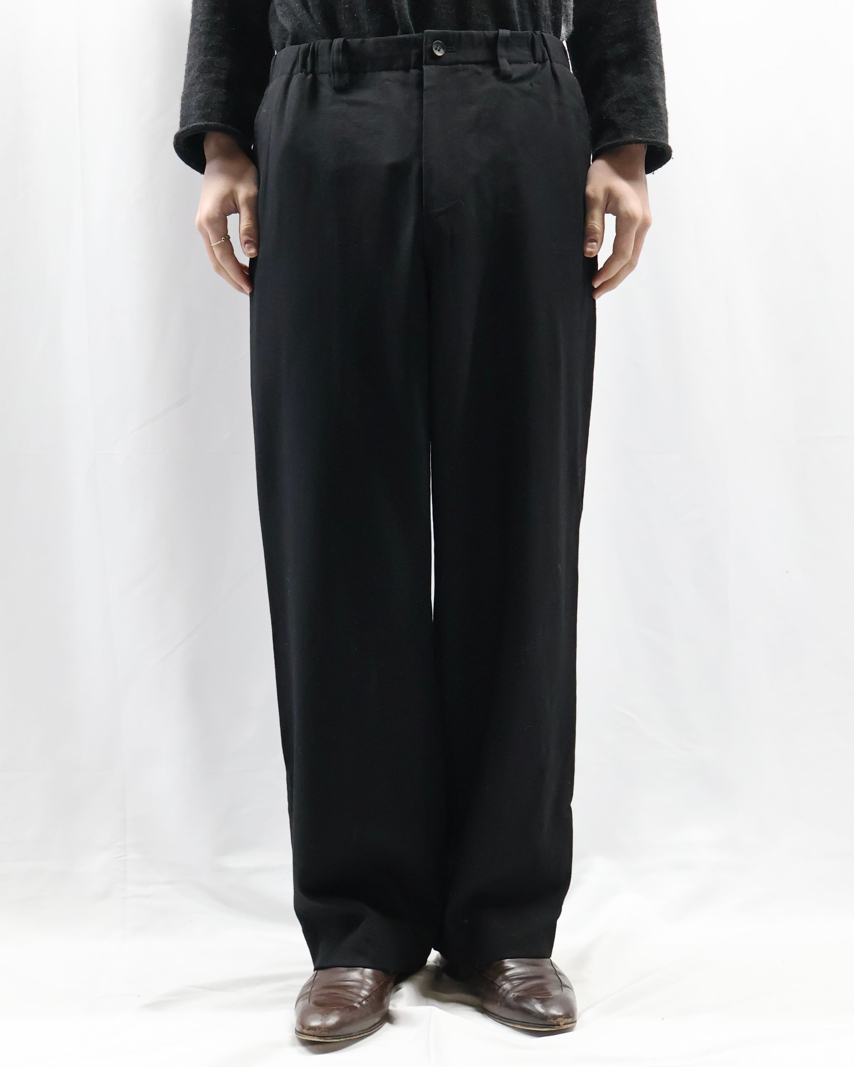 ミニマルなデザインのブラックイージースラックス。シンプルではありながら、モードな印象を演出するとりあえず着ておきたくなるような軽やかな履き心地のスラックス。シルエットはさすがのイッセイというべきの美しいラインで、シルエットの良さは担保しつつもカジュアルからモードまで様々なコーディネートで活躍するパンツです。