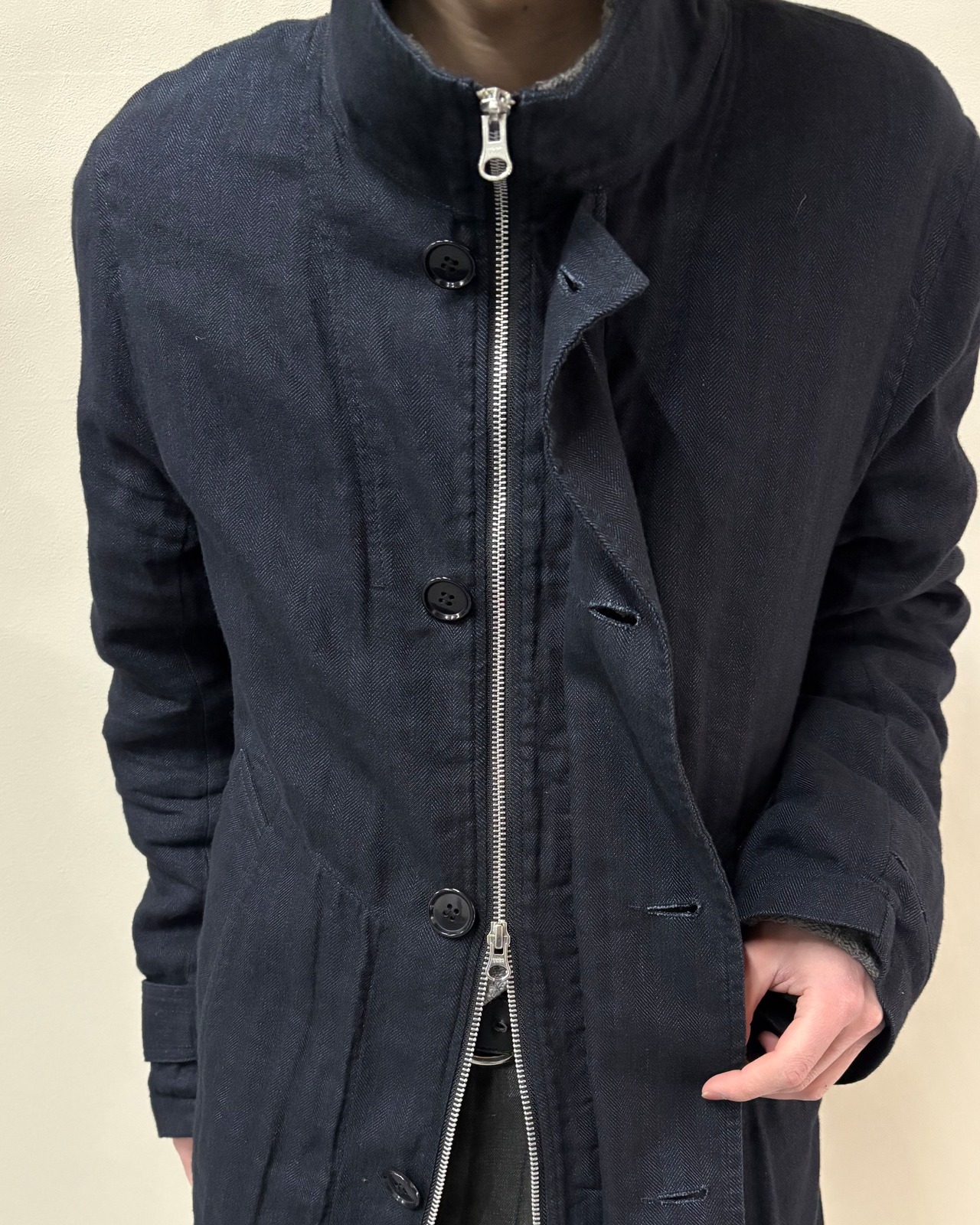 ミニマルなデザインながら、独特のパターンワークと素材感が特徴の一着。シンプルながらディテールで魅せるZUCCAらしいアウターで、モード・カジュアルどちらのスタイルにも取り入れやすい万能なアイテム。