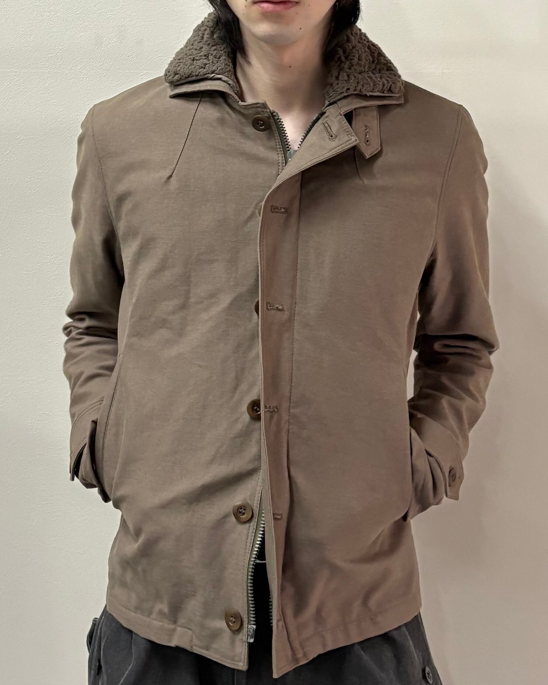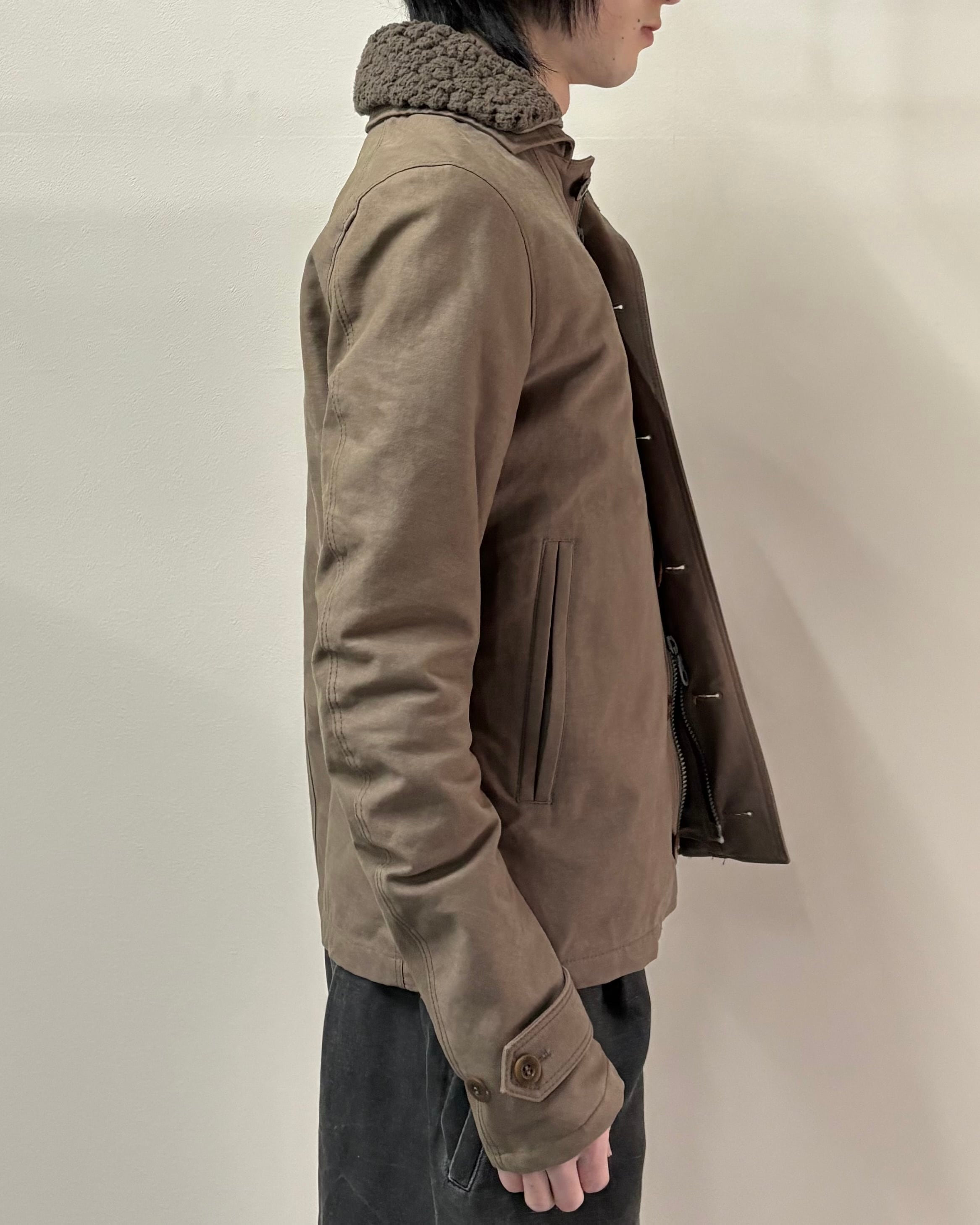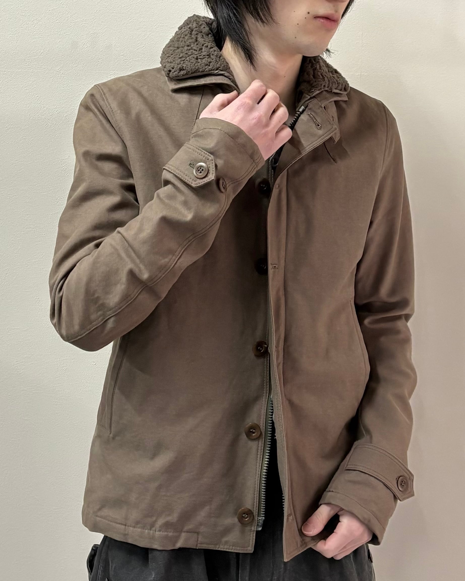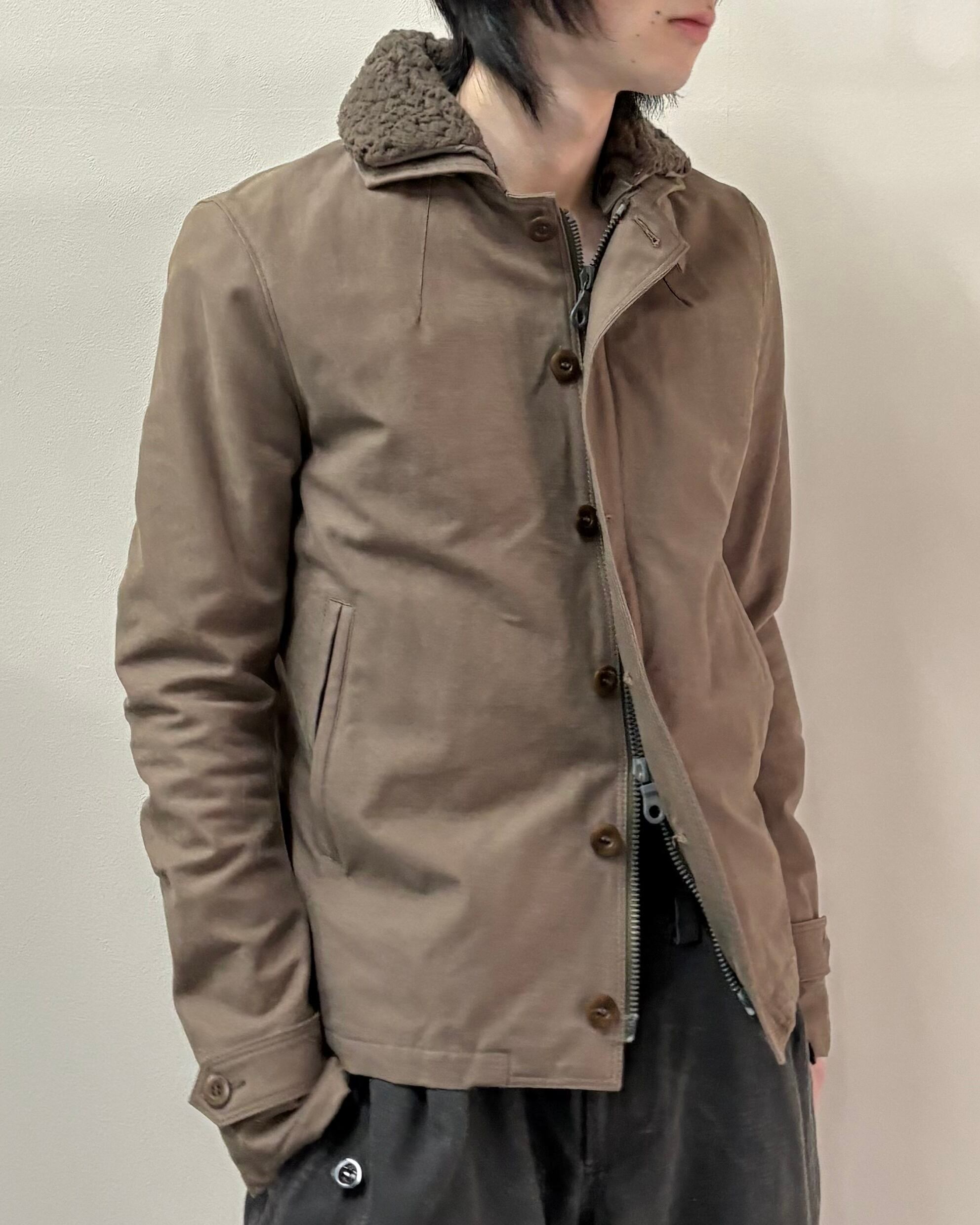 無骨さと都会的なシャープさを併せ持つ、wjkらしいミリタリーテイストの一着。フロントはジップとボタンの二重構造で防風性とデザイン性を兼ね備えた仕様。ボアのライニング付きで真冬はもちろん、ライニング無しでライトアウターとしても着用可能。