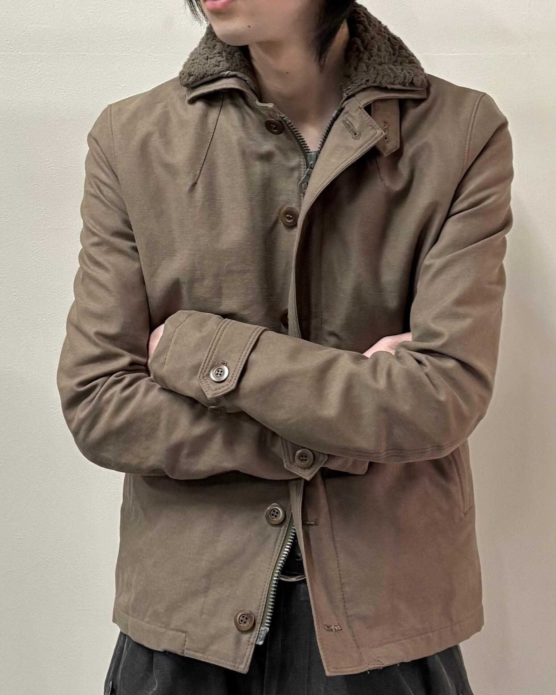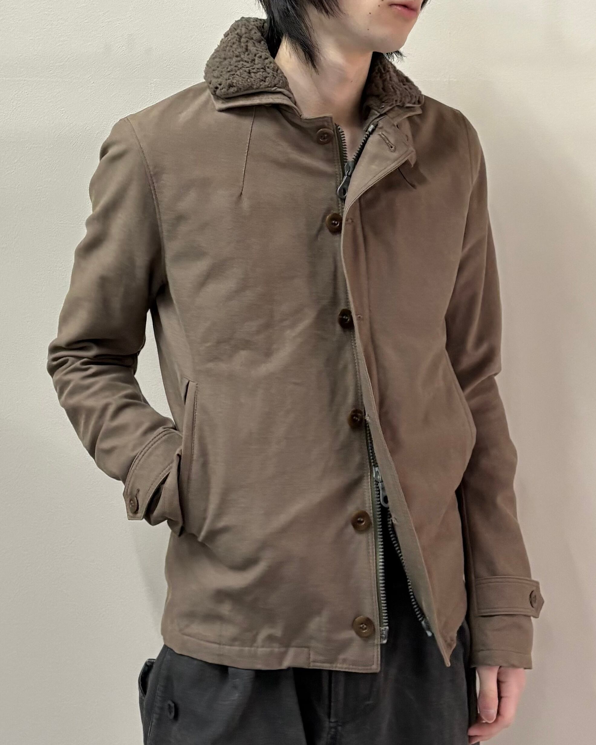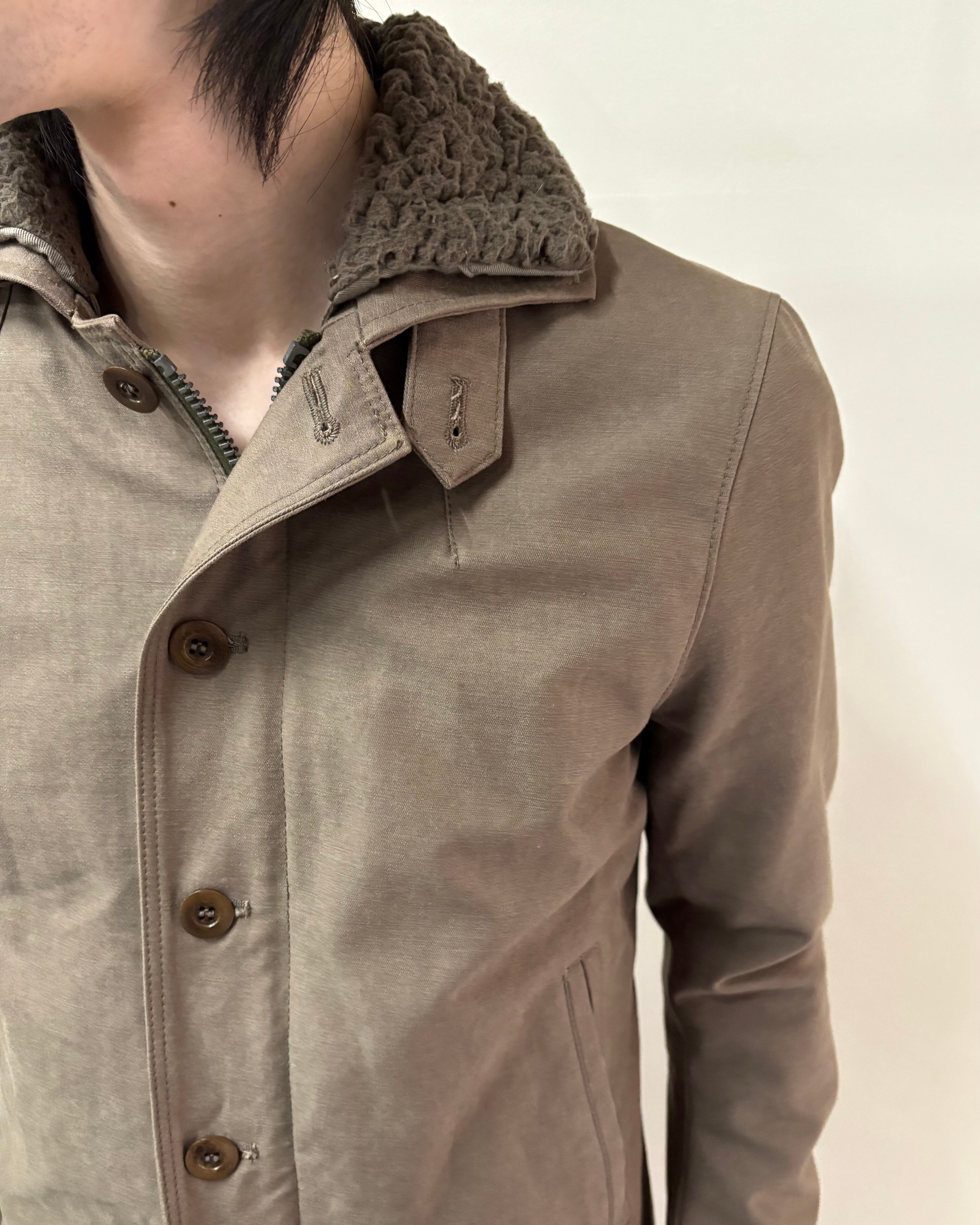 無骨さと都会的なシャープさを併せ持つ、wjkらしいミリタリーテイストの一着。フロントはジップとボタンの二重構造で防風性とデザイン性を兼ね備えた仕様。ボアのライニング付きで真冬はもちろん、ライニング無しでライトアウターとしても着用可能。