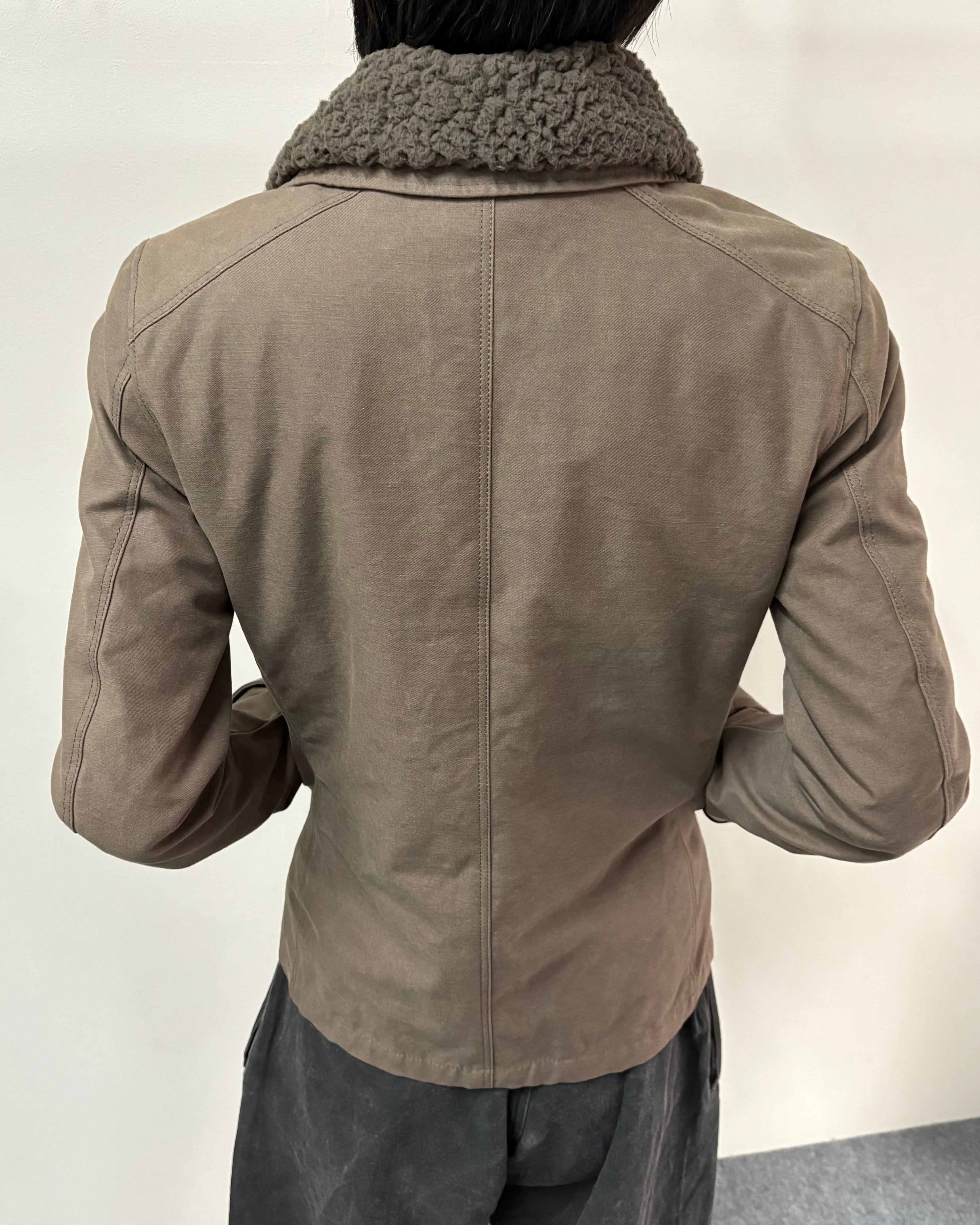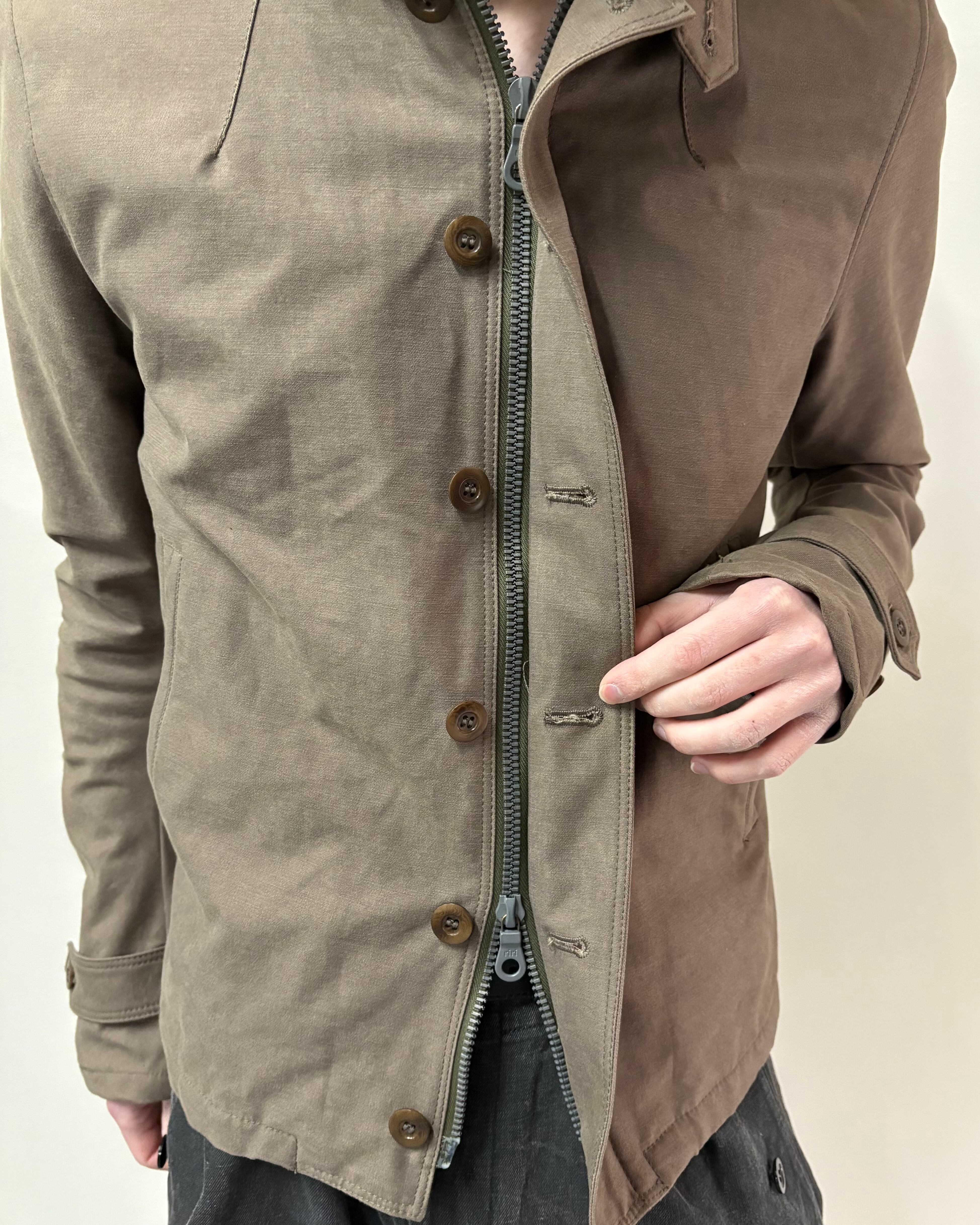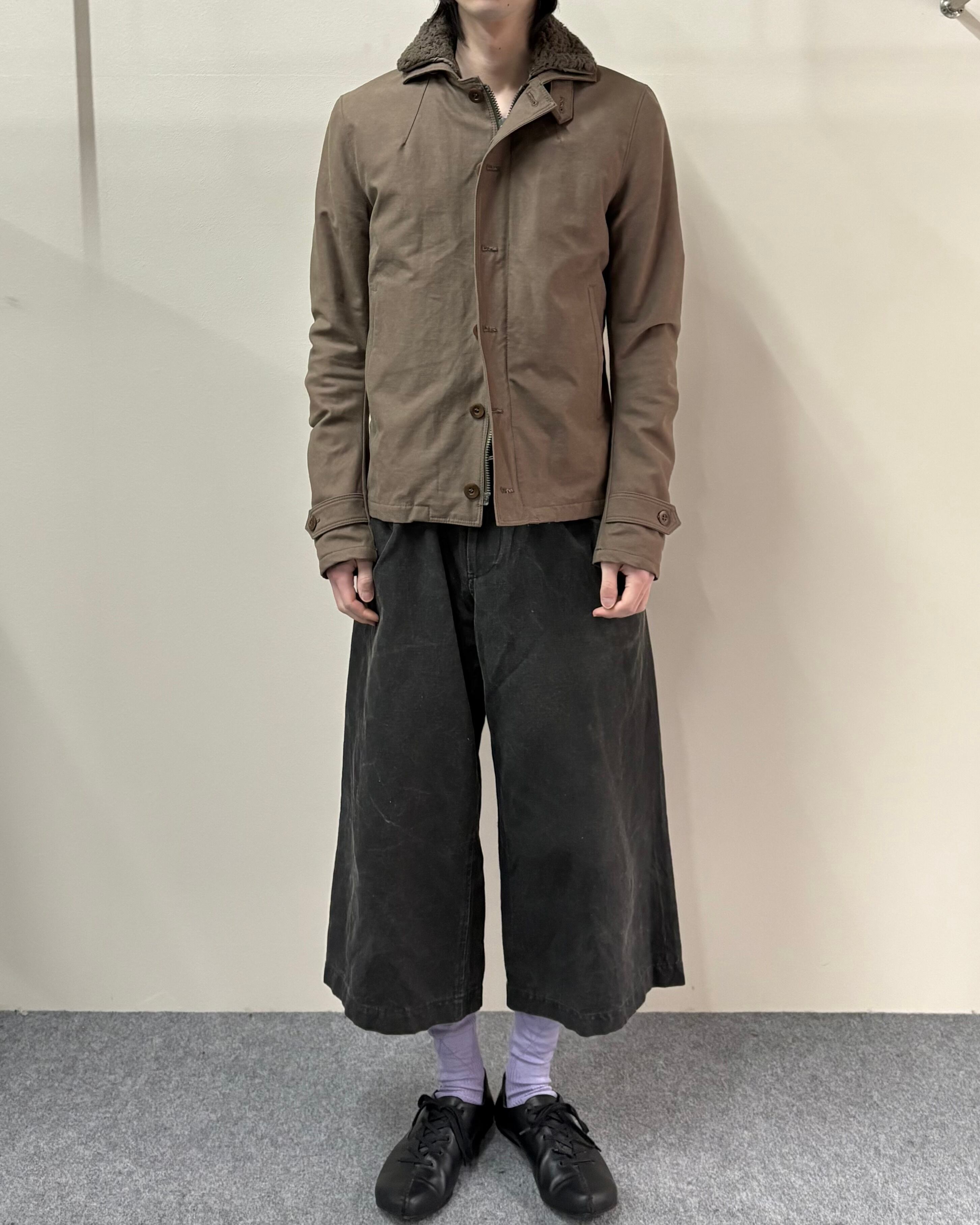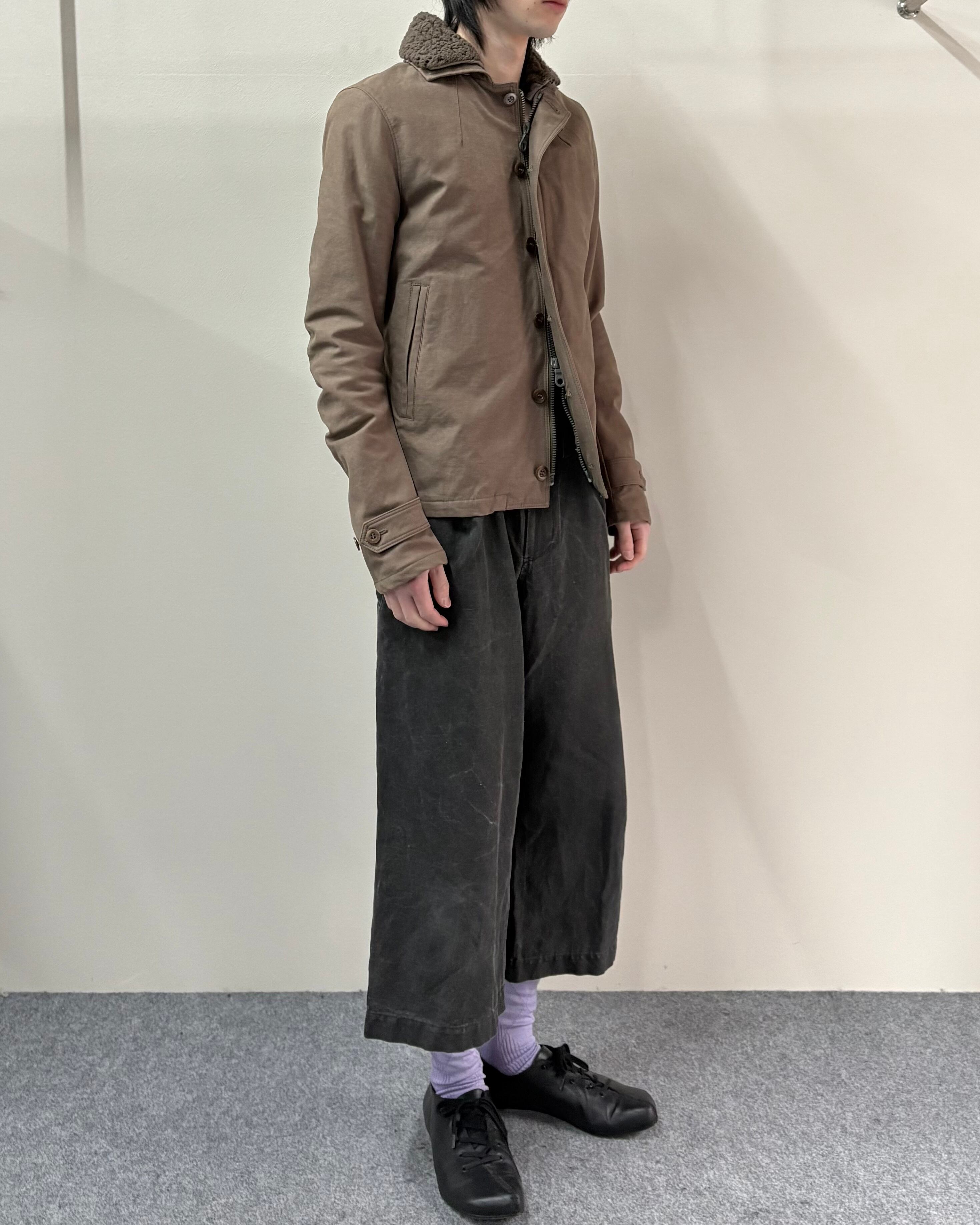 無骨さと都会的なシャープさを併せ持つ、wjkらしいミリタリーテイストの一着。フロントはジップとボタンの二重構造で防風性とデザイン性を兼ね備えた仕様。ボアのライニング付きで真冬はもちろん、ライニング無しでライトアウターとしても着用可能。