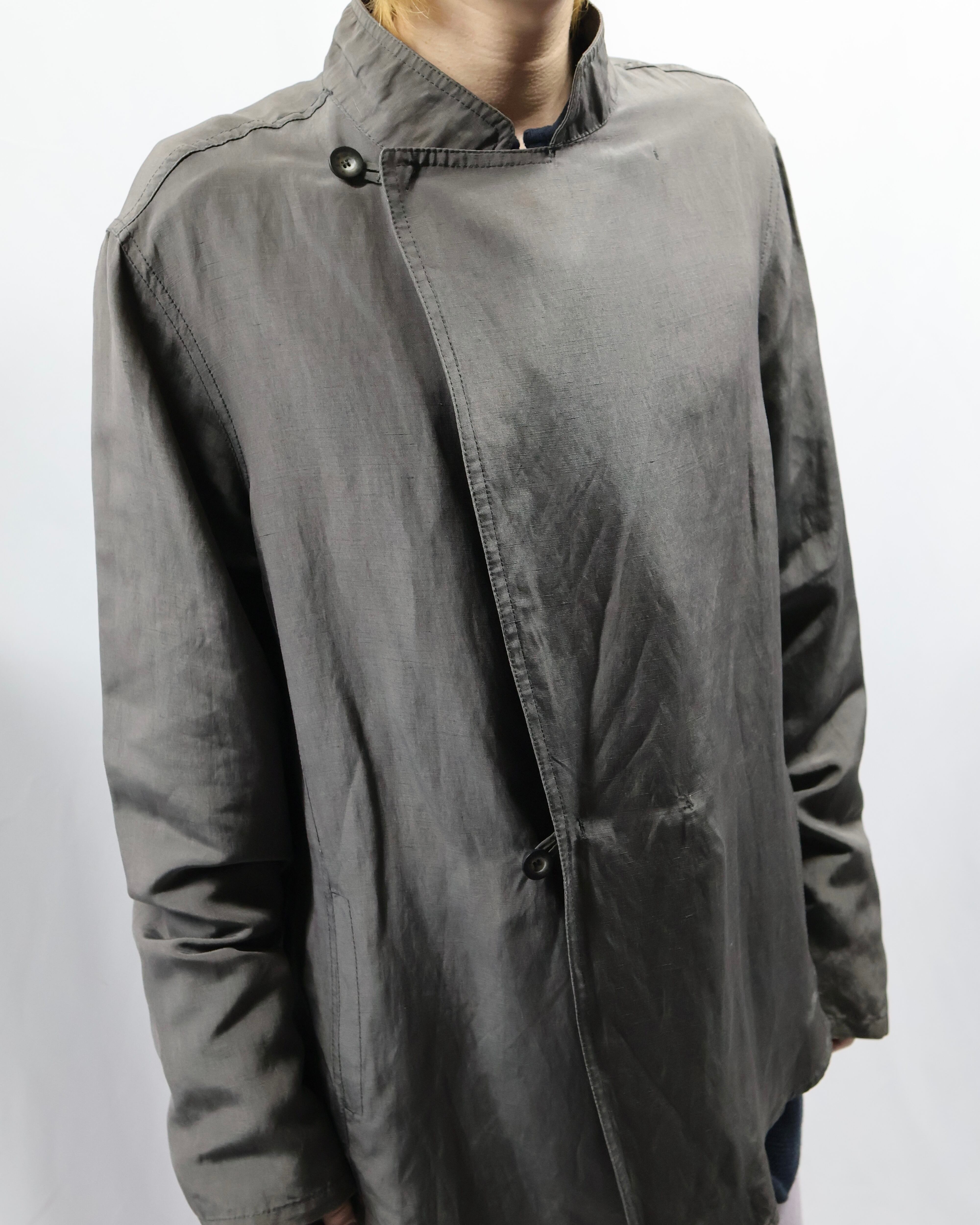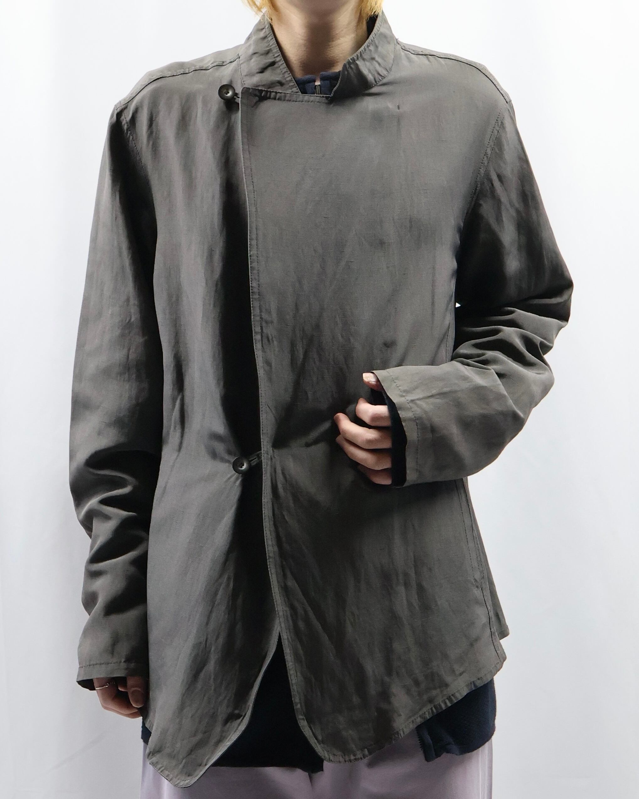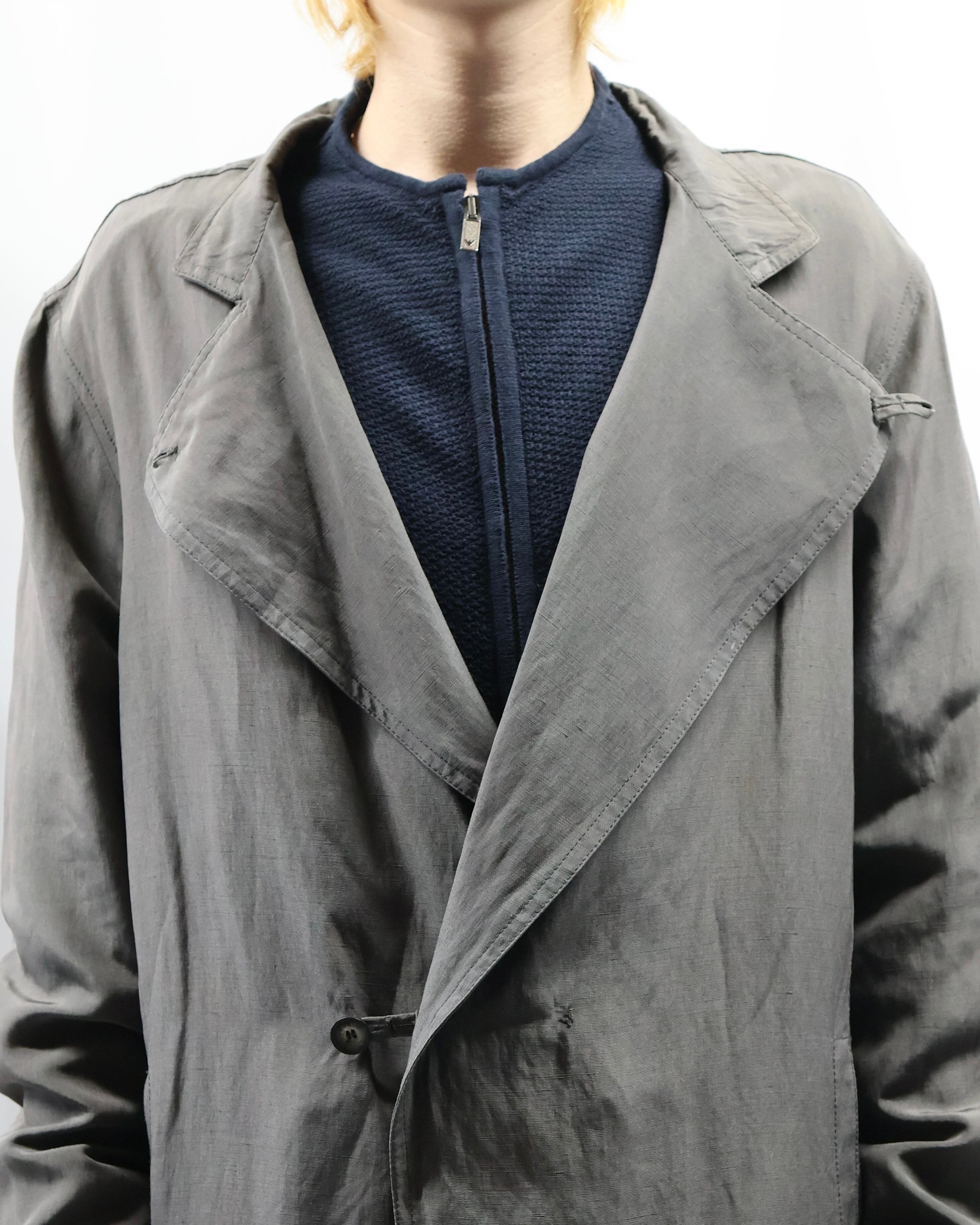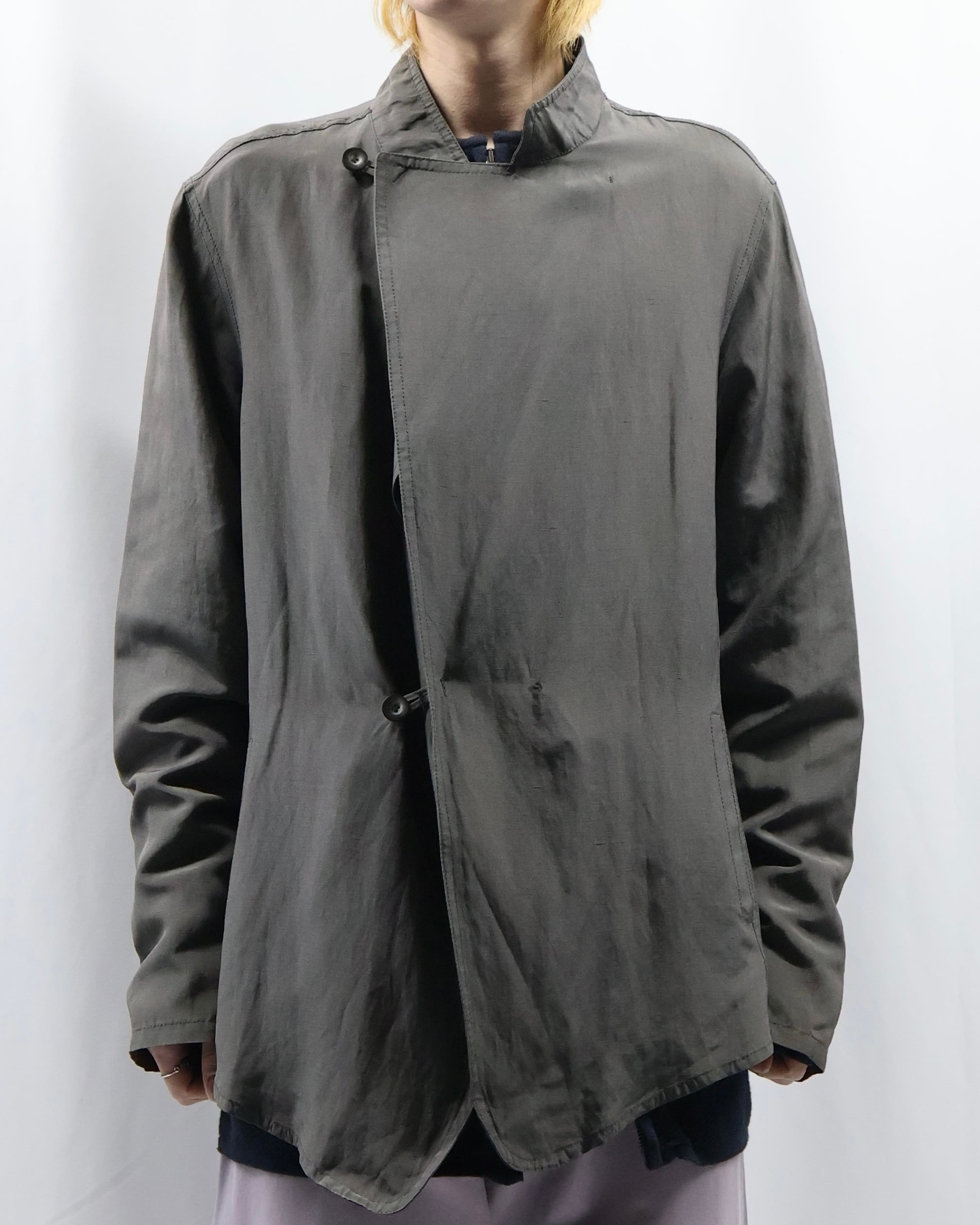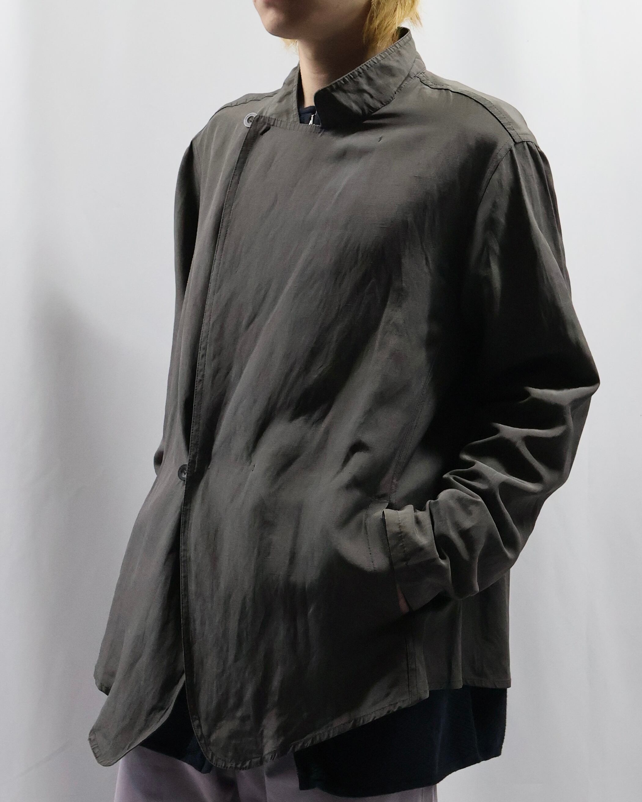 シルクとリネンを使用した、ドレープ感のあるライトジャケット。シルクの光沢感が上品で、一枚できるのはもちろん、インナーにしても存在感があります。色もよく、ダークトーンの差し色として使用すると、玄人感のあるファッションを楽しんでいただけます。