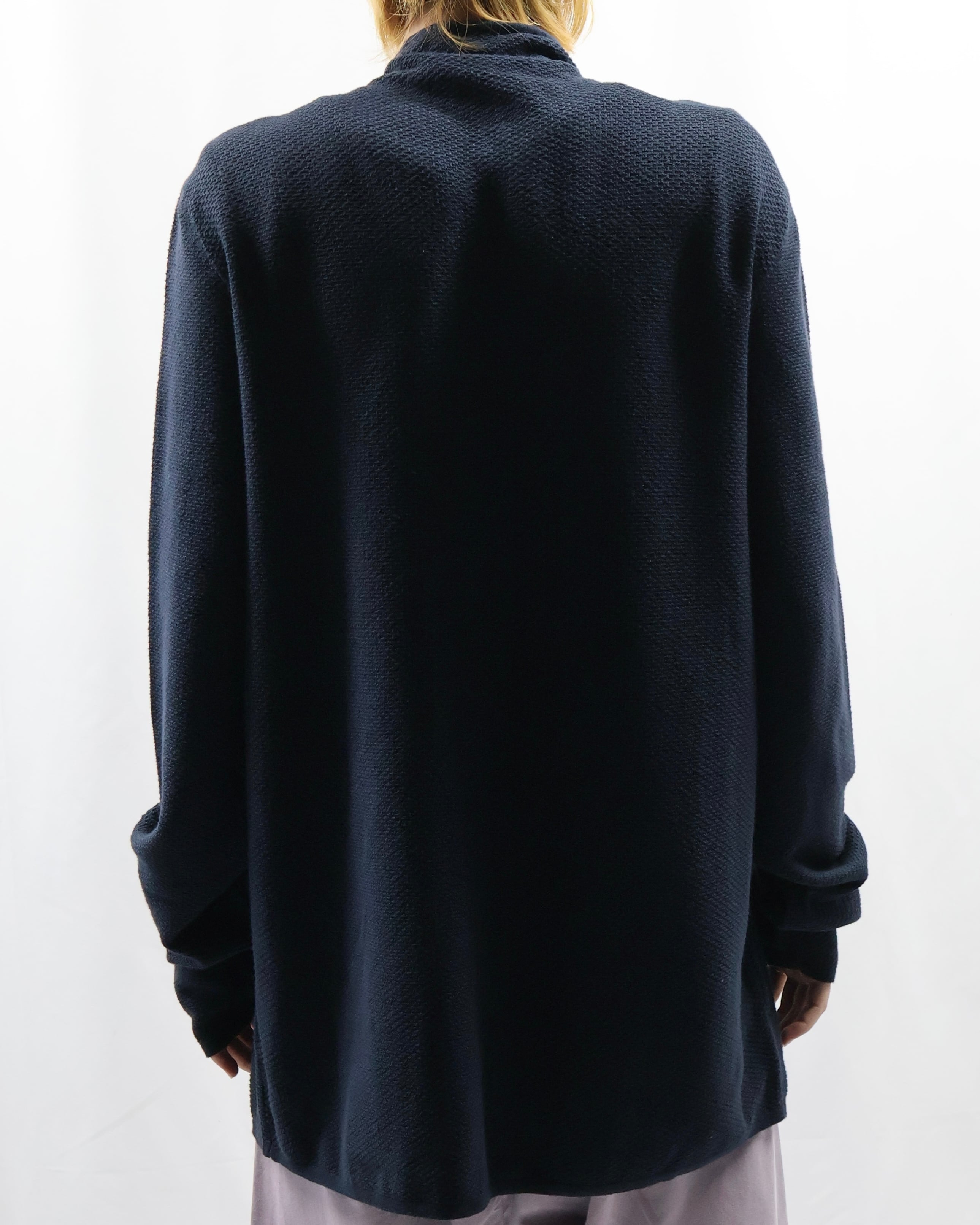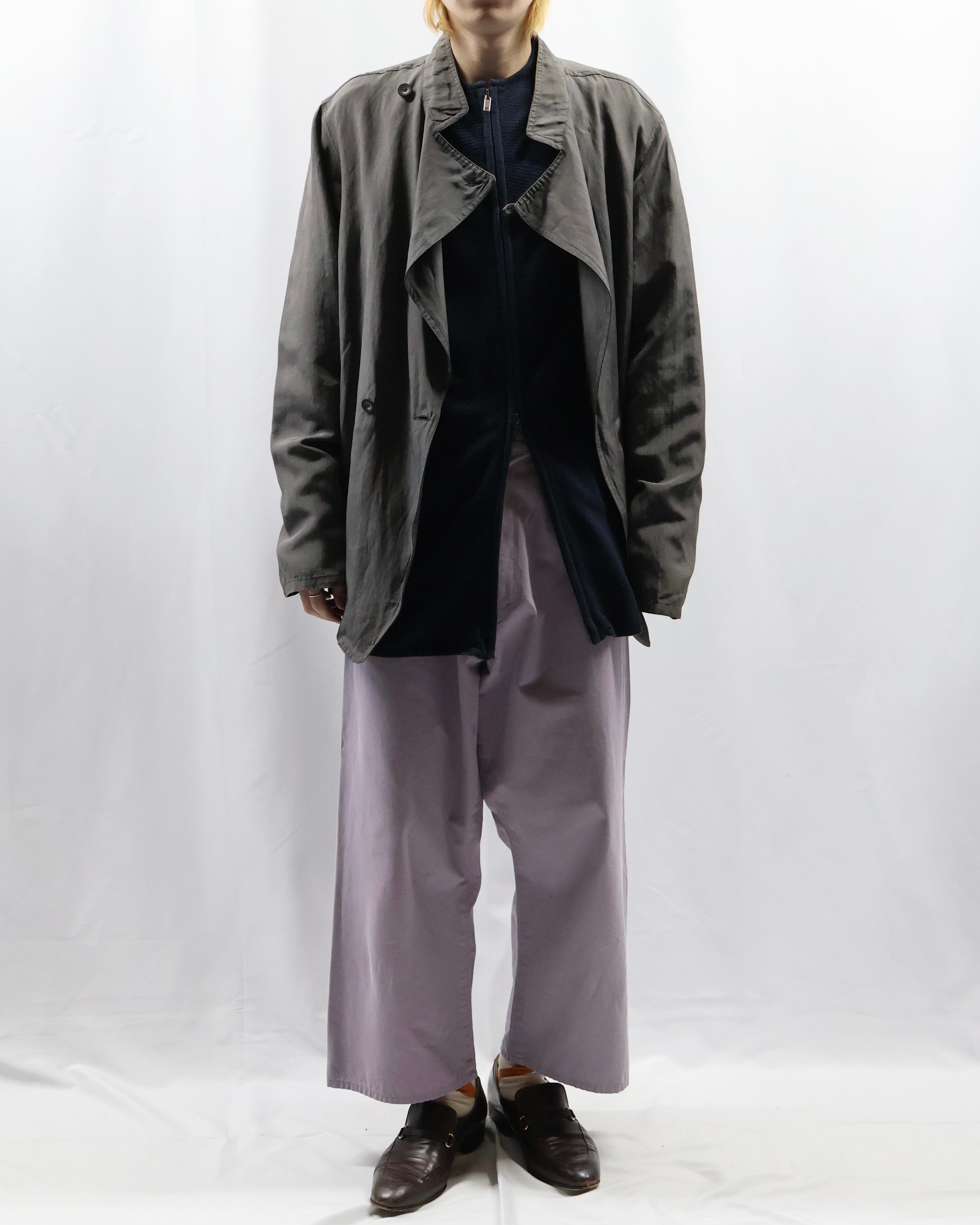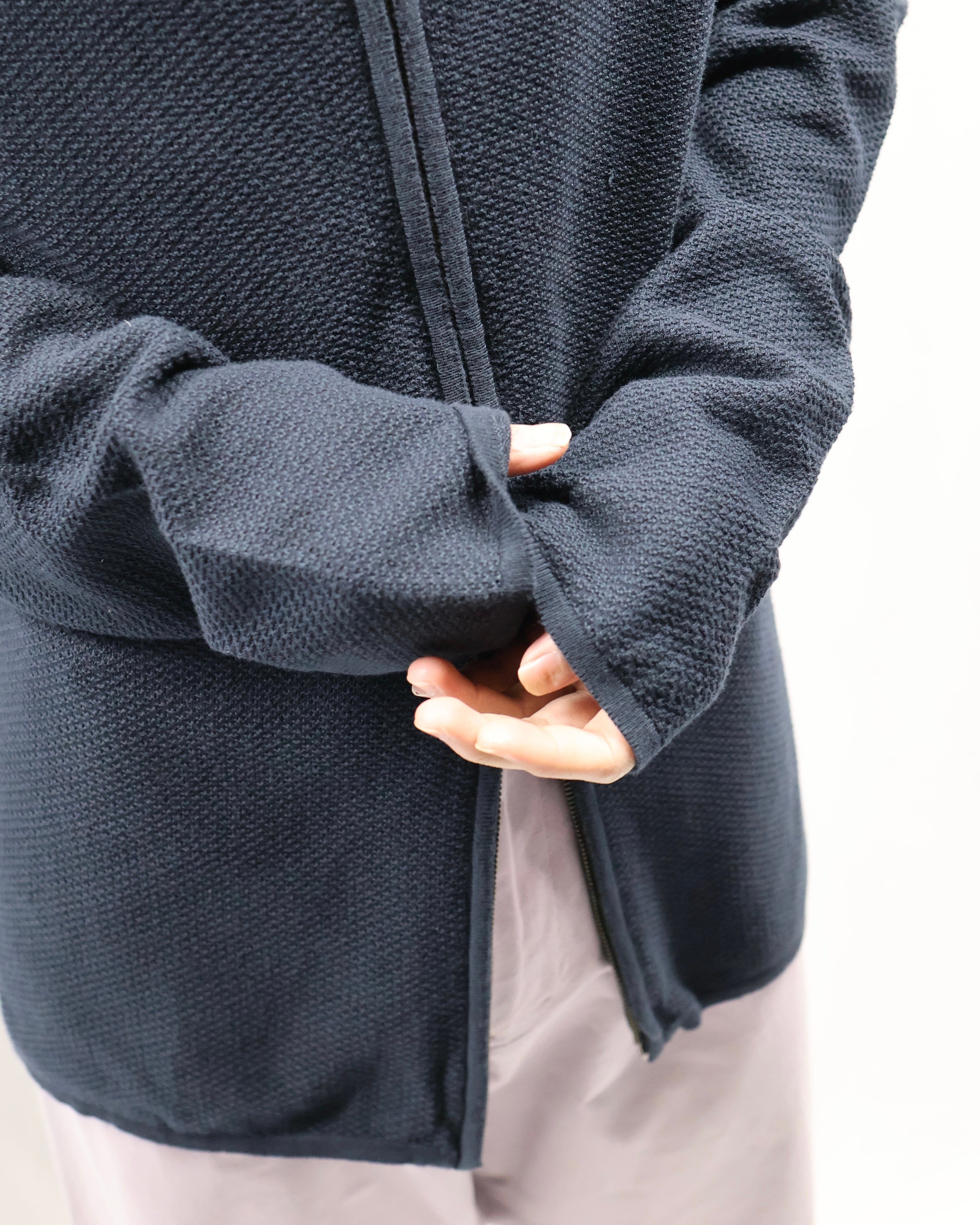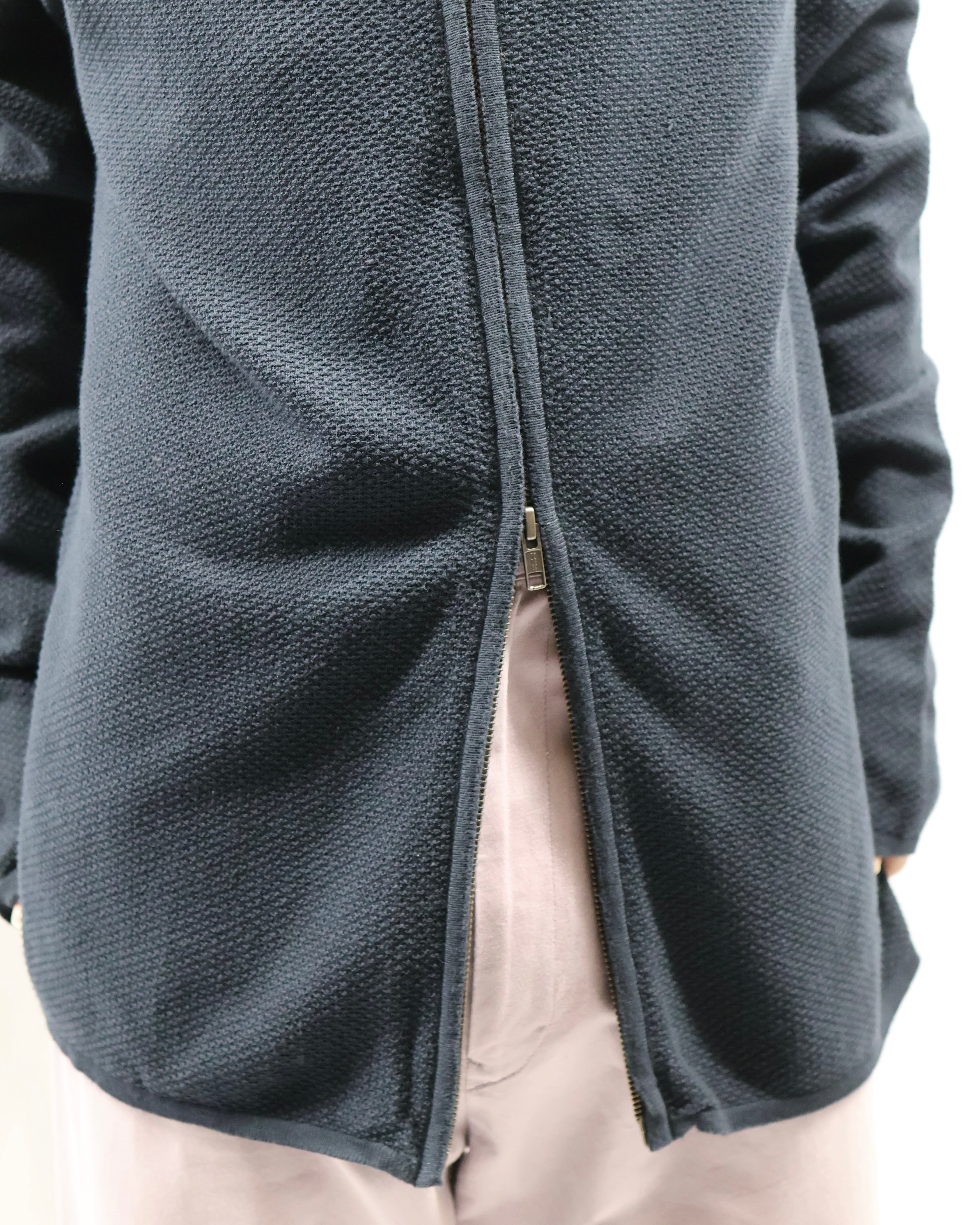 ダブルジップの薄手のドライバーズニット。カジュアルなドライバーズニットが多い中で、こちらはシックに、スラックスとジャケットのインナーとして決まるようなしなやかで上品な風合いを醸し出しています。着丈が長めに作られており、ジップを開けた時のえも言われぬ色気は、思わず春先に着たくなるような高級感を感じさせます。